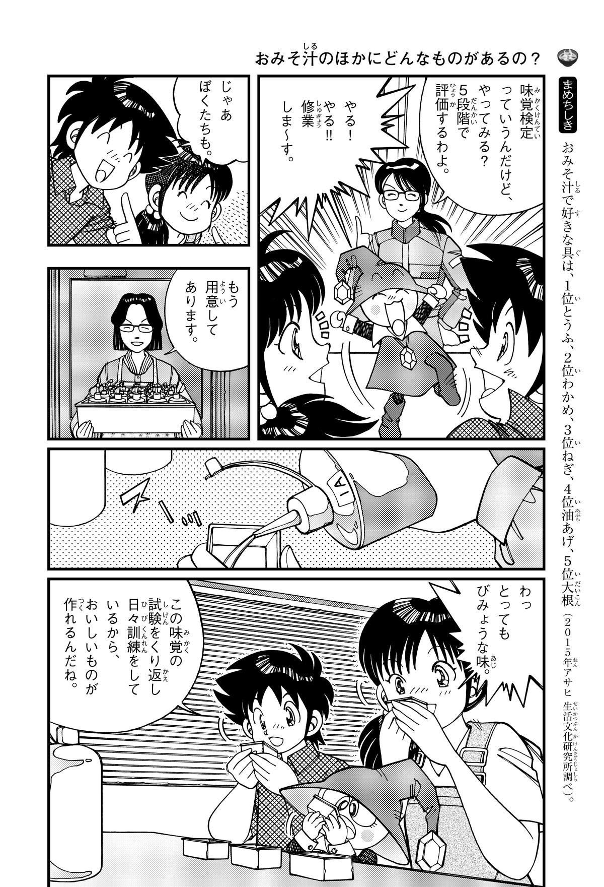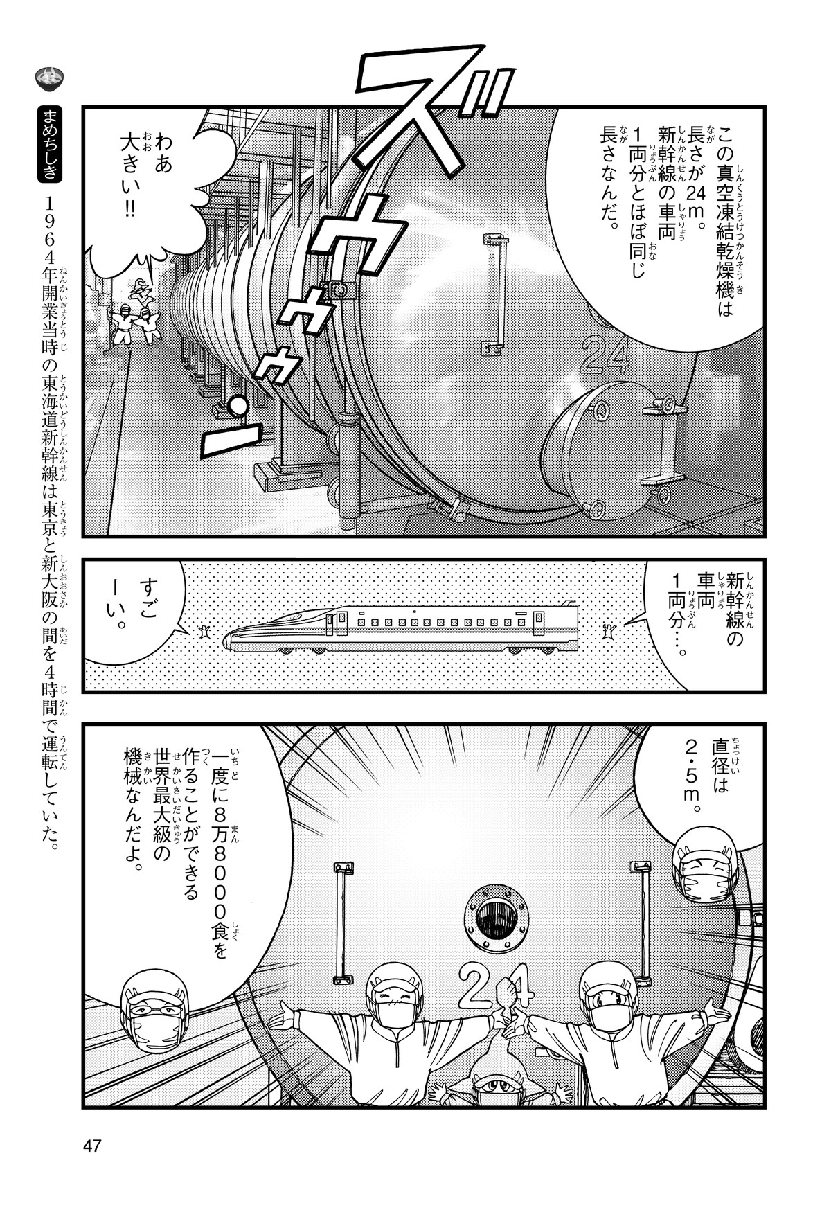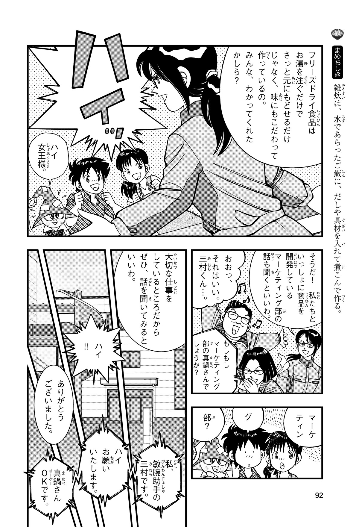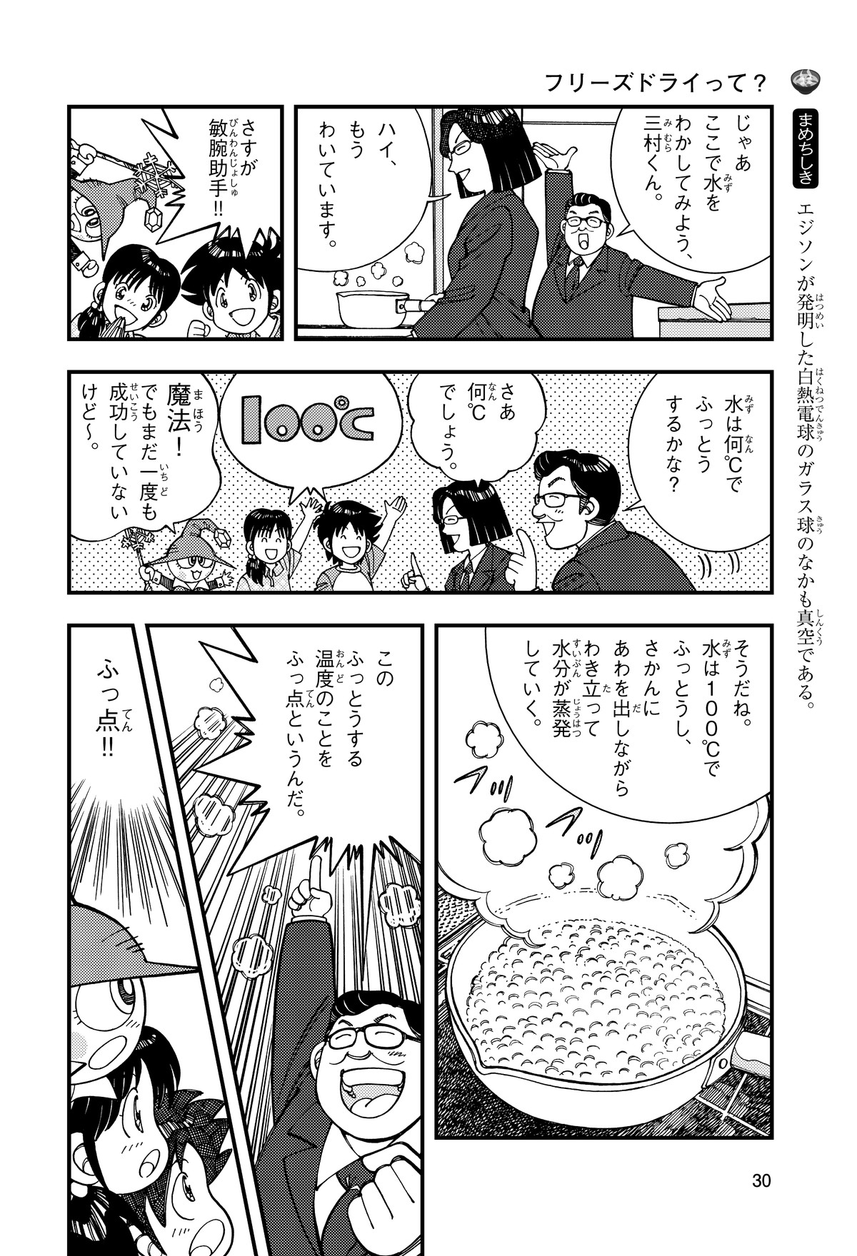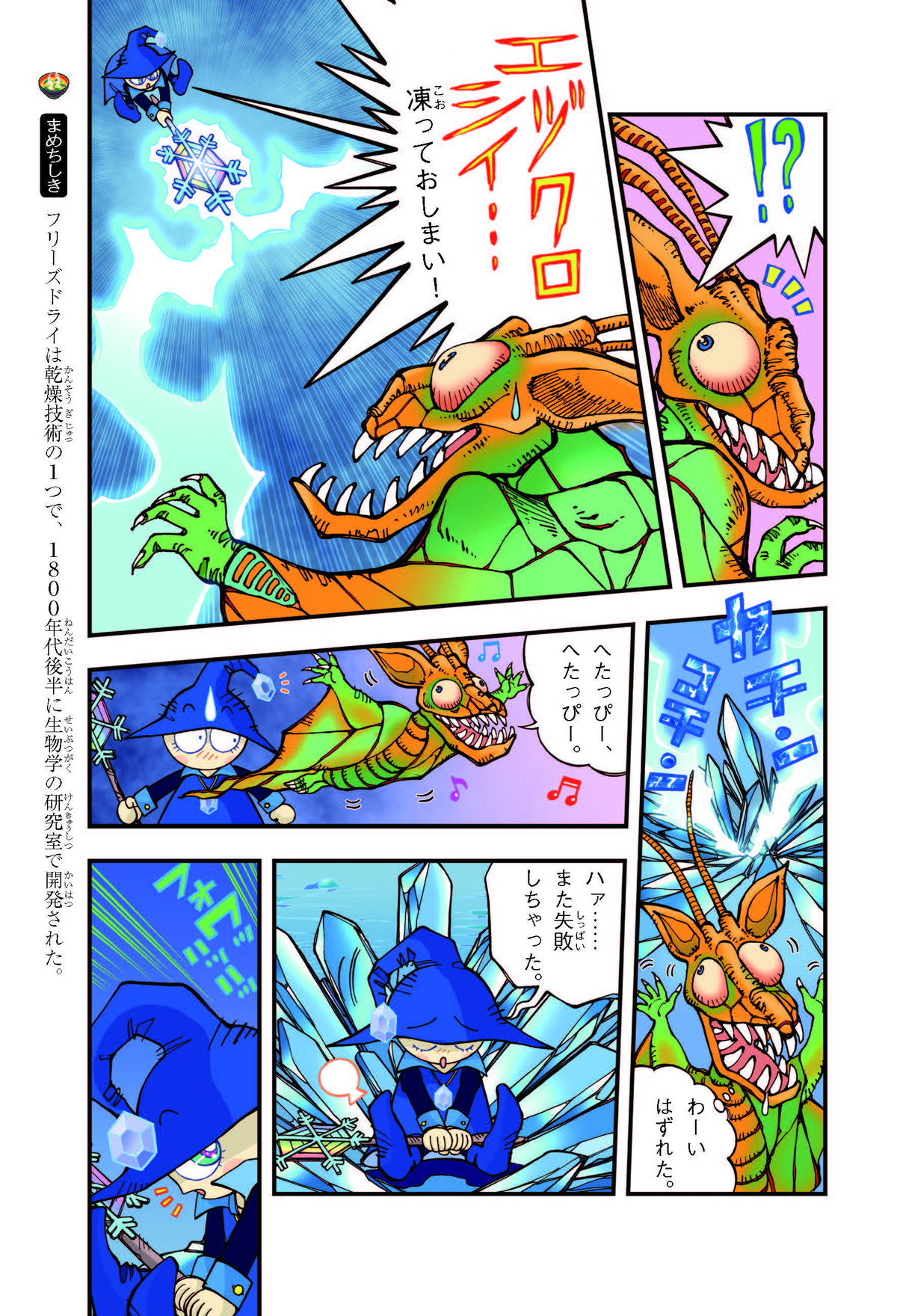 小学5年生の創太(そうた)とユイが愛犬を散歩させていたら、宇宙(うちゅう)から来た妖精(ようせい)のせいでトラブル発生! 妖精(ようせい)と二人がもめていると、なぞの二人組が助けてくれる。この二人組、じつはフリーズドライ食品を作っているんだって。その代表はおみそ汁(しる)。でもフリーズドライってなに? 凍(こお)らせて乾燥(かんそう)させるんだって? いったいどういうことなんだろう?