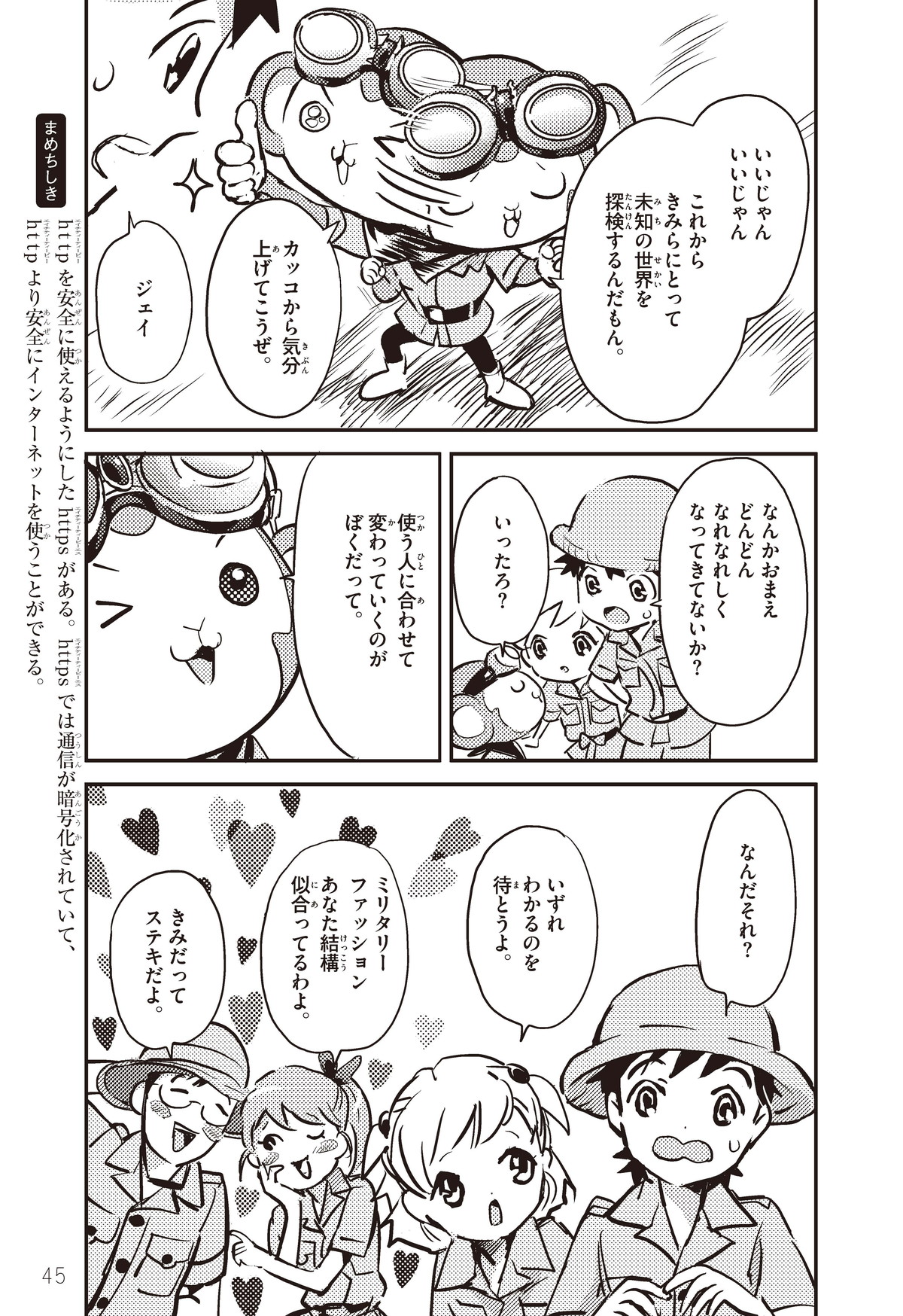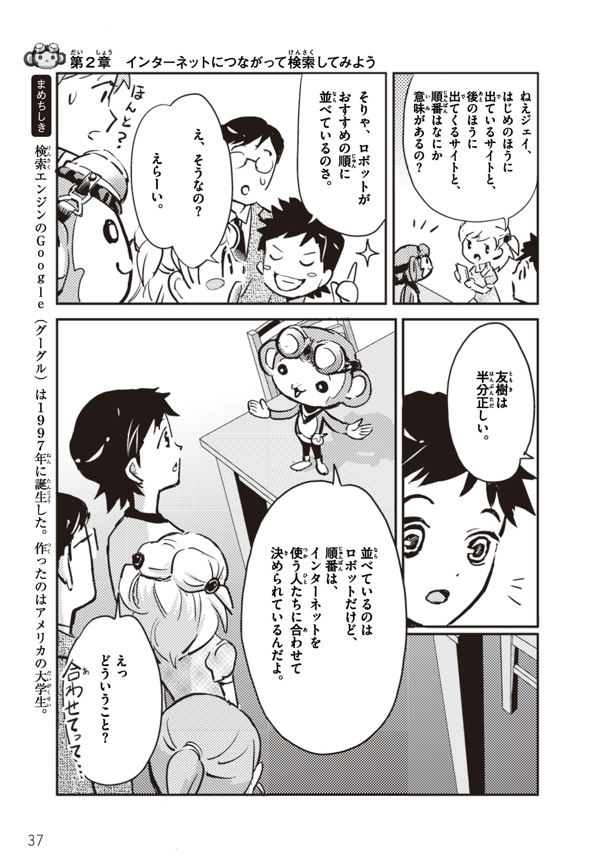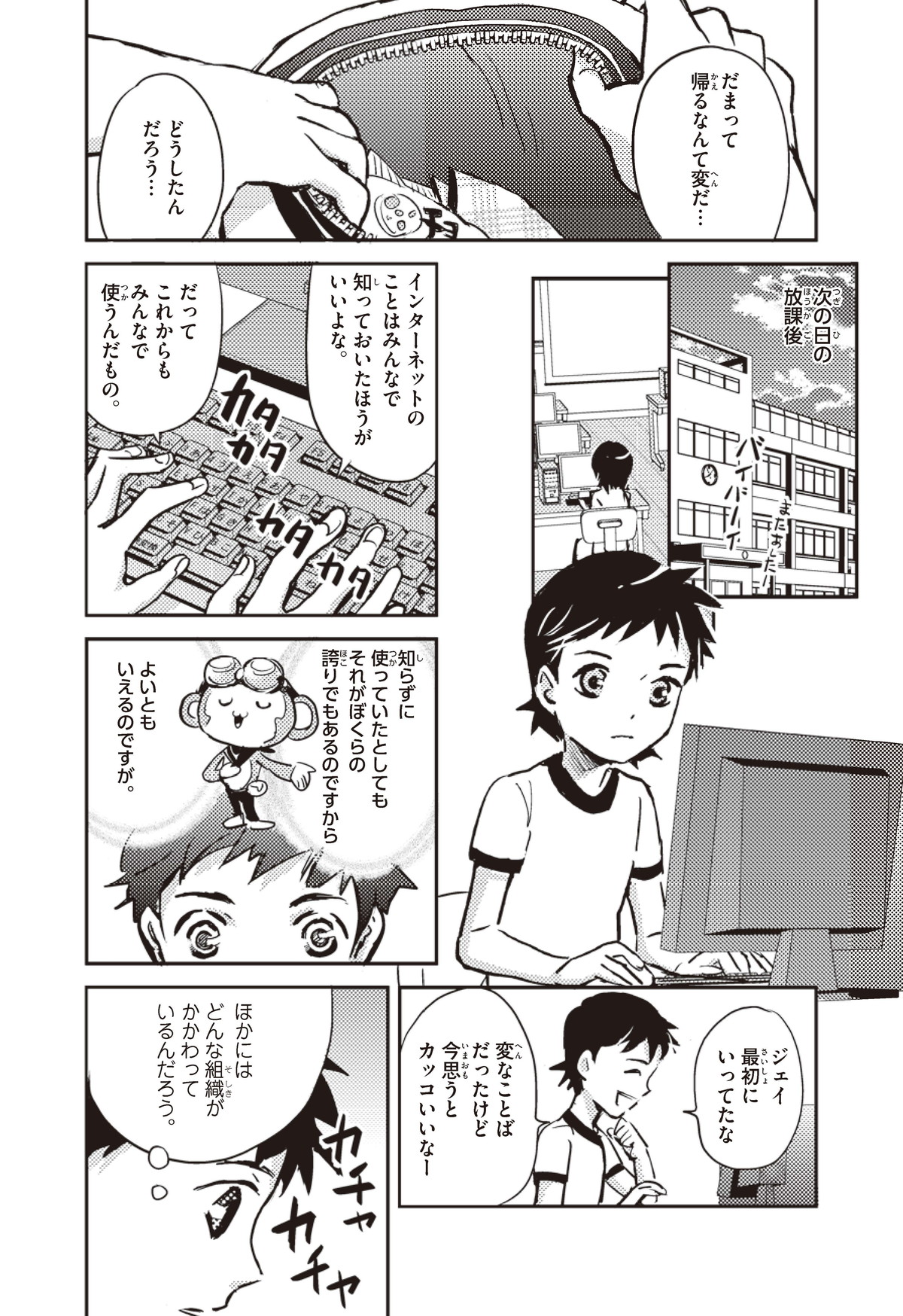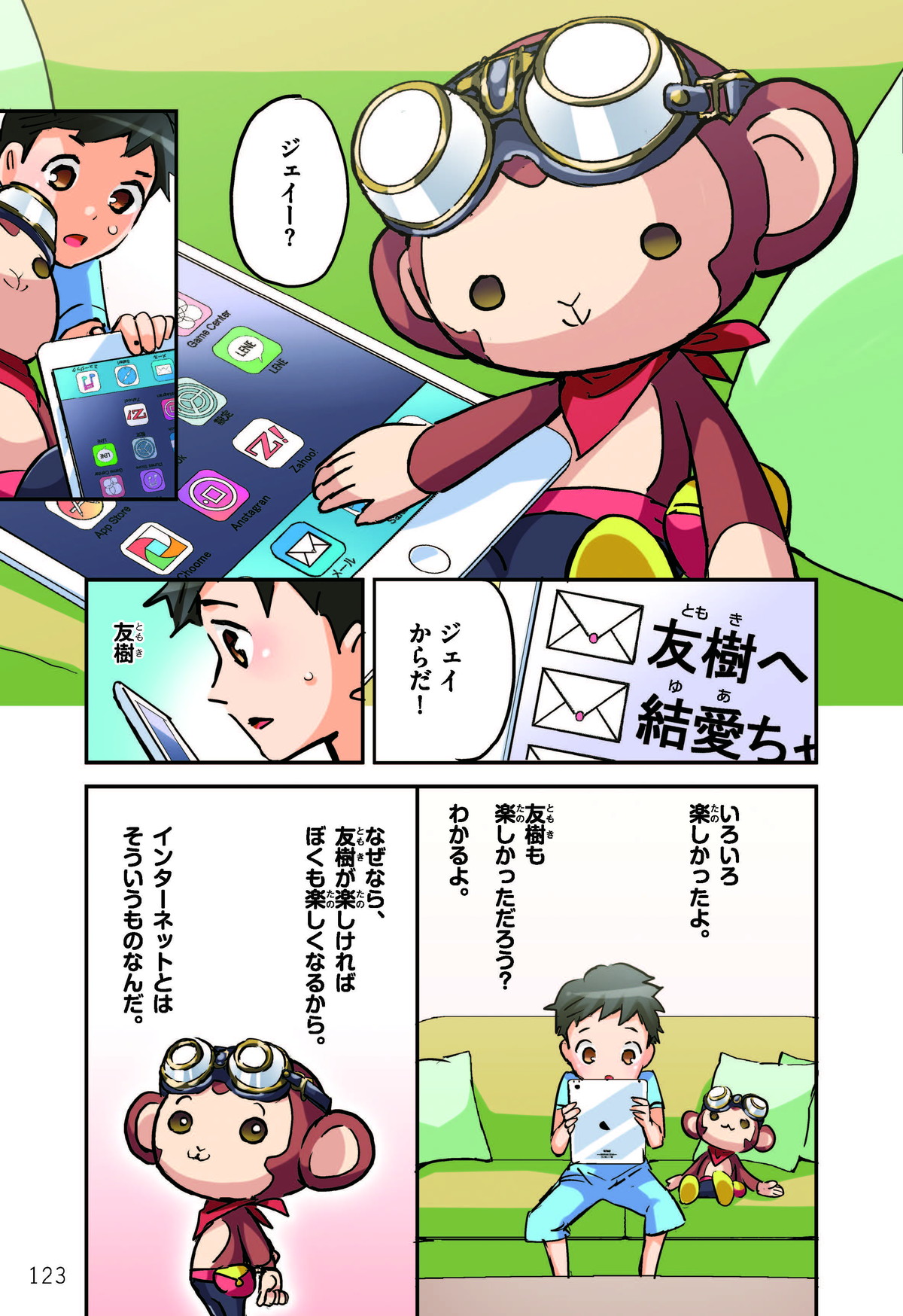 小学6年生友樹(ともき)の家に突然(とつぜん)あらわれたジェイ。彼(かれ)はインターネットの化身(けしん)なんだって!? 今まではなんとなく使ってたインターネットだけど、どんなしくみなのかまったくわからないなぁ。そこで友樹(ともき)は、家族みんなでジェイといっしょにインターネットの世界へ大冒険(だいぼうけん)! 検索(けんさく)って、ウェブってこんなしくみだったんだ!