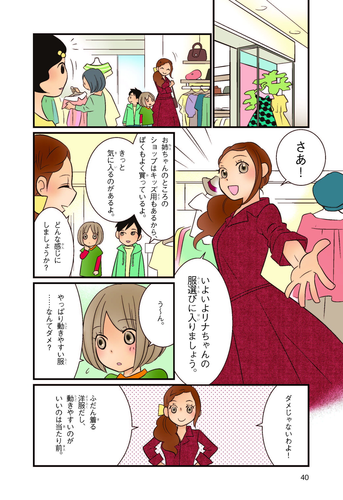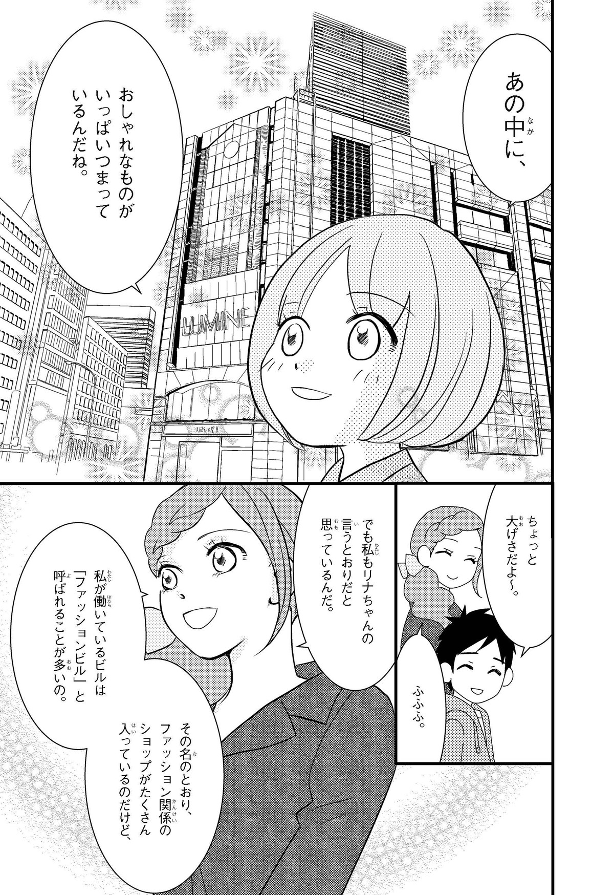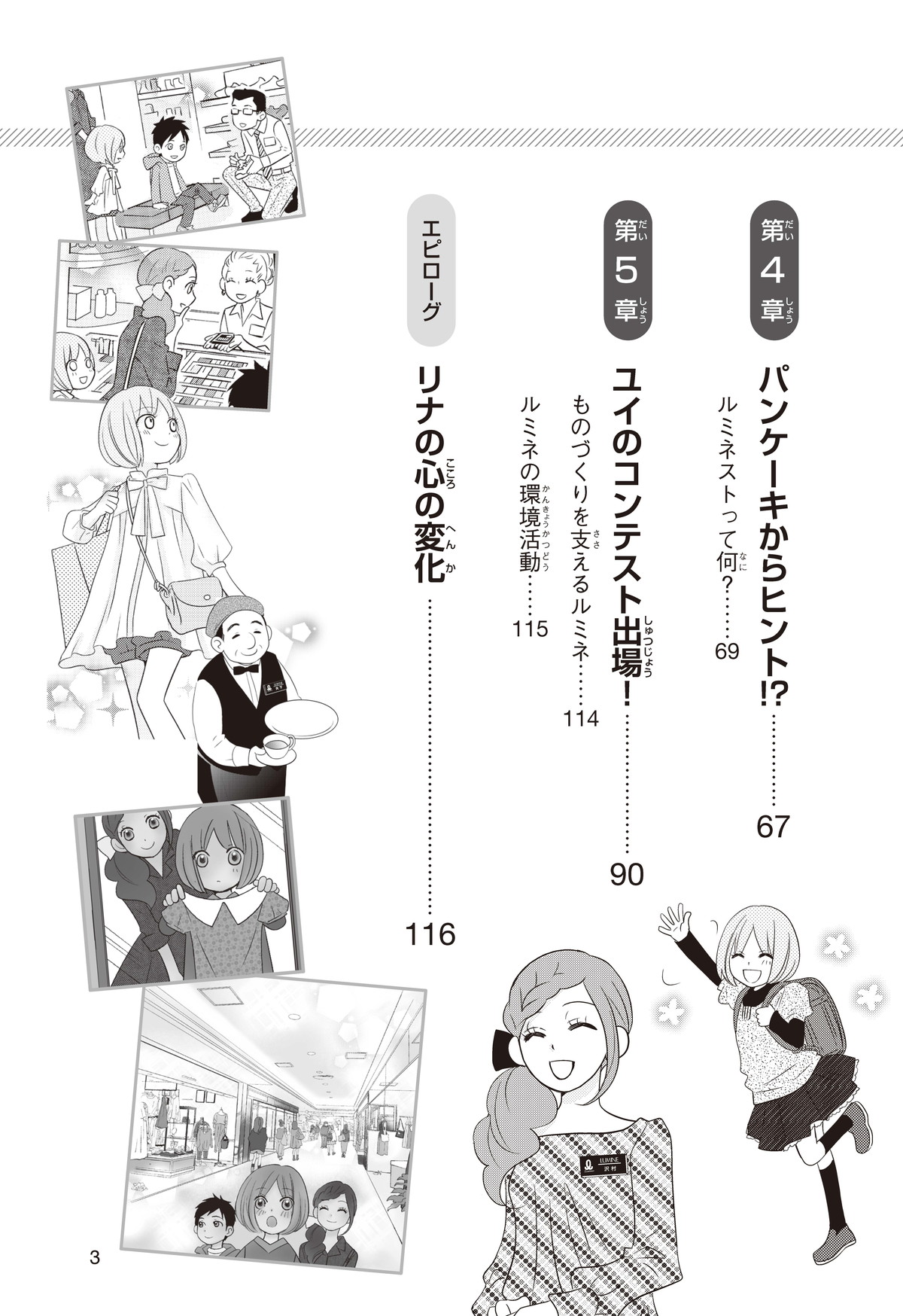 クラスの代表委員に立候補(りっこうほ)したけど、人気者のジュンに多数決(たすうけつ)で負けて大ショックな小学校5年生のリナ。落ちこむリナの目にとびこんできたのは、ファッションビルで生き生きとはたらくジュンのお姉さん・ユイのすがた。ユイにさそわれてファッションビルへ出かけると、そこはキラキラとかがやくモノや人、おもてなしの心がいっぱいの世界! リナはファッションも、心もみがかれていって……。