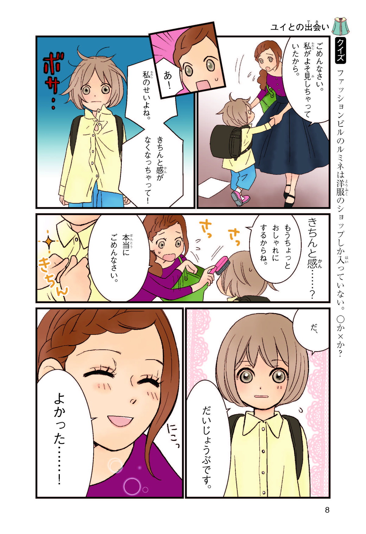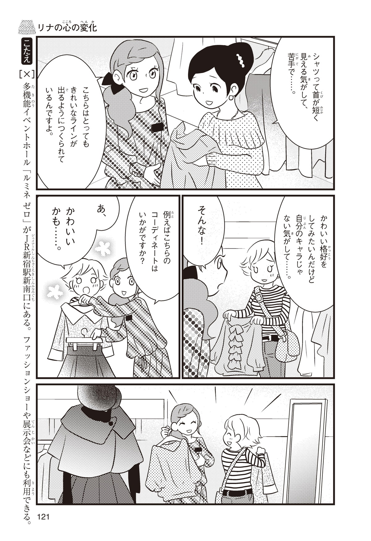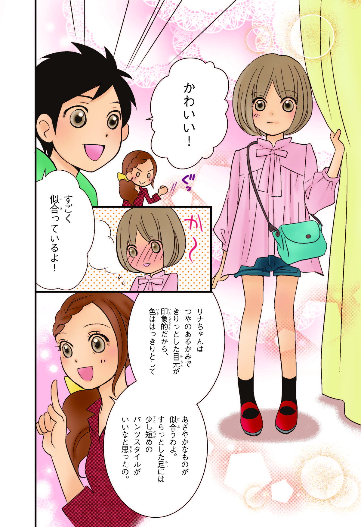 クラスの代表委員に立候補(りっこうほ)したけど、人気者のジュンに多数決(たすうけつ)で負けて大ショックな小学校5年生のリナ。落ちこむリナの目にとびこんできたのは、ファッションビルで生き生きとはたらくジュンのお姉さん・ユイのすがた。ユイにさそわれてファッションビルへ出かけると、そこはキラキラとかがやくモノや人、おもてなしの心がいっぱいの世界! リナはファッションも、心もみがかれていって……。