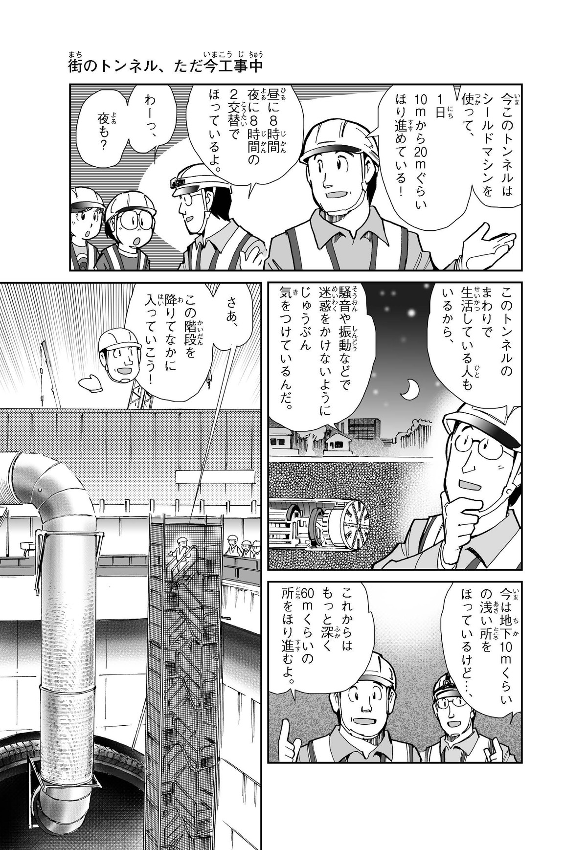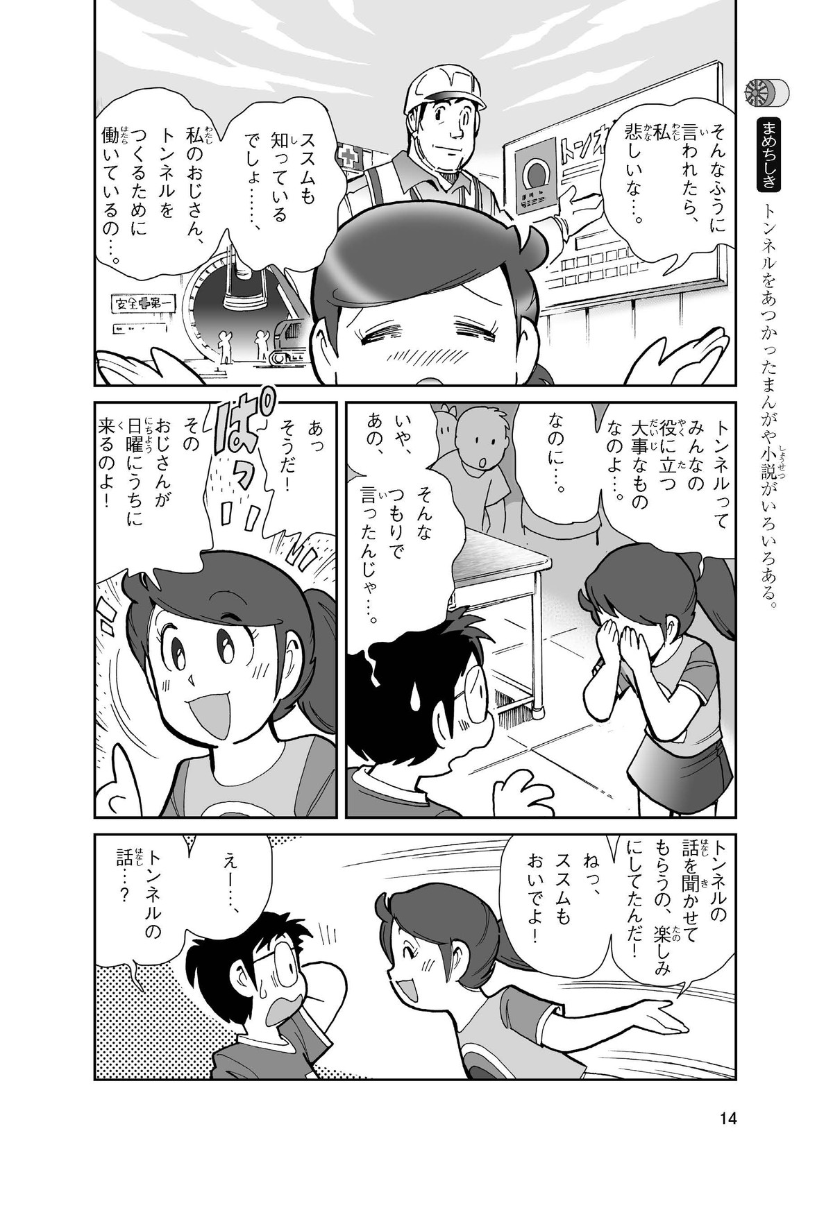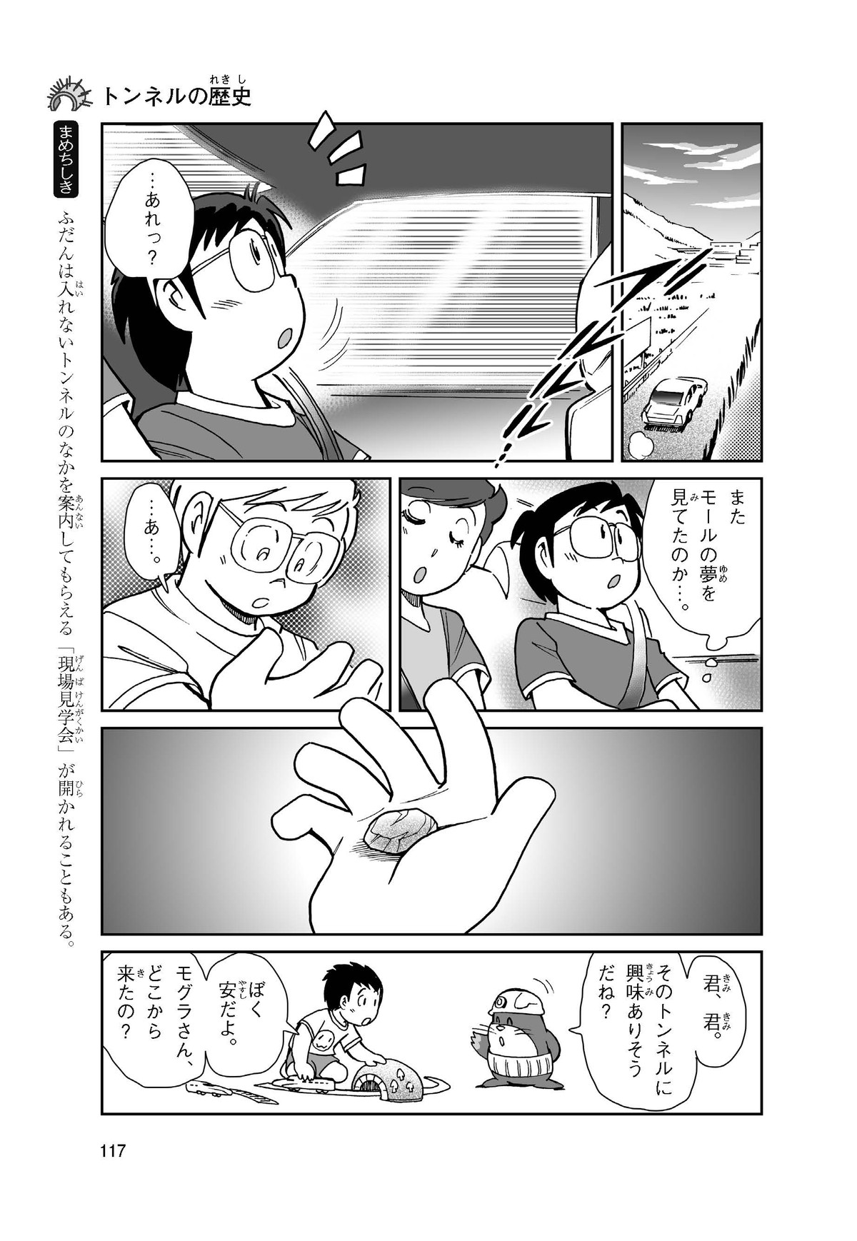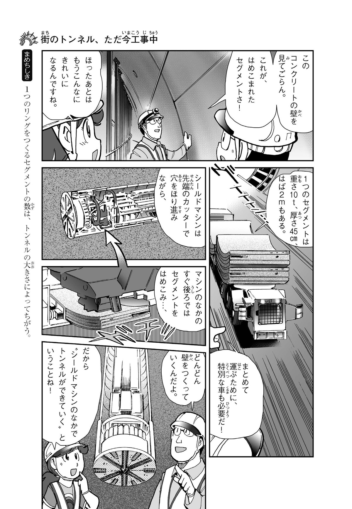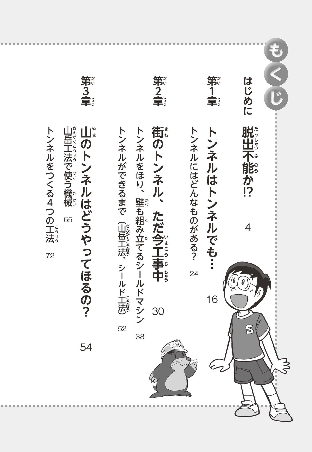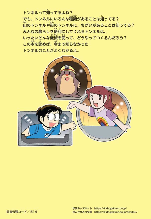 野球の試合でトンネルばかりするススム(小学5年生)は「トンネル」という言葉がきらい。同級生の愛ちゃんはそんなススムを、おじさんが働くトンネルの工事現場(げんば)に連れて行くことに。初めて見る工事現場ではおどろきや発見がいっぱい!ススムはトンネルにだんだん興味(きょうみ)をもち始め、トンネルが社会やくらしに役に立つものだと知っていくよ。そして大人になったススムは……。