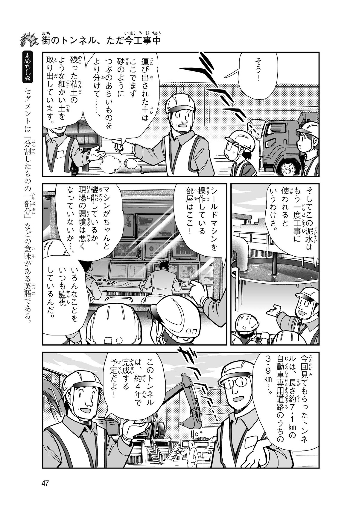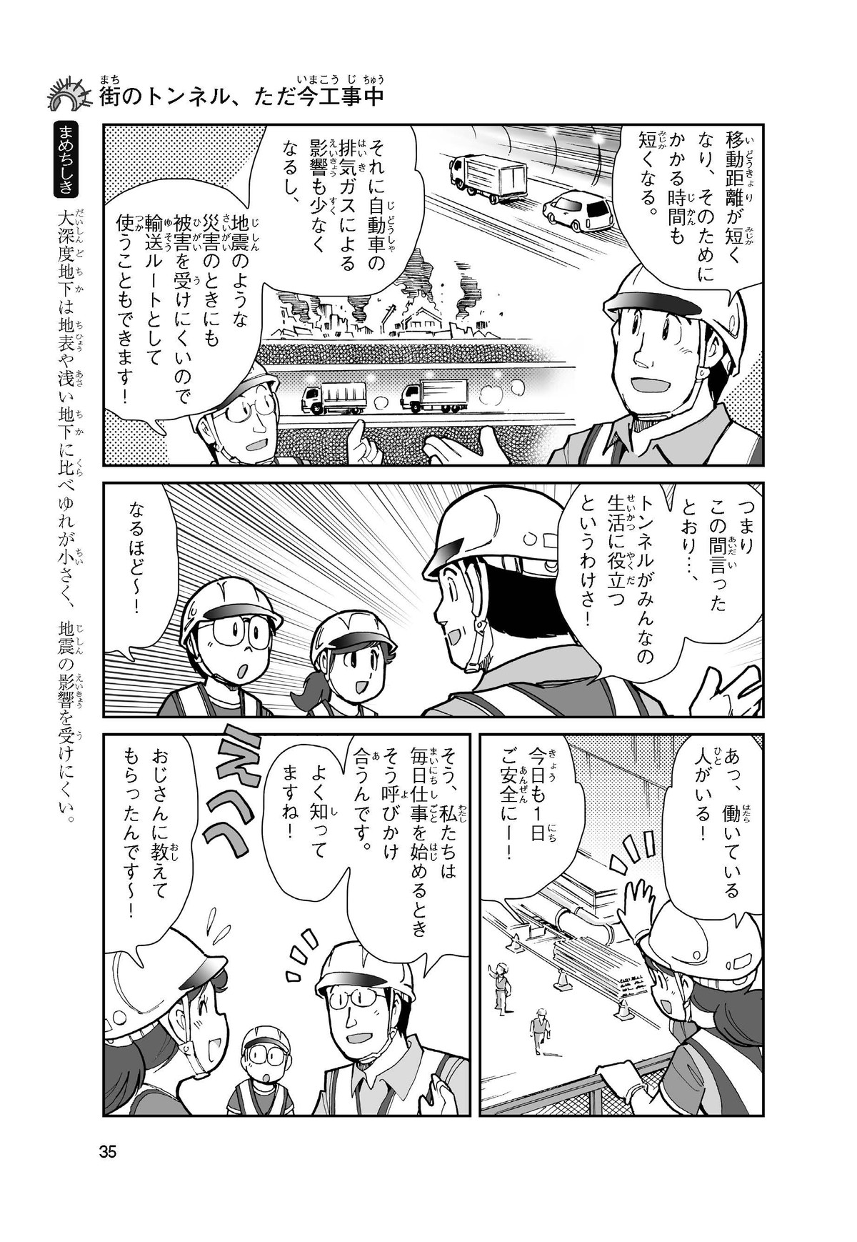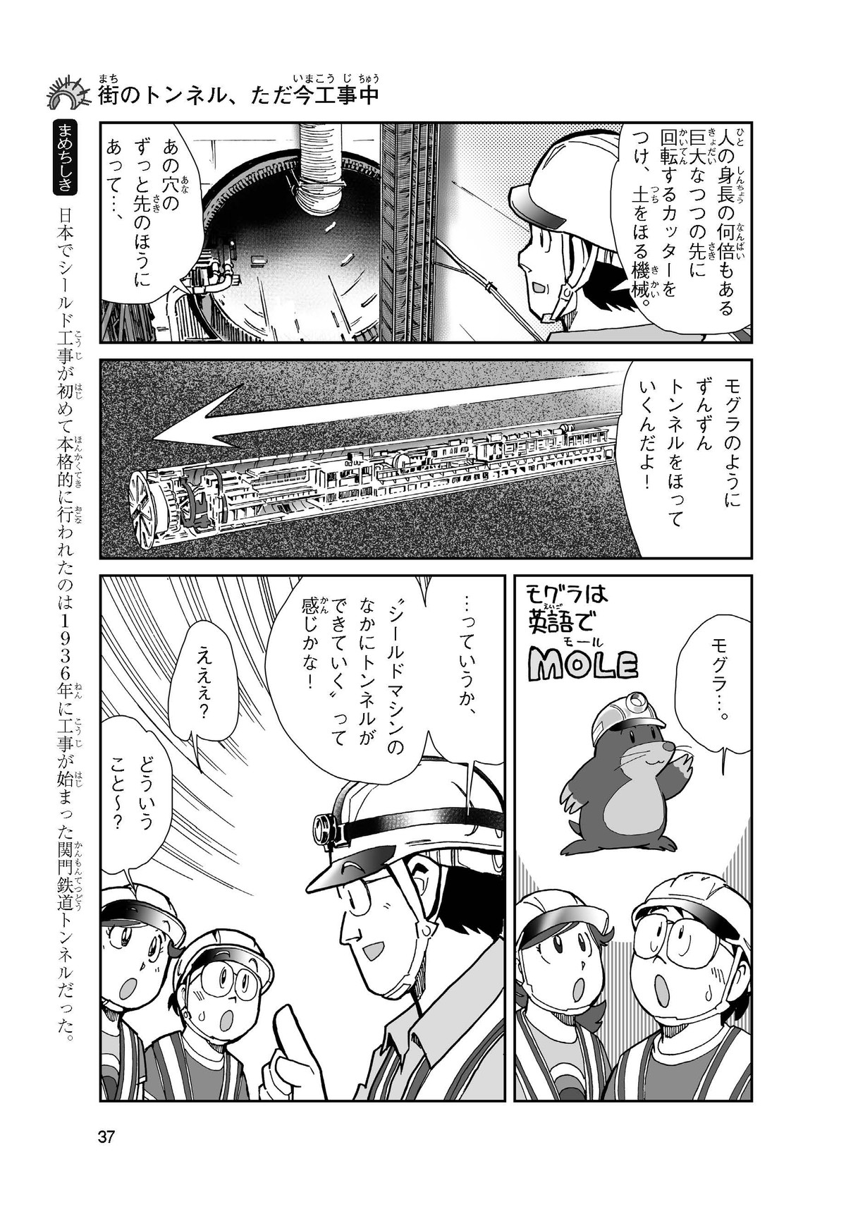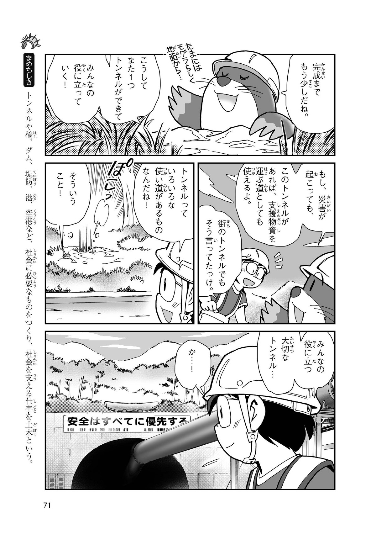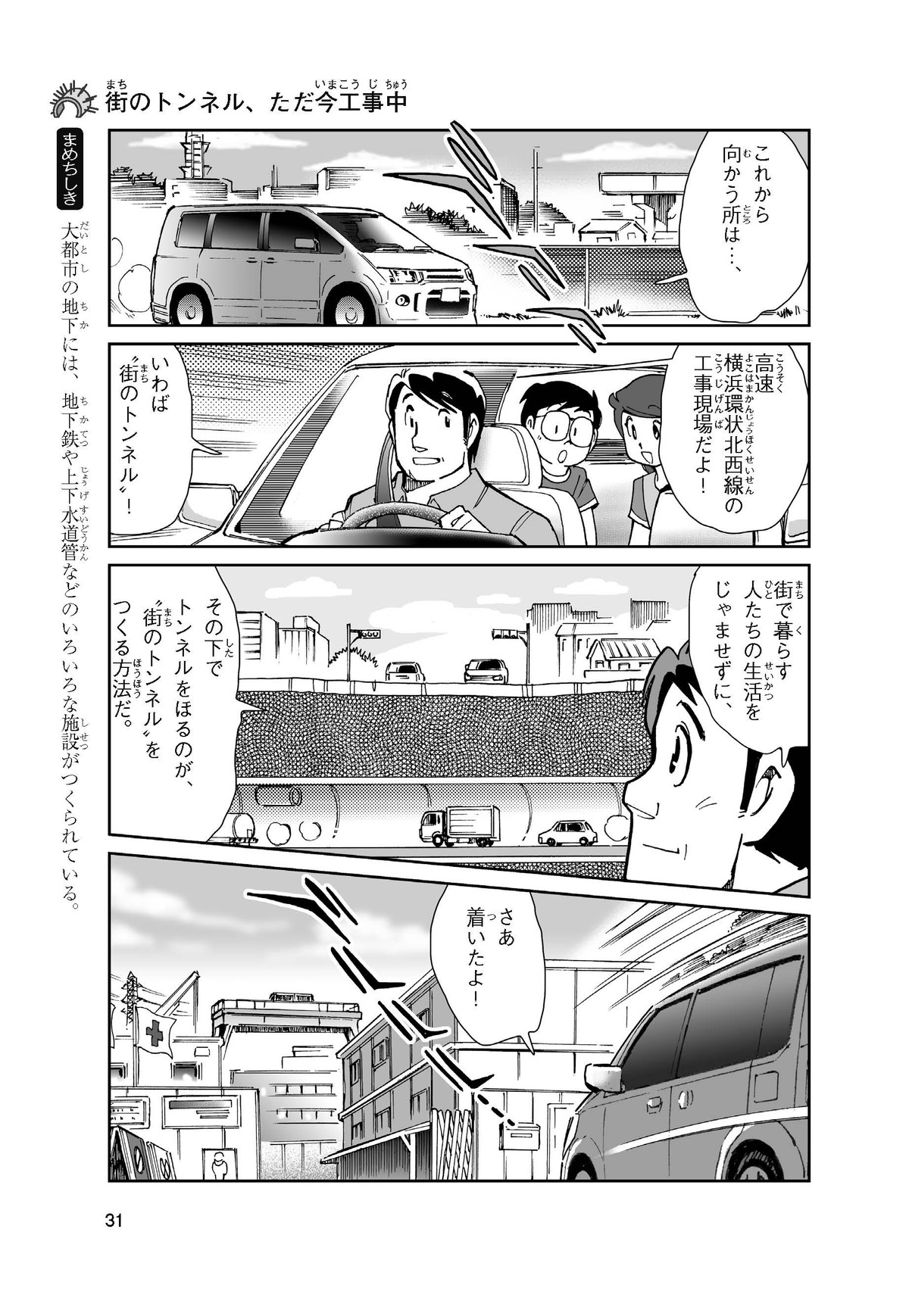 野球の試合でトンネルばかりするススム(小学5年生)は「トンネル」という言葉がきらい。同級生の愛ちゃんはそんなススムを、おじさんが働くトンネルの工事現場(げんば)に連れて行くことに。初めて見る工事現場ではおどろきや発見がいっぱい!ススムはトンネルにだんだん興味(きょうみ)をもち始め、トンネルが社会やくらしに役に立つものだと知っていくよ。そして大人になったススムは……。