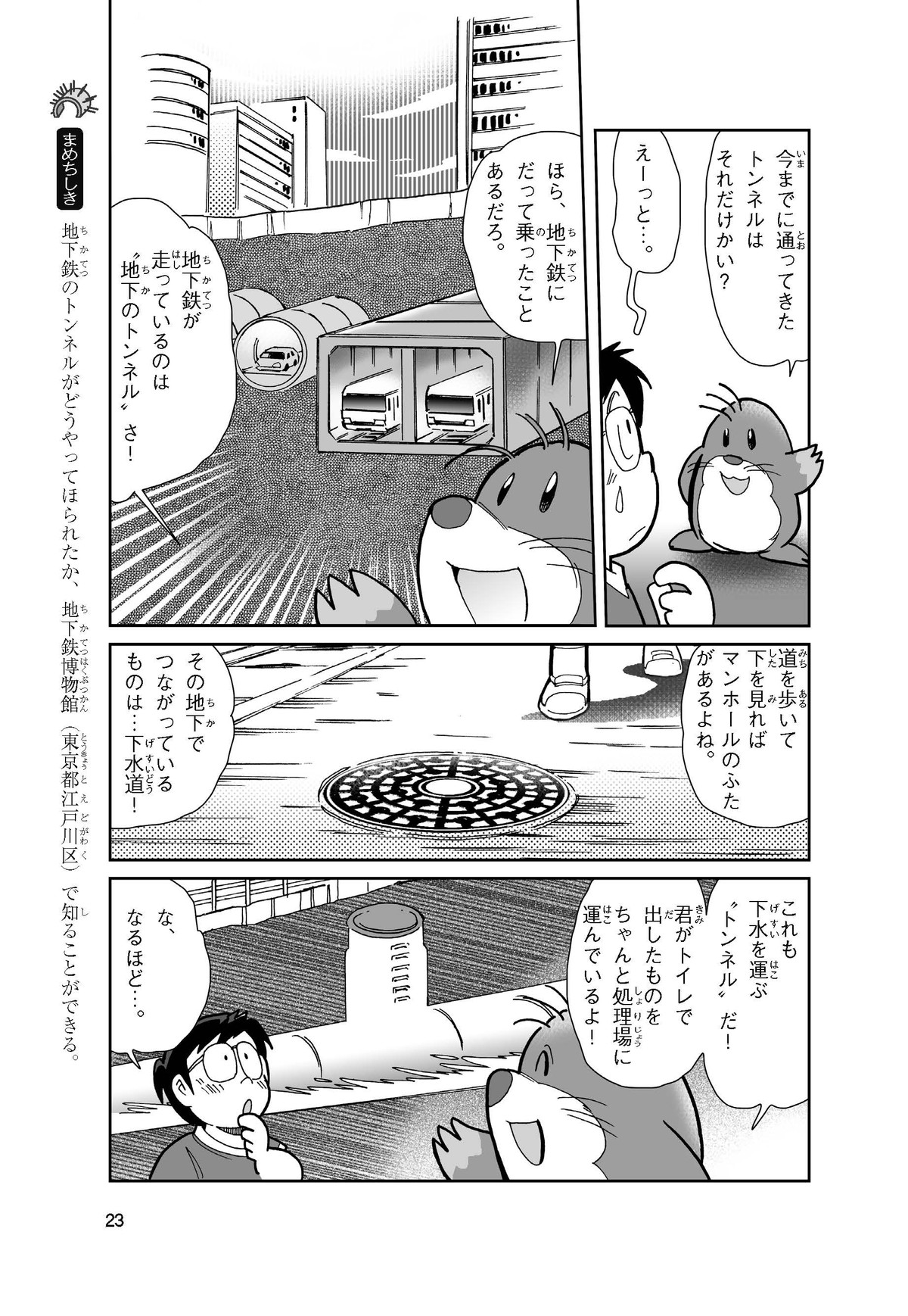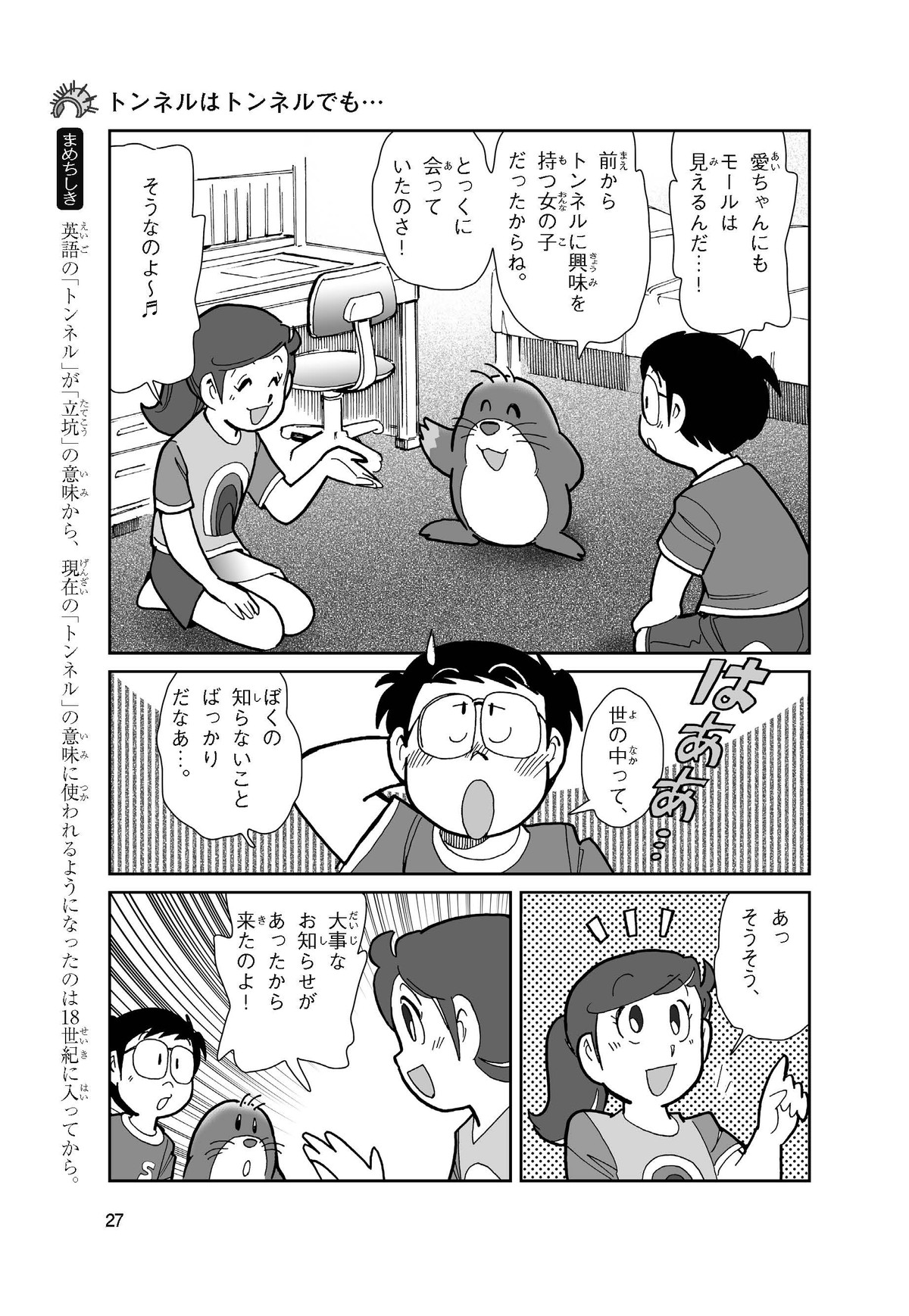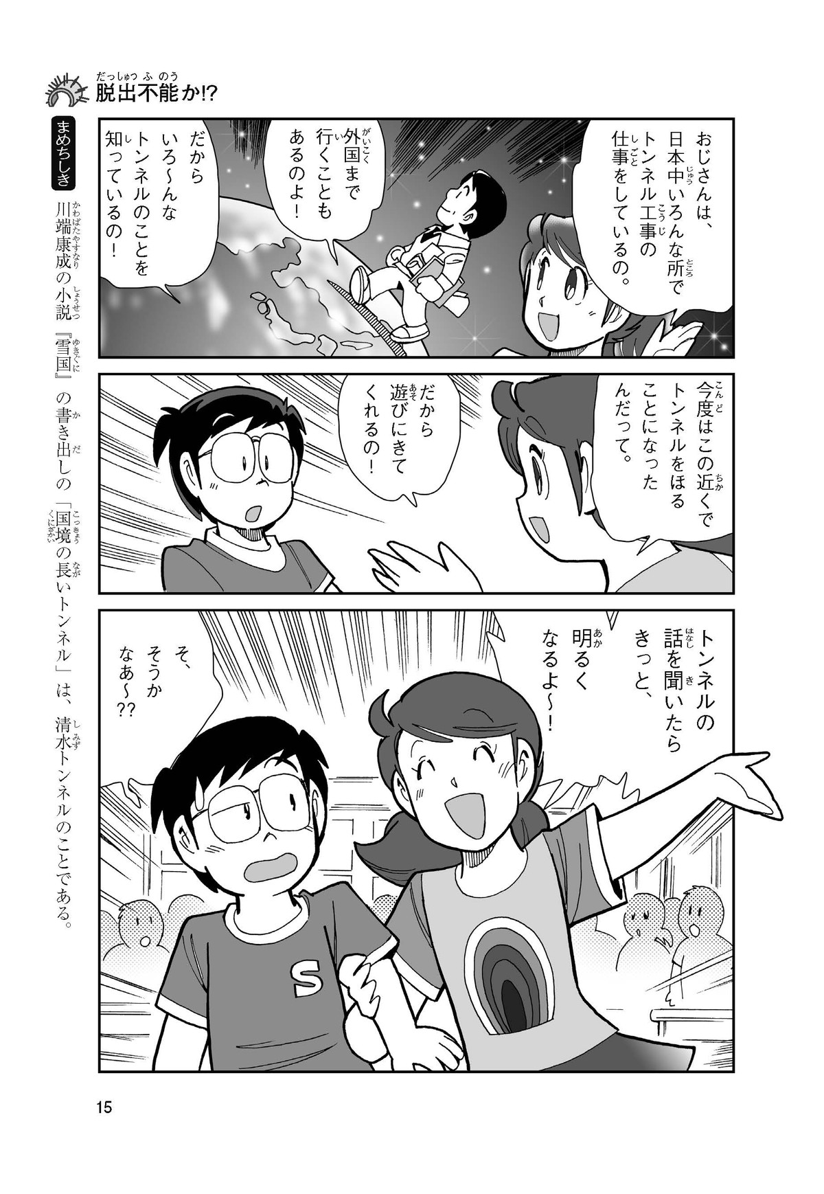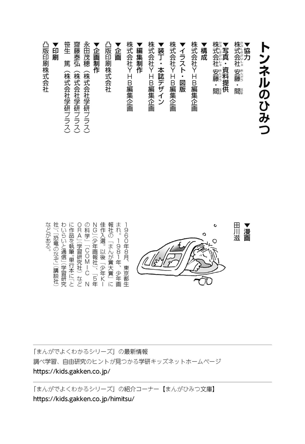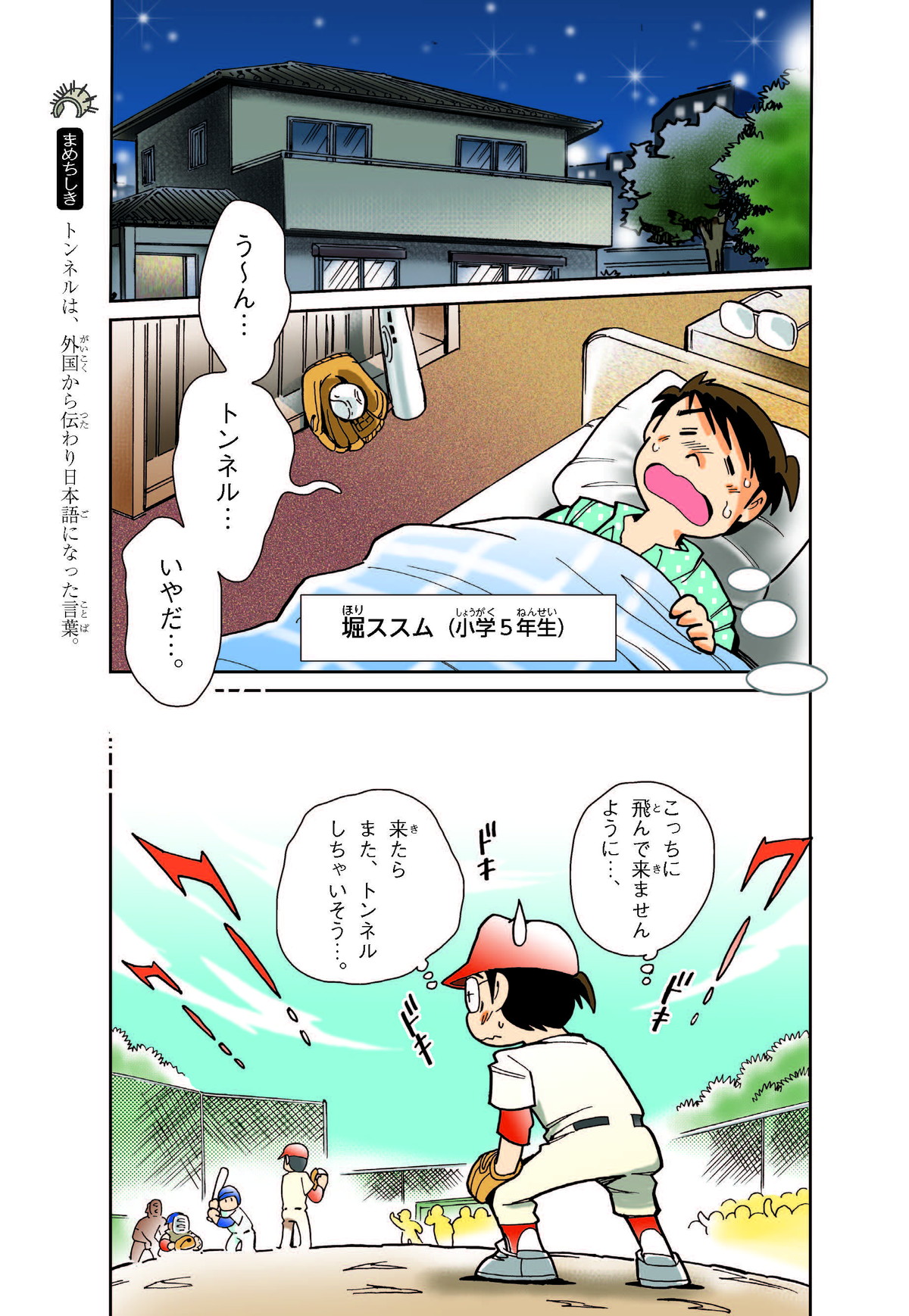 野球の試合でトンネルばかりするススム(小学5年生)は「トンネル」という言葉がきらい。同級生の愛ちゃんはそんなススムを、おじさんが働くトンネルの工事現場(げんば)に連れて行くことに。初めて見る工事現場ではおどろきや発見がいっぱい!ススムはトンネルにだんだん興味(きょうみ)をもち始め、トンネルが社会やくらしに役に立つものだと知っていくよ。そして大人になったススムは……。