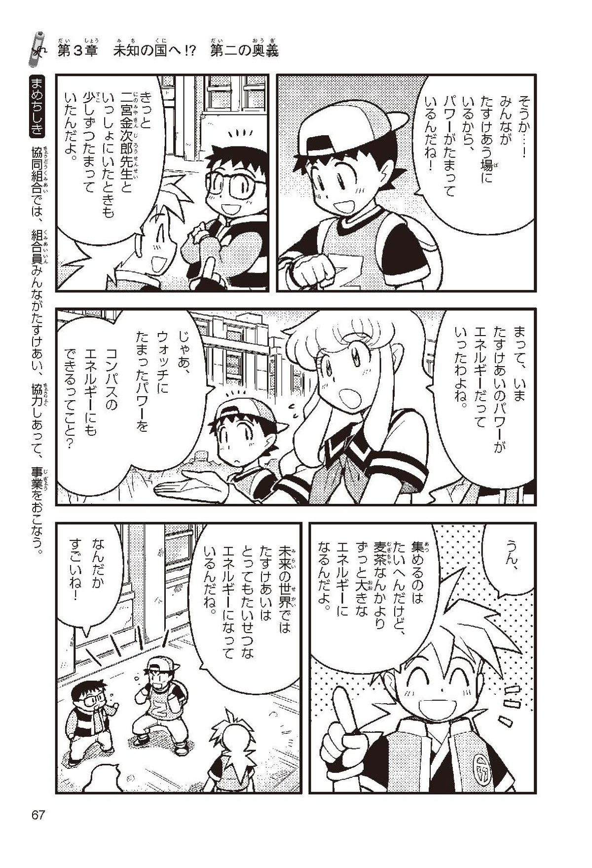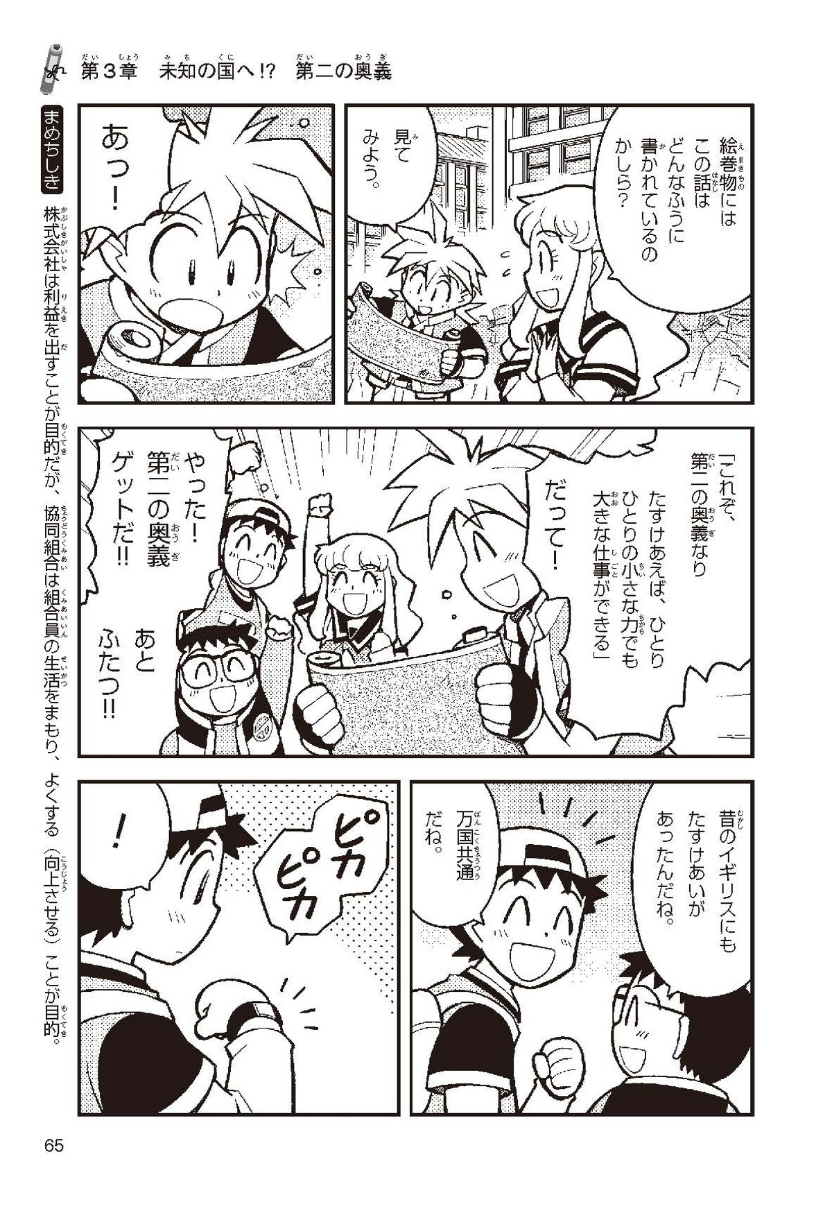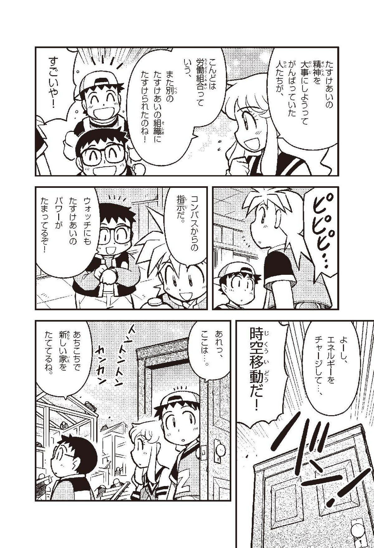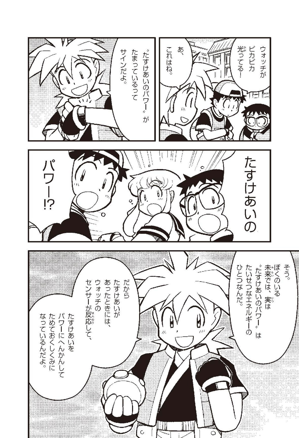 ゼン、タロウ、さいこのなかよし3人組は、宝物さがしに入った古い土蔵(どぞう)で、未来からやってきた少年、アスナ・ミライと出会い、ある絵巻物を発見! 時空をこえ、“たすけあい”の奥義(おうぎ)をさがす旅にでることに。さまざまな場所で人々のたすけあう思いにふれていくよ。たすけあいの力が人々の安心ある生活を支えてきた歴史を通じて、心や力をあわせることのすばらしさを4人と一緒にさがしてみよう!