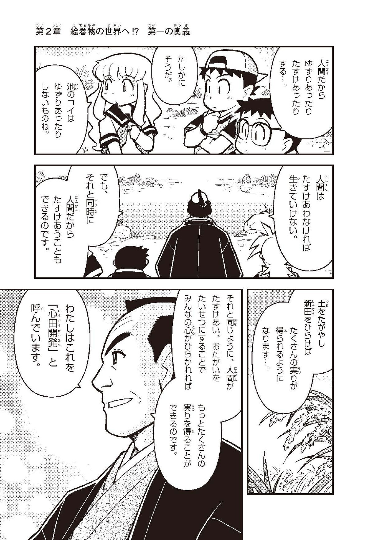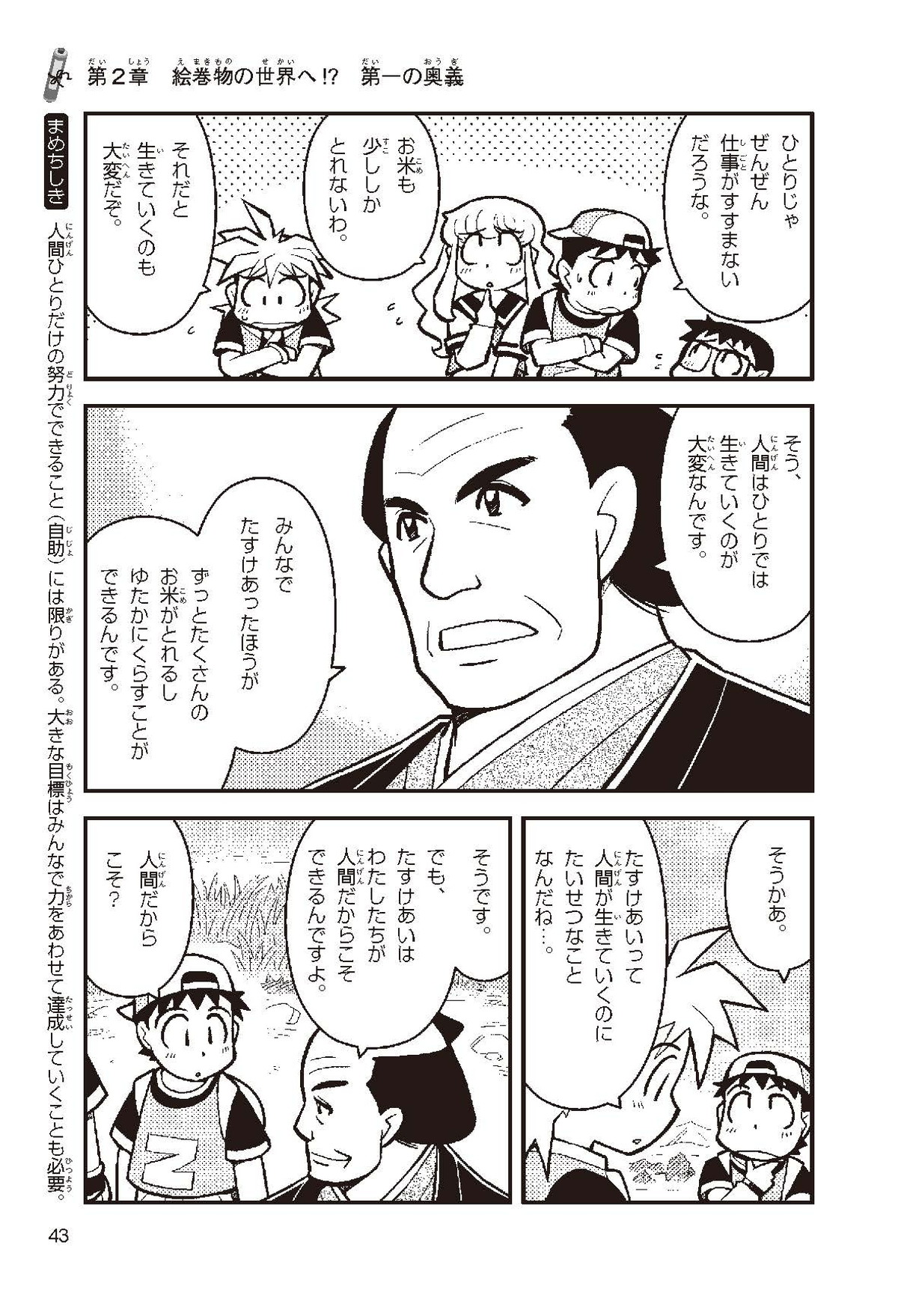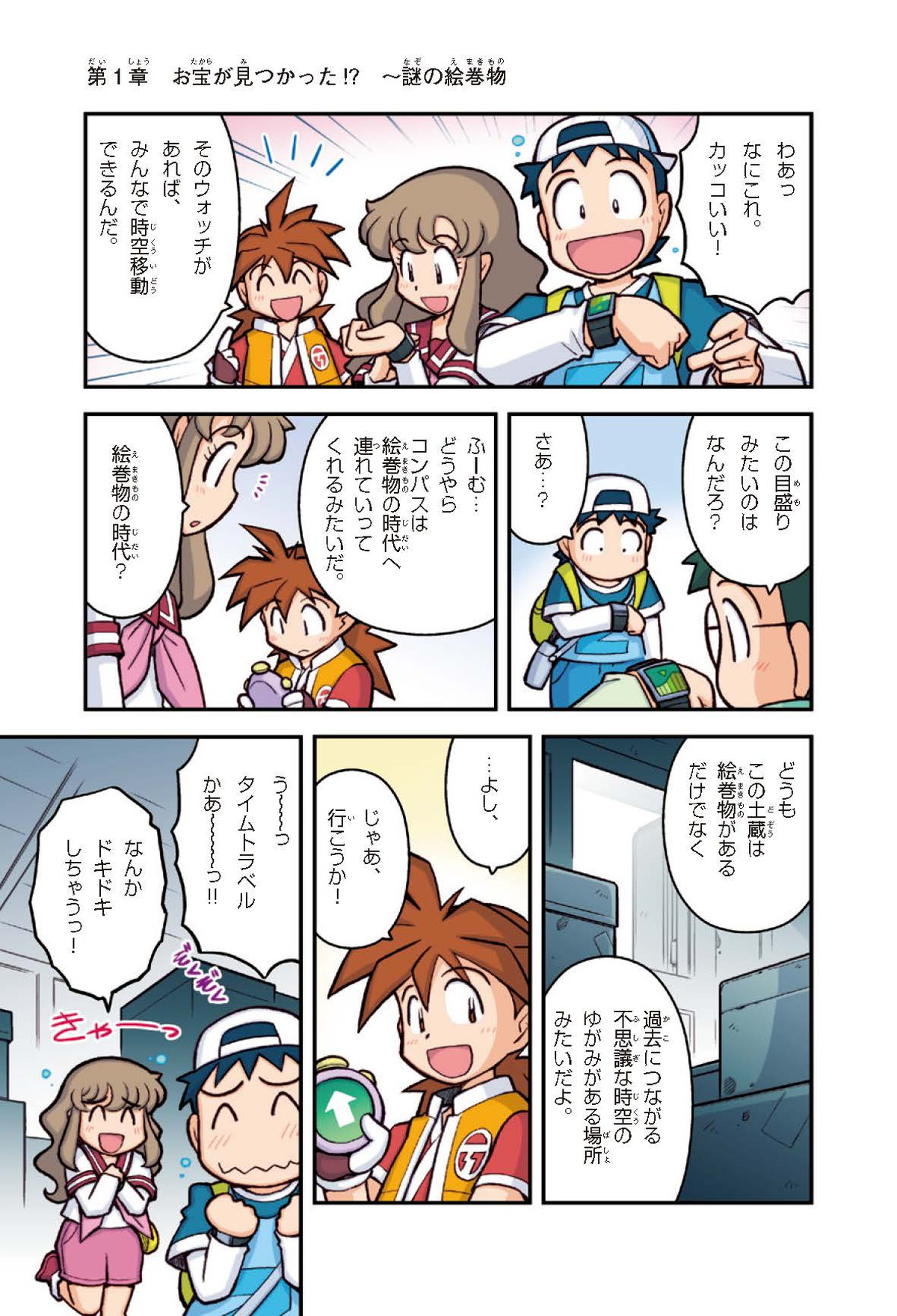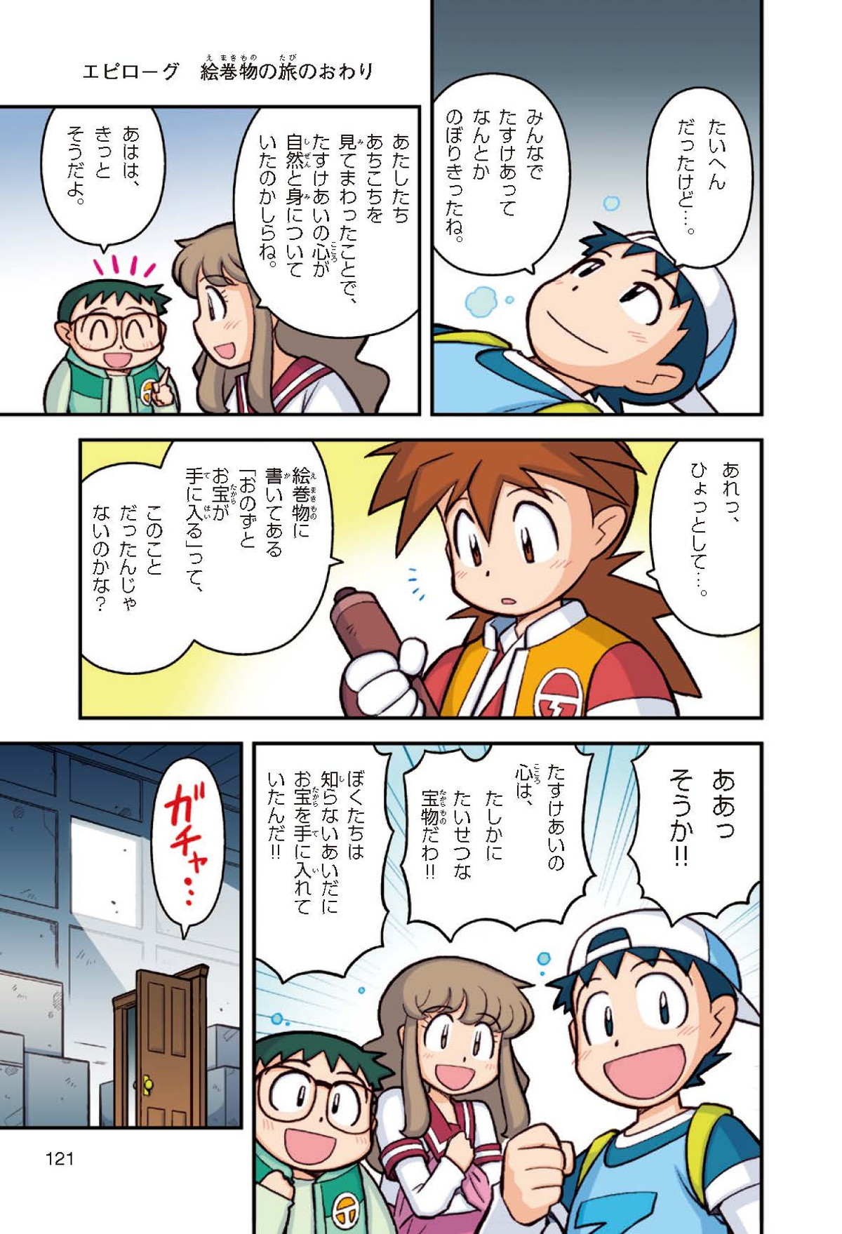 ゼン、タロウ、さいこのなかよし3人組は、宝物さがしに入った古い土蔵(どぞう)で、未来からやってきた少年、アスナ・ミライと出会い、ある絵巻物を発見! 時空をこえ、“たすけあい”の奥義(おうぎ)をさがす旅にでることに。さまざまな場所で人々のたすけあう思いにふれていくよ。たすけあいの力が人々の安心ある生活を支えてきた歴史を通じて、心や力をあわせることのすばらしさを4人と一緒にさがしてみよう!