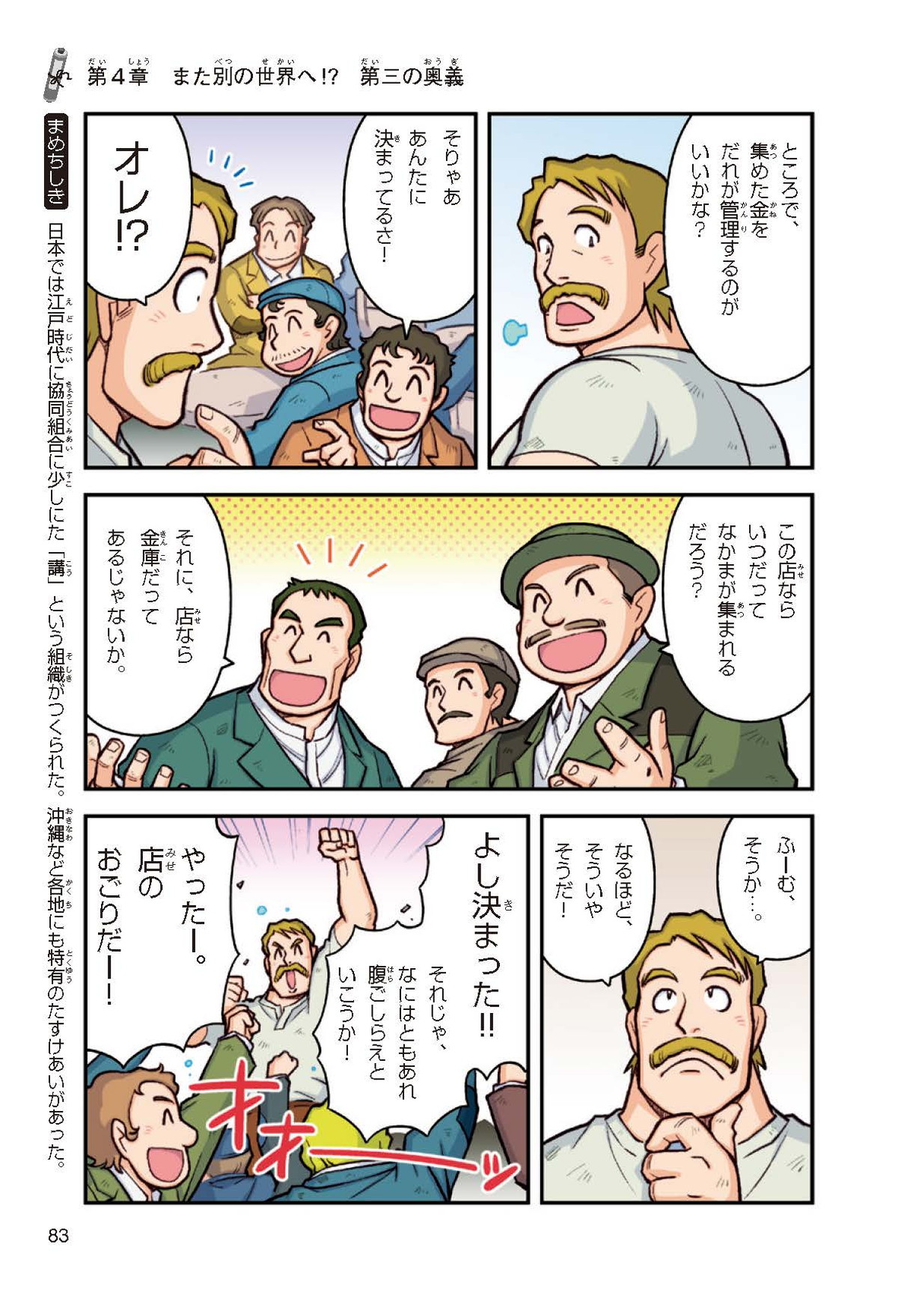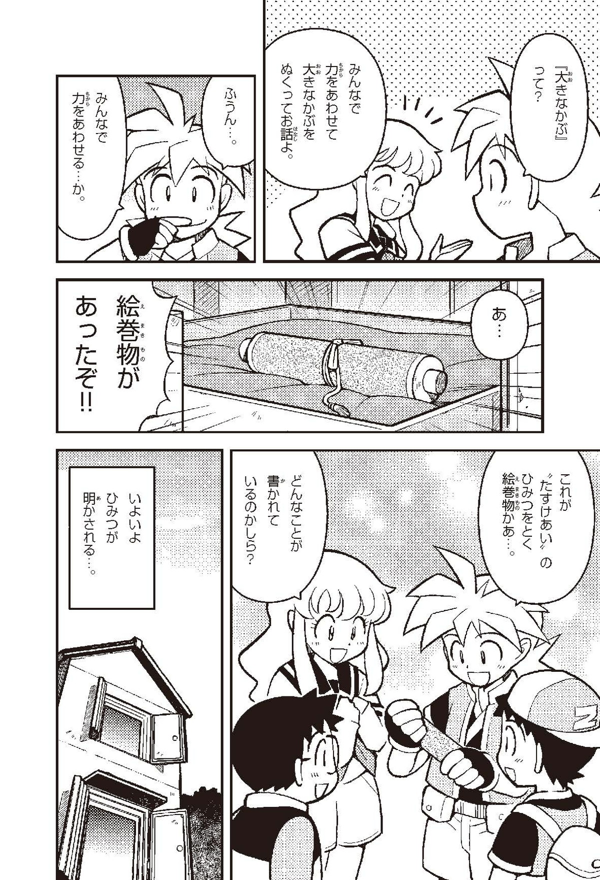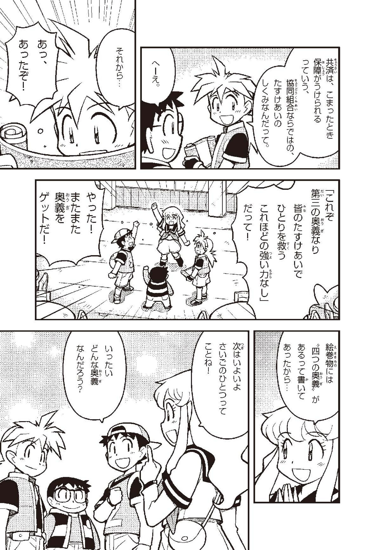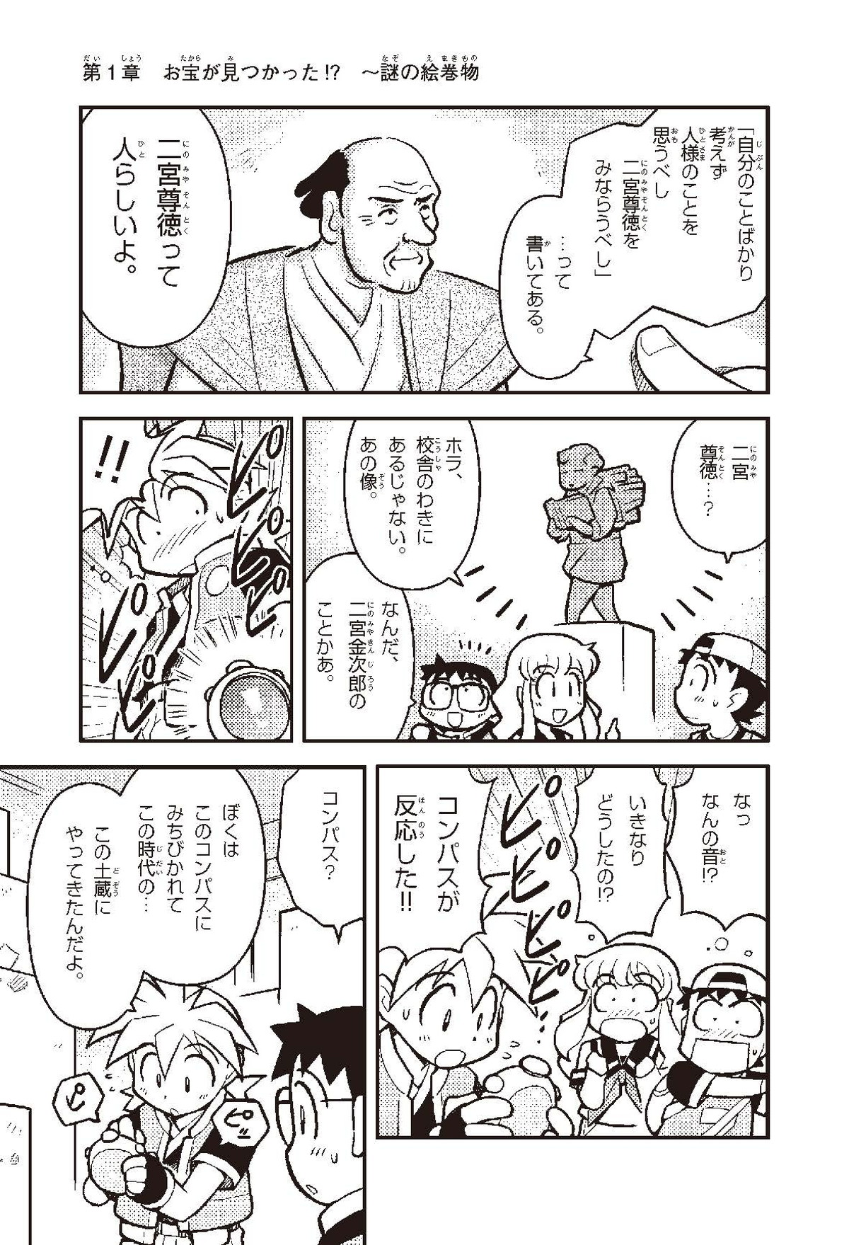ゼン、タロウ、さいこのなかよし3人組は、宝物さがしに入った古い土蔵(どぞう)で、未来からやってきた少年、アスナ・ミライと出会い、ある絵巻物を発見! 時空をこえ、“たすけあい”の奥義(おうぎ)をさがす旅にでることに。さまざまな場所で人々のたすけあう思いにふれていくよ。たすけあいの力が人々の安心ある生活を支えてきた歴史を通じて、心や力をあわせることのすばらしさを4人と一緒にさがしてみよう!