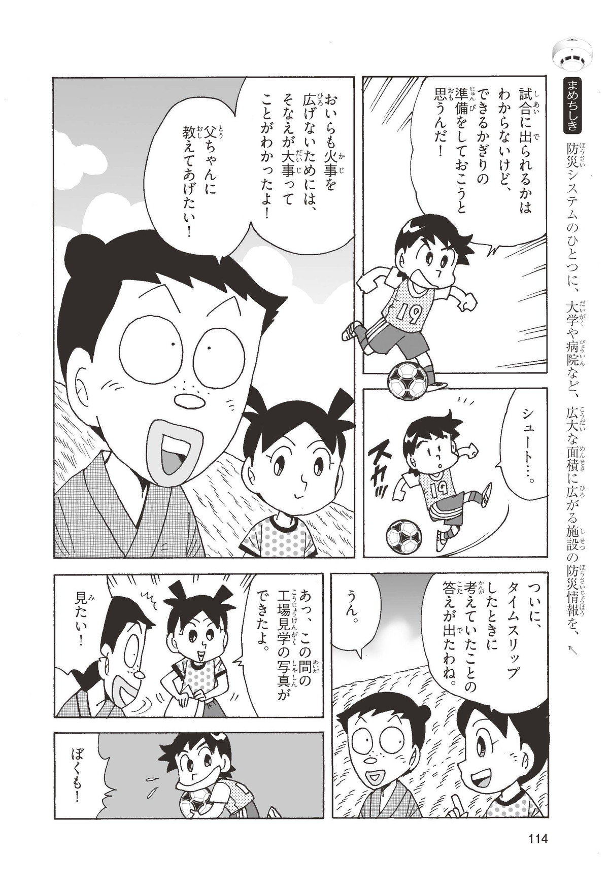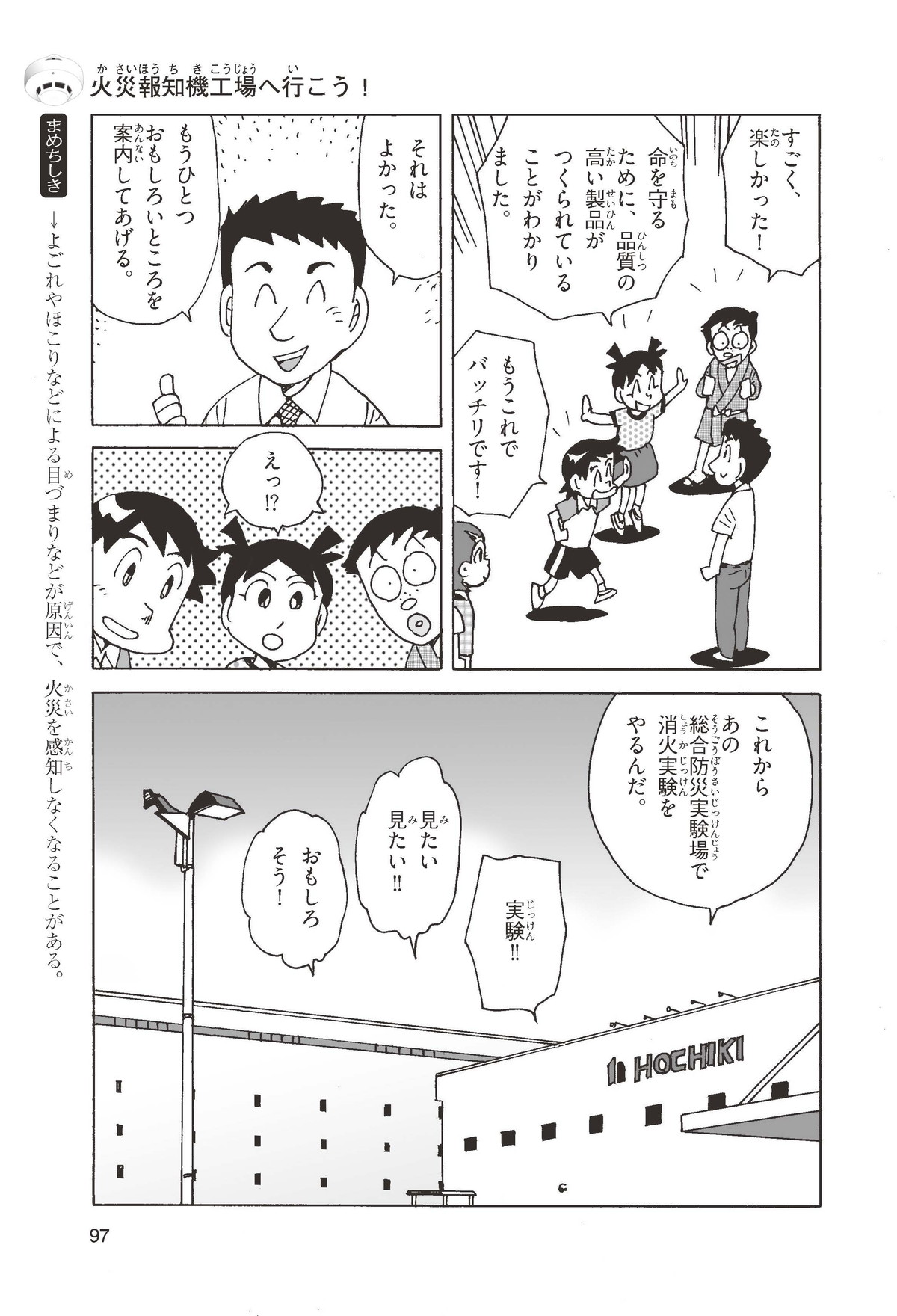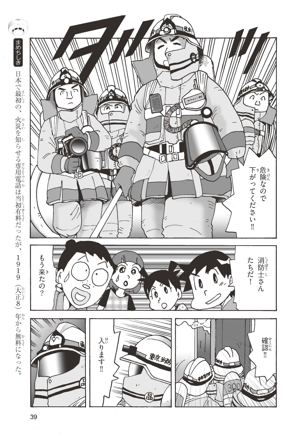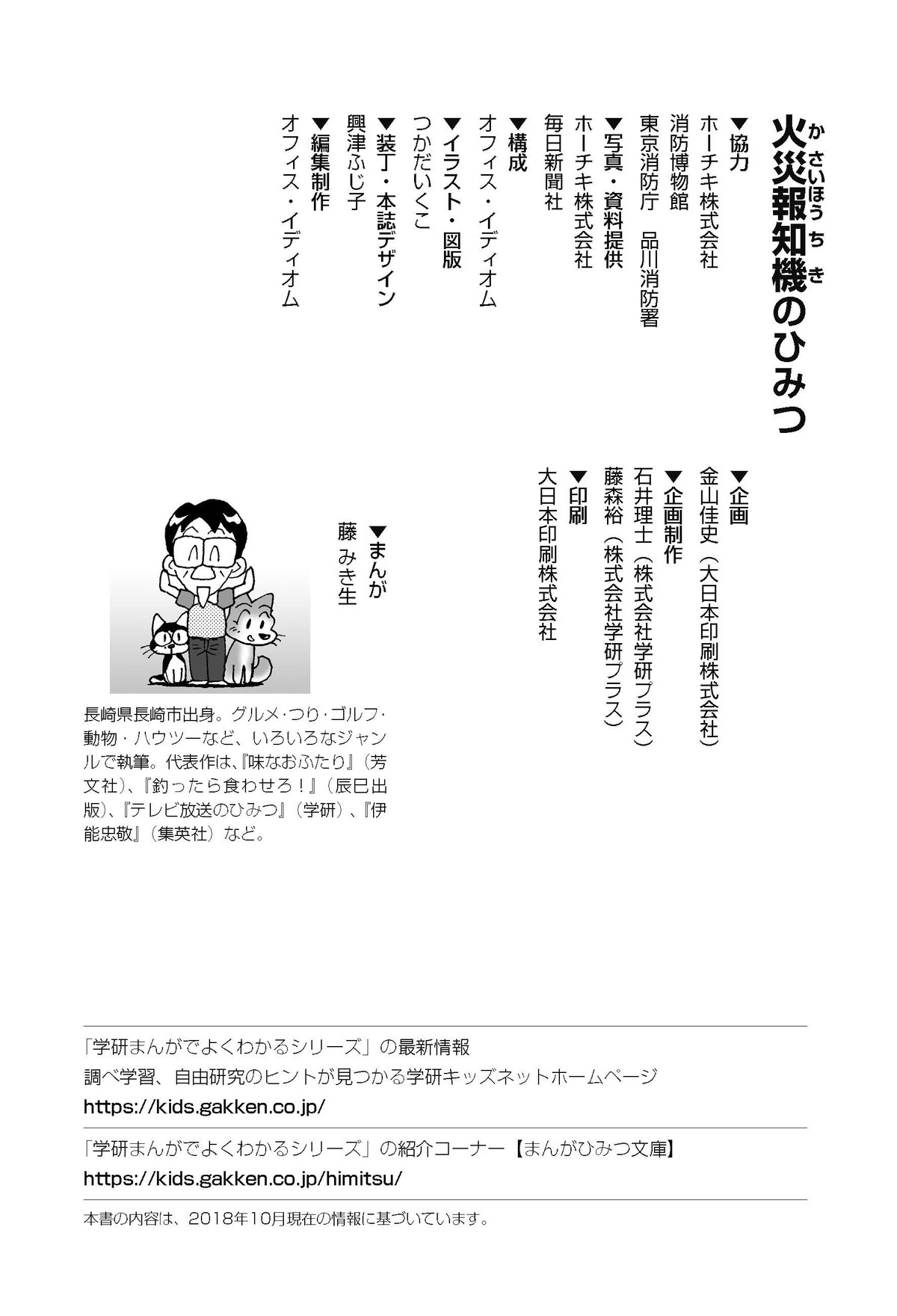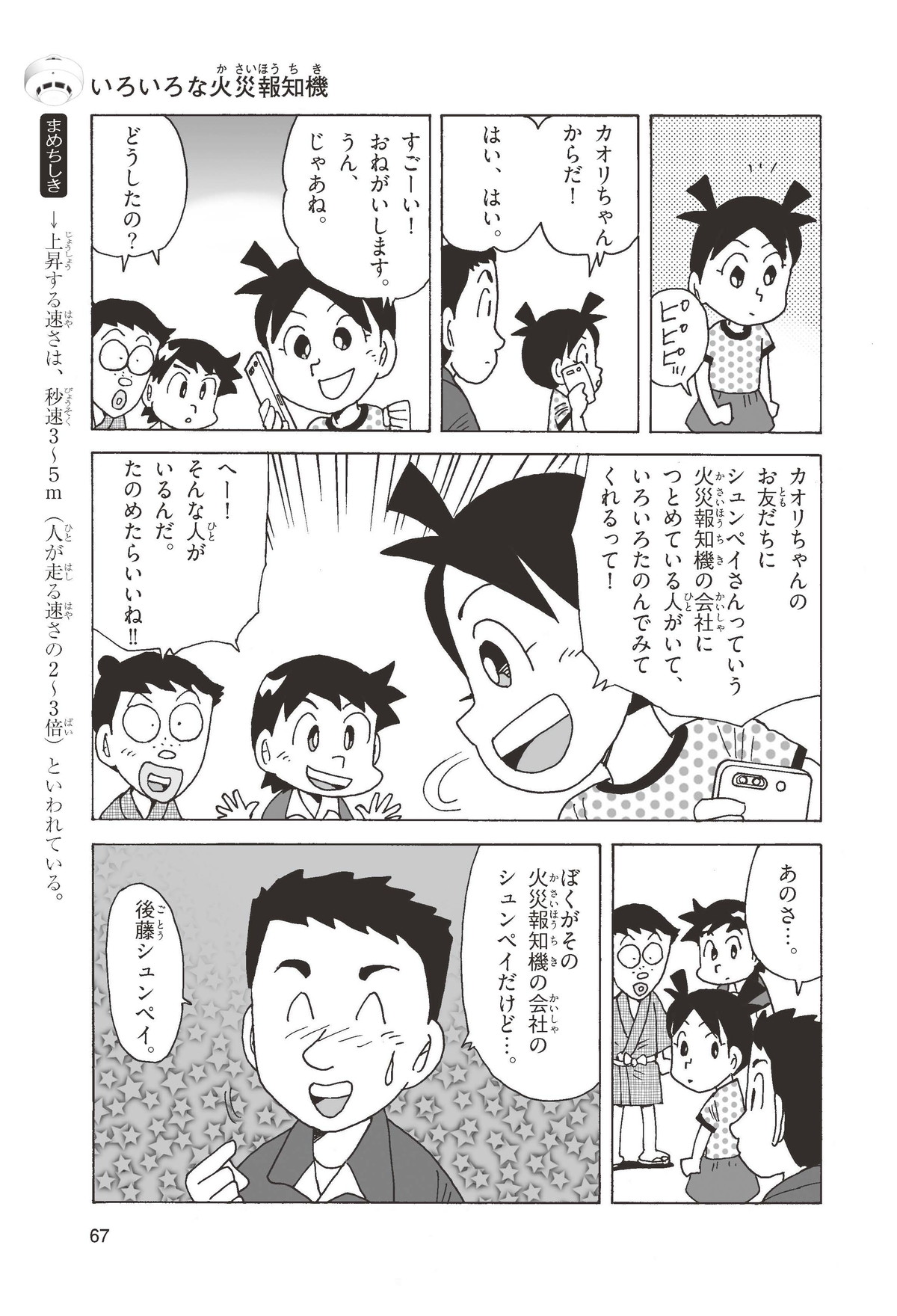 時は江戸時代、10さいの正吉(しょうきち)は、火事の火を消す火消(ひけし)である父ちゃんが心配で、火事にいち早く気づく方法を考えていたら、土手から落ちて現代にタイムスリップしちゃった!? 江戸時代に戻るため、現代で出会った小学5年生のハヤトとナナと一緒に、火事にいち早く気づくための装置……「火災報知機」についてしらべていくよ。いったいどうやって火事を見つけているのかな?