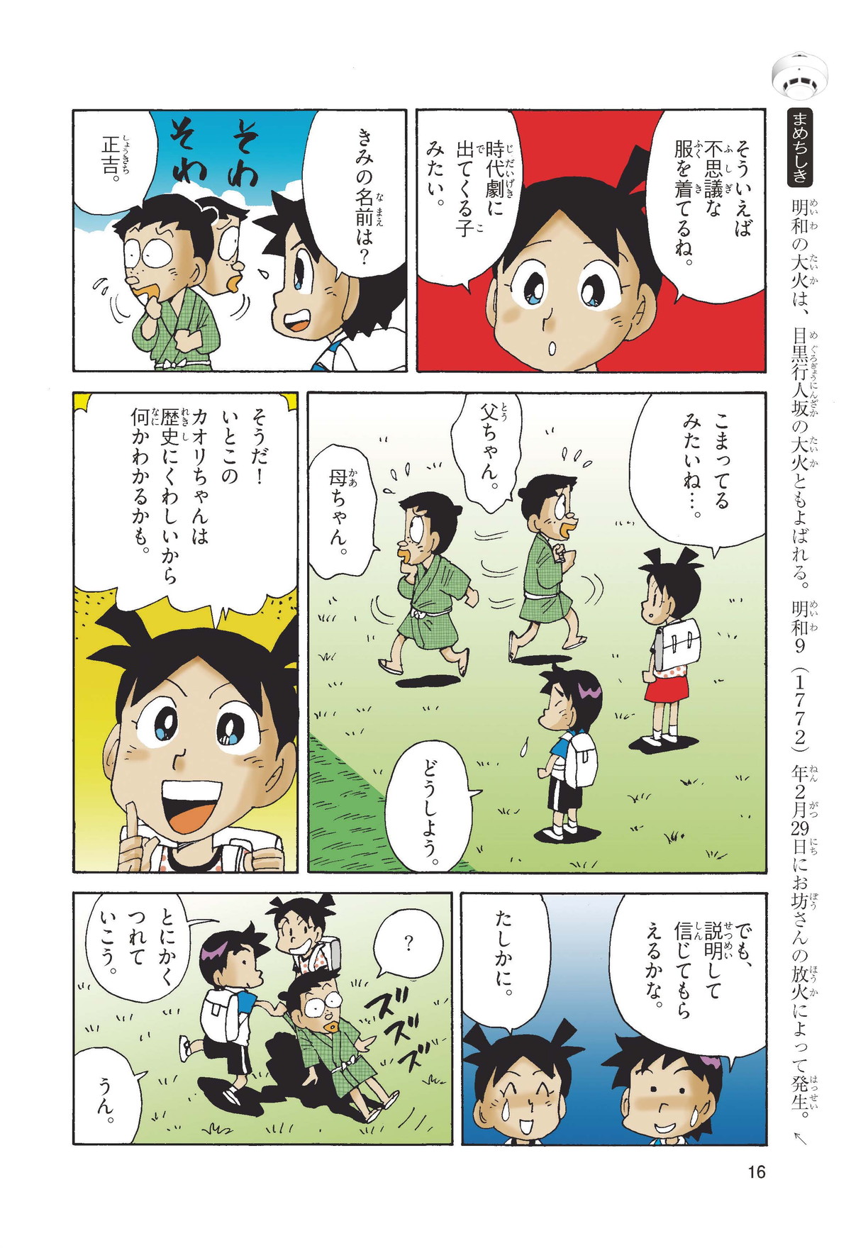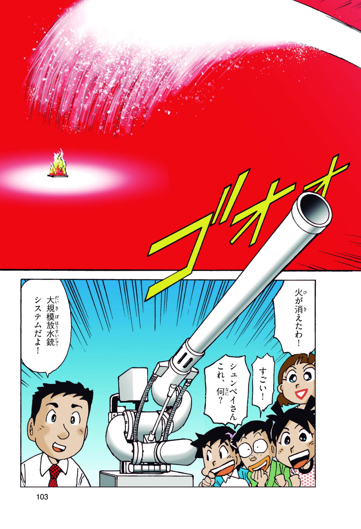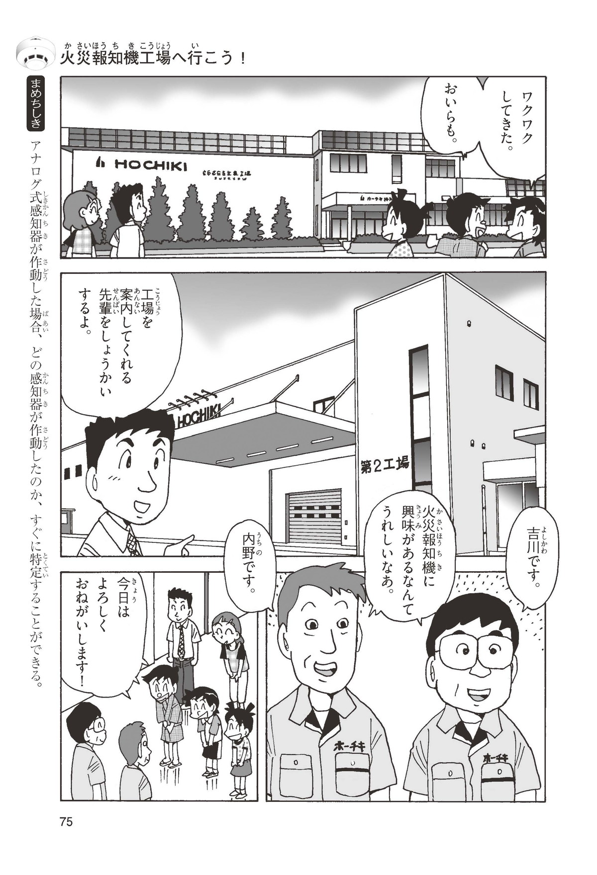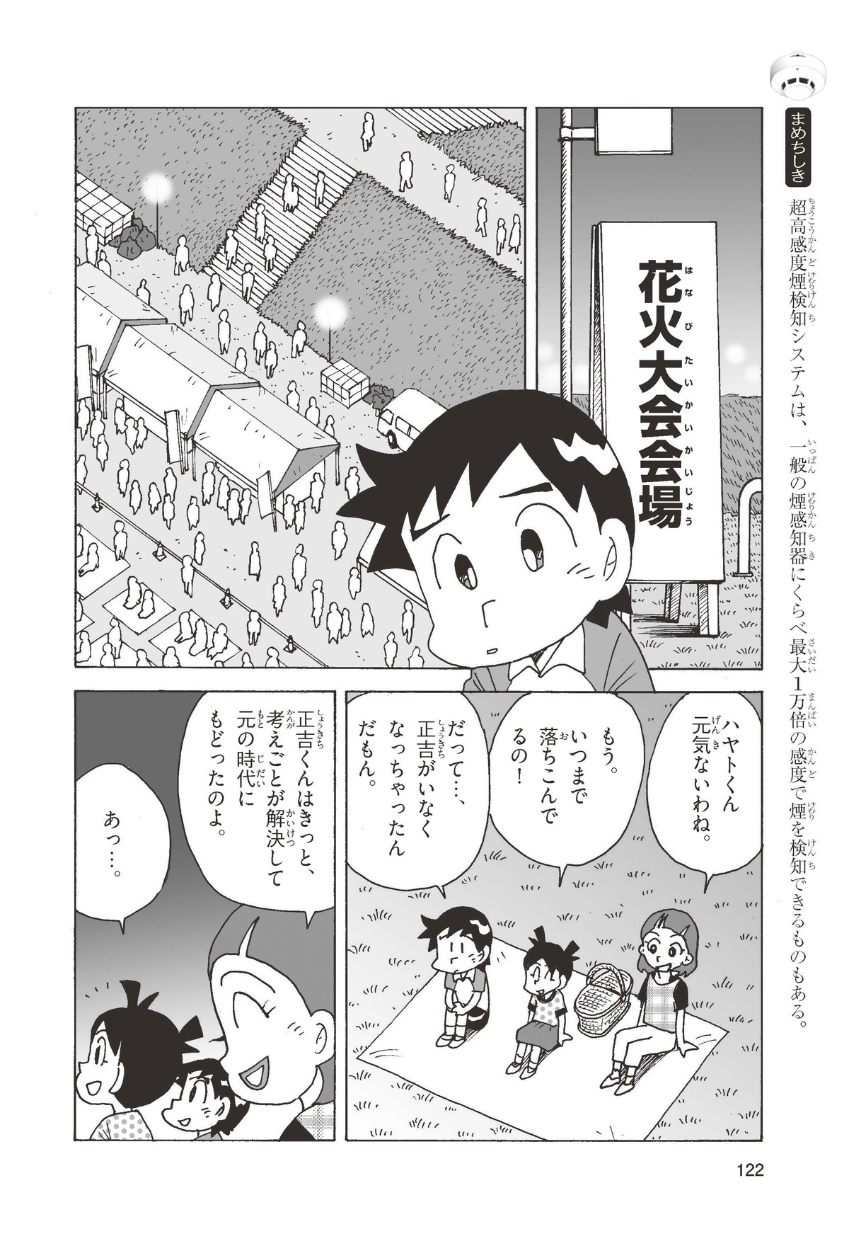 時は江戸時代、10さいの正吉(しょうきち)は、火事の火を消す火消(ひけし)である父ちゃんが心配で、火事にいち早く気づく方法を考えていたら、土手から落ちて現代にタイムスリップしちゃった!? 江戸時代に戻るため、現代で出会った小学5年生のハヤトとナナと一緒に、火事にいち早く気づくための装置……「火災報知機」についてしらべていくよ。いったいどうやって火事を見つけているのかな?