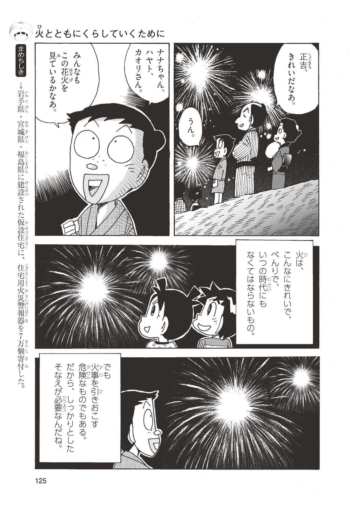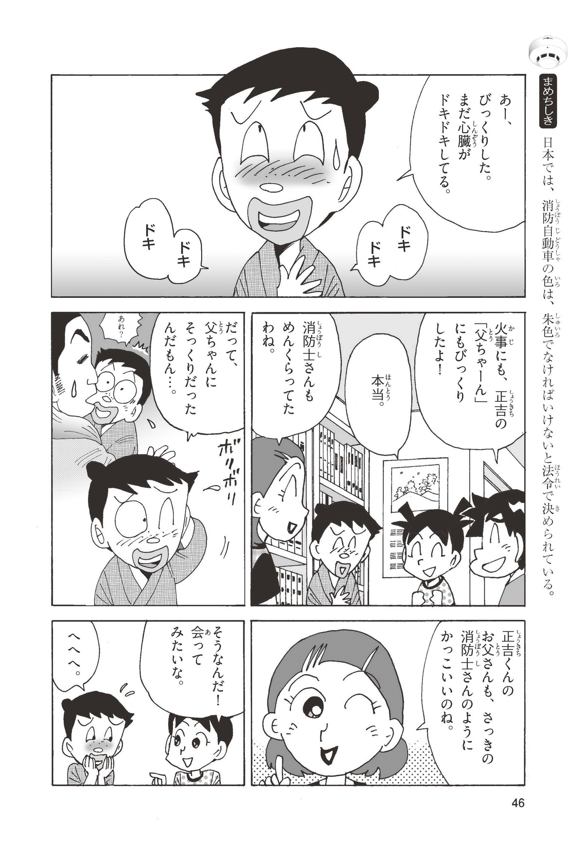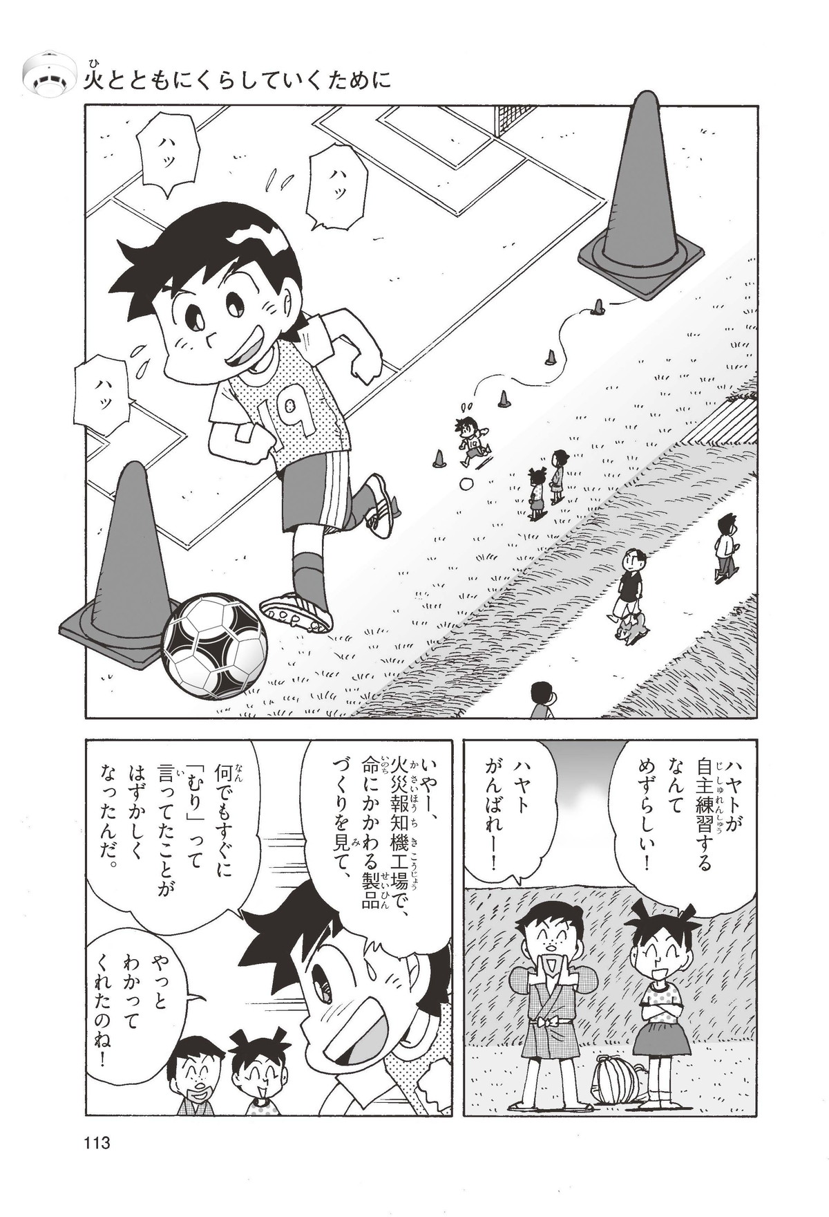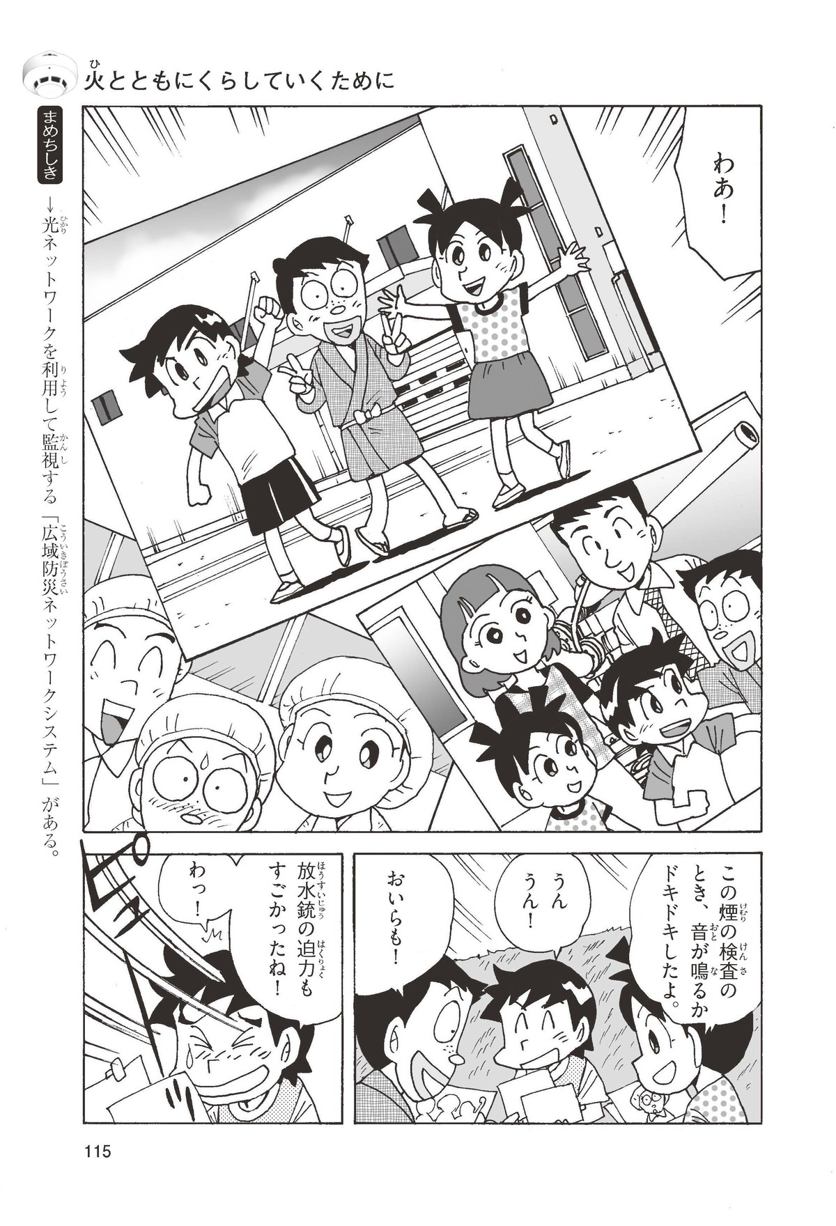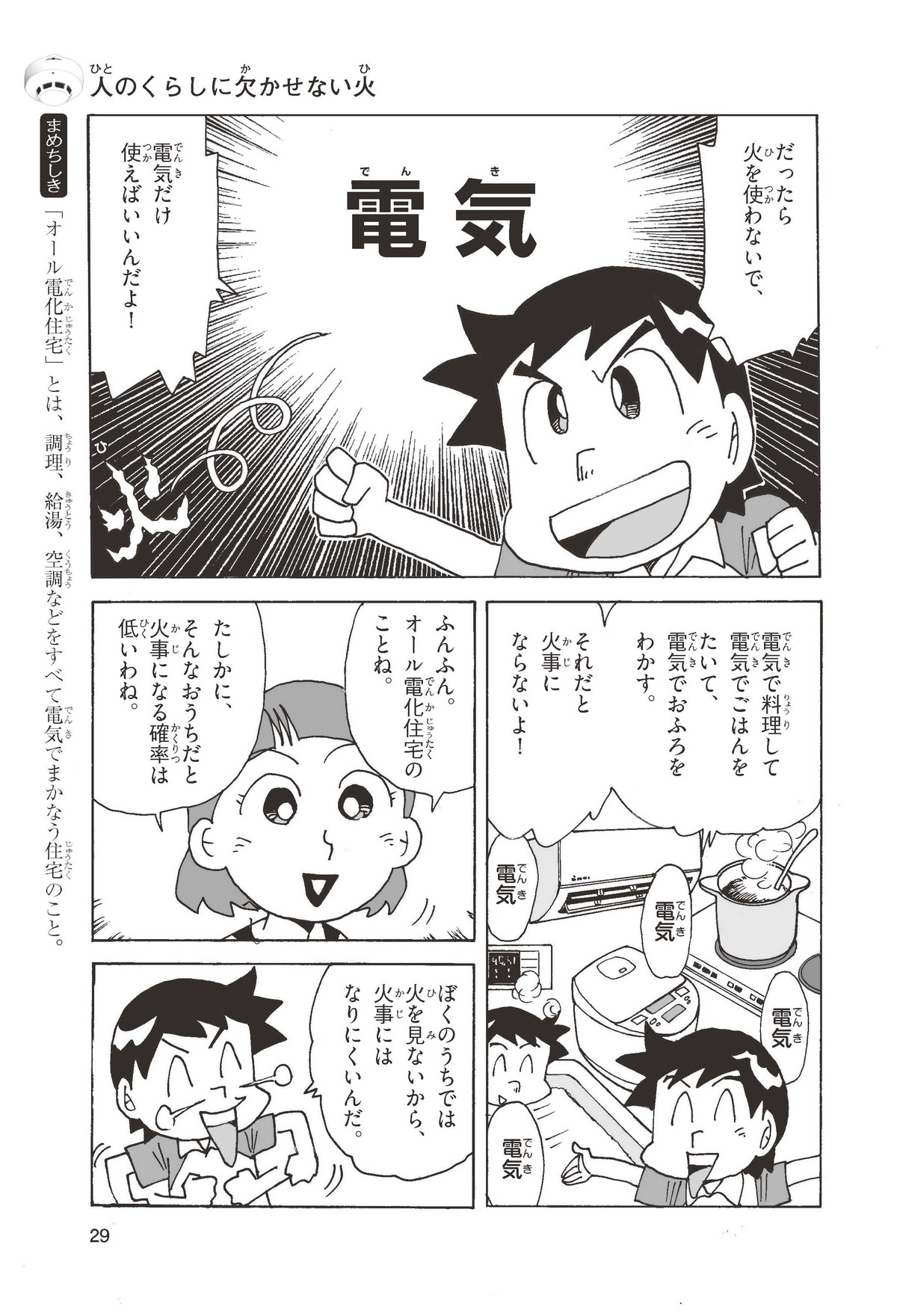 時は江戸時代、10さいの正吉(しょうきち)は、火事の火を消す火消(ひけし)である父ちゃんが心配で、火事にいち早く気づく方法を考えていたら、土手から落ちて現代にタイムスリップしちゃった!? 江戸時代に戻るため、現代で出会った小学5年生のハヤトとナナと一緒に、火事にいち早く気づくための装置……「火災報知機」についてしらべていくよ。いったいどうやって火事を見つけているのかな?