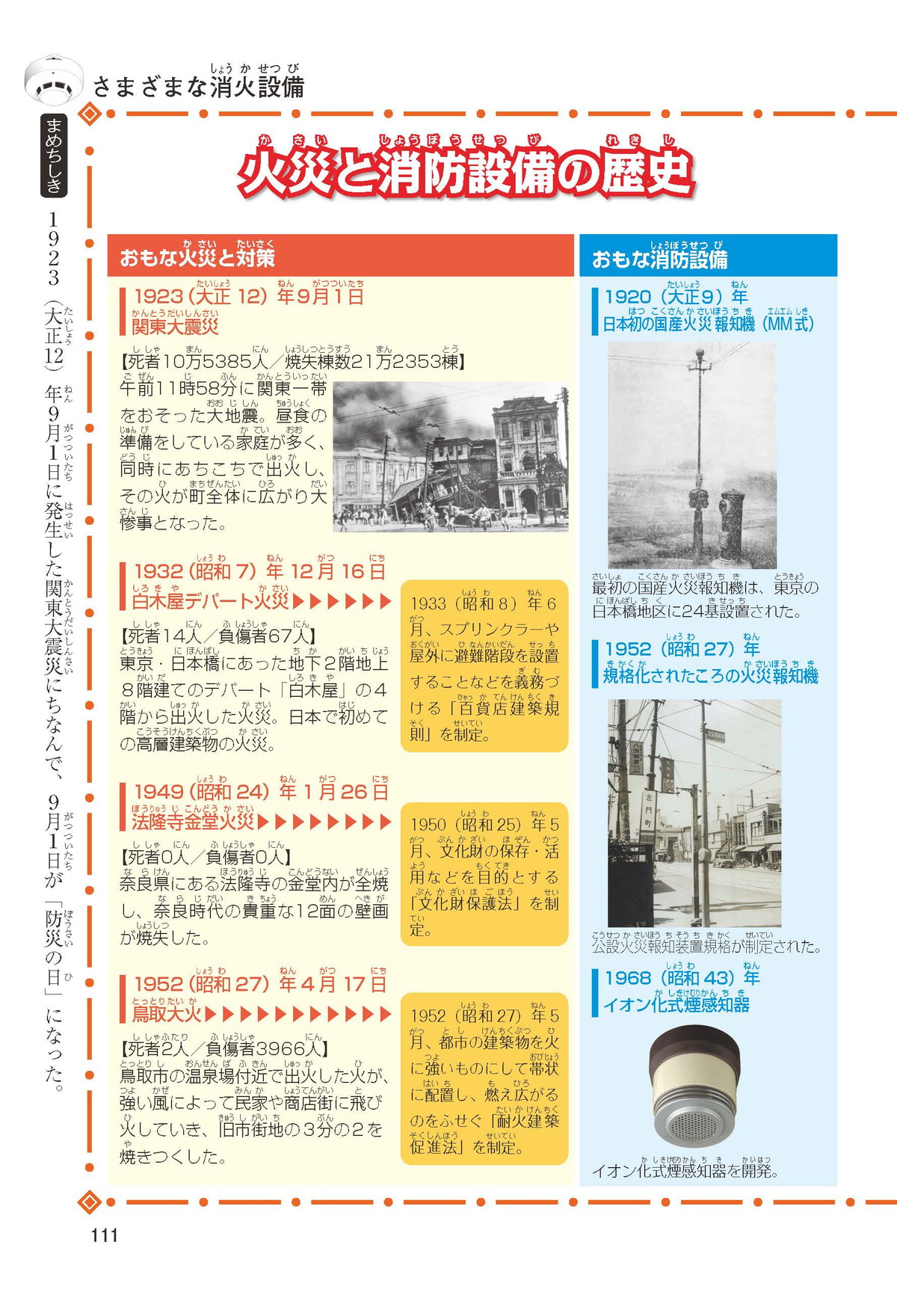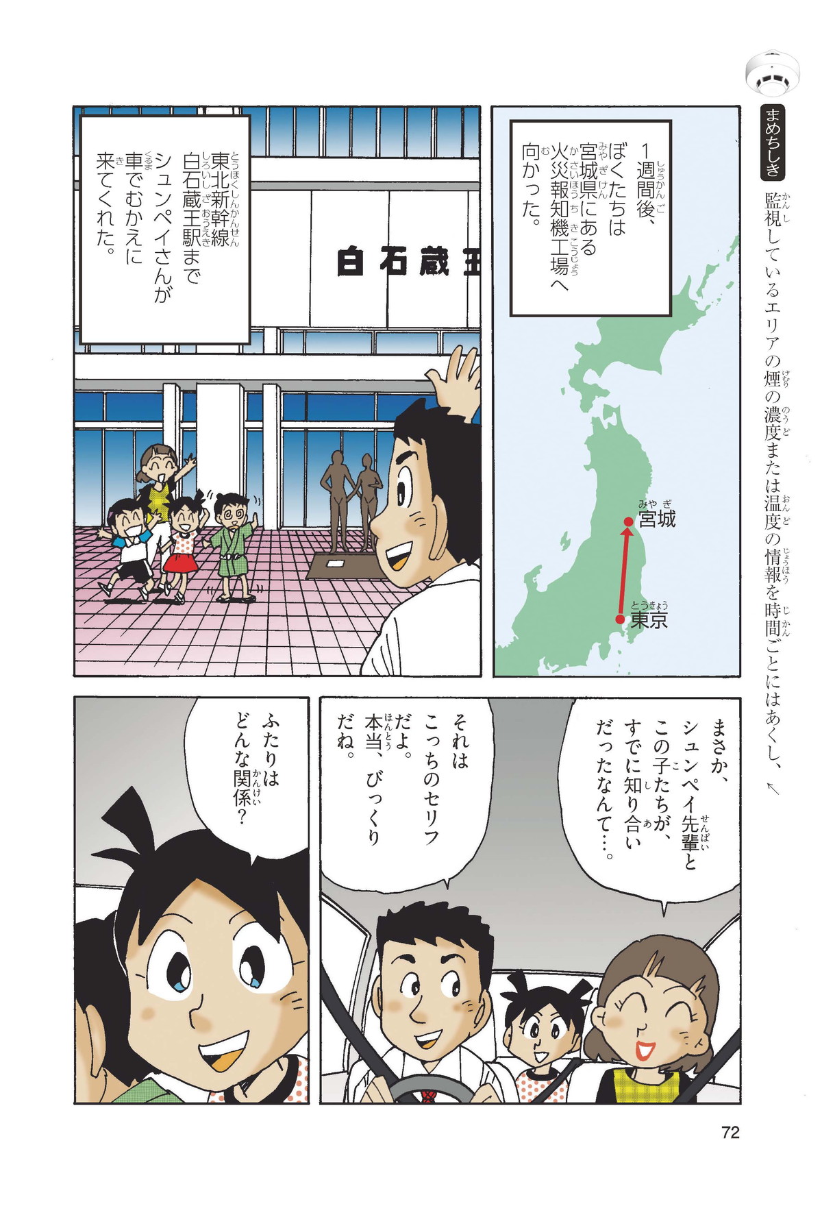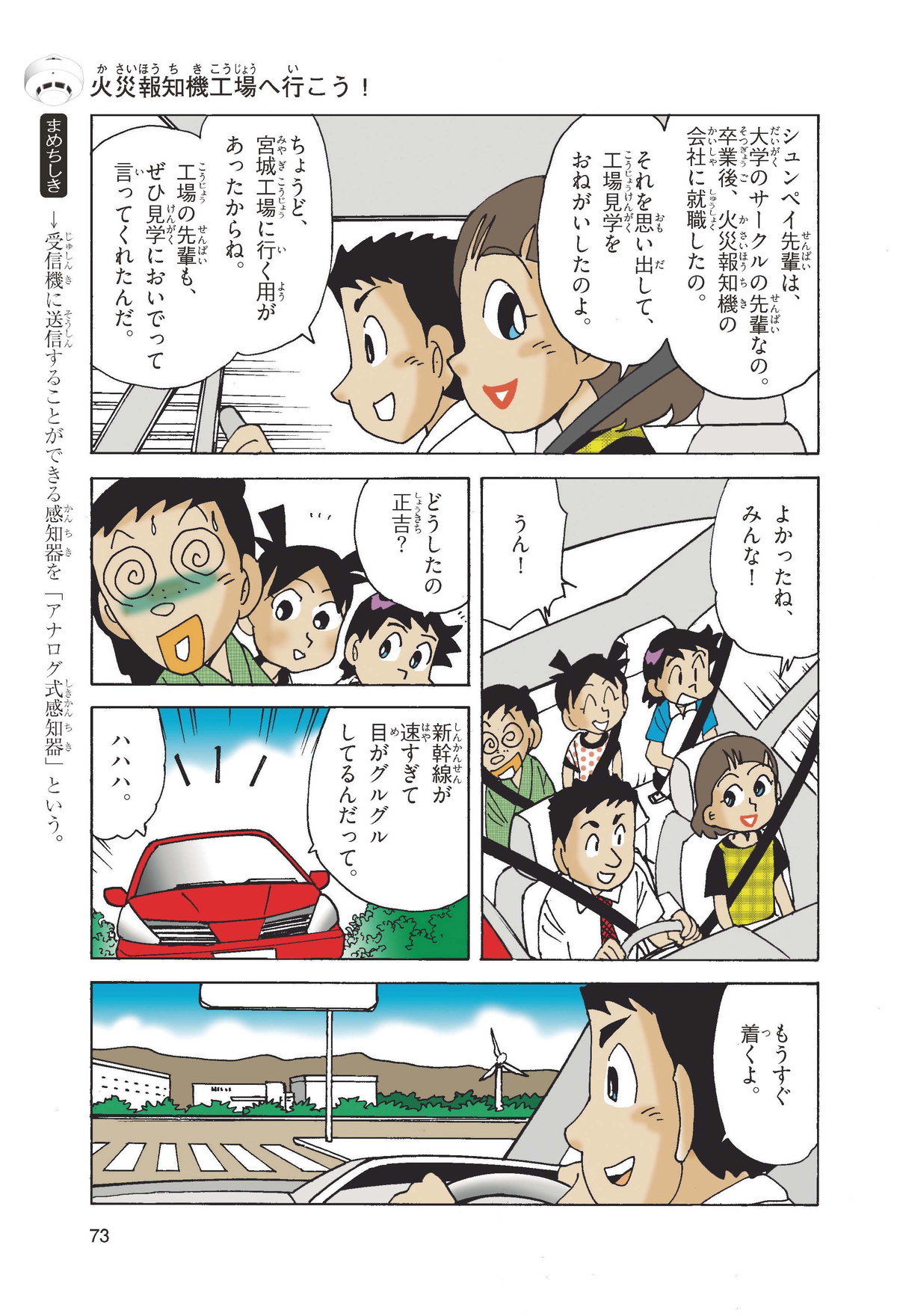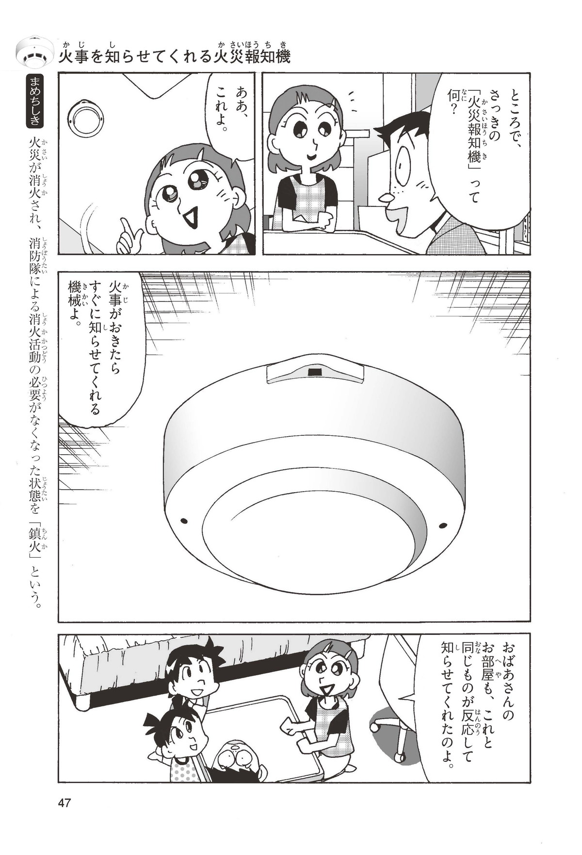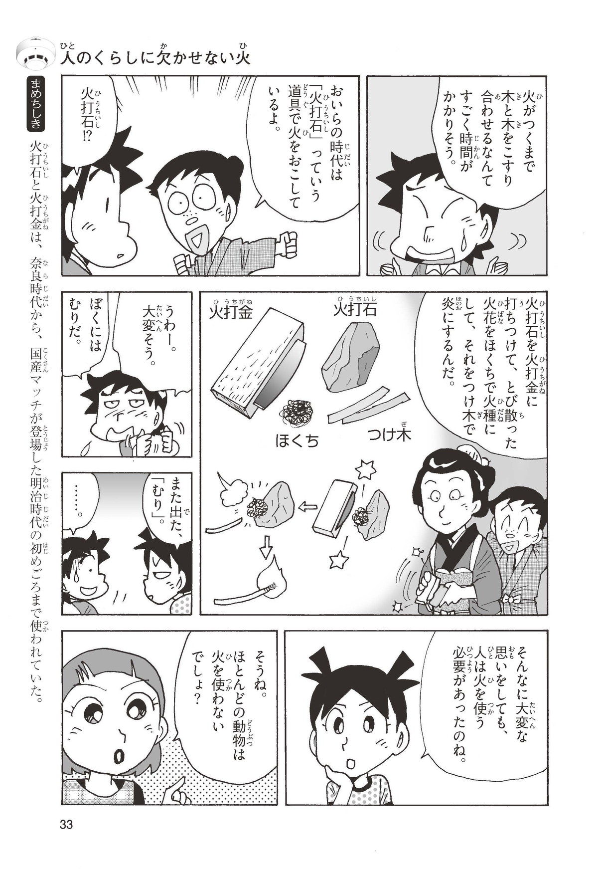 時は江戸時代、10さいの正吉(しょうきち)は、火事の火を消す火消(ひけし)である父ちゃんが心配で、火事にいち早く気づく方法を考えていたら、土手から落ちて現代にタイムスリップしちゃった!? 江戸時代に戻るため、現代で出会った小学5年生のハヤトとナナと一緒に、火事にいち早く気づくための装置……「火災報知機」についてしらべていくよ。いったいどうやって火事を見つけているのかな?