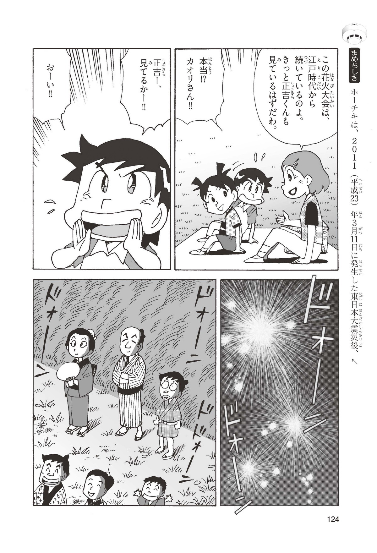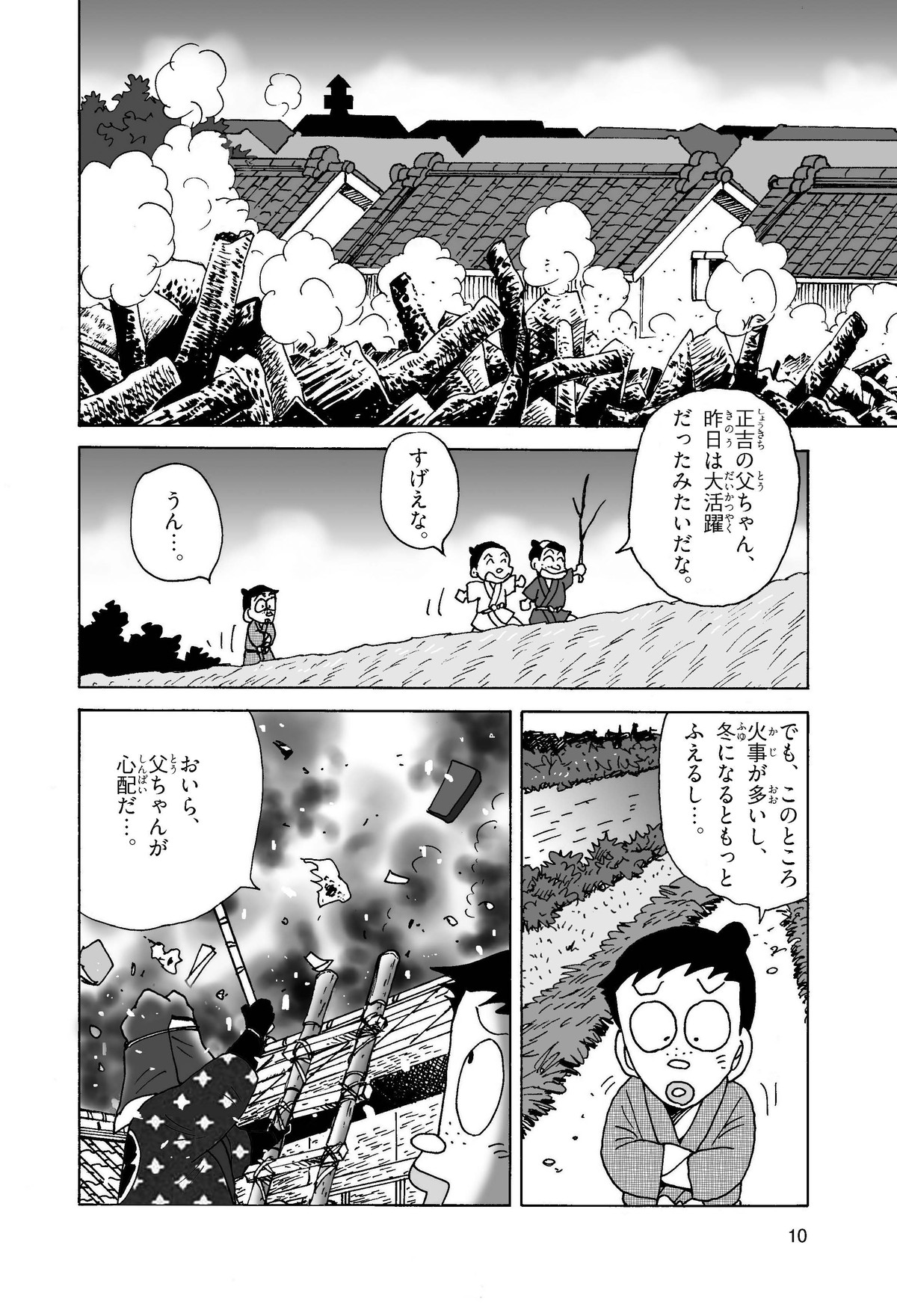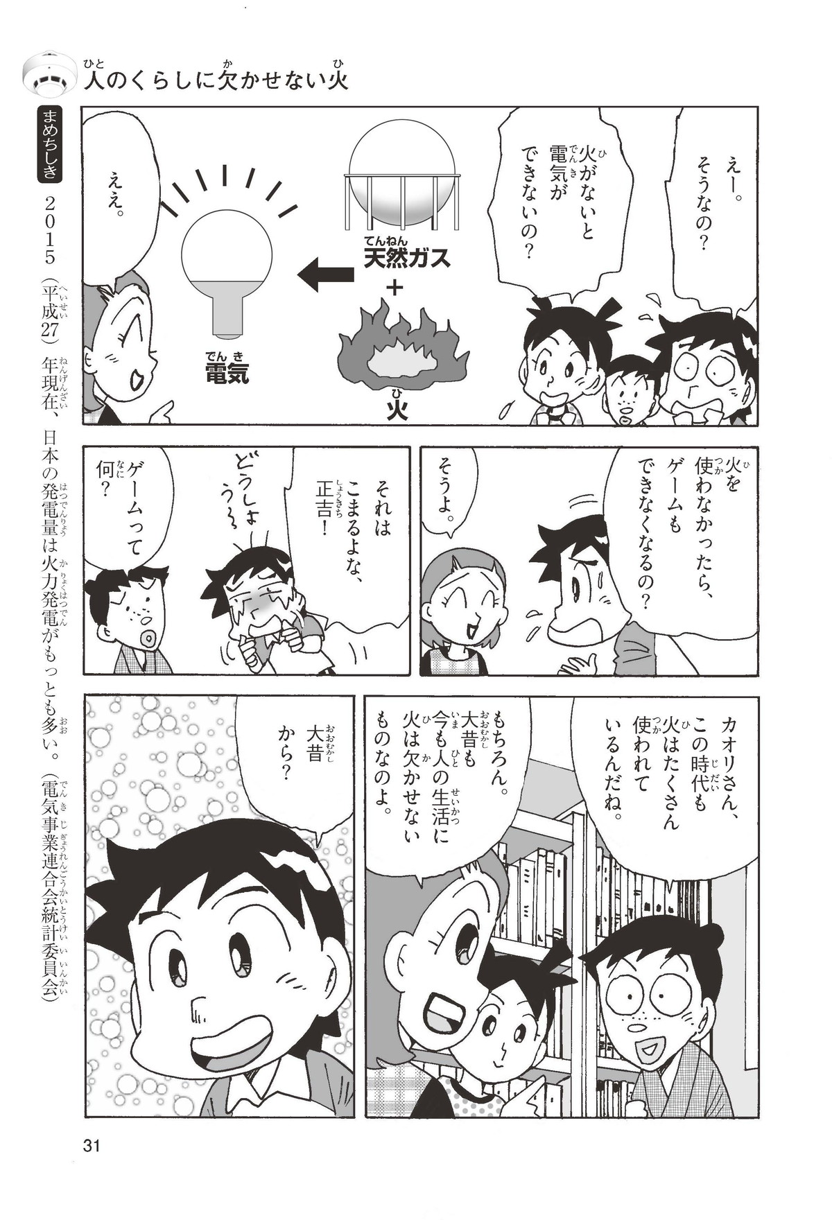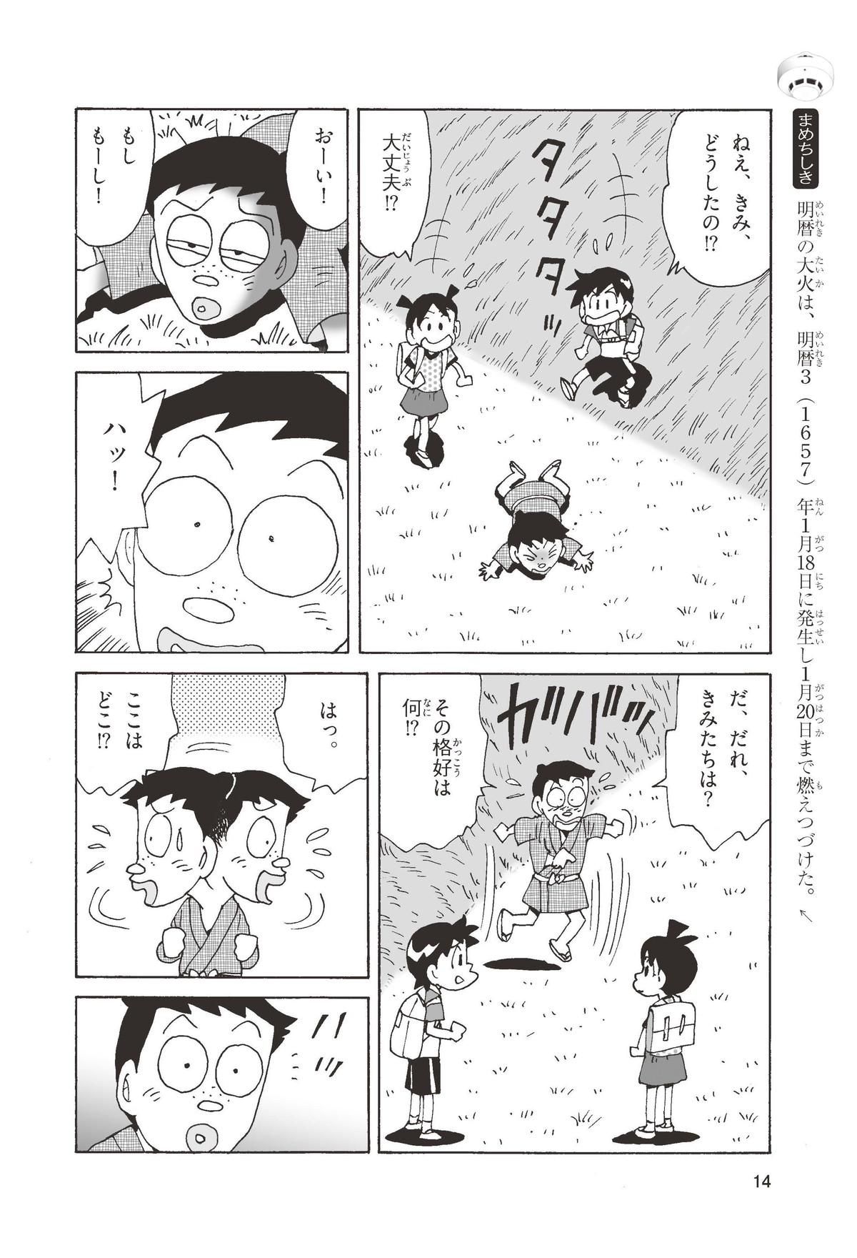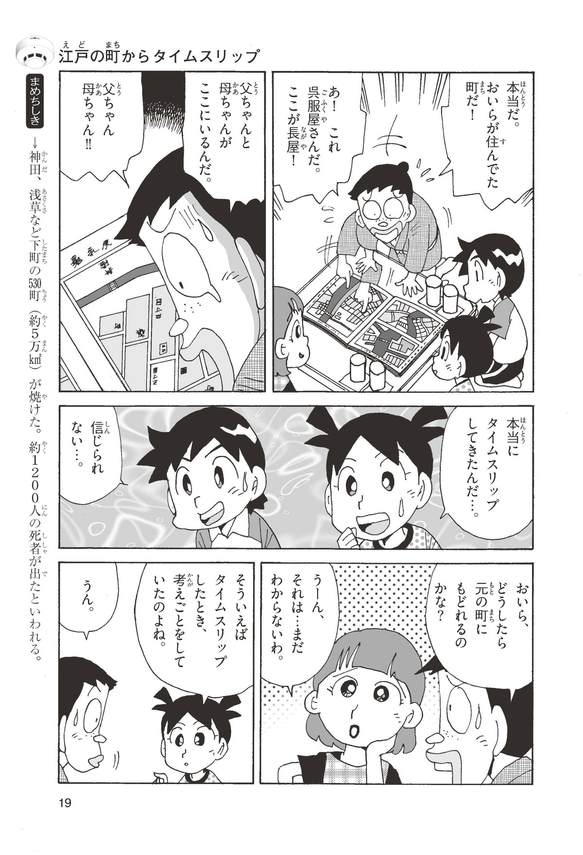 時は江戸時代、10さいの正吉(しょうきち)は、火事の火を消す火消(ひけし)である父ちゃんが心配で、火事にいち早く気づく方法を考えていたら、土手から落ちて現代にタイムスリップしちゃった!? 江戸時代に戻るため、現代で出会った小学5年生のハヤトとナナと一緒に、火事にいち早く気づくための装置……「火災報知機」についてしらべていくよ。いったいどうやって火事を見つけているのかな?