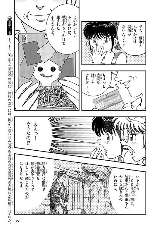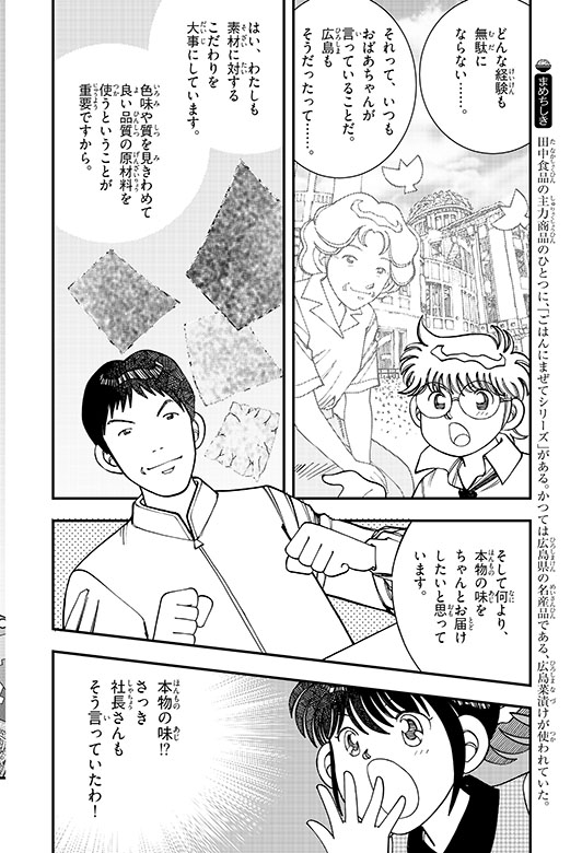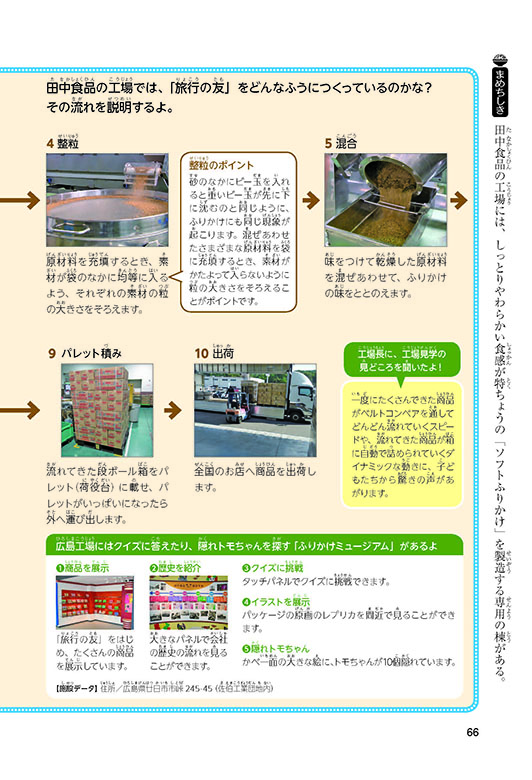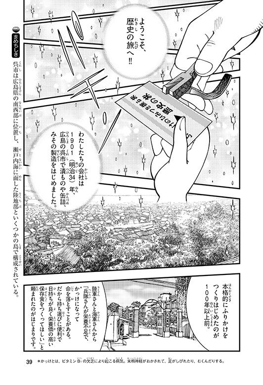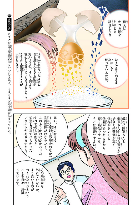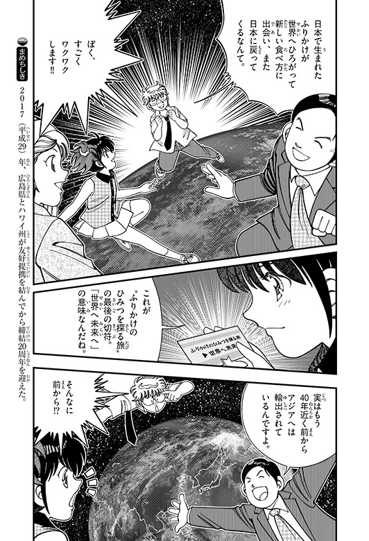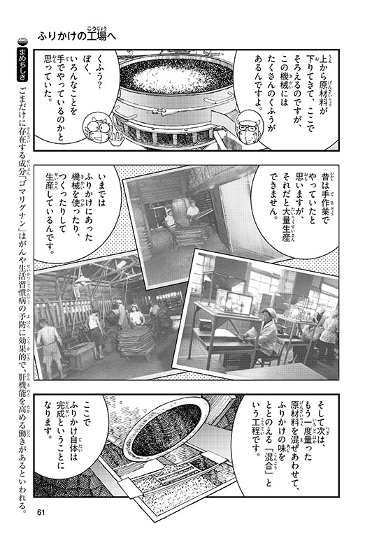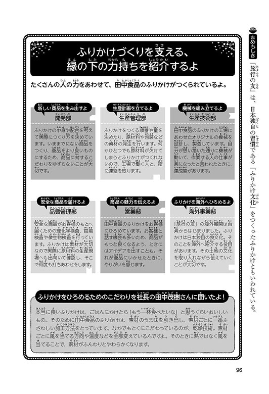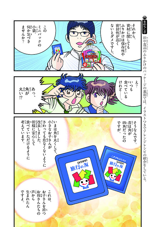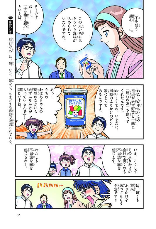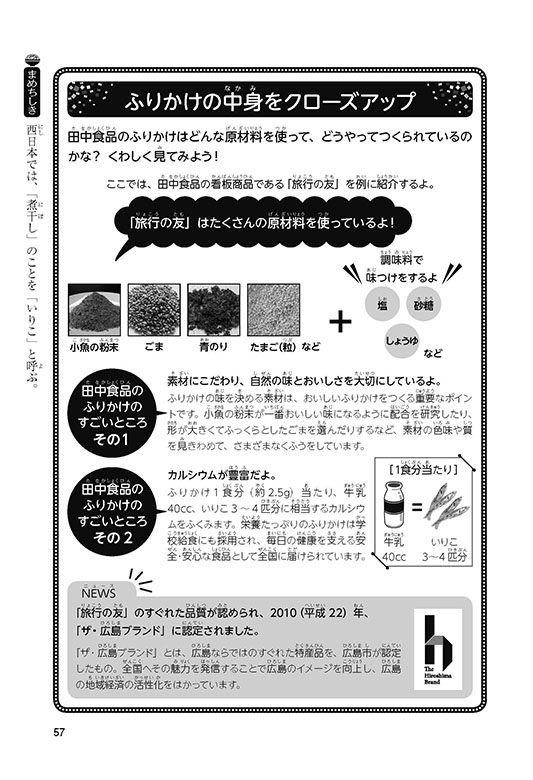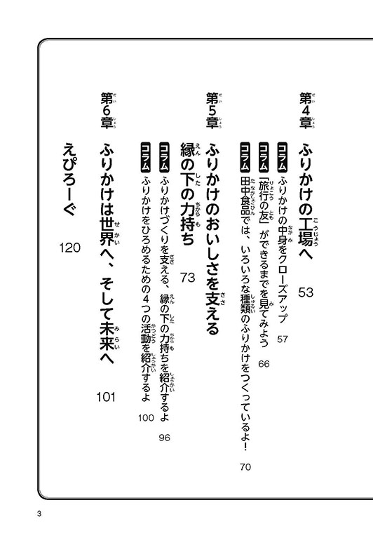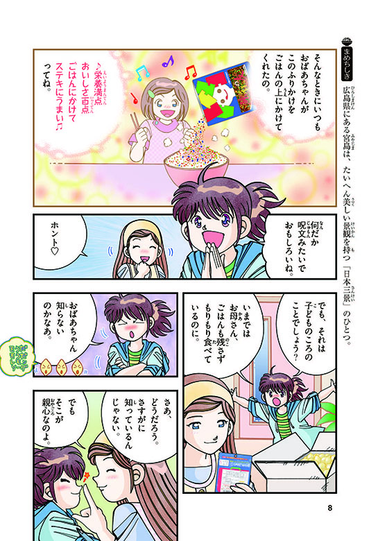 広島のおばあちゃんからの荷物にいつも入っている「ふりかけ」が気になる、小学5年生のナツキ。この「旅行の友」はふりかけの元祖といわれていて、パッパッとかけるだけで、ごはんがさらにおいしくなるよ。自然の素材を使っていて栄養価も高く、保存食でもあったんだって。いったいどうやって生まれて、どんなふうにつくられているんだろう。親戚のカケルといっしょに、ひみつをさぐりにいくよ。