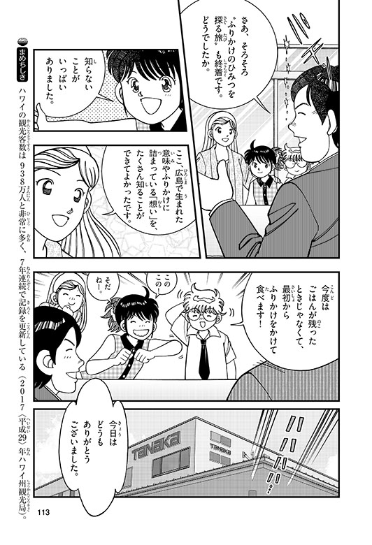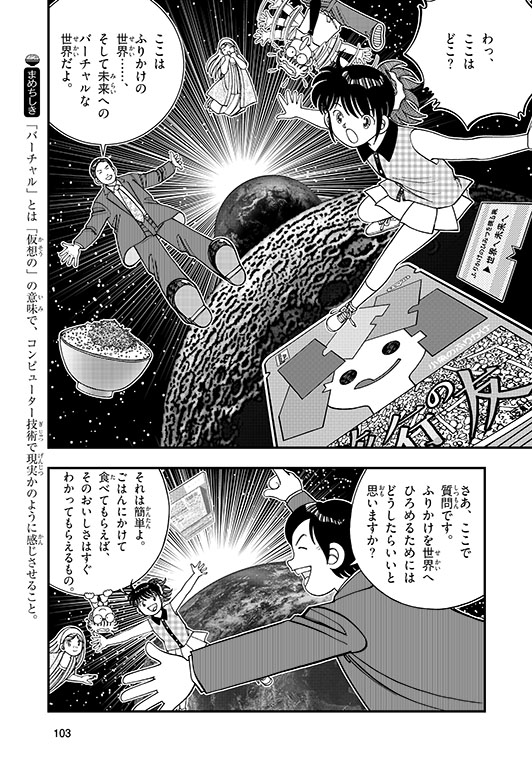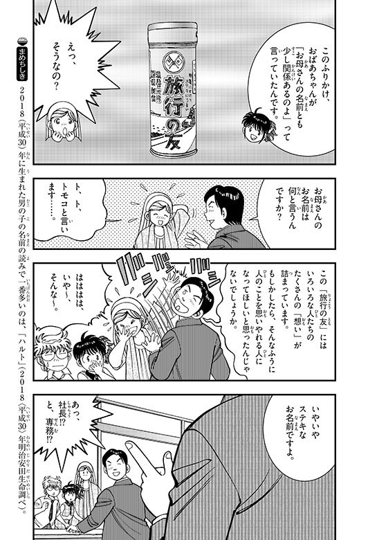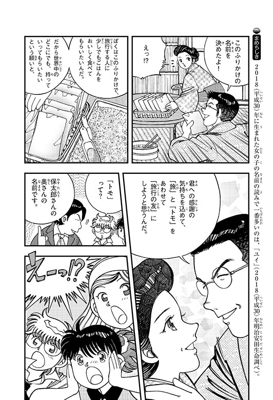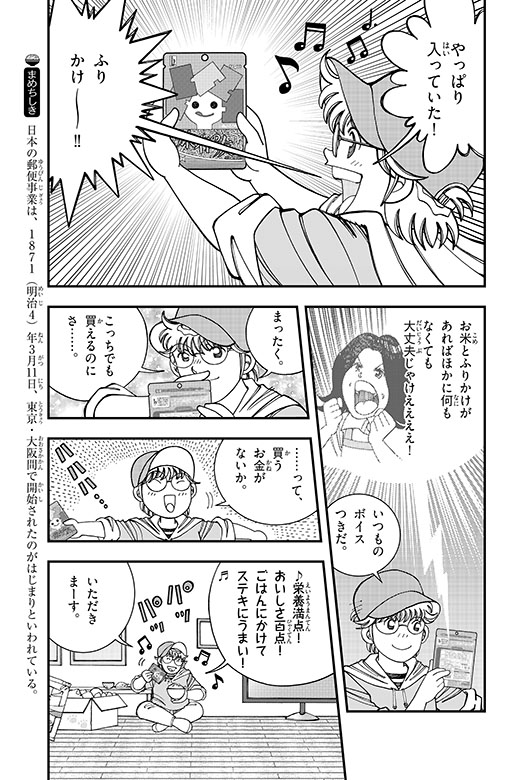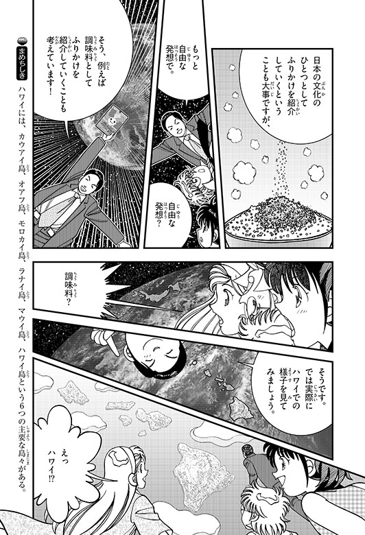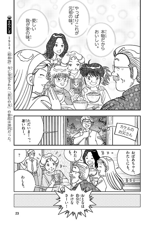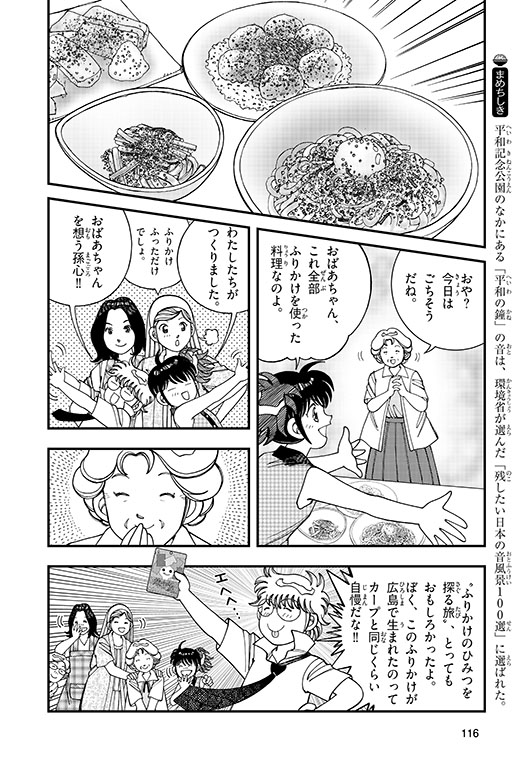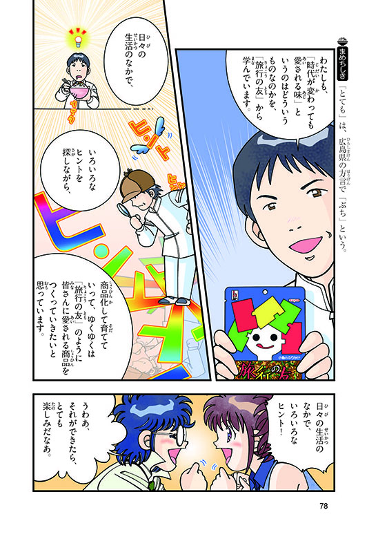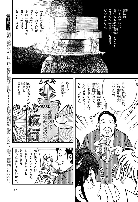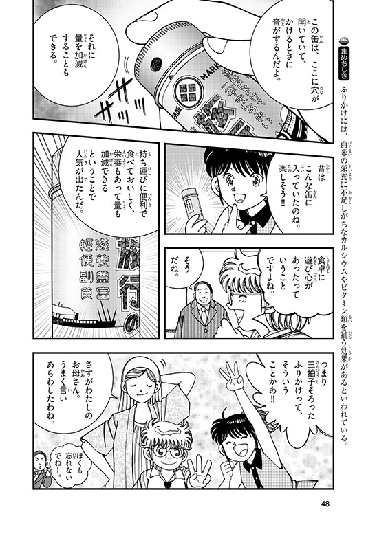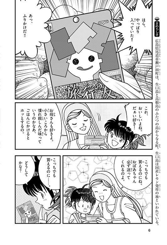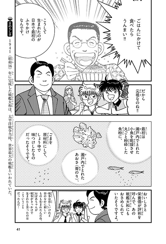 広島のおばあちゃんからの荷物にいつも入っている「ふりかけ」が気になる、小学5年生のナツキ。この「旅行の友」はふりかけの元祖といわれていて、パッパッとかけるだけで、ごはんがさらにおいしくなるよ。自然の素材を使っていて栄養価も高く、保存食でもあったんだって。いったいどうやって生まれて、どんなふうにつくられているんだろう。親戚のカケルといっしょに、ひみつをさぐりにいくよ。