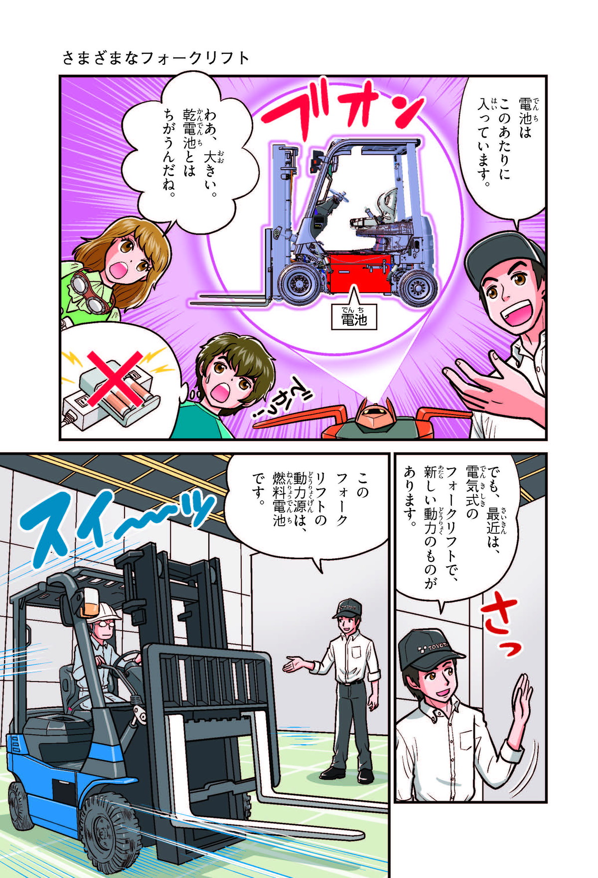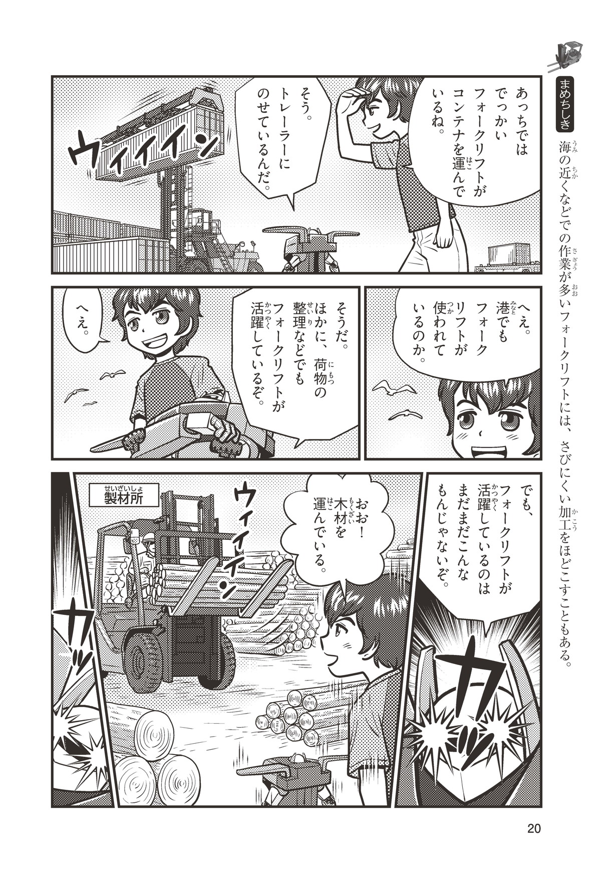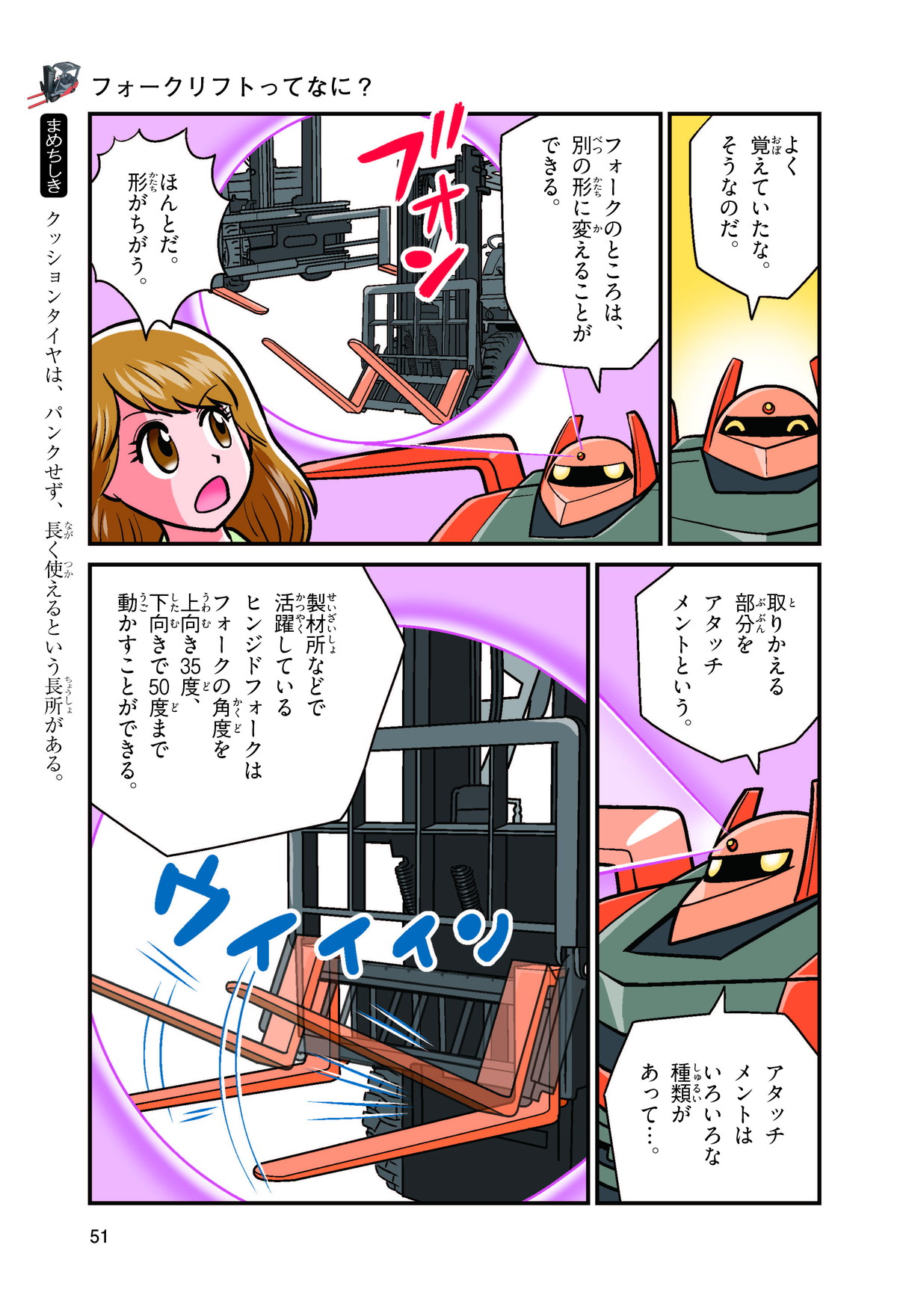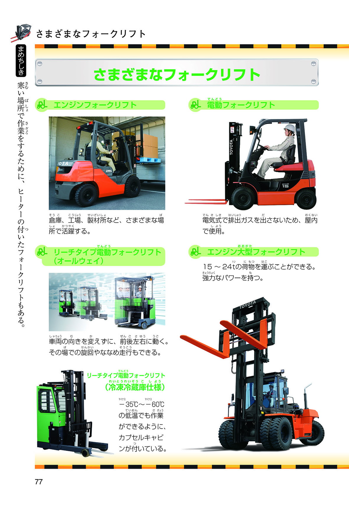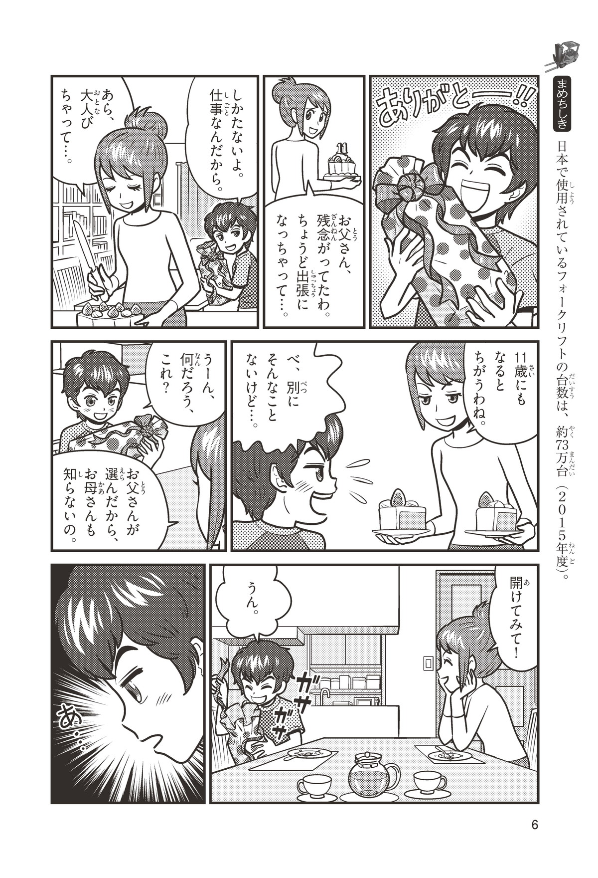 お父さんから誕生日プレゼントに「フォークリフト」のラジコンをもらった、小学5年生のケイタ。フォークリフトとは、工場や倉庫、港などで、荷物の運搬に活躍する自動車のこと。荷物を安全に効率よく運ぶために、多くの工夫がされているんだ。そんなフォークリフトのしくみや種類、最新のフォークリフトなど、たくさんのひみつを、フォークリフトの化身、クリフが教えてくれるよ。