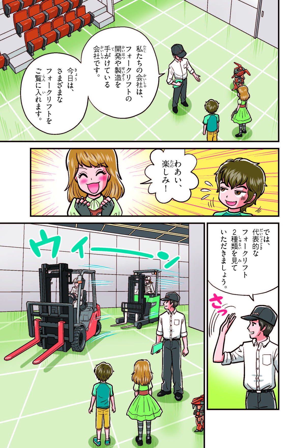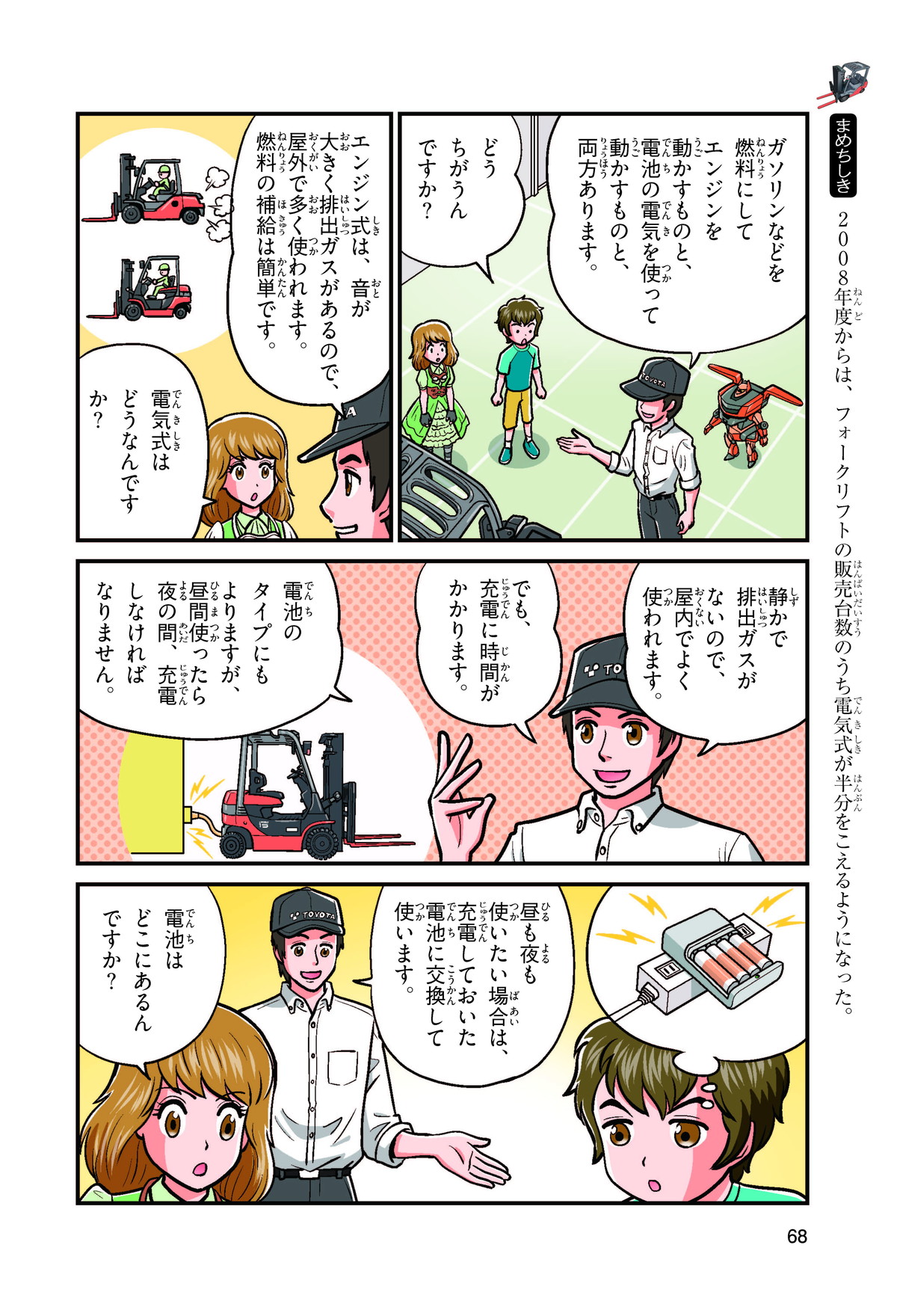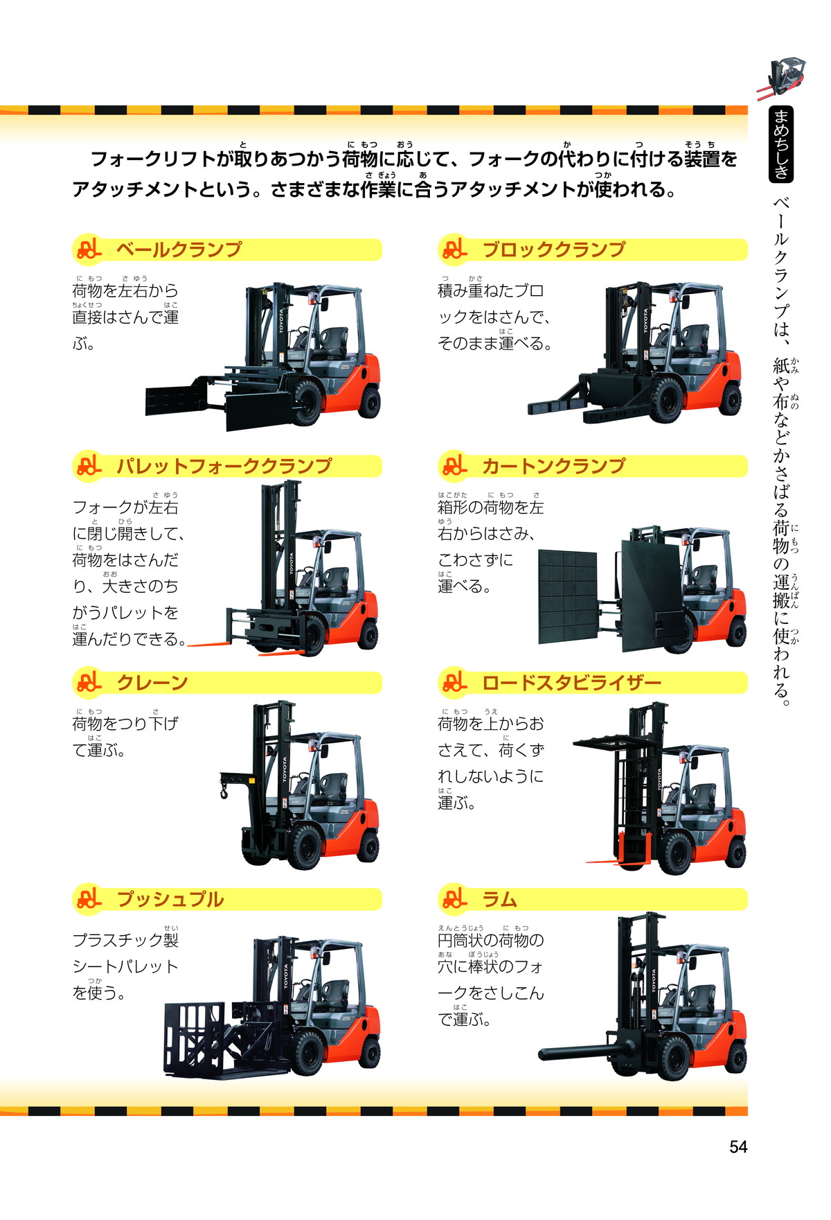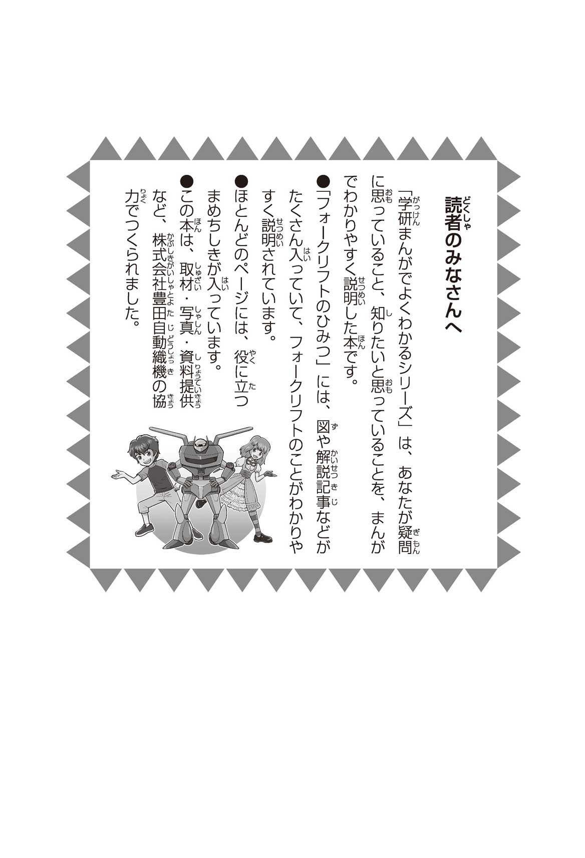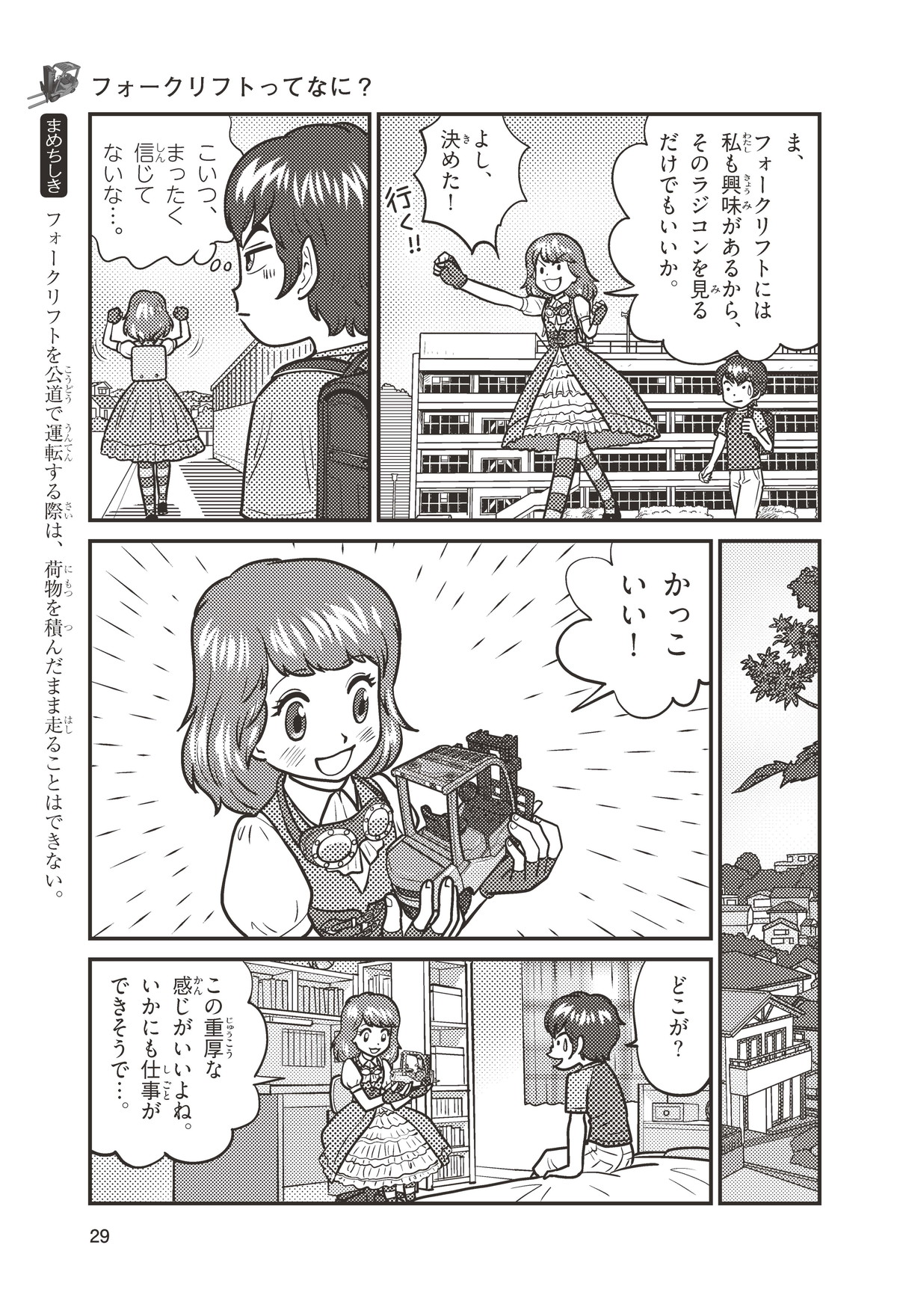 お父さんから誕生日プレゼントに「フォークリフト」のラジコンをもらった、小学5年生のケイタ。フォークリフトとは、工場や倉庫、港などで、荷物の運搬に活躍する自動車のこと。荷物を安全に効率よく運ぶために、多くの工夫がされているんだ。そんなフォークリフトのしくみや種類、最新のフォークリフトなど、たくさんのひみつを、フォークリフトの化身、クリフが教えてくれるよ。