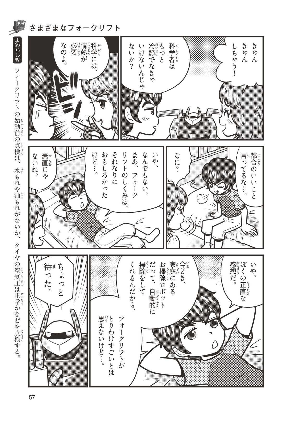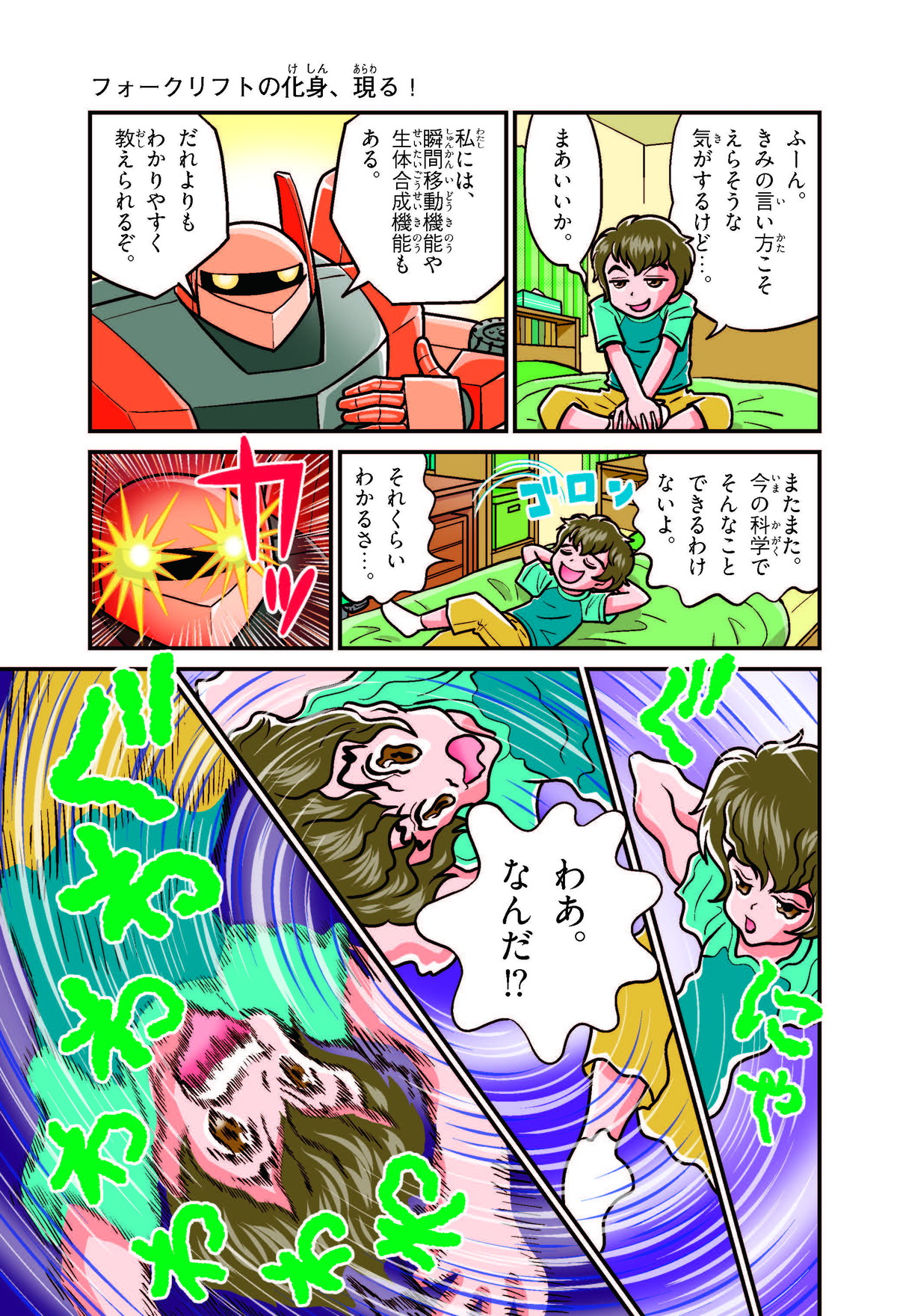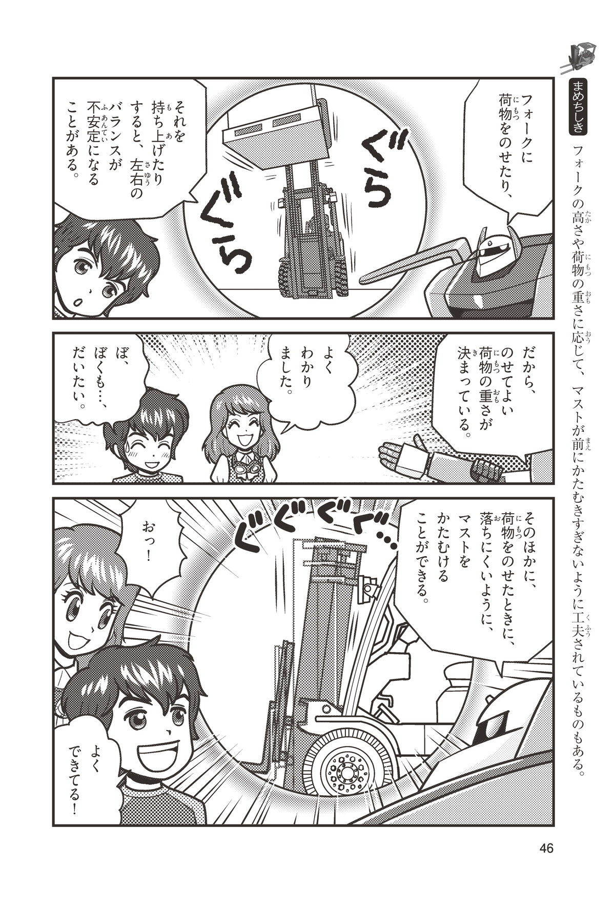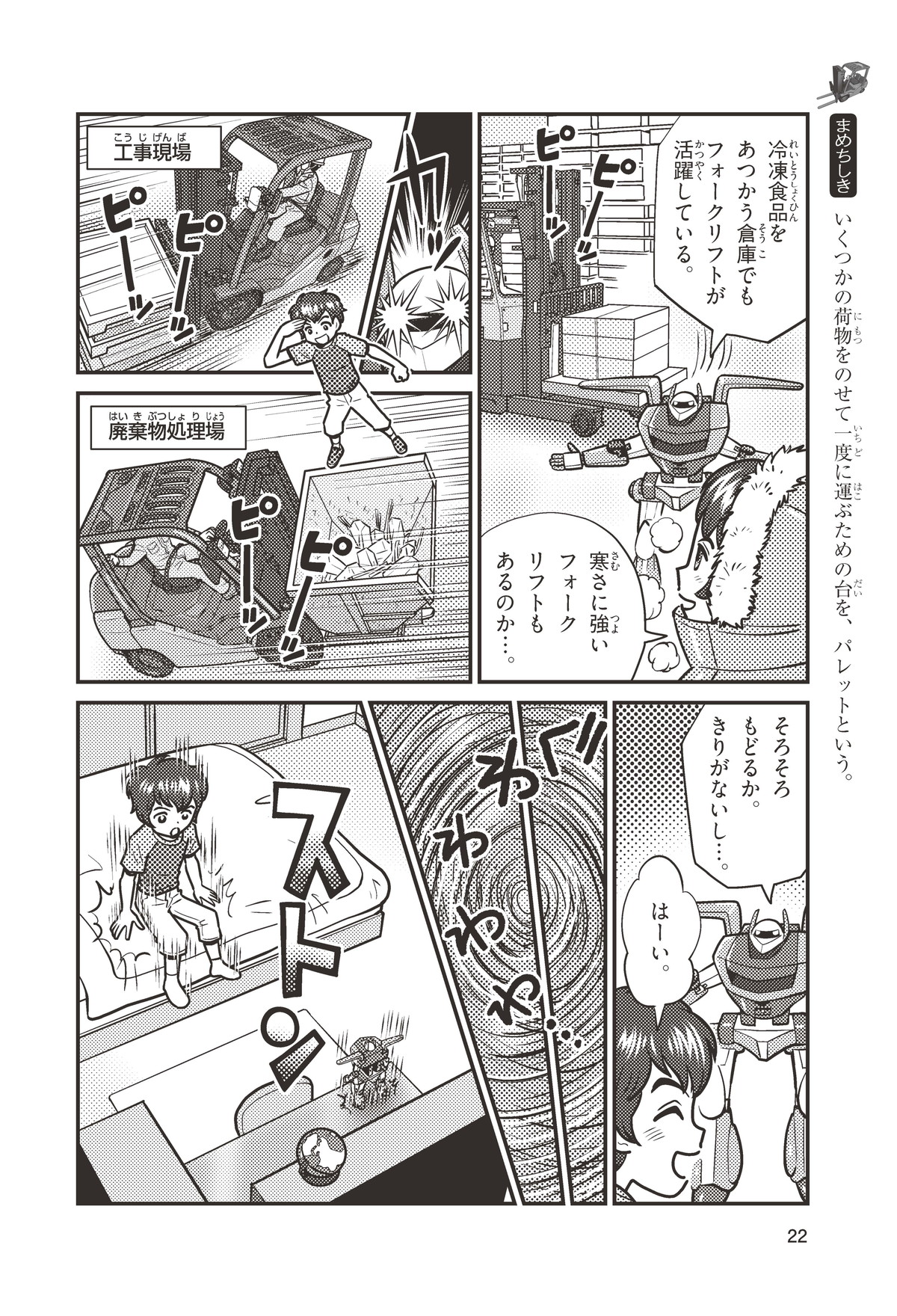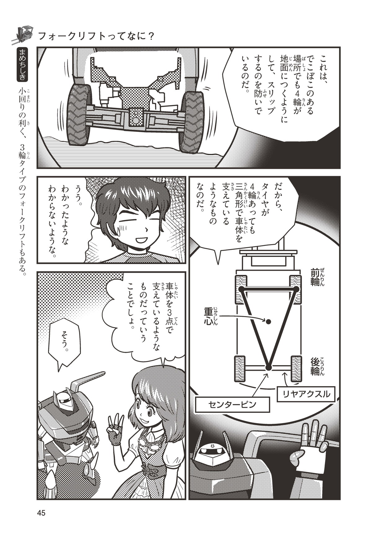 お父さんから誕生日プレゼントに「フォークリフト」のラジコンをもらった、小学5年生のケイタ。フォークリフトとは、工場や倉庫、港などで、荷物の運搬に活躍する自動車のこと。荷物を安全に効率よく運ぶために、多くの工夫がされているんだ。そんなフォークリフトのしくみや種類、最新のフォークリフトなど、たくさんのひみつを、フォークリフトの化身、クリフが教えてくれるよ。