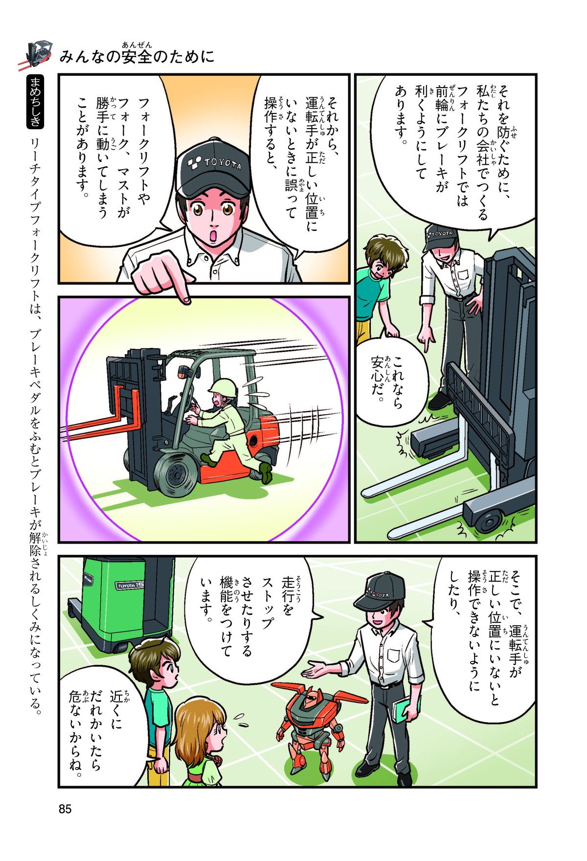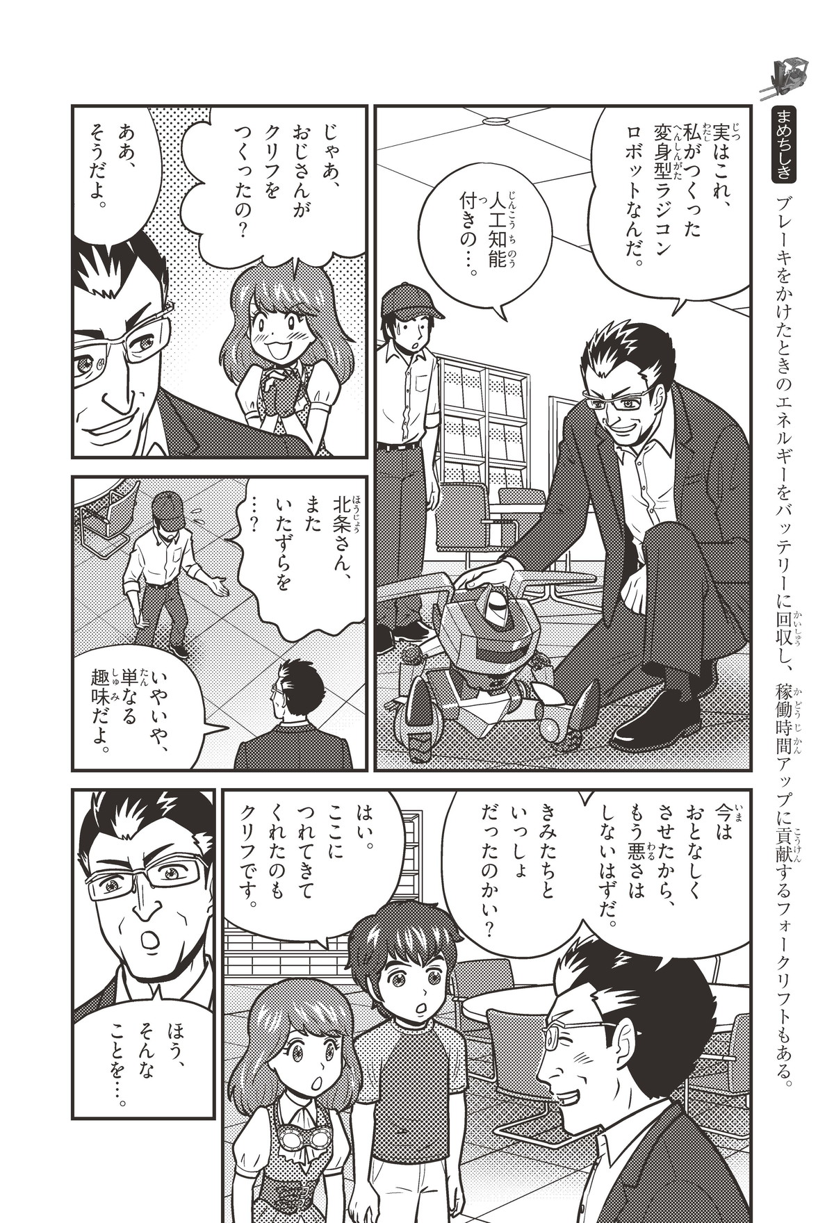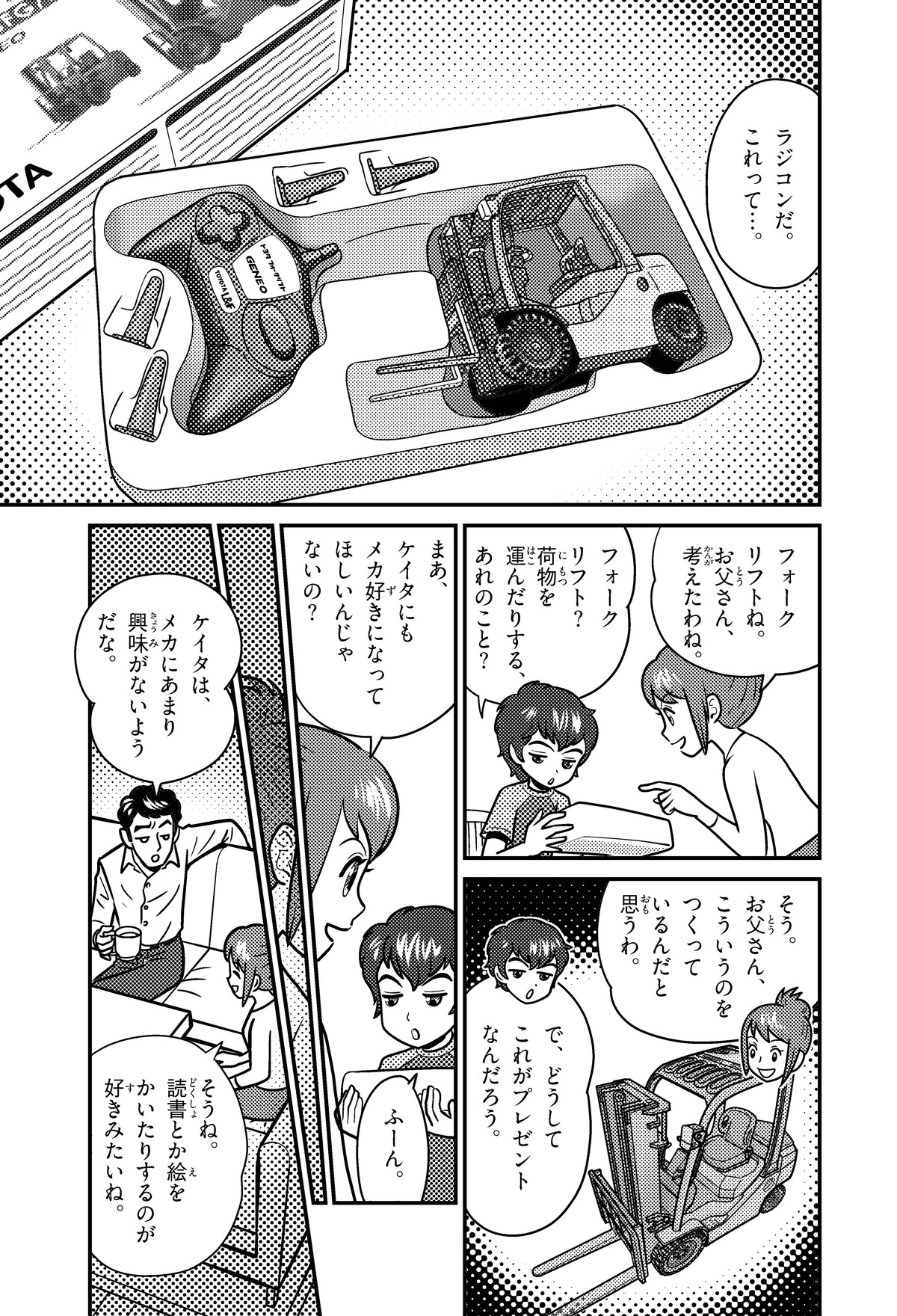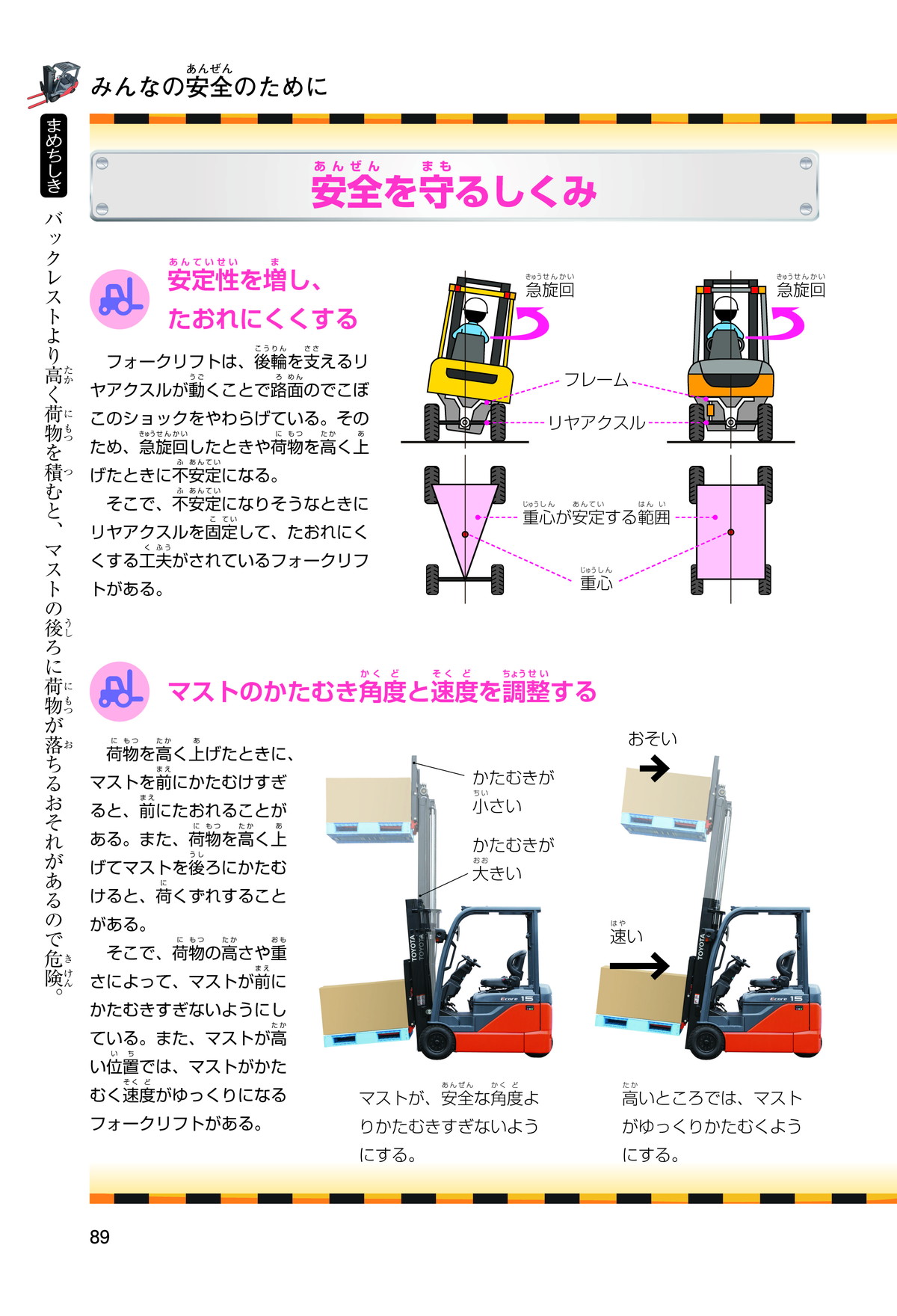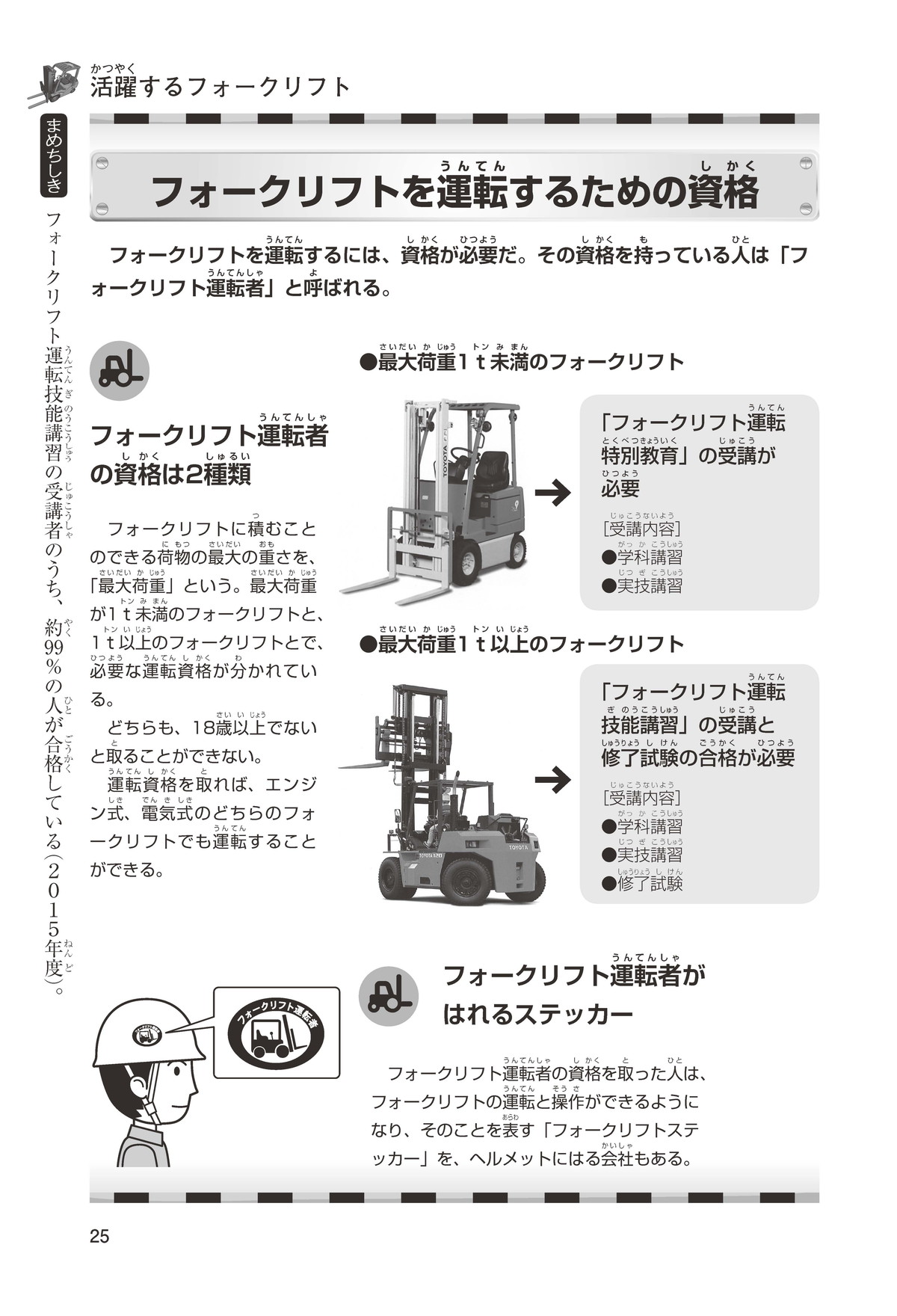 お父さんから誕生日プレゼントに「フォークリフト」のラジコンをもらった、小学5年生のケイタ。フォークリフトとは、工場や倉庫、港などで、荷物の運搬に活躍する自動車のこと。荷物を安全に効率よく運ぶために、多くの工夫がされているんだ。そんなフォークリフトのしくみや種類、最新のフォークリフトなど、たくさんのひみつを、フォークリフトの化身、クリフが教えてくれるよ。