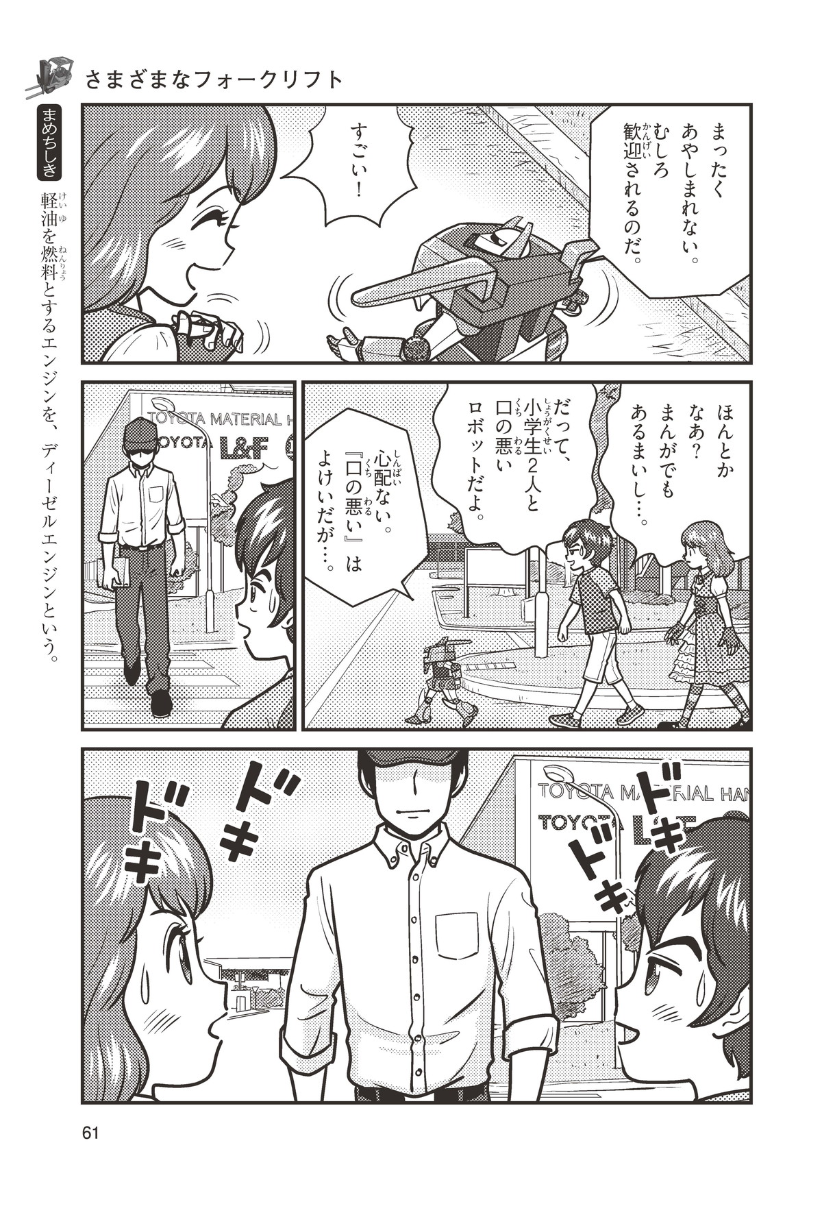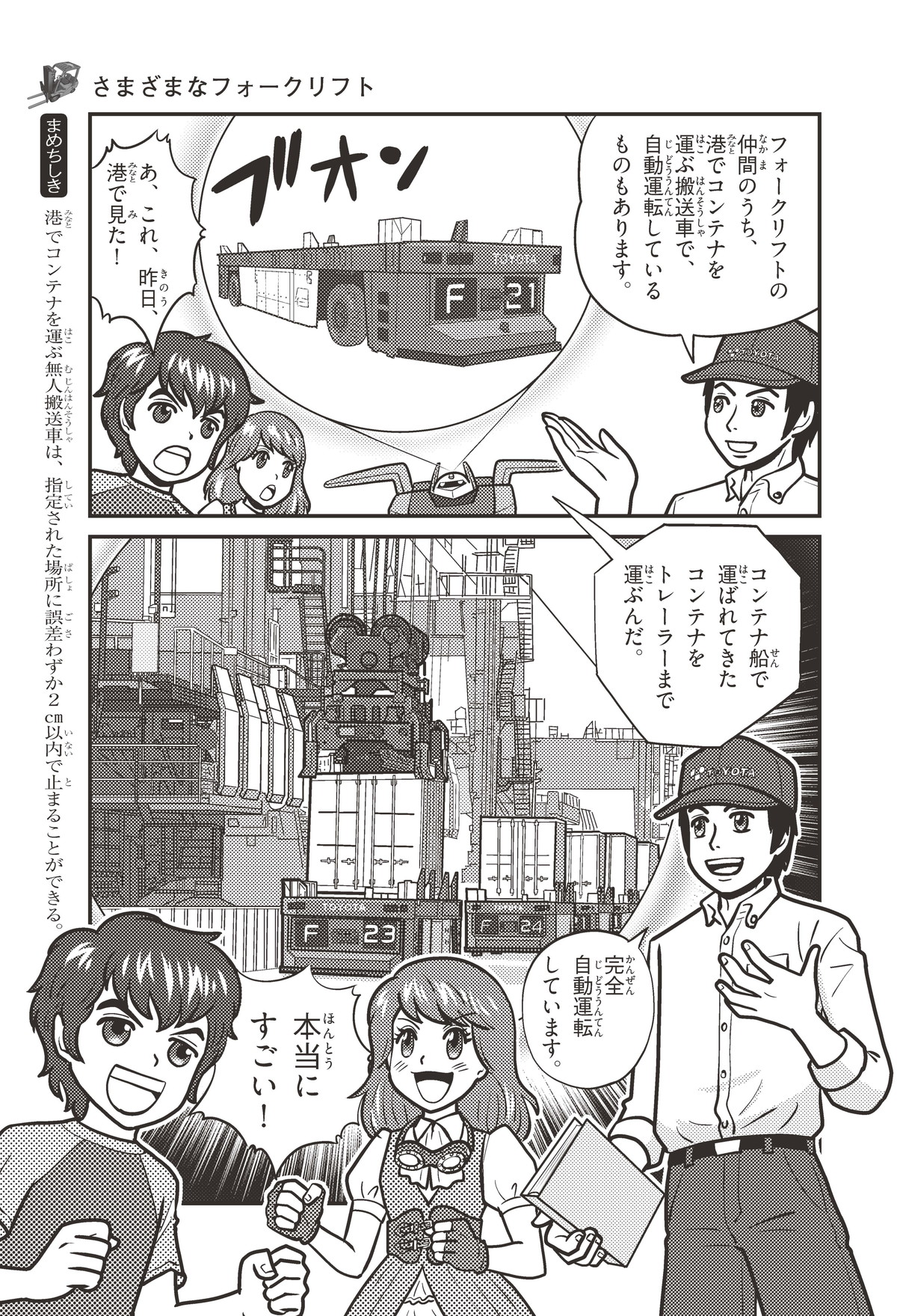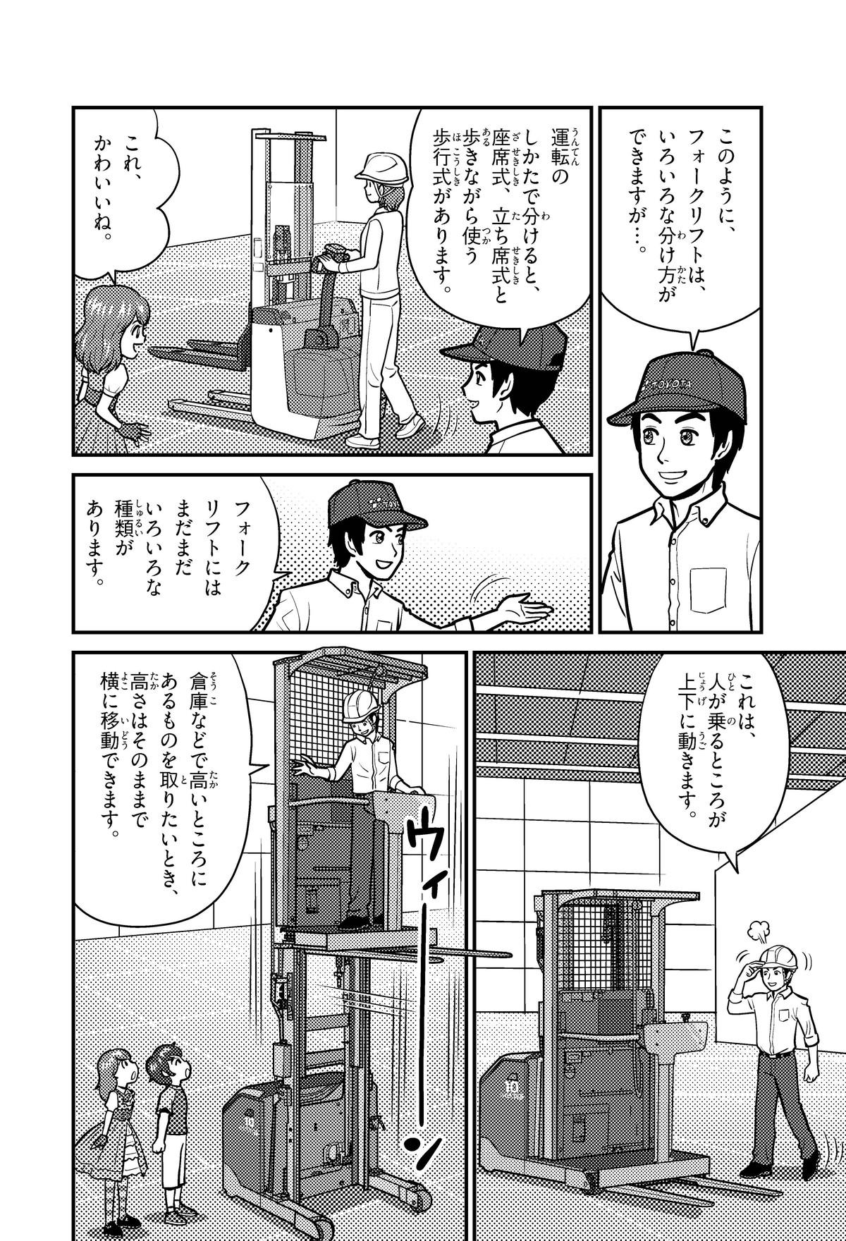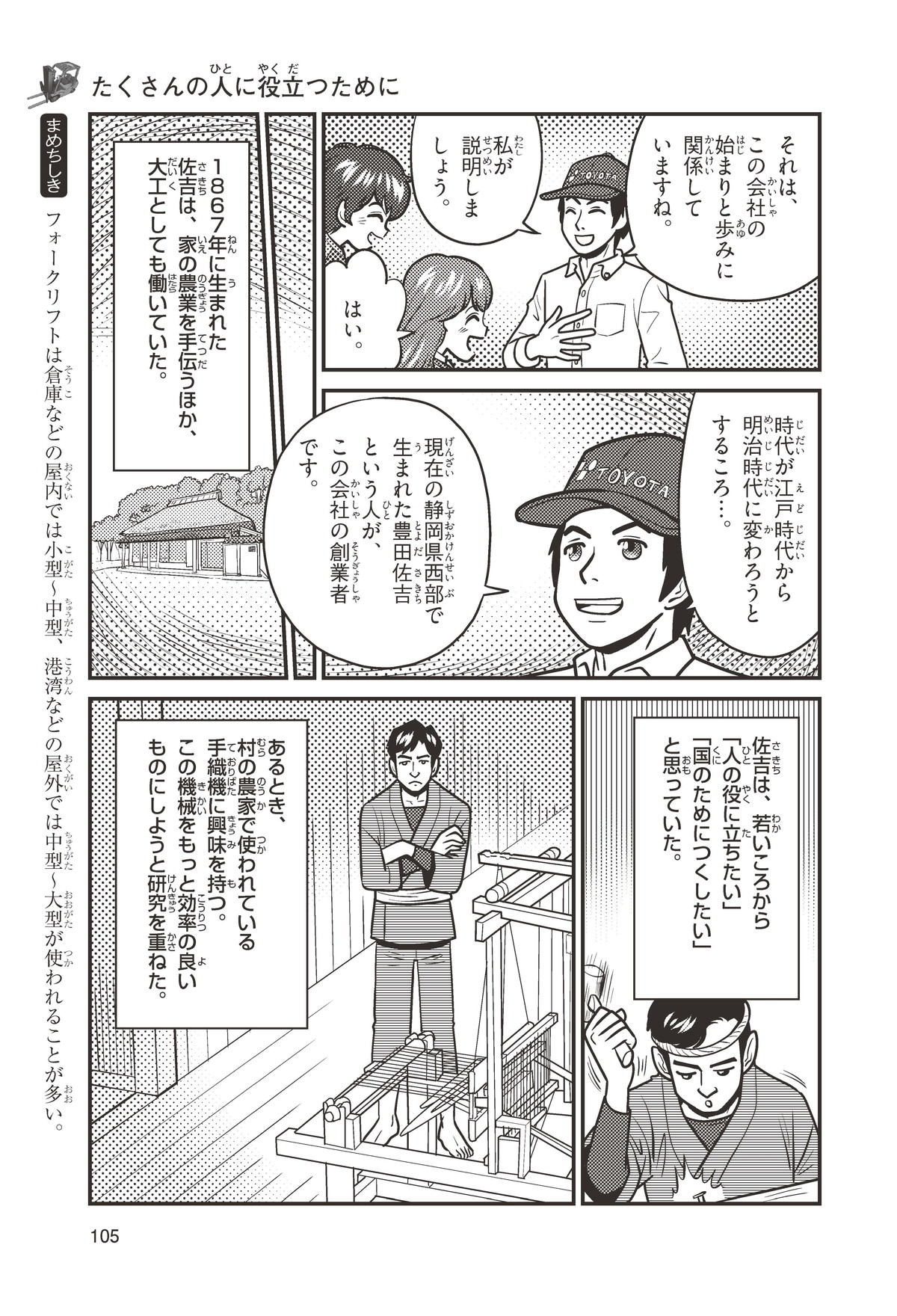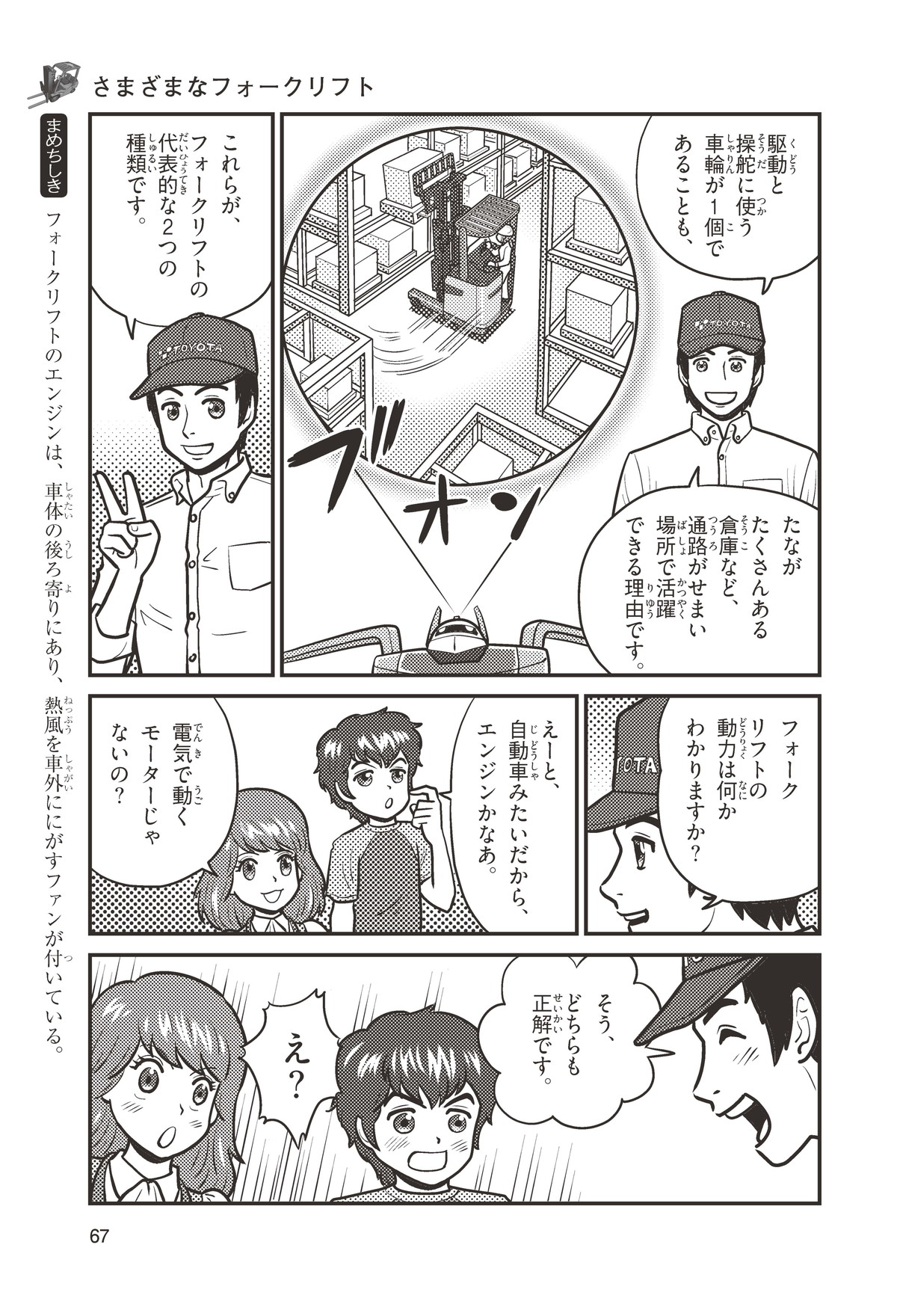 お父さんから誕生日プレゼントに「フォークリフト」のラジコンをもらった、小学5年生のケイタ。フォークリフトとは、工場や倉庫、港などで、荷物の運搬に活躍する自動車のこと。荷物を安全に効率よく運ぶために、多くの工夫がされているんだ。そんなフォークリフトのしくみや種類、最新のフォークリフトなど、たくさんのひみつを、フォークリフトの化身、クリフが教えてくれるよ。