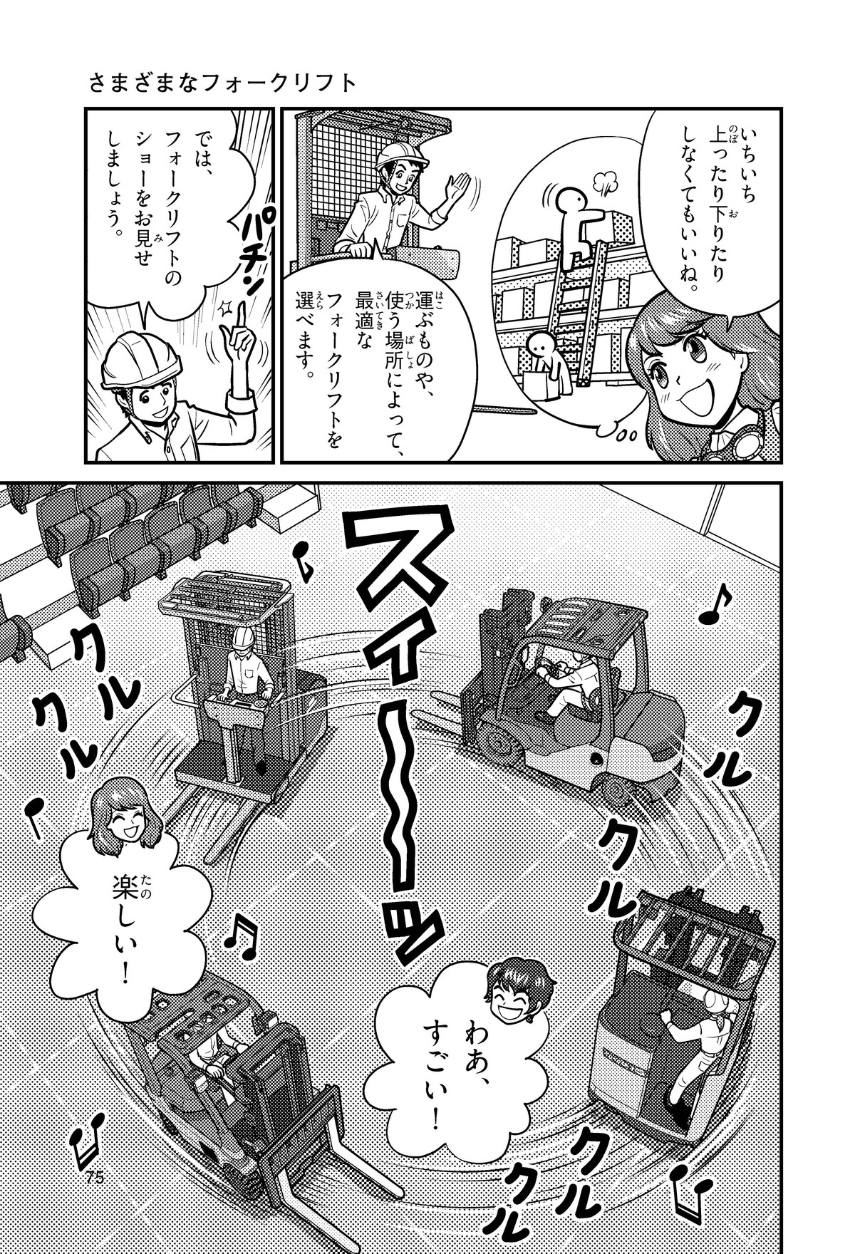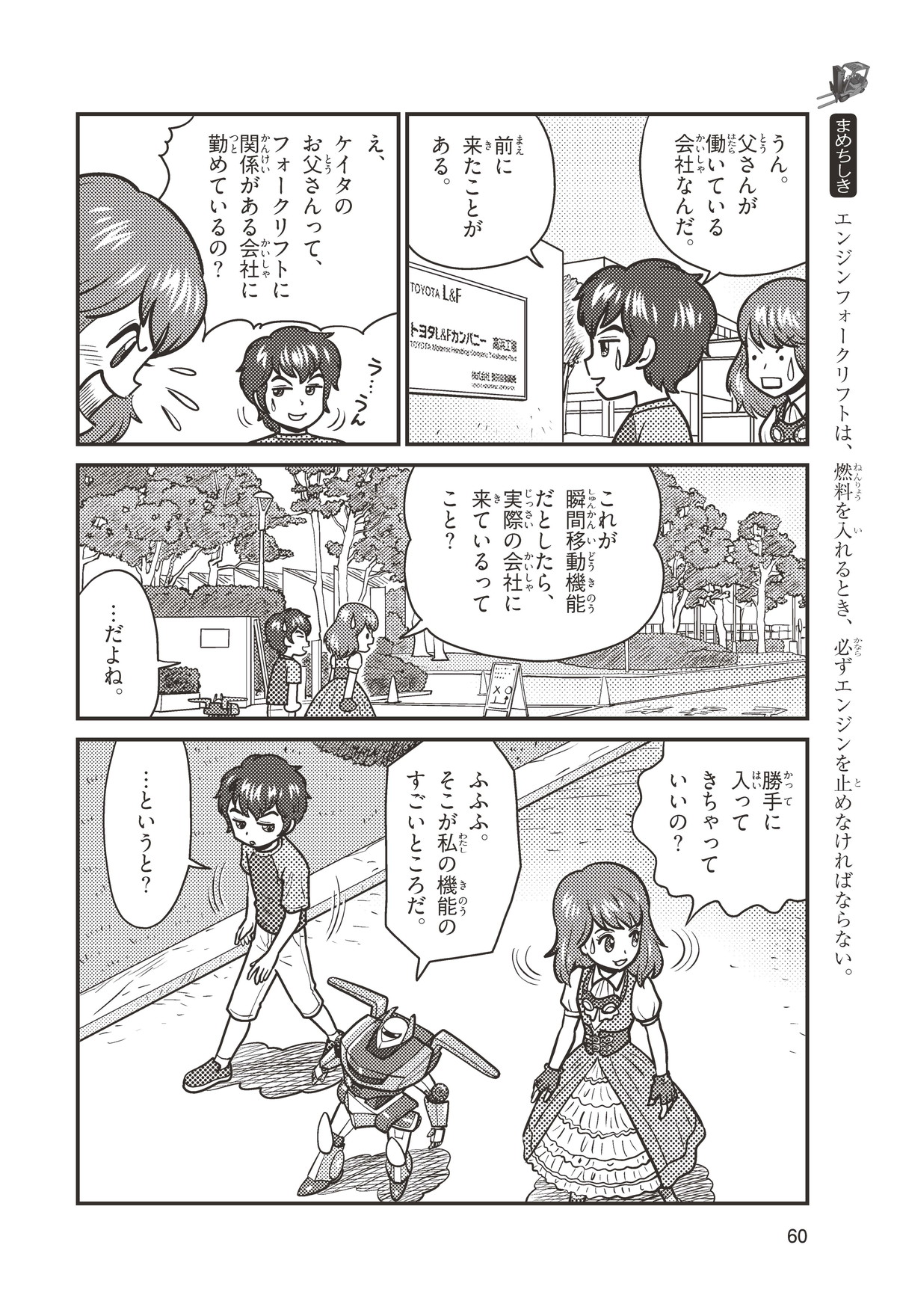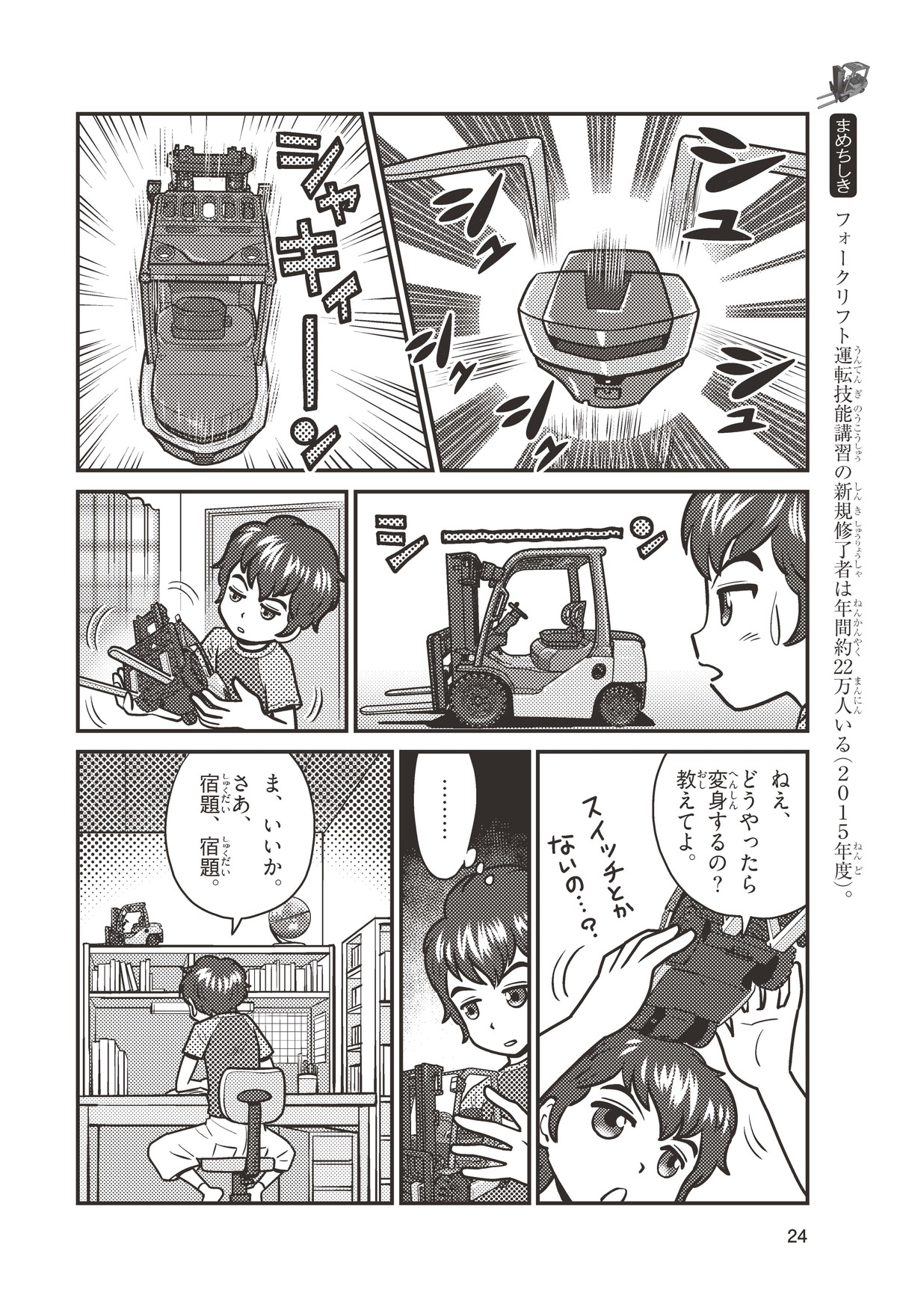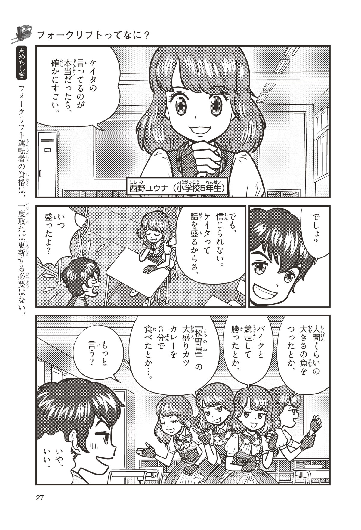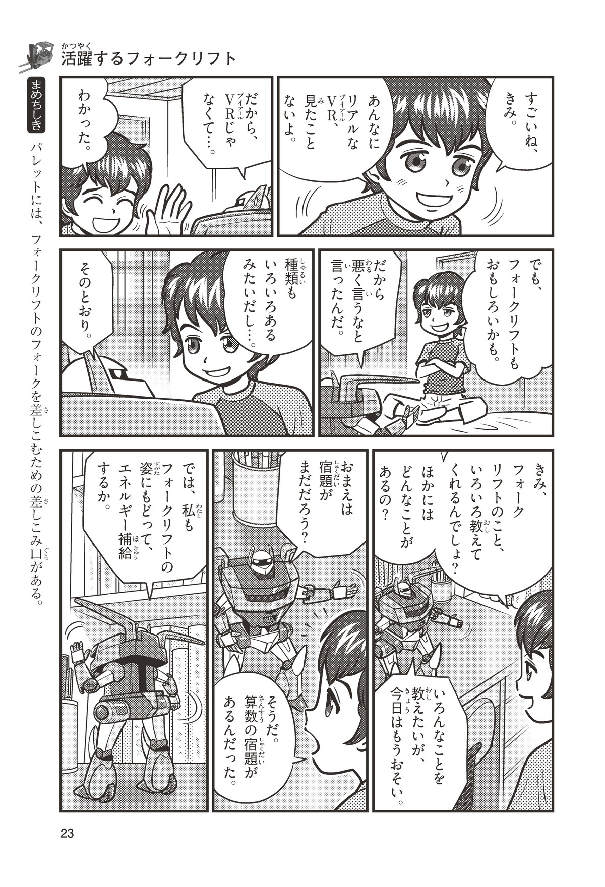 お父さんから誕生日プレゼントに「フォークリフト」のラジコンをもらった、小学5年生のケイタ。フォークリフトとは、工場や倉庫、港などで、荷物の運搬に活躍する自動車のこと。荷物を安全に効率よく運ぶために、多くの工夫がされているんだ。そんなフォークリフトのしくみや種類、最新のフォークリフトなど、たくさんのひみつを、フォークリフトの化身、クリフが教えてくれるよ。