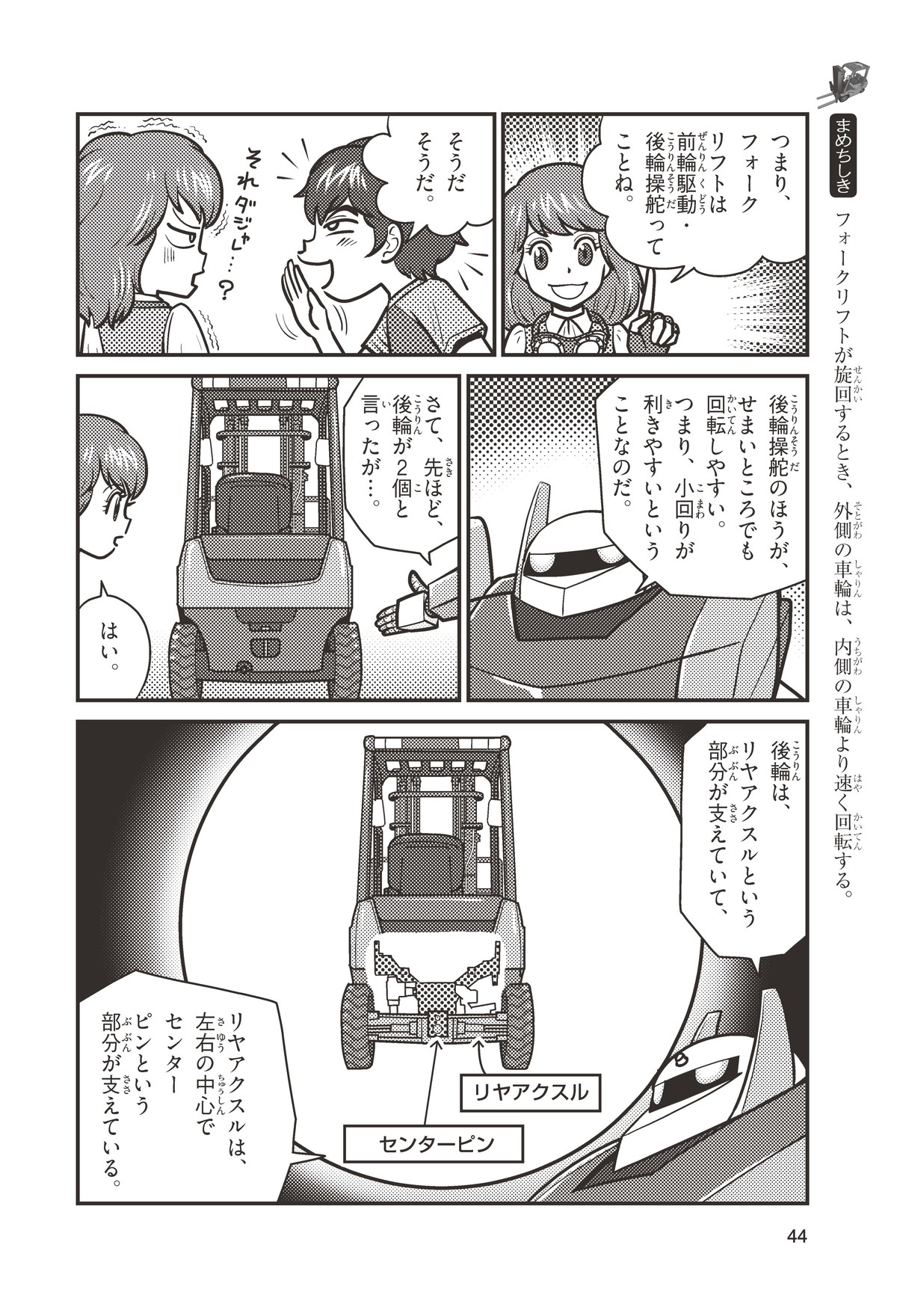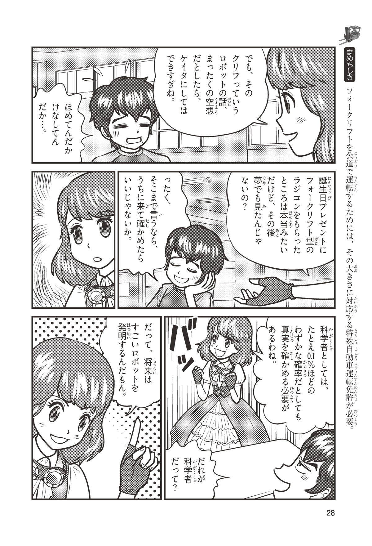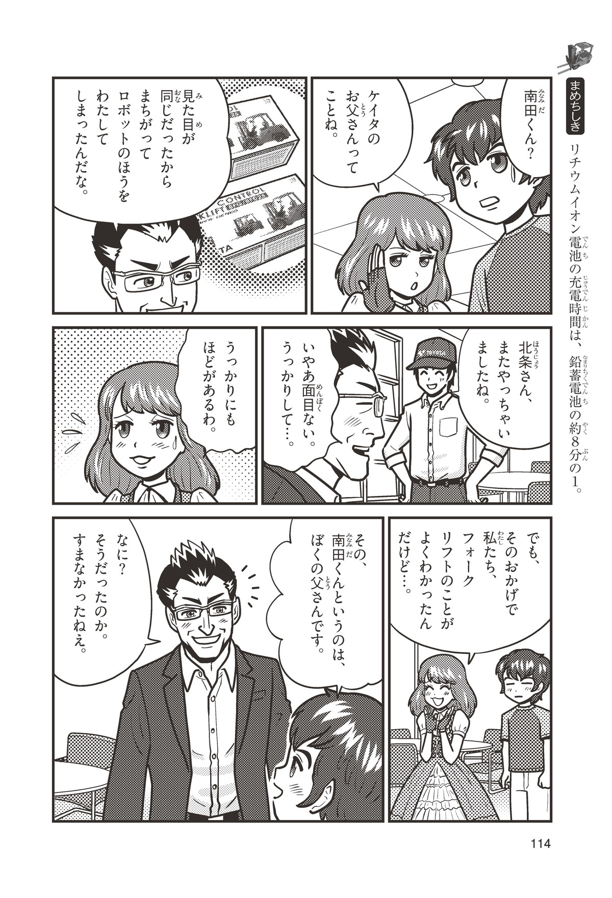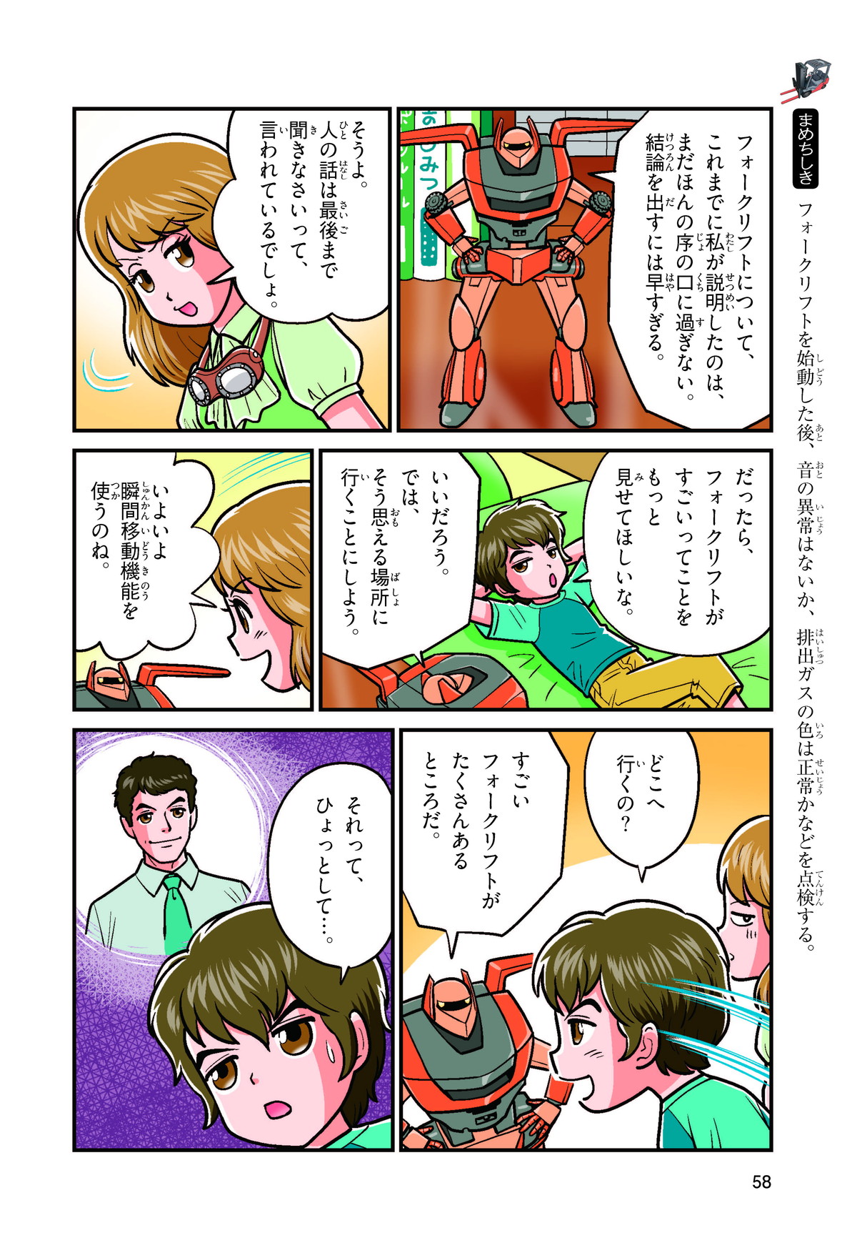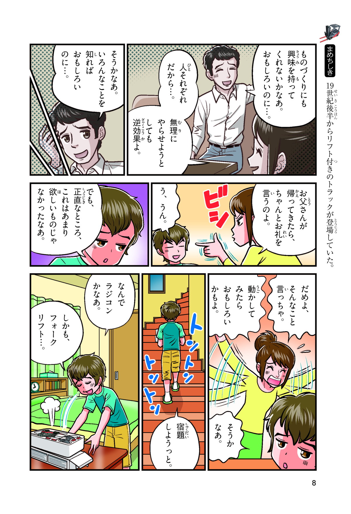 お父さんから誕生日プレゼントに「フォークリフト」のラジコンをもらった、小学5年生のケイタ。フォークリフトとは、工場や倉庫、港などで、荷物の運搬に活躍する自動車のこと。荷物を安全に効率よく運ぶために、多くの工夫がされているんだ。そんなフォークリフトのしくみや種類、最新のフォークリフトなど、たくさんのひみつを、フォークリフトの化身、クリフが教えてくれるよ。