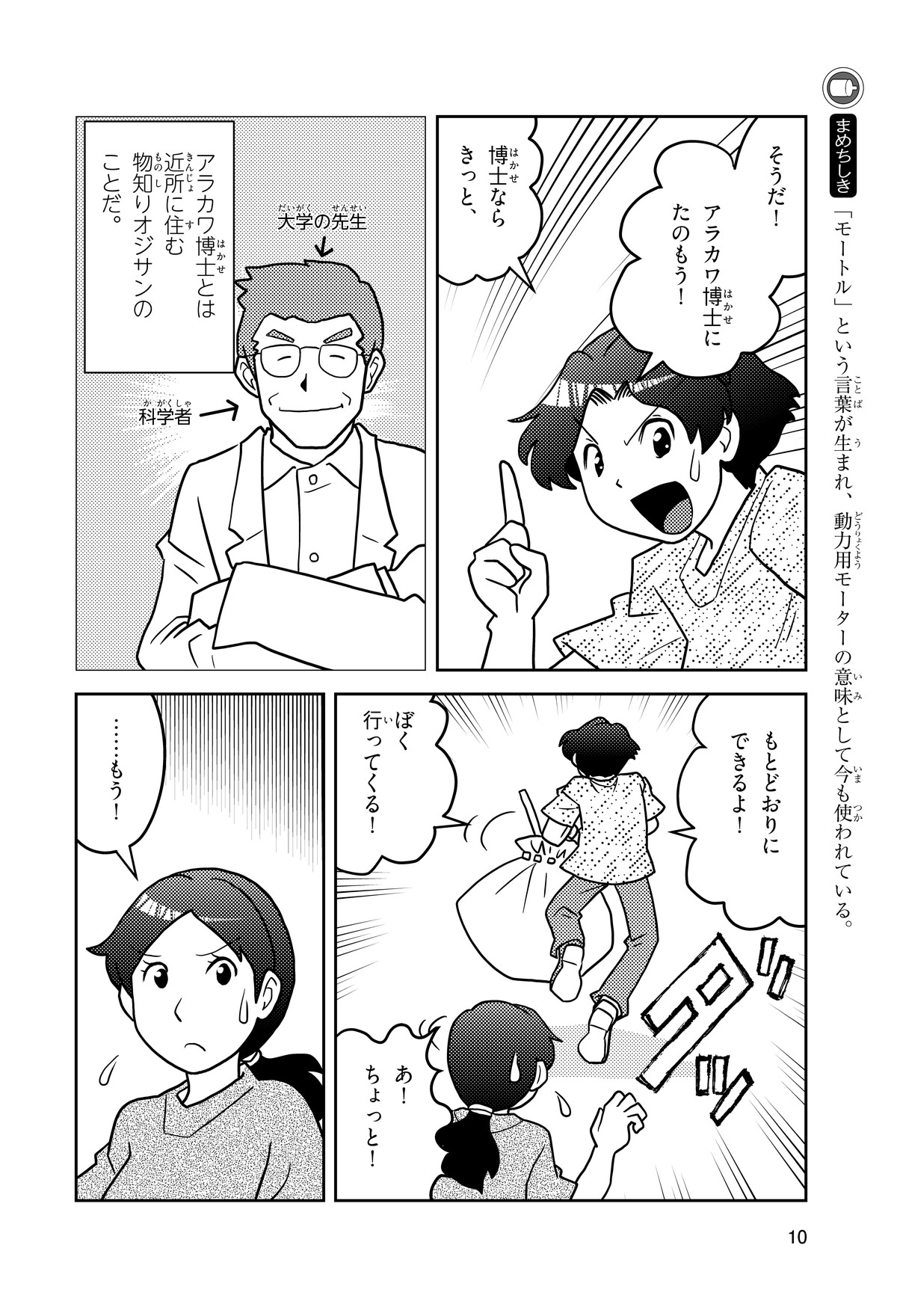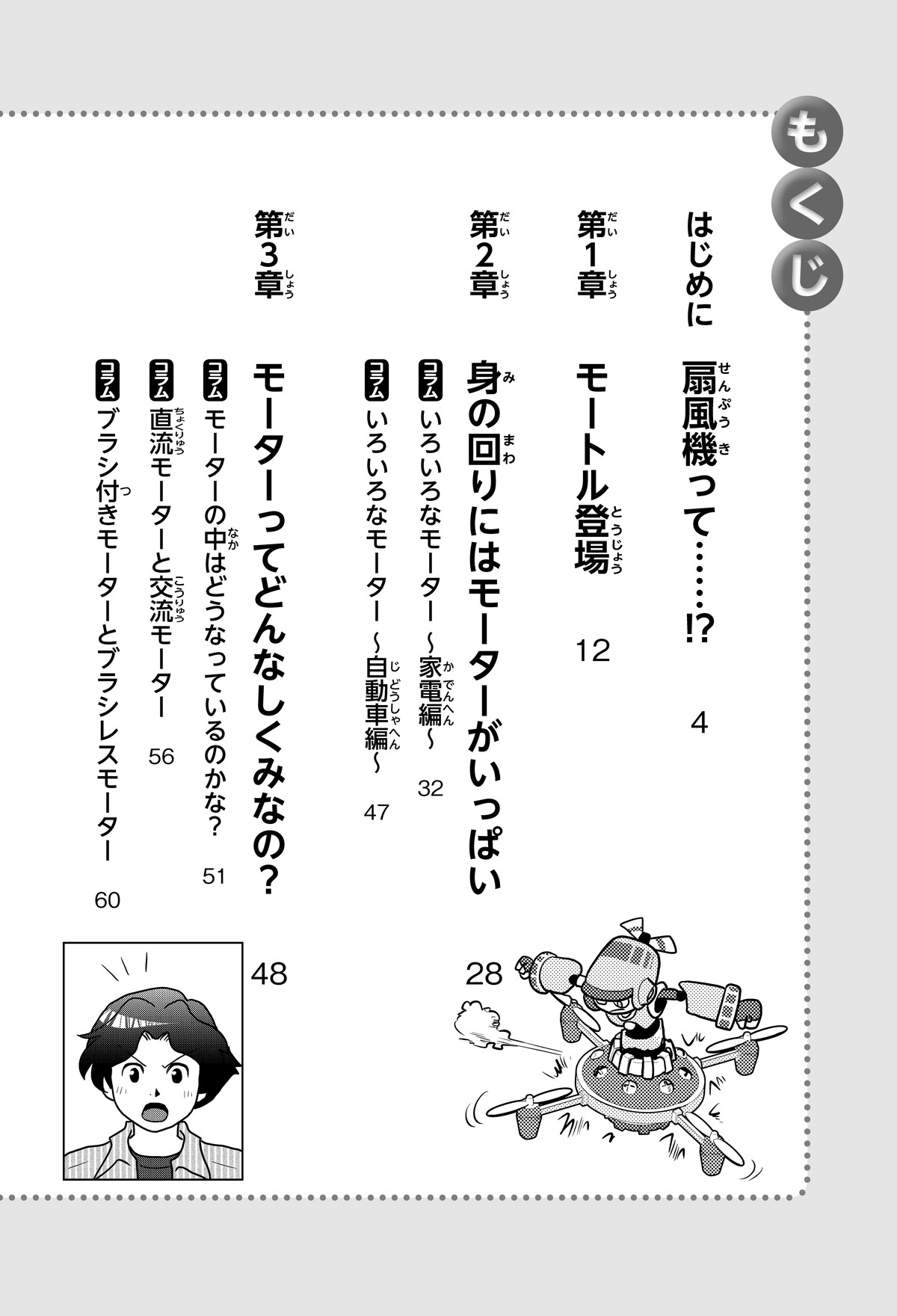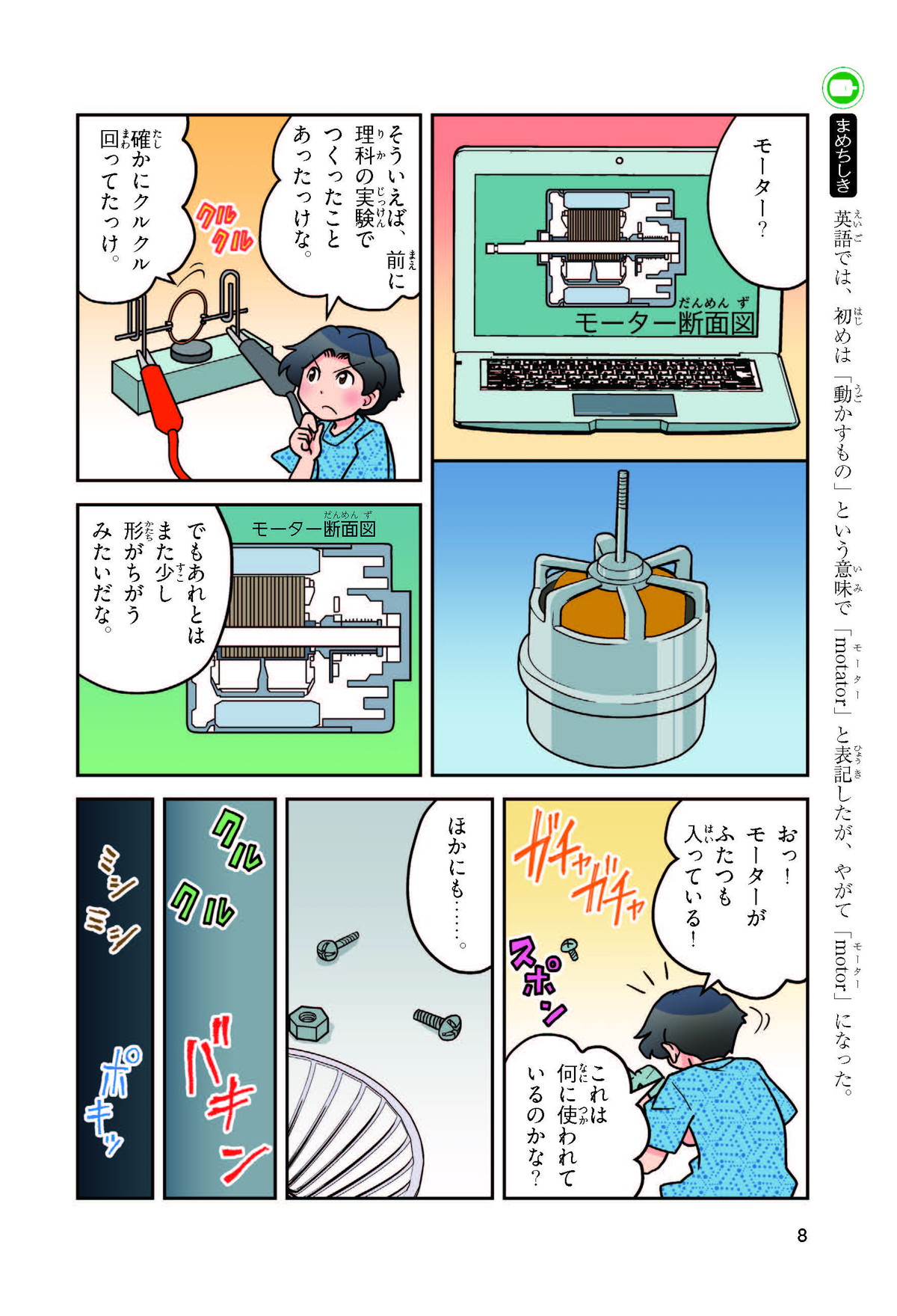 気になったものは分解せずにはいられない、小学5年生のツバサ。いつものように扇風機(せんぷうき)を分解したら入っていた「モーター」が気になって……。モーターは、みんなの生活を支えているって知ってる? 自動車やエスカレーター、家庭用電化製品にスマートフォンなど、回ったり動いたりするものに、モーターはたくさん使われているんだ。ツバサといっしょにモーターのことを学ぼう!