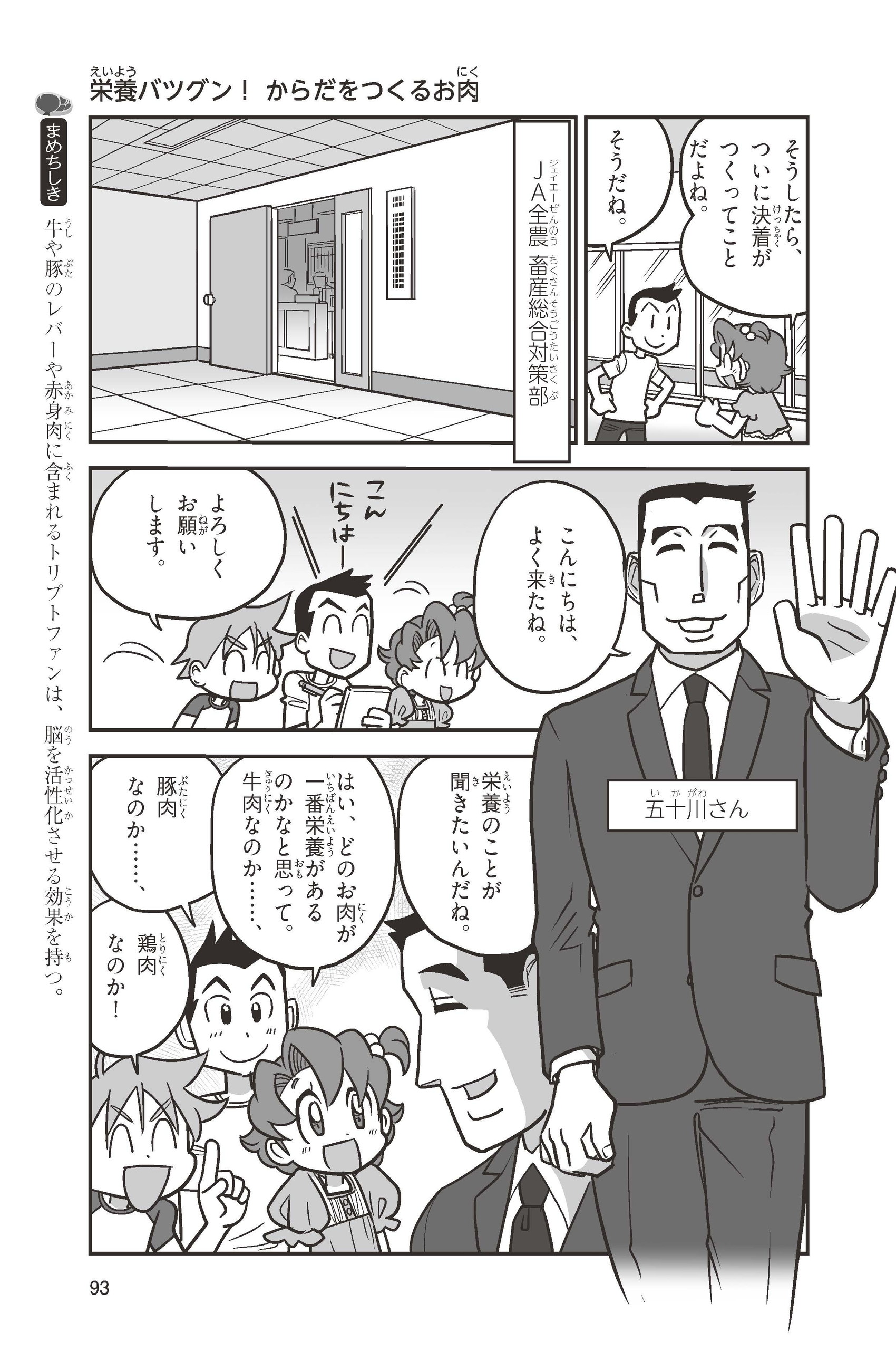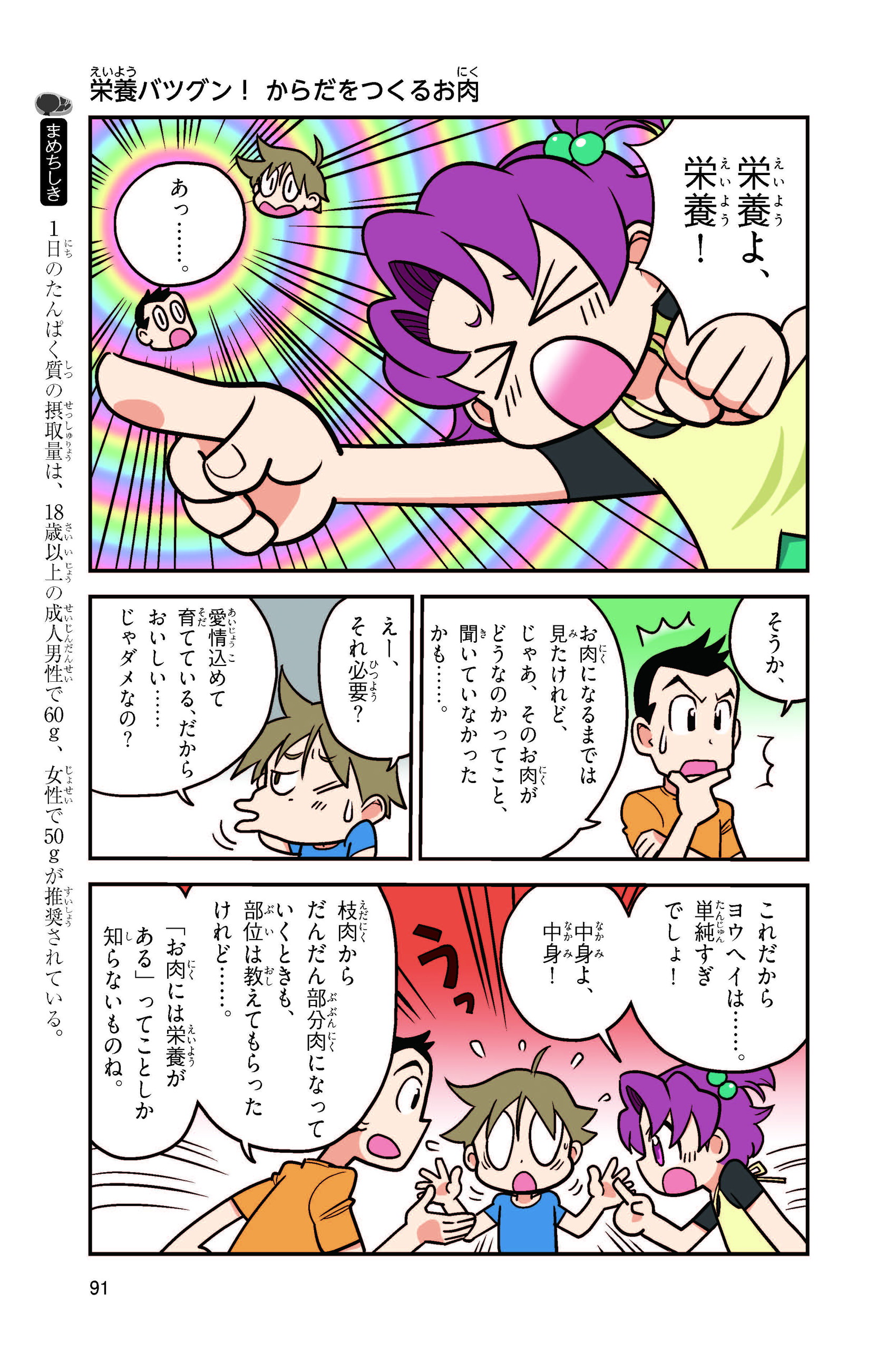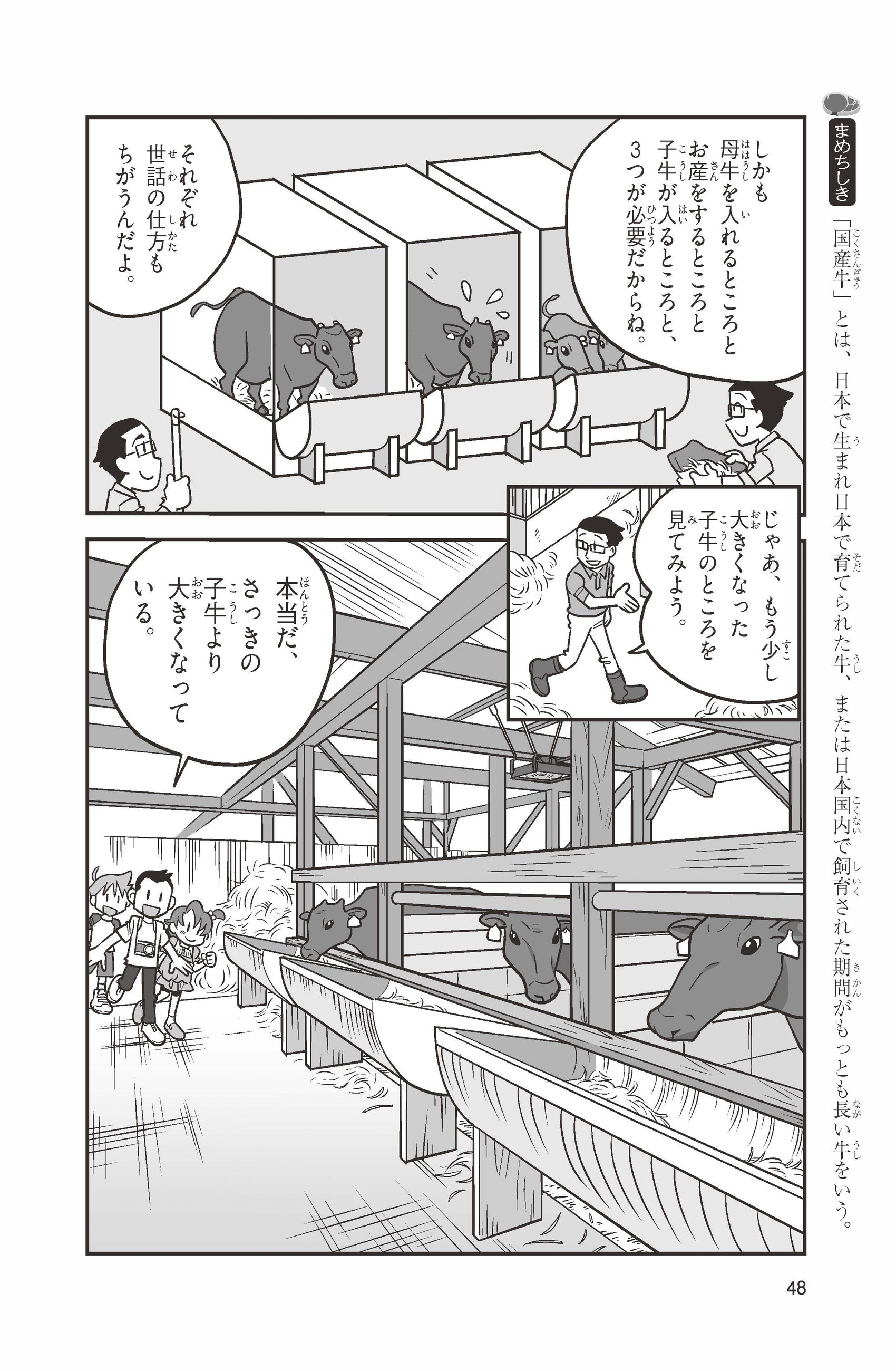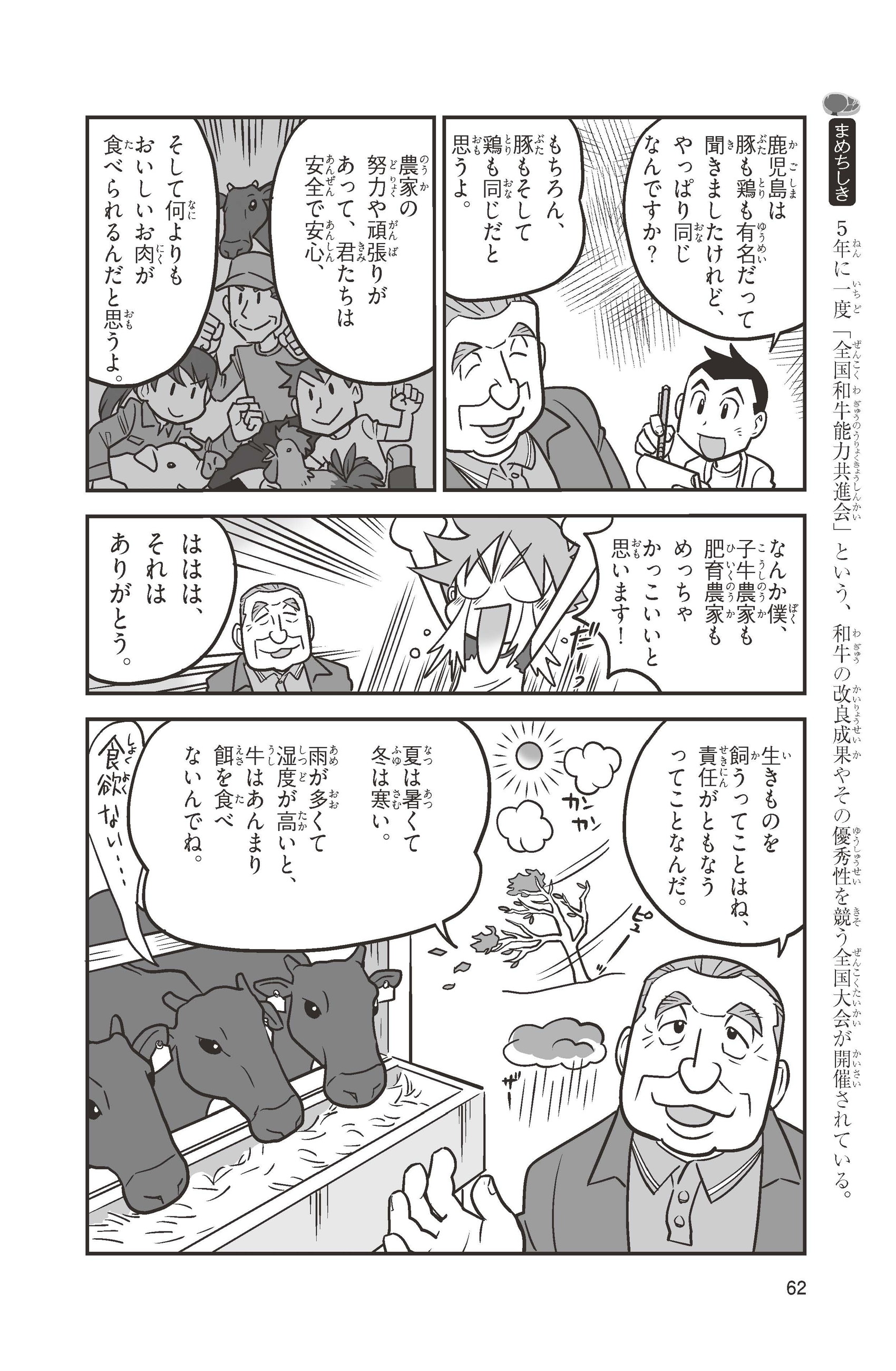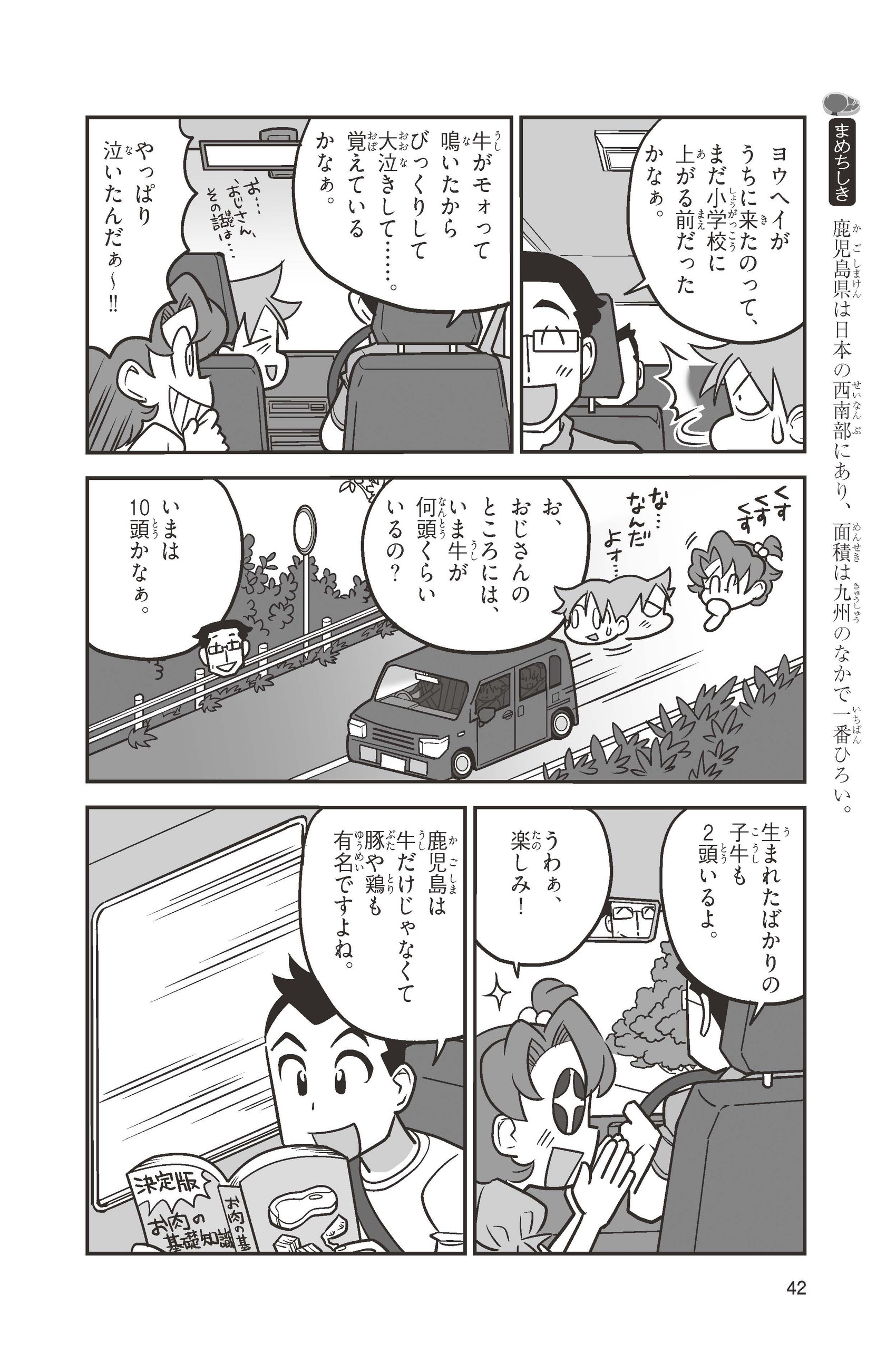 学級委員のリュウ、おませなカレン、ガキ大将(だいしょう)のヨウヘイは、おさななじみの仲良しトリオ。牛肉・豚肉(ぶたにく)・鶏肉(とりにく)のどのお肉が一番かを決めるため、小学5年生の夏休みに3人は牛を育てているヨウヘイのおじさんを訪(たず)ねて鹿児島(かごしま)に向かったよ。どうやってお肉が食卓(しょくたく)に届(とど)くのか、お肉のひみつは何か、最後にたどりついた答えは……?