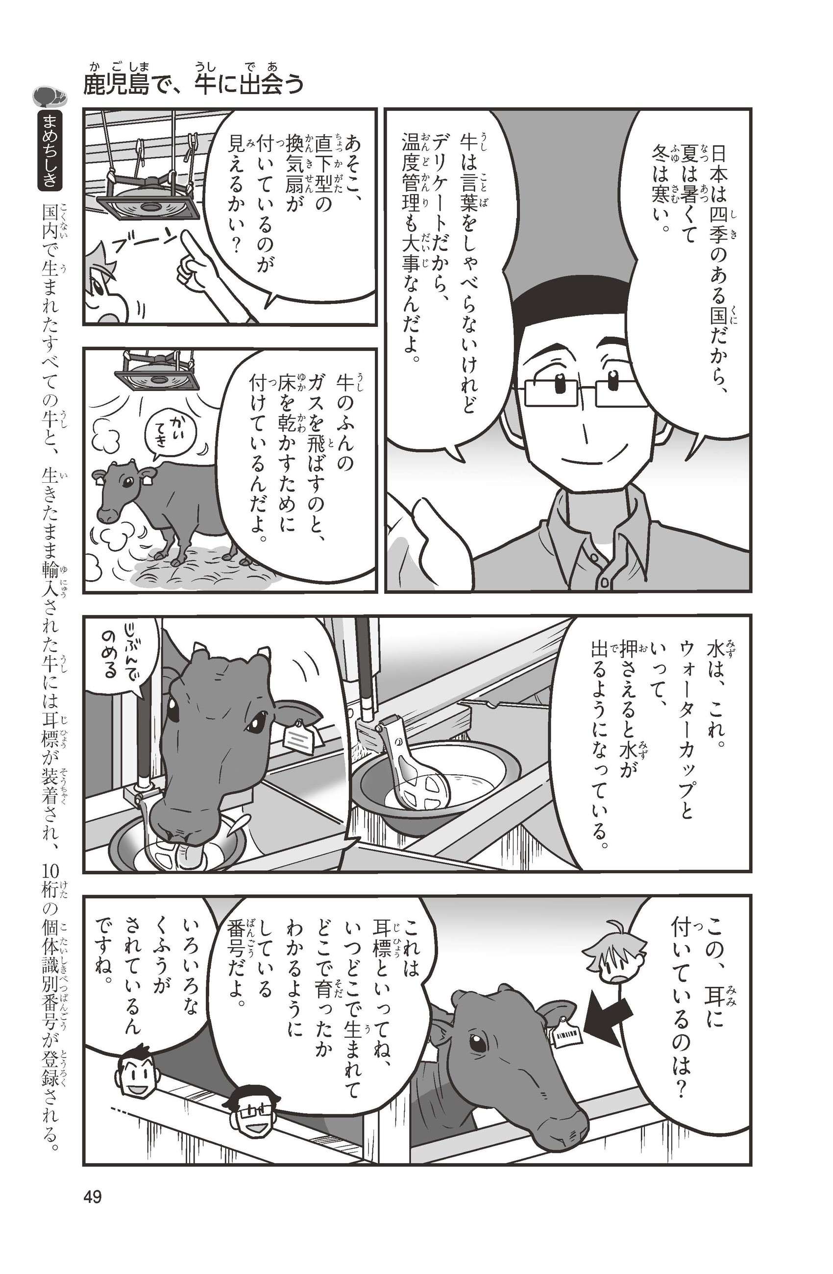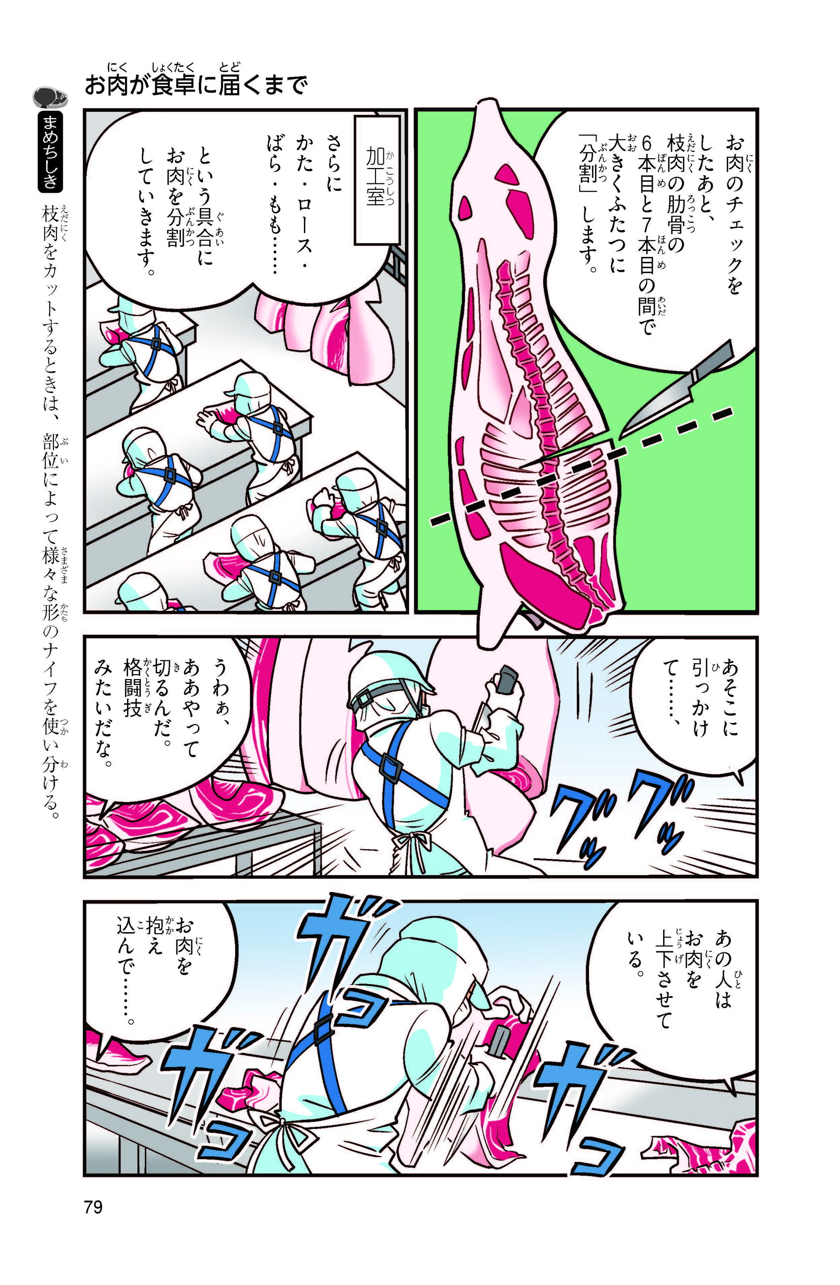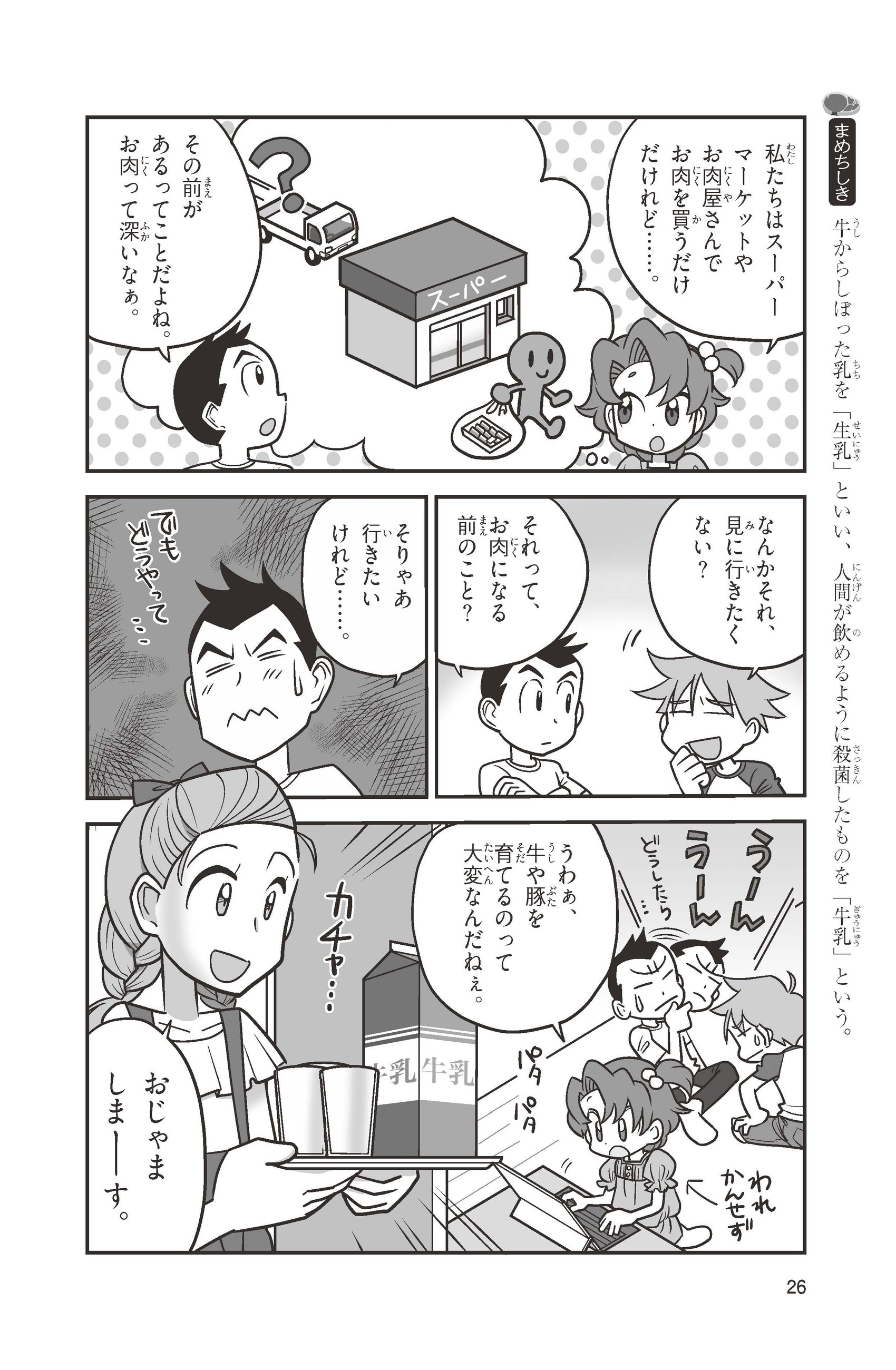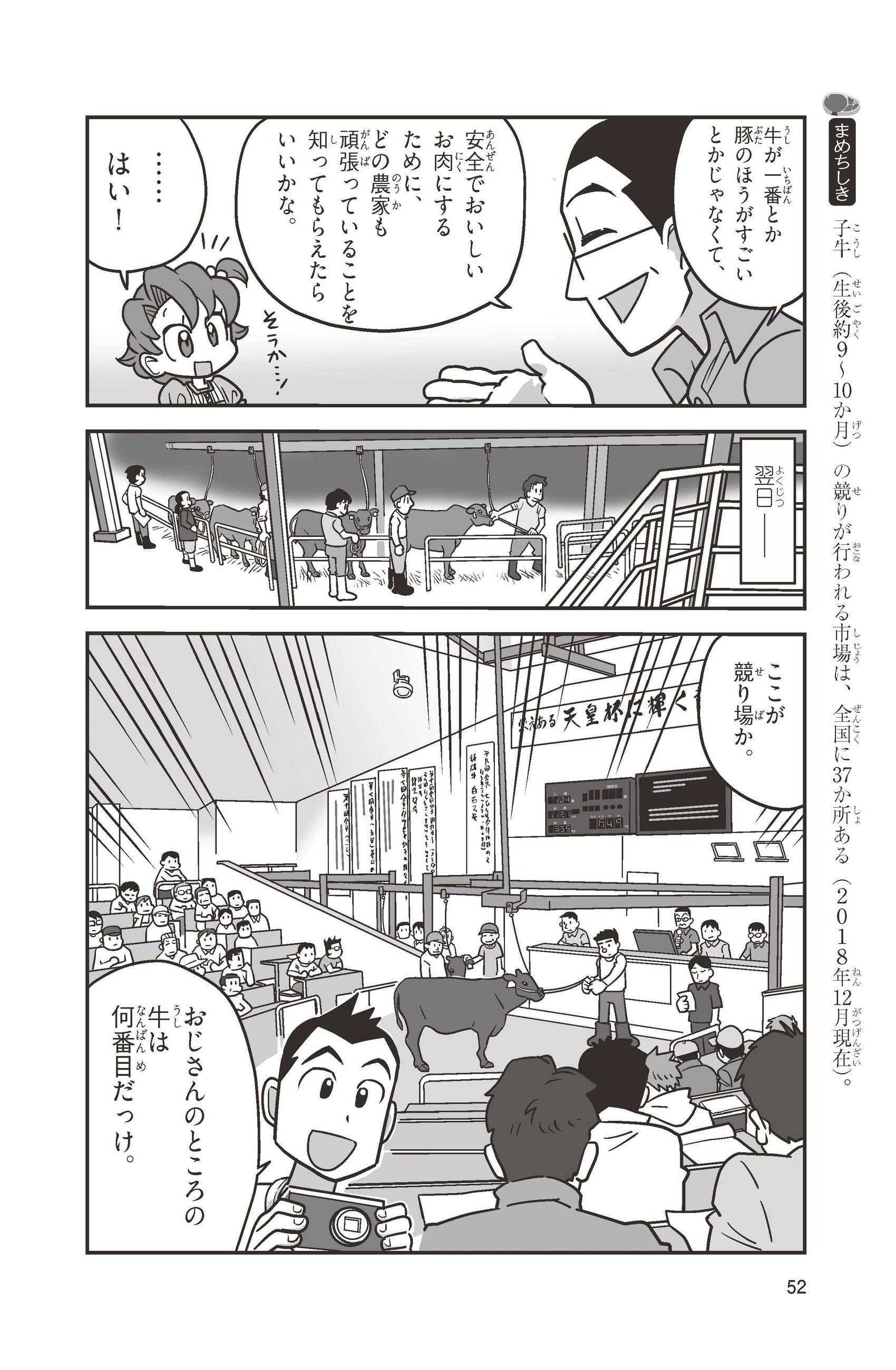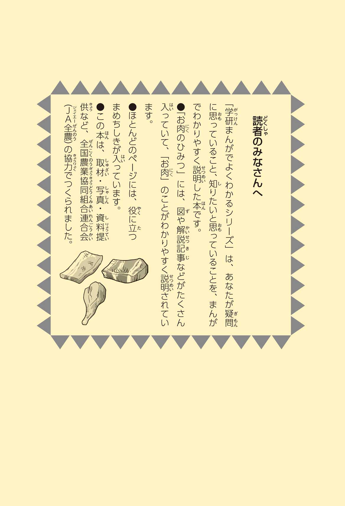 学級委員のリュウ、おませなカレン、ガキ大将(だいしょう)のヨウヘイは、おさななじみの仲良しトリオ。牛肉・豚肉(ぶたにく)・鶏肉(とりにく)のどのお肉が一番かを決めるため、小学5年生の夏休みに3人は牛を育てているヨウヘイのおじさんを訪(たず)ねて鹿児島(かごしま)に向かったよ。どうやってお肉が食卓(しょくたく)に届(とど)くのか、お肉のひみつは何か、最後にたどりついた答えは……?