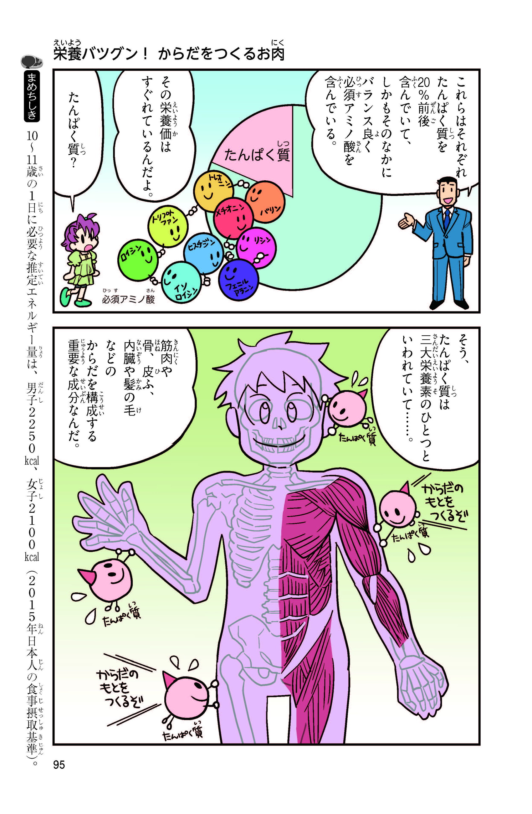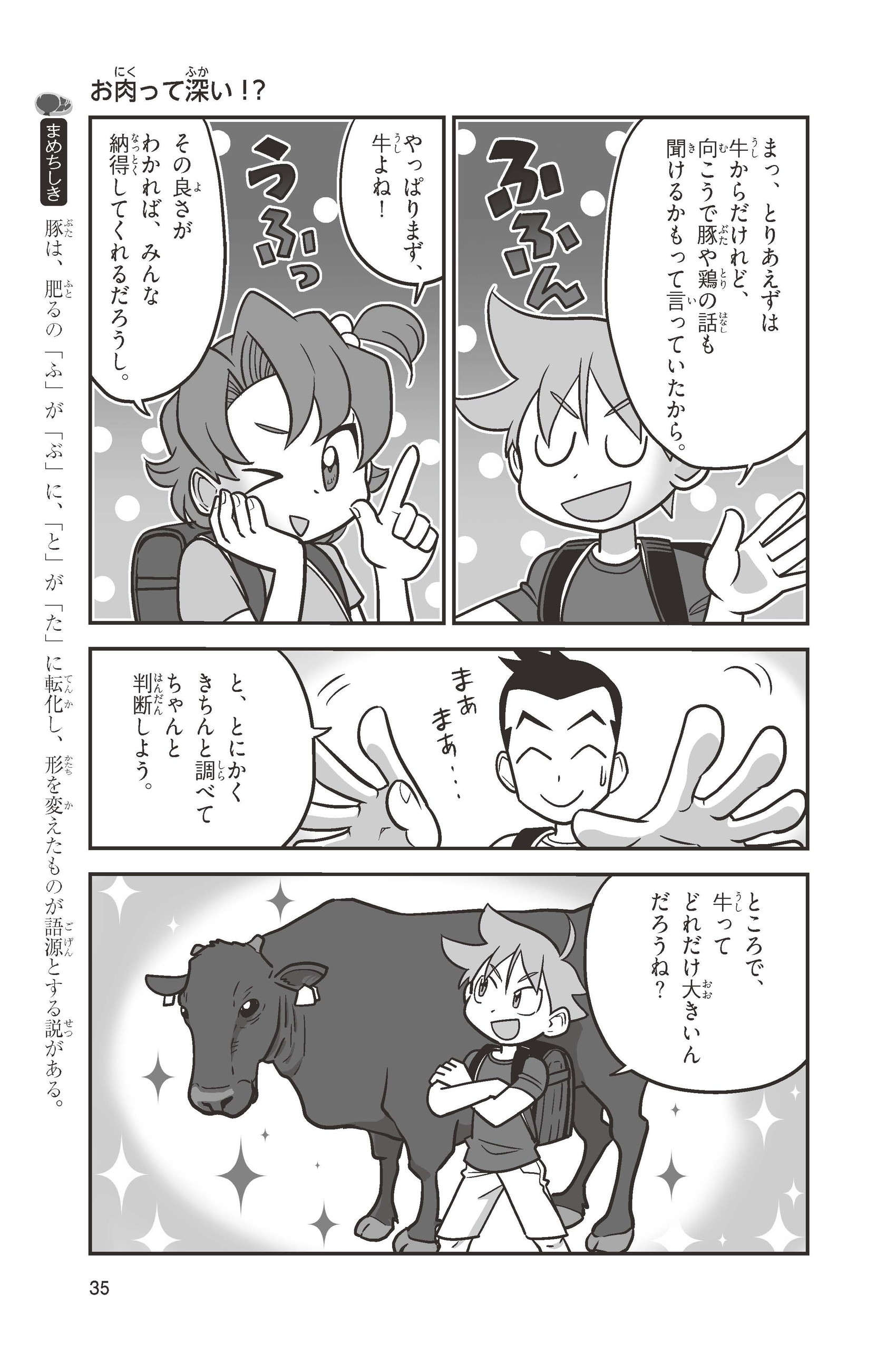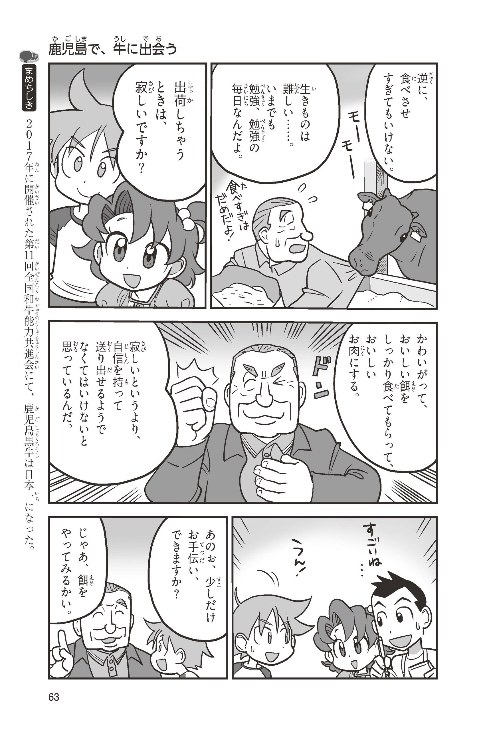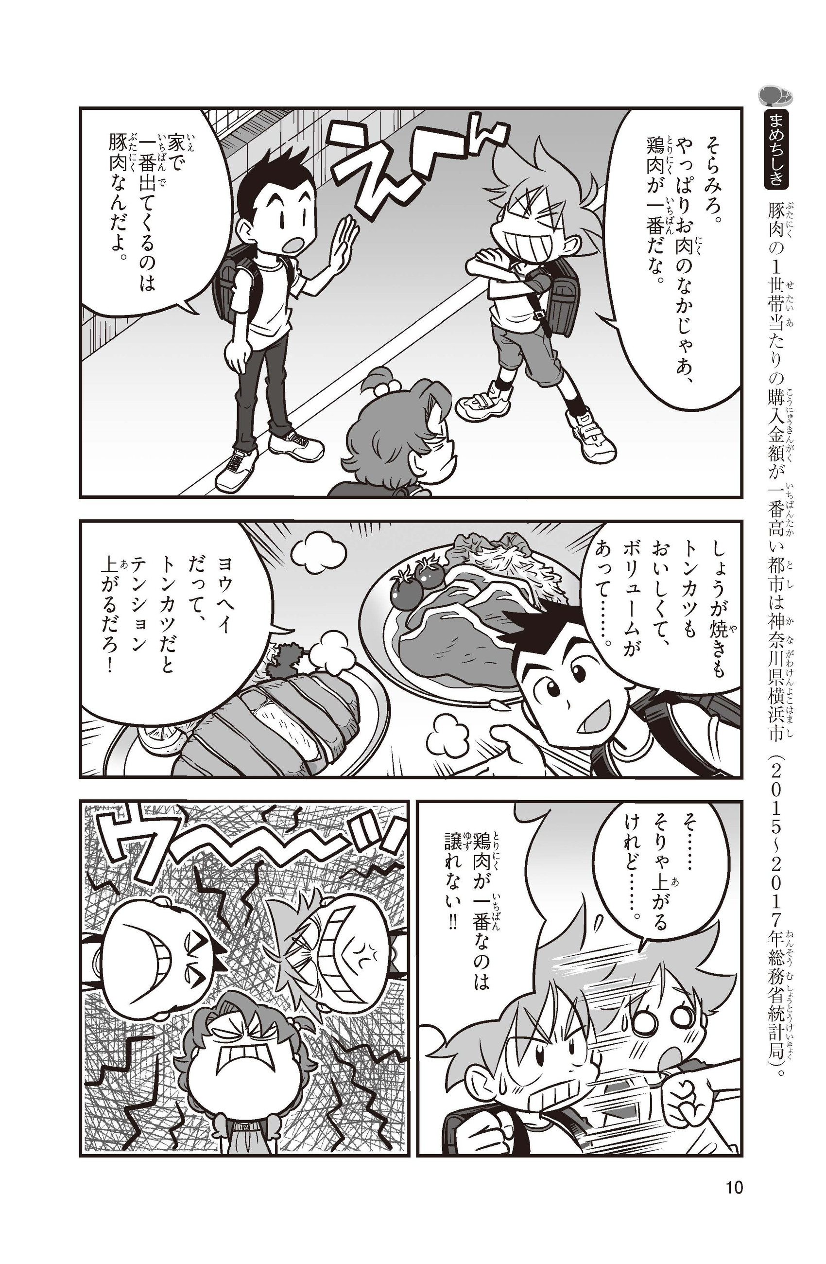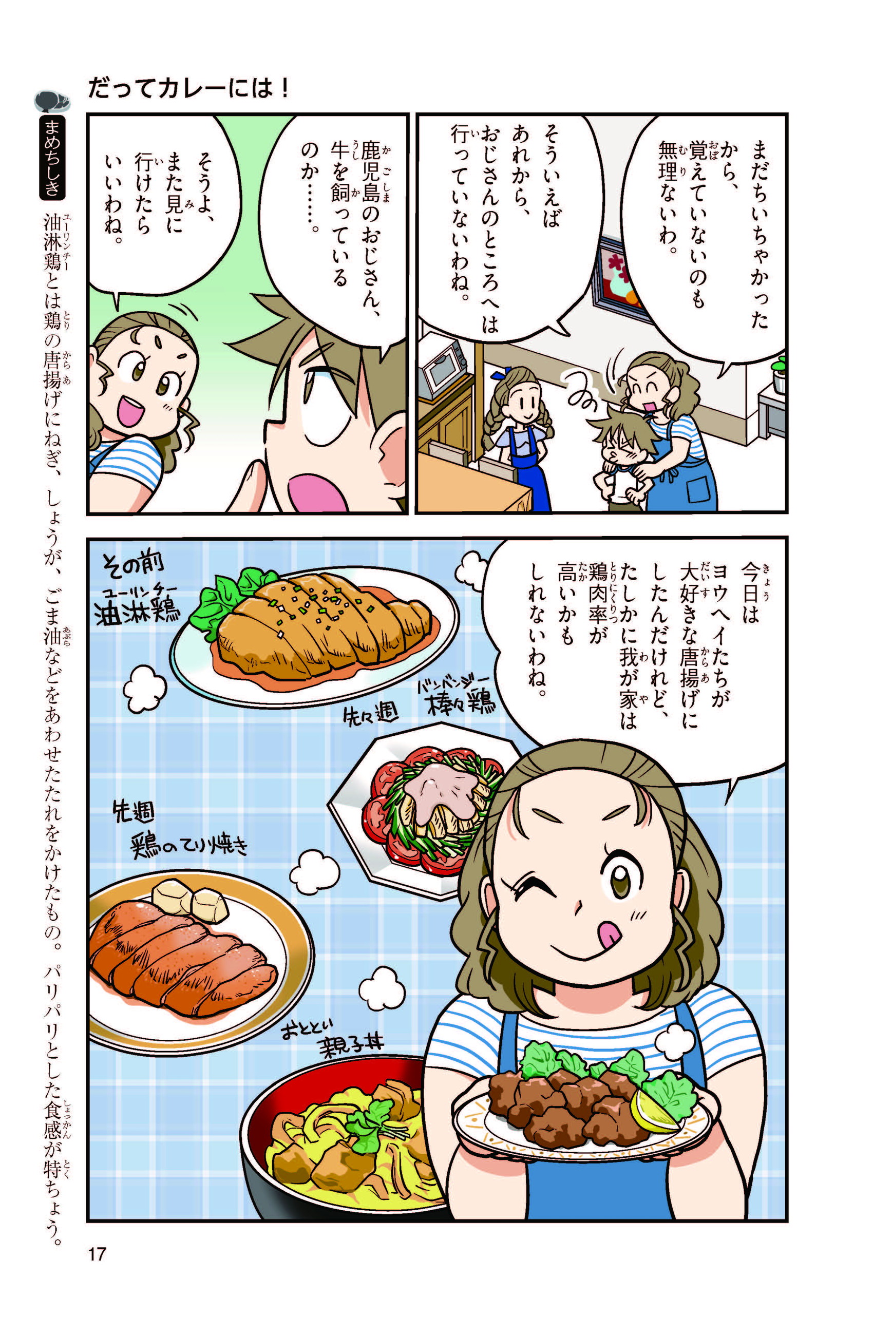 学級委員のリュウ、おませなカレン、ガキ大将(だいしょう)のヨウヘイは、おさななじみの仲良しトリオ。牛肉・豚肉(ぶたにく)・鶏肉(とりにく)のどのお肉が一番かを決めるため、小学5年生の夏休みに3人は牛を育てているヨウヘイのおじさんを訪(たず)ねて鹿児島(かごしま)に向かったよ。どうやってお肉が食卓(しょくたく)に届(とど)くのか、お肉のひみつは何か、最後にたどりついた答えは……?