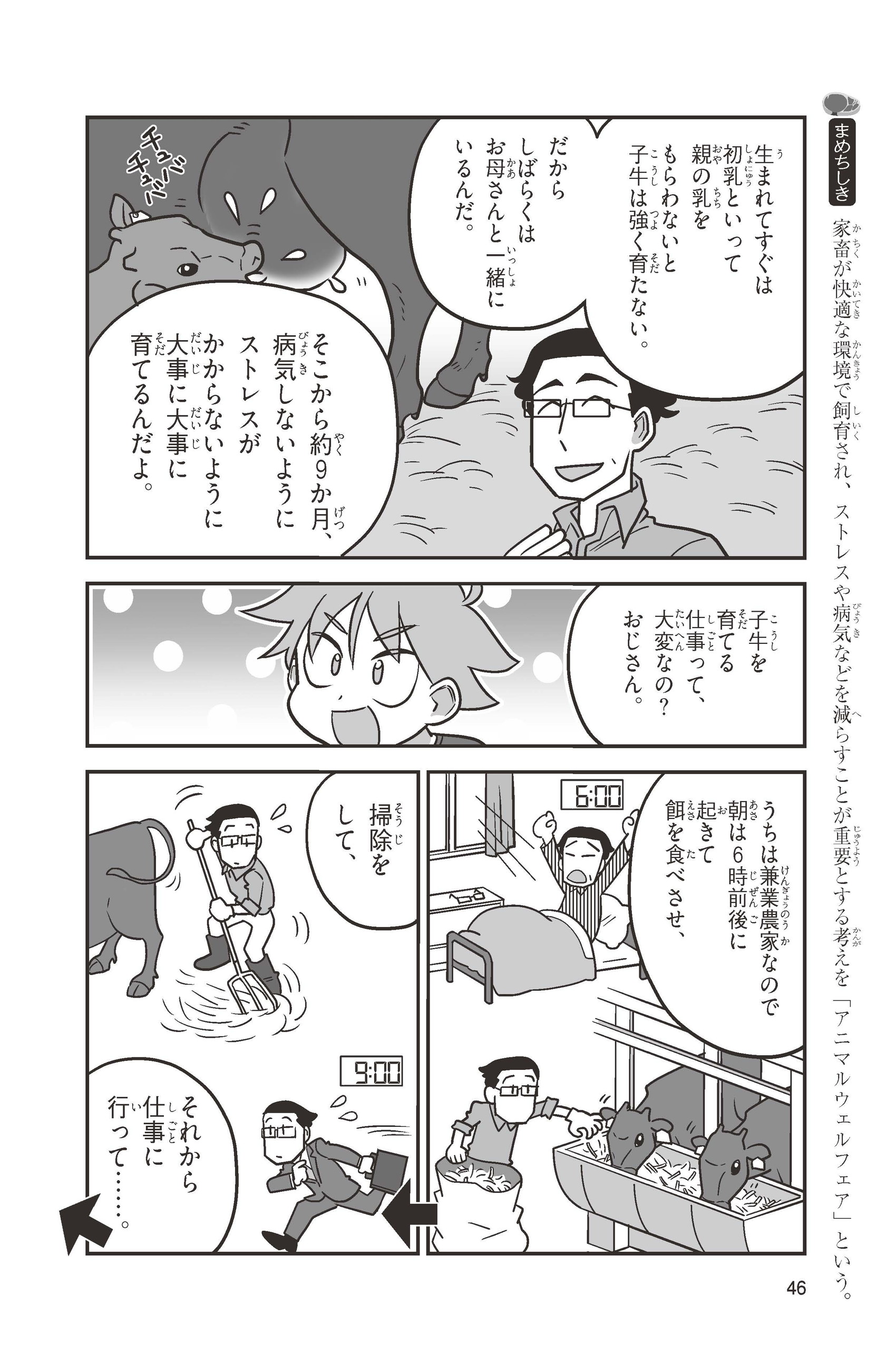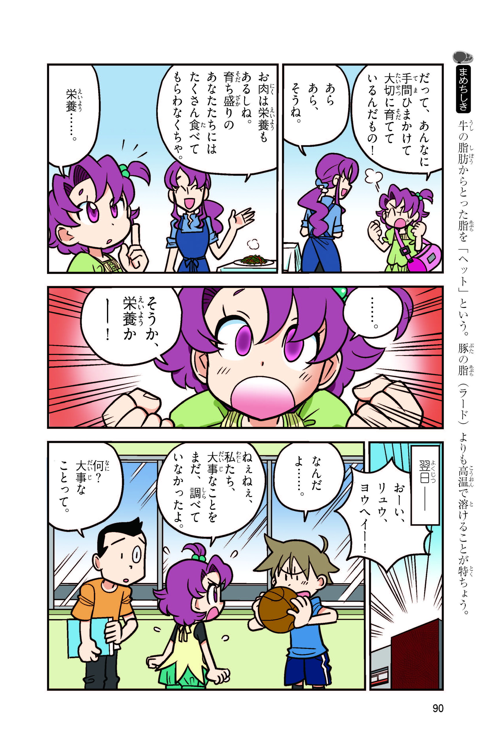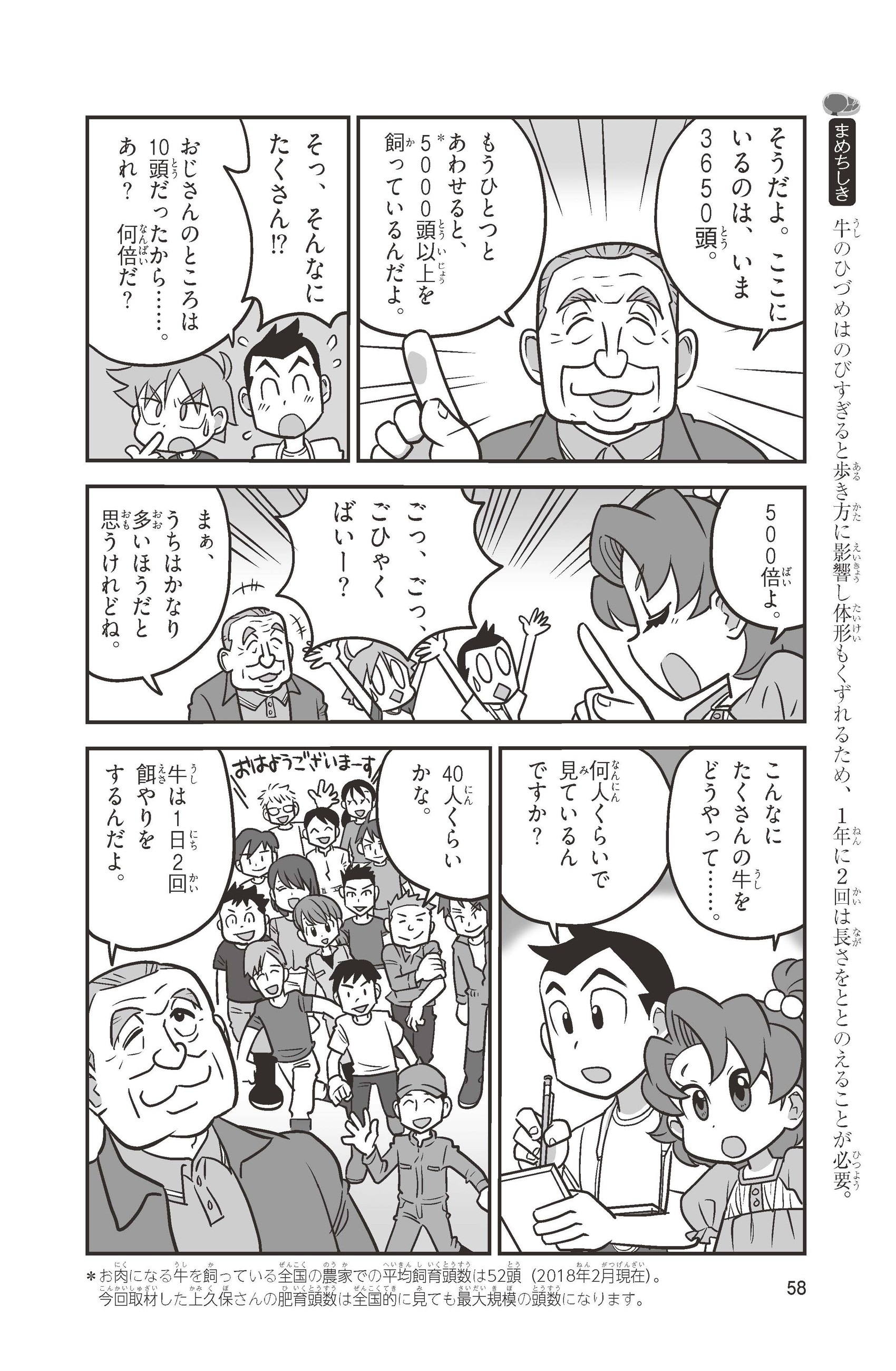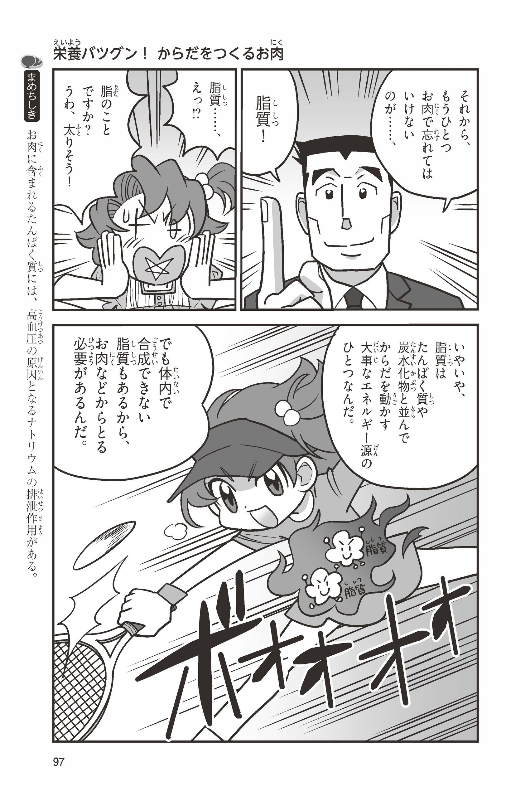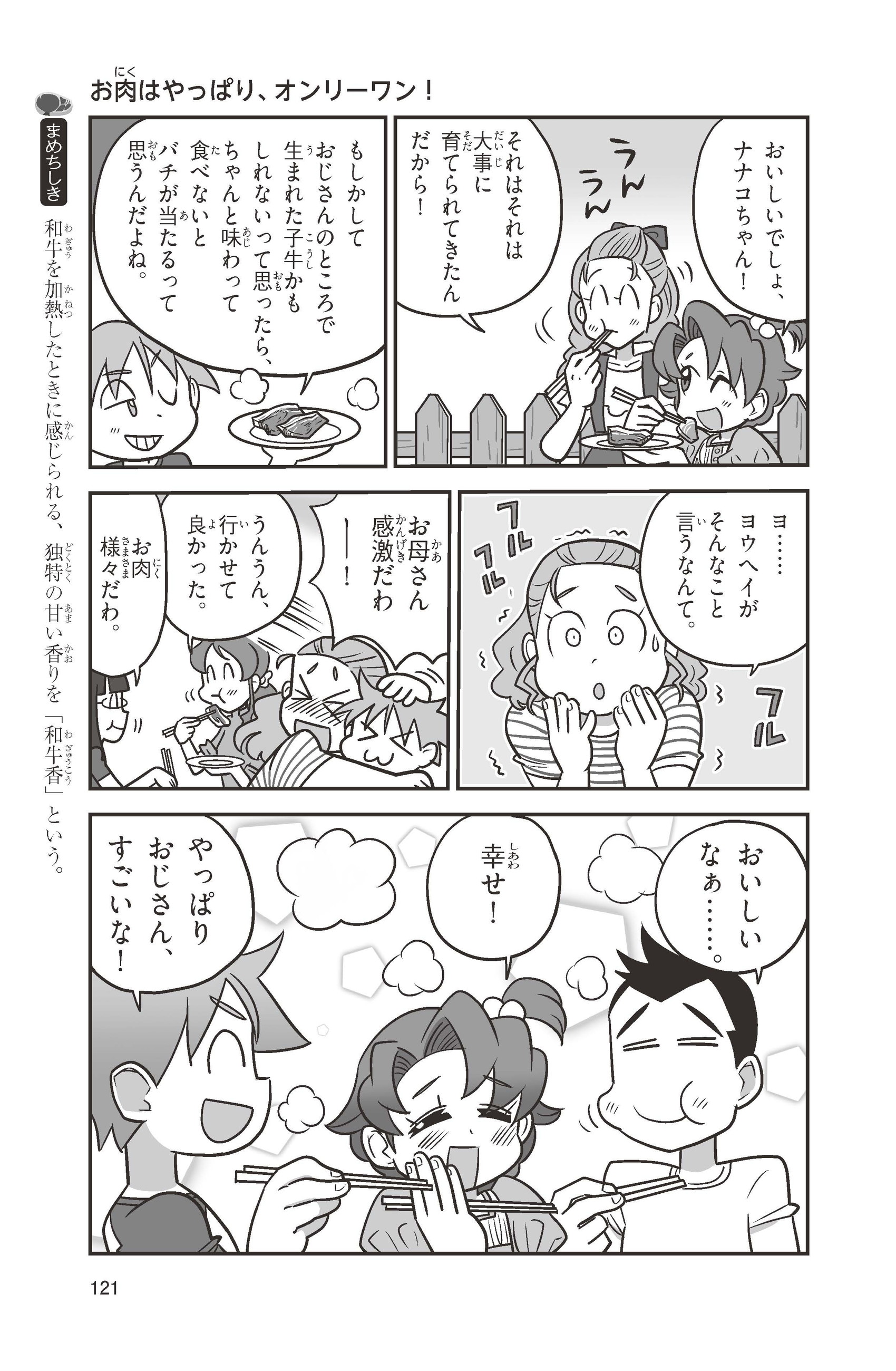 学級委員のリュウ、おませなカレン、ガキ大将(だいしょう)のヨウヘイは、おさななじみの仲良しトリオ。牛肉・豚肉(ぶたにく)・鶏肉(とりにく)のどのお肉が一番かを決めるため、小学5年生の夏休みに3人は牛を育てているヨウヘイのおじさんを訪(たず)ねて鹿児島(かごしま)に向かったよ。どうやってお肉が食卓(しょくたく)に届(とど)くのか、お肉のひみつは何か、最後にたどりついた答えは……?