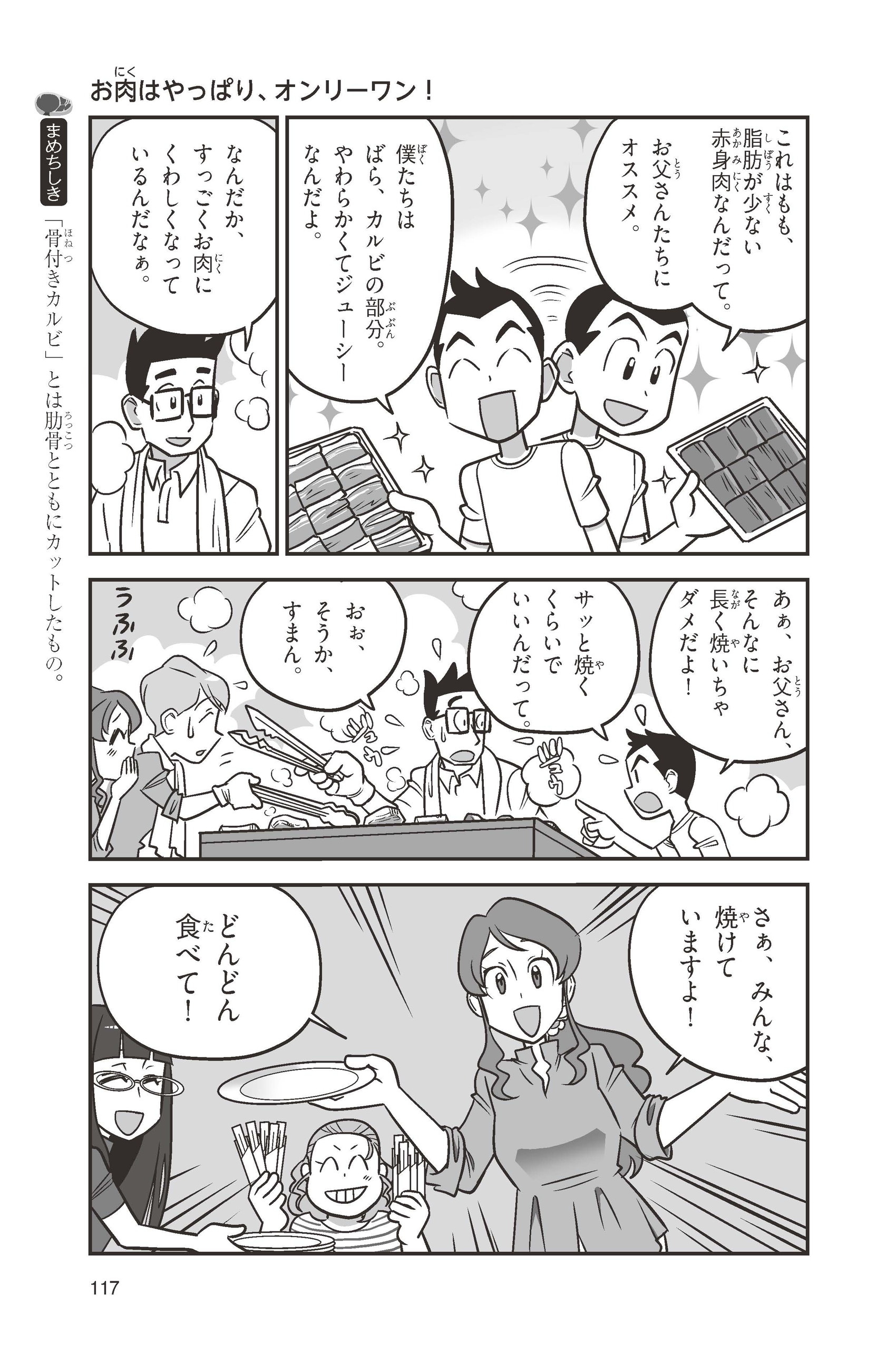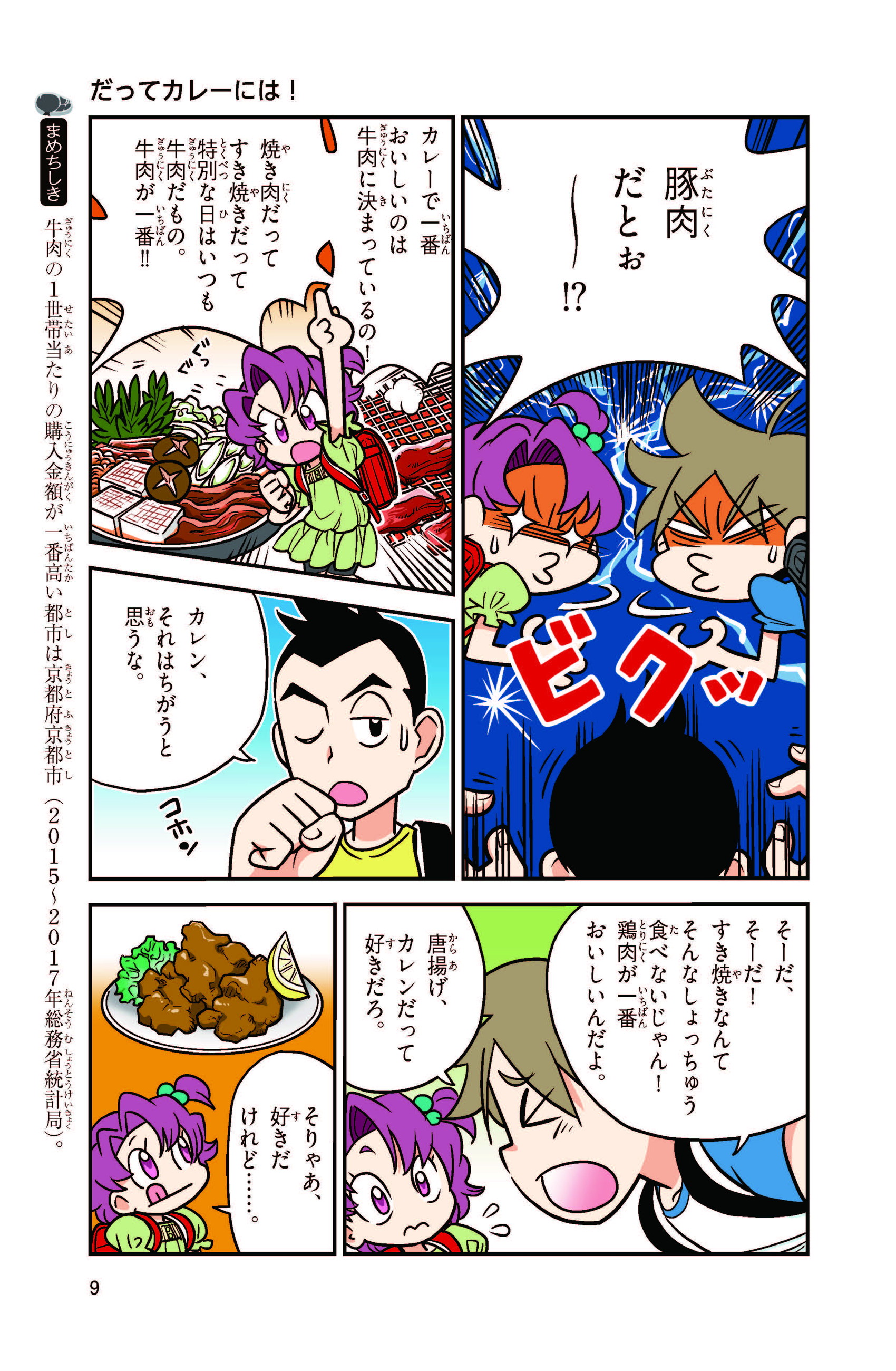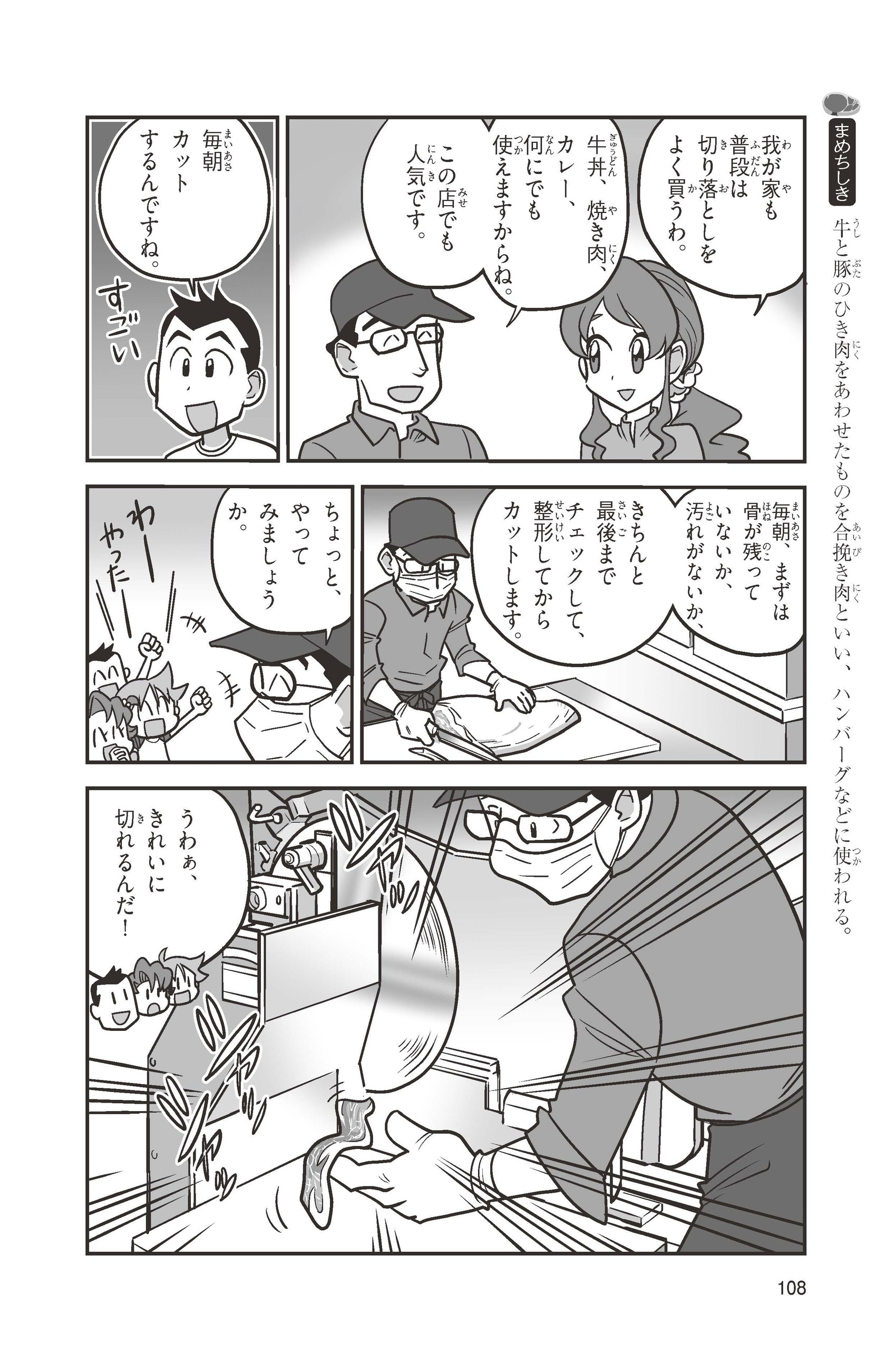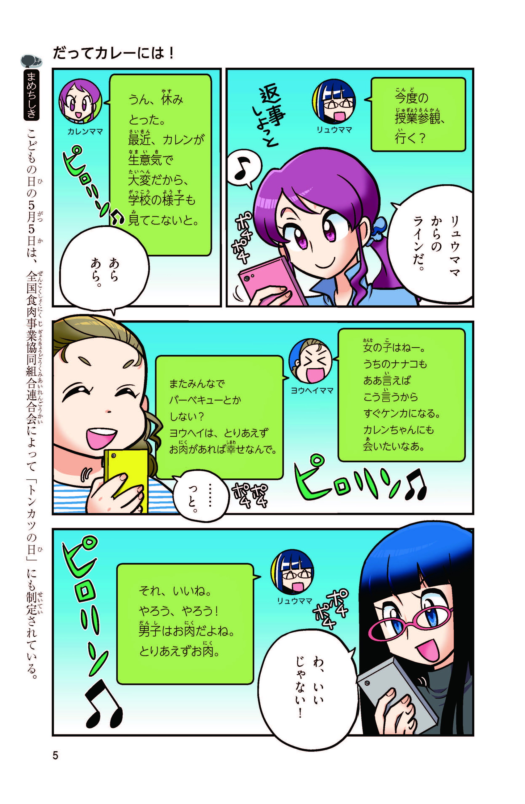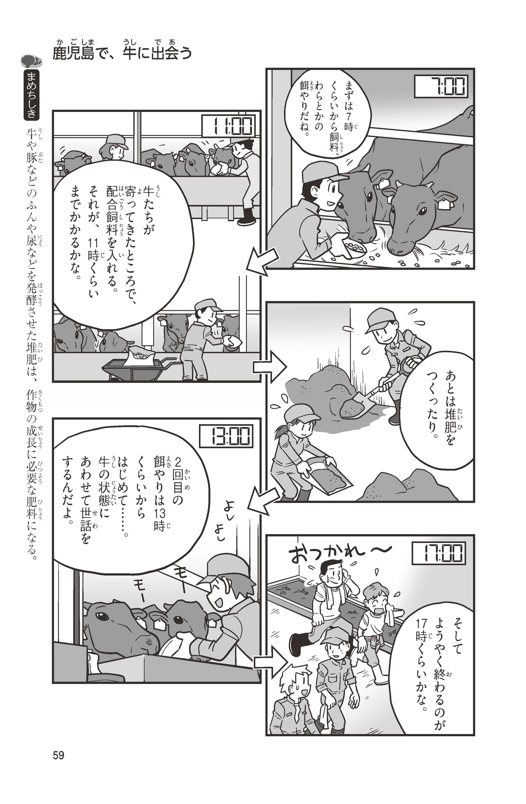 学級委員のリュウ、おませなカレン、ガキ大将(だいしょう)のヨウヘイは、おさななじみの仲良しトリオ。牛肉・豚肉(ぶたにく)・鶏肉(とりにく)のどのお肉が一番かを決めるため、小学5年生の夏休みに3人は牛を育てているヨウヘイのおじさんを訪(たず)ねて鹿児島(かごしま)に向かったよ。どうやってお肉が食卓(しょくたく)に届(とど)くのか、お肉のひみつは何か、最後にたどりついた答えは……?