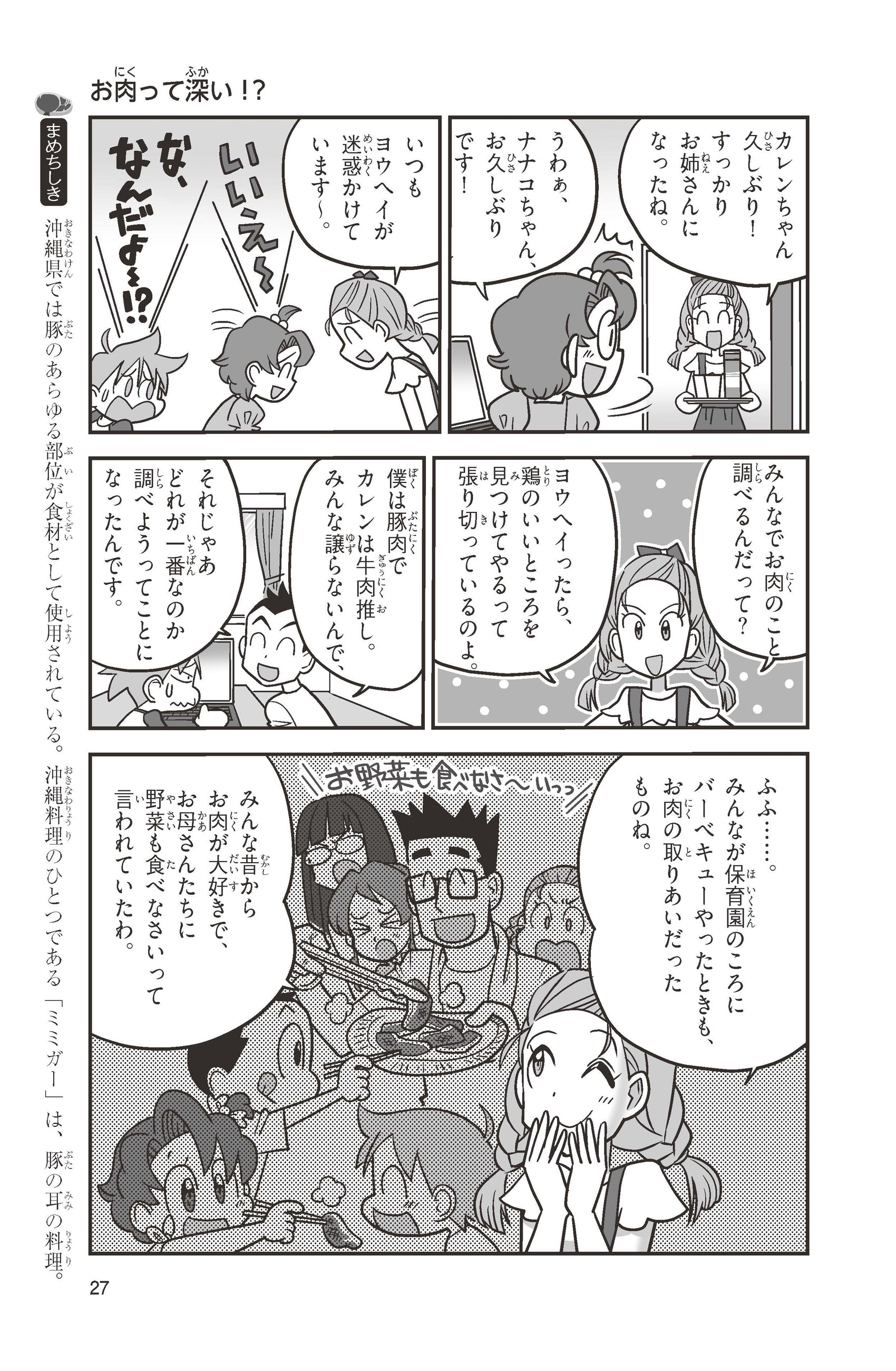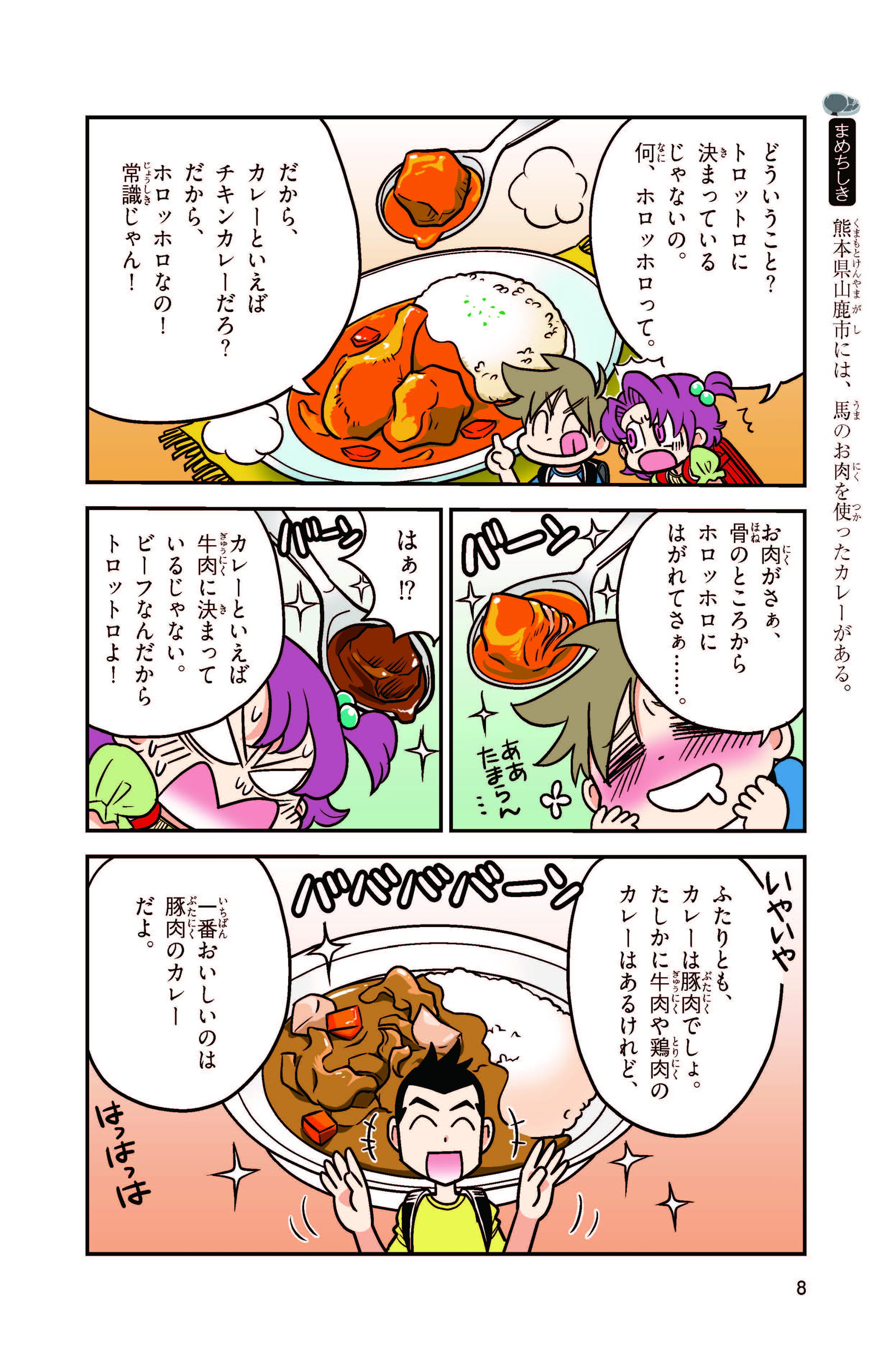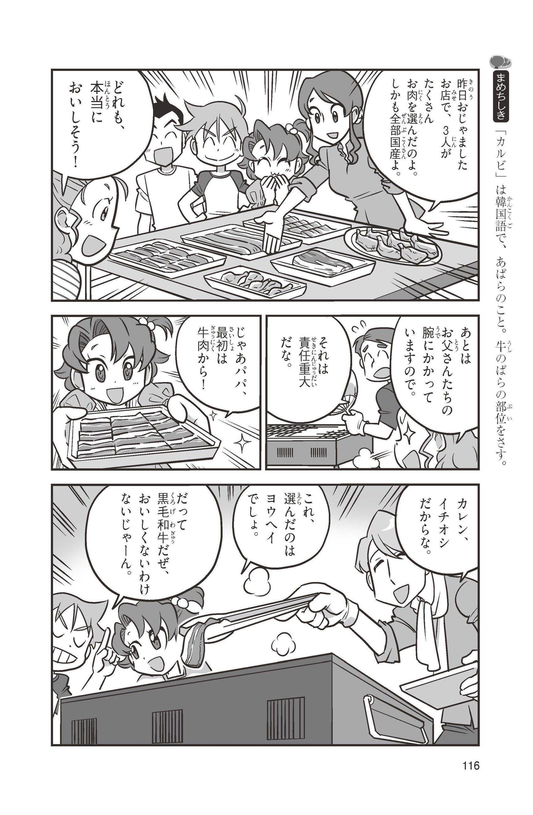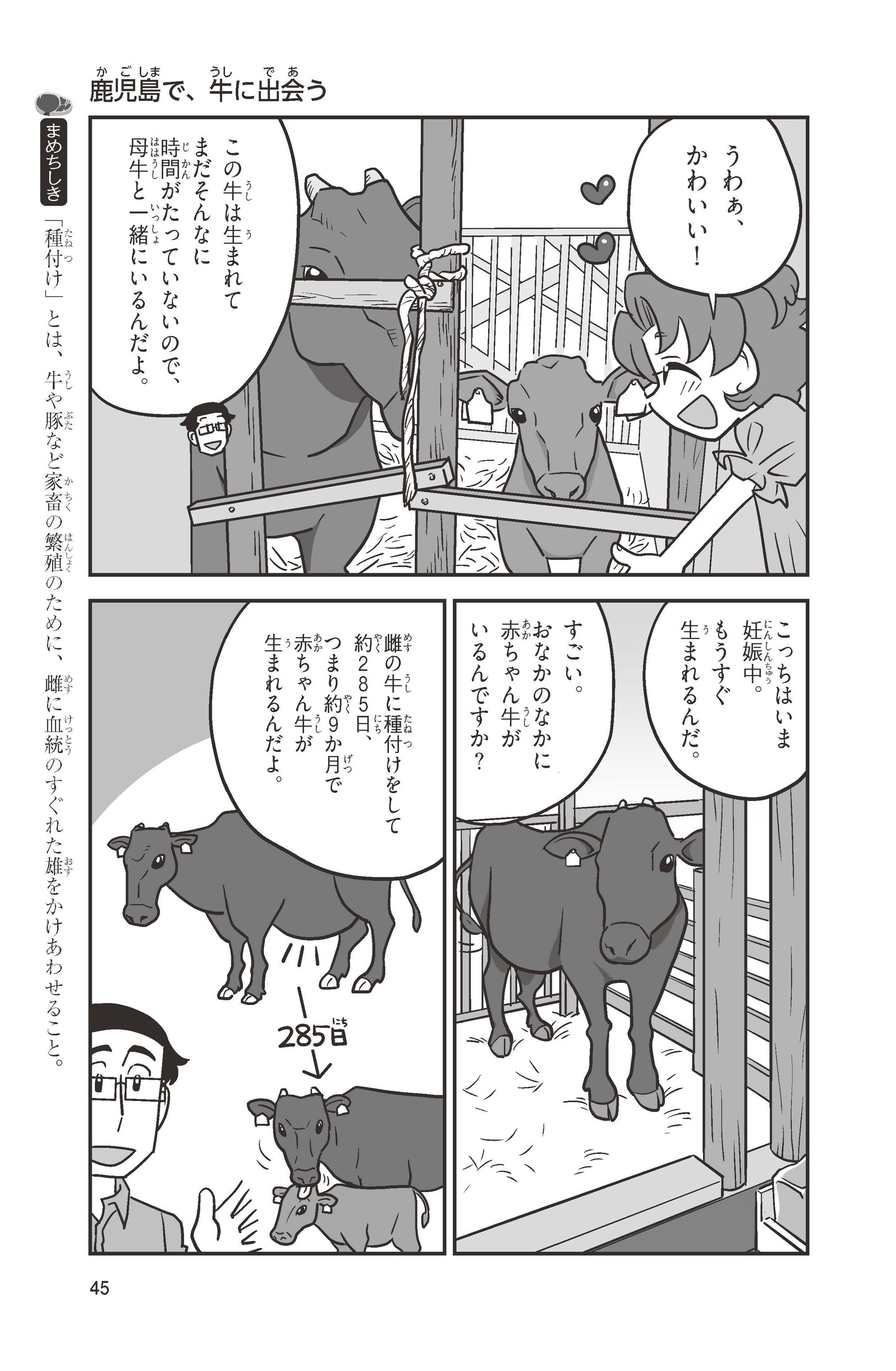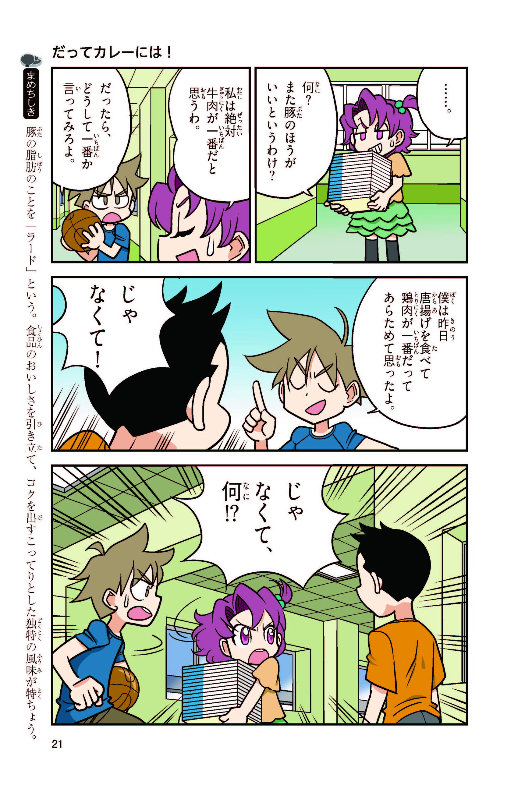 学級委員のリュウ、おませなカレン、ガキ大将(だいしょう)のヨウヘイは、おさななじみの仲良しトリオ。牛肉・豚肉(ぶたにく)・鶏肉(とりにく)のどのお肉が一番かを決めるため、小学5年生の夏休みに3人は牛を育てているヨウヘイのおじさんを訪(たず)ねて鹿児島(かごしま)に向かったよ。どうやってお肉が食卓(しょくたく)に届(とど)くのか、お肉のひみつは何か、最後にたどりついた答えは……?
