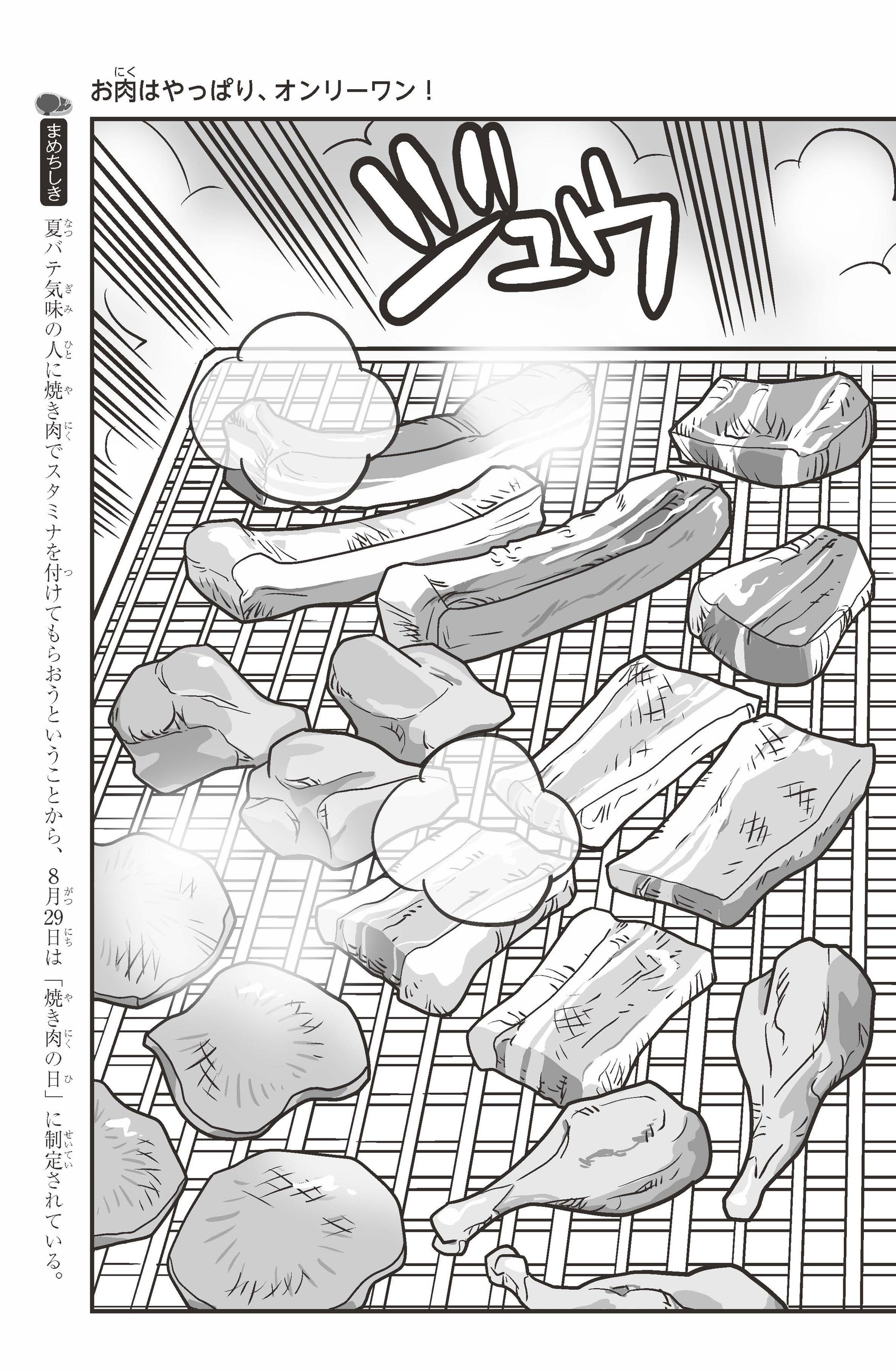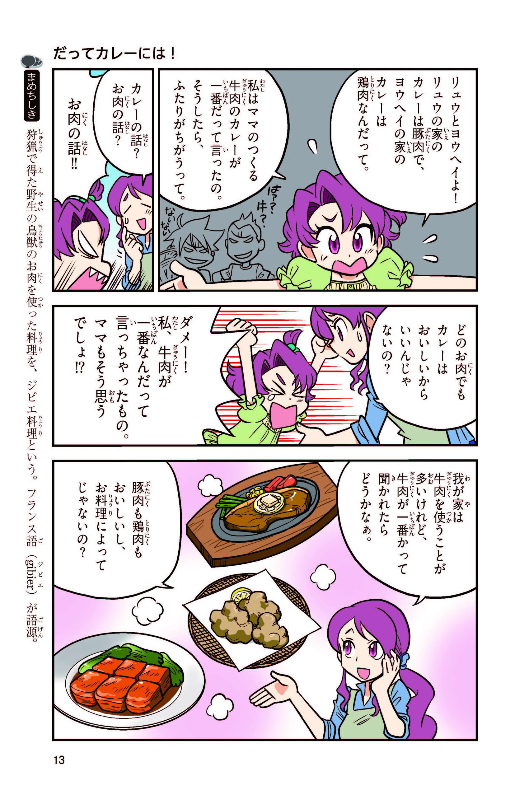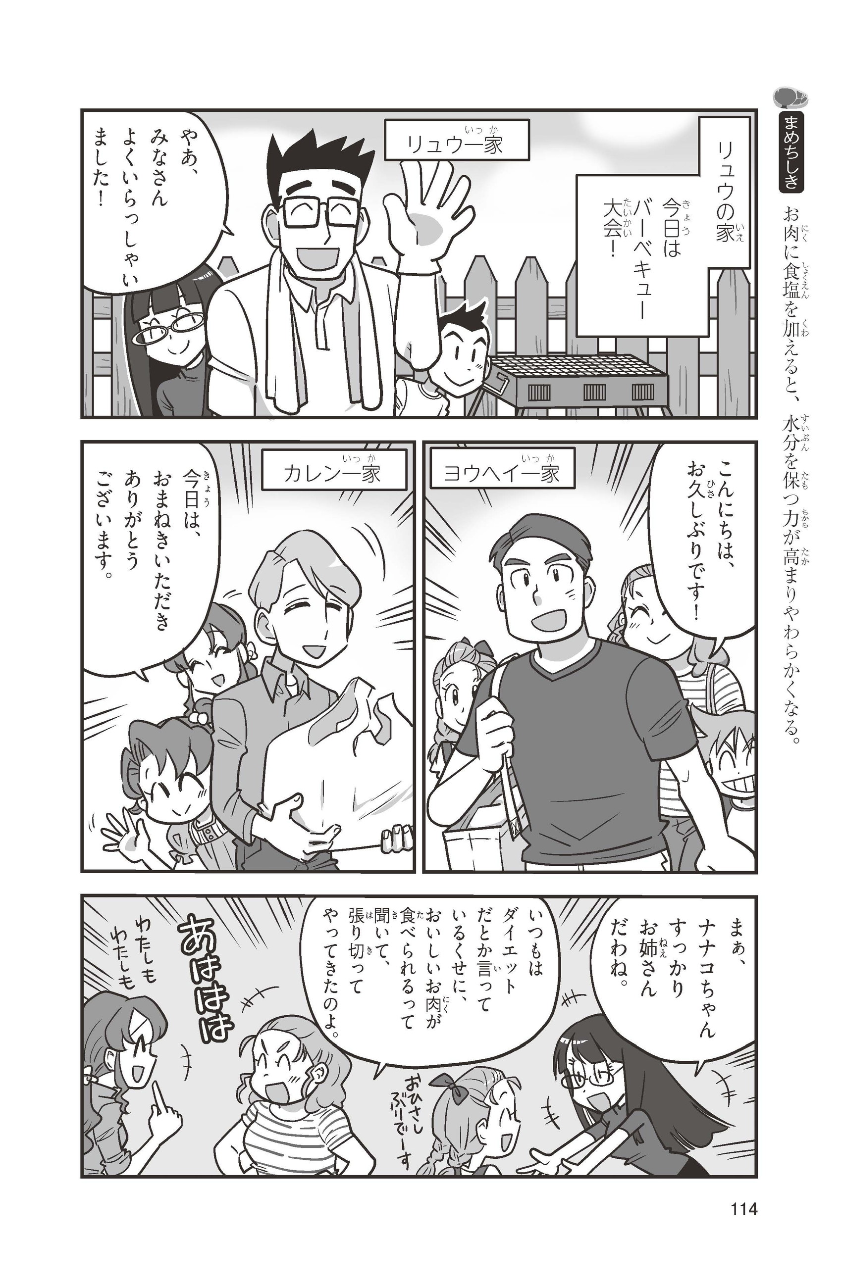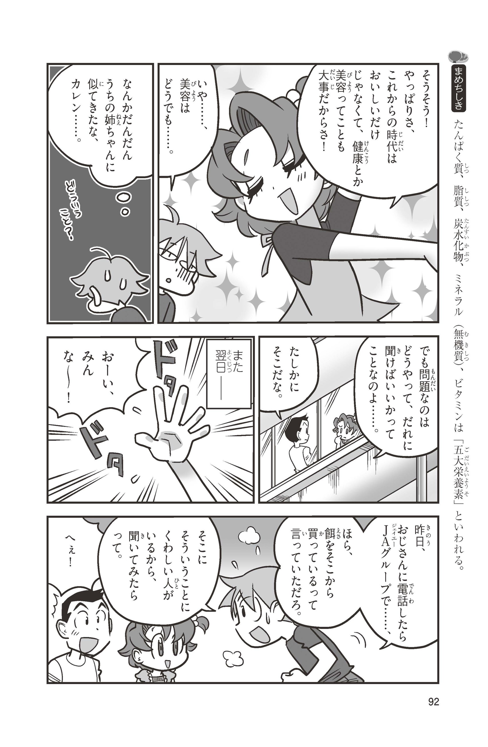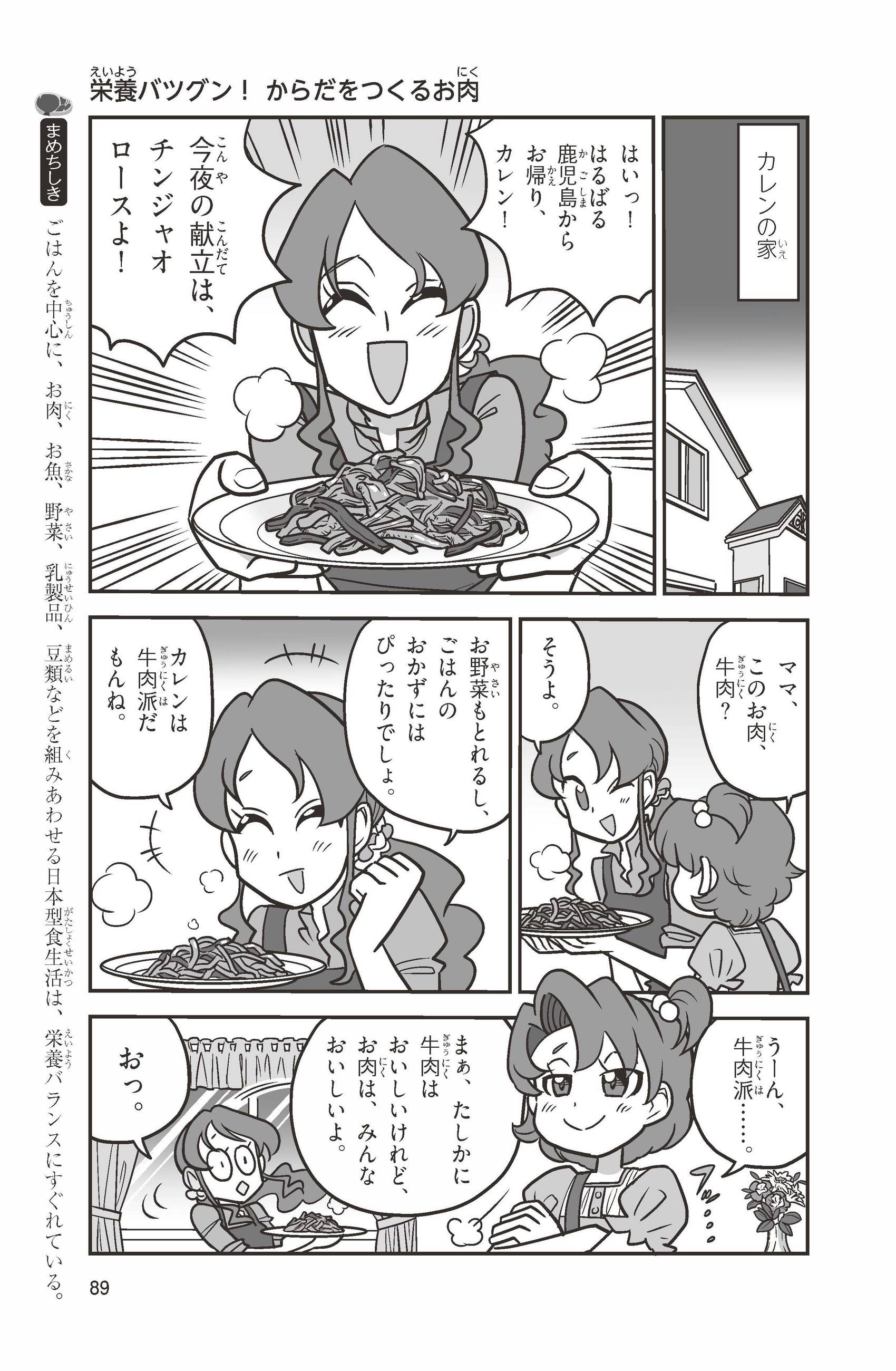 学級委員のリュウ、おませなカレン、ガキ大将(だいしょう)のヨウヘイは、おさななじみの仲良しトリオ。牛肉・豚肉(ぶたにく)・鶏肉(とりにく)のどのお肉が一番かを決めるため、小学5年生の夏休みに3人は牛を育てているヨウヘイのおじさんを訪(たず)ねて鹿児島(かごしま)に向かったよ。どうやってお肉が食卓(しょくたく)に届(とど)くのか、お肉のひみつは何か、最後にたどりついた答えは……?