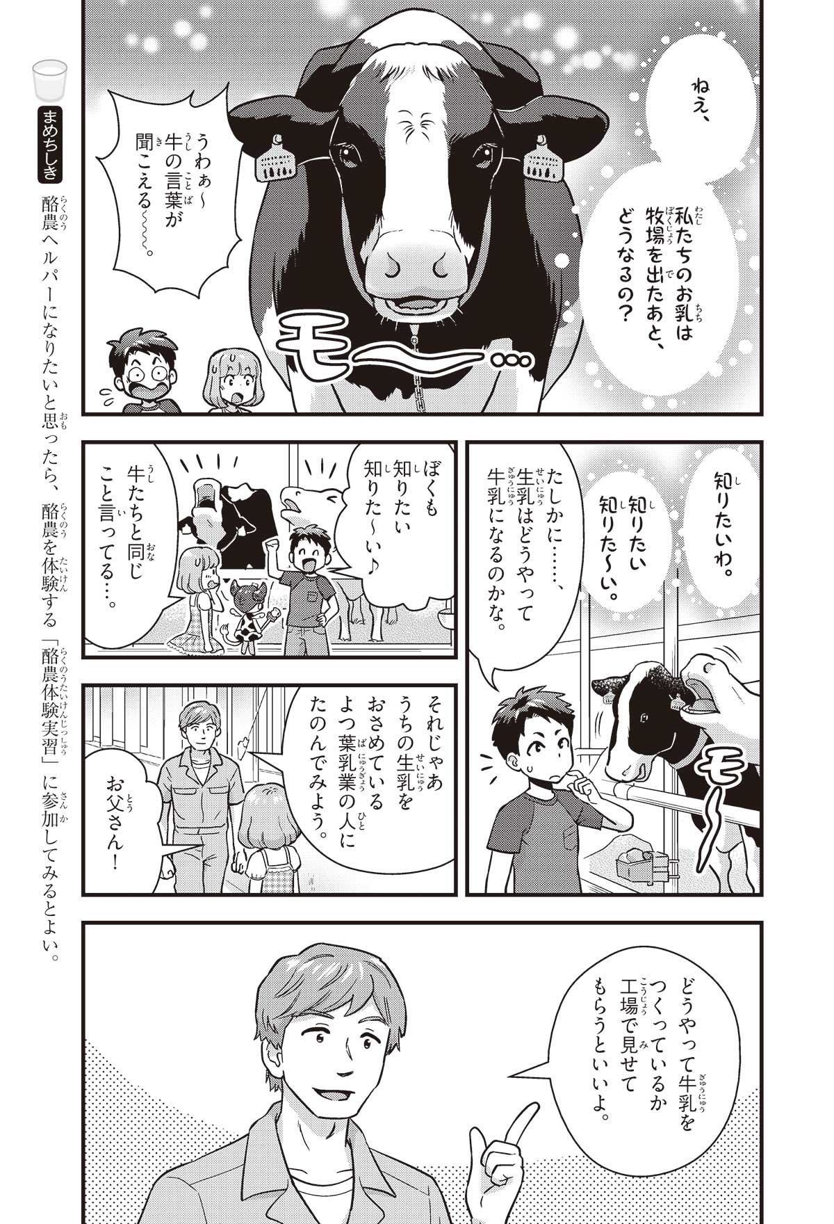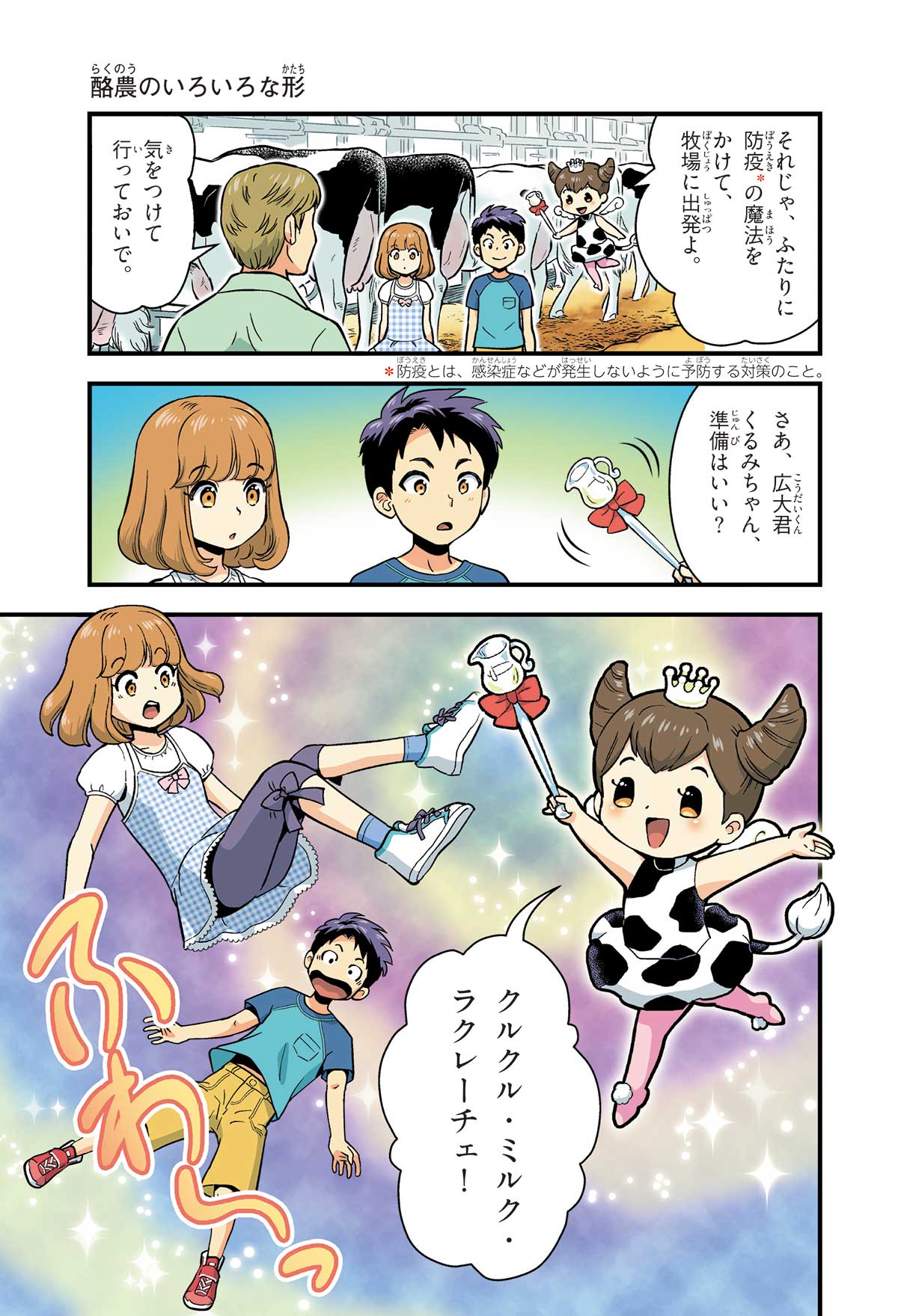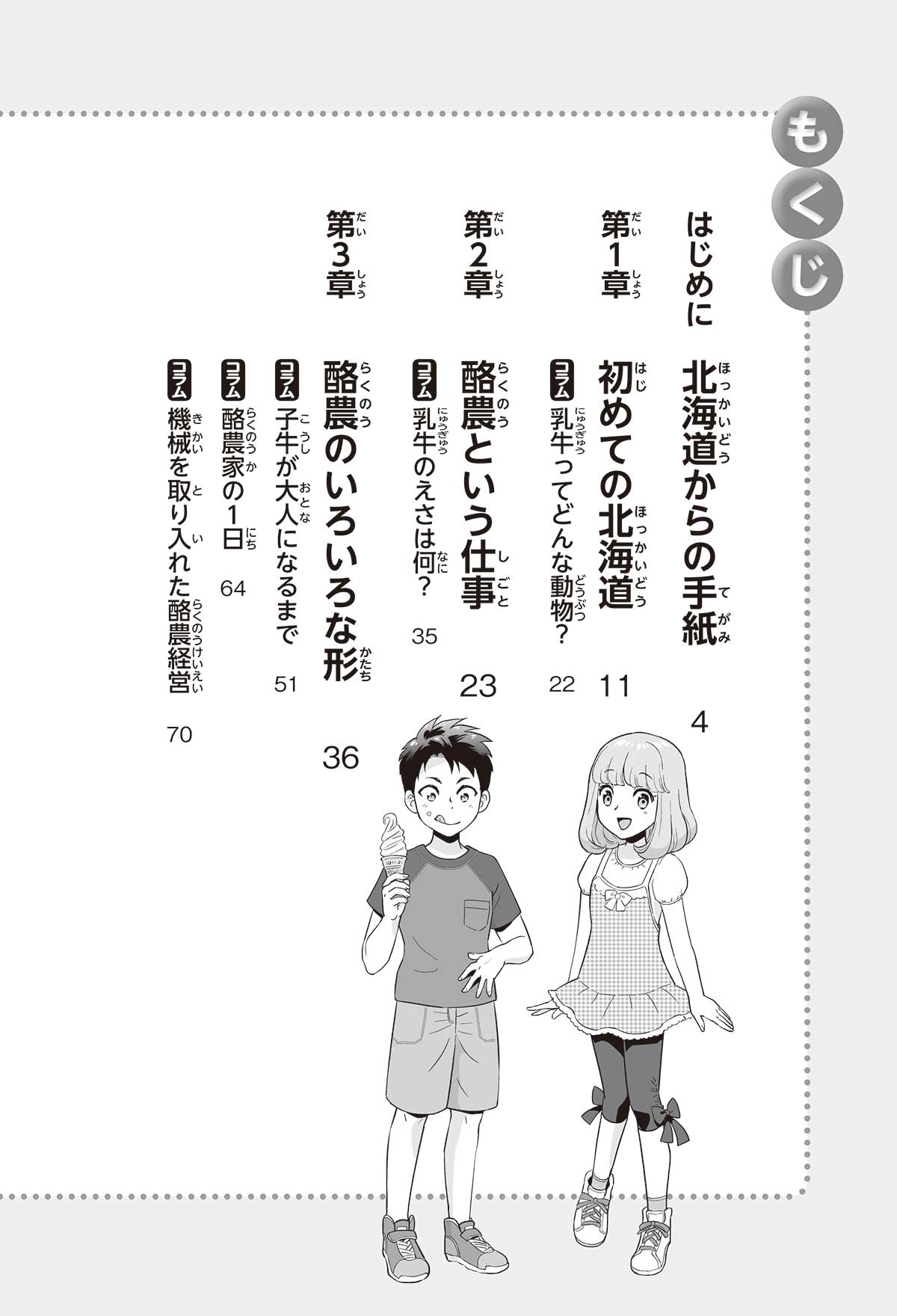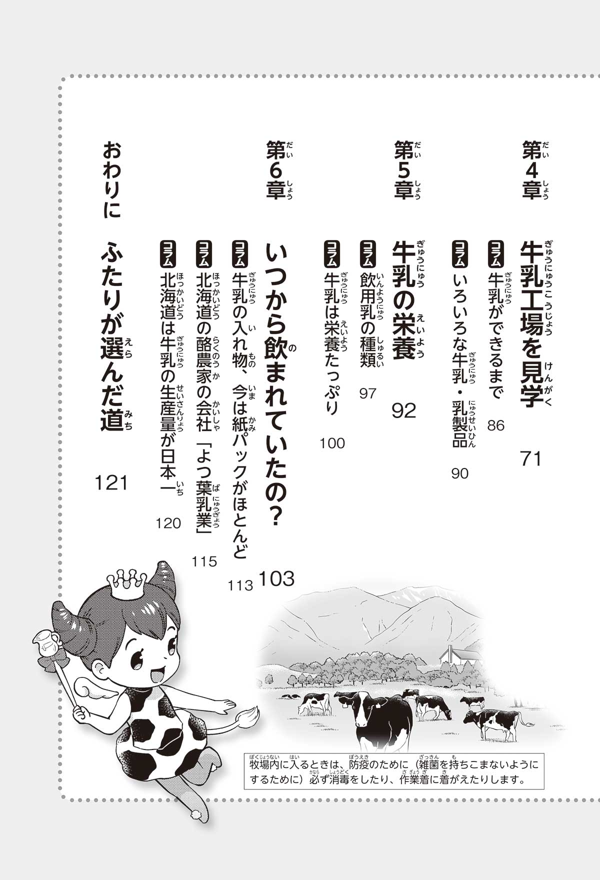小学5年生の広大(こうだい)は夏休みに、北海道に引っ越した幼なじみのくるみの家にホームステイすることに。くるみの家は牧場で、たくさんの乳牛を飼っているんだって! 給食でおなじみの牛乳だけど、牛乳にも種類があるって知ってる? 乳牛を飼っている牧場はどんな所かな? 牛乳はどうやってつくるのかな? この本を読めば、牛乳や酪農のことがとてもよくわかるよ!