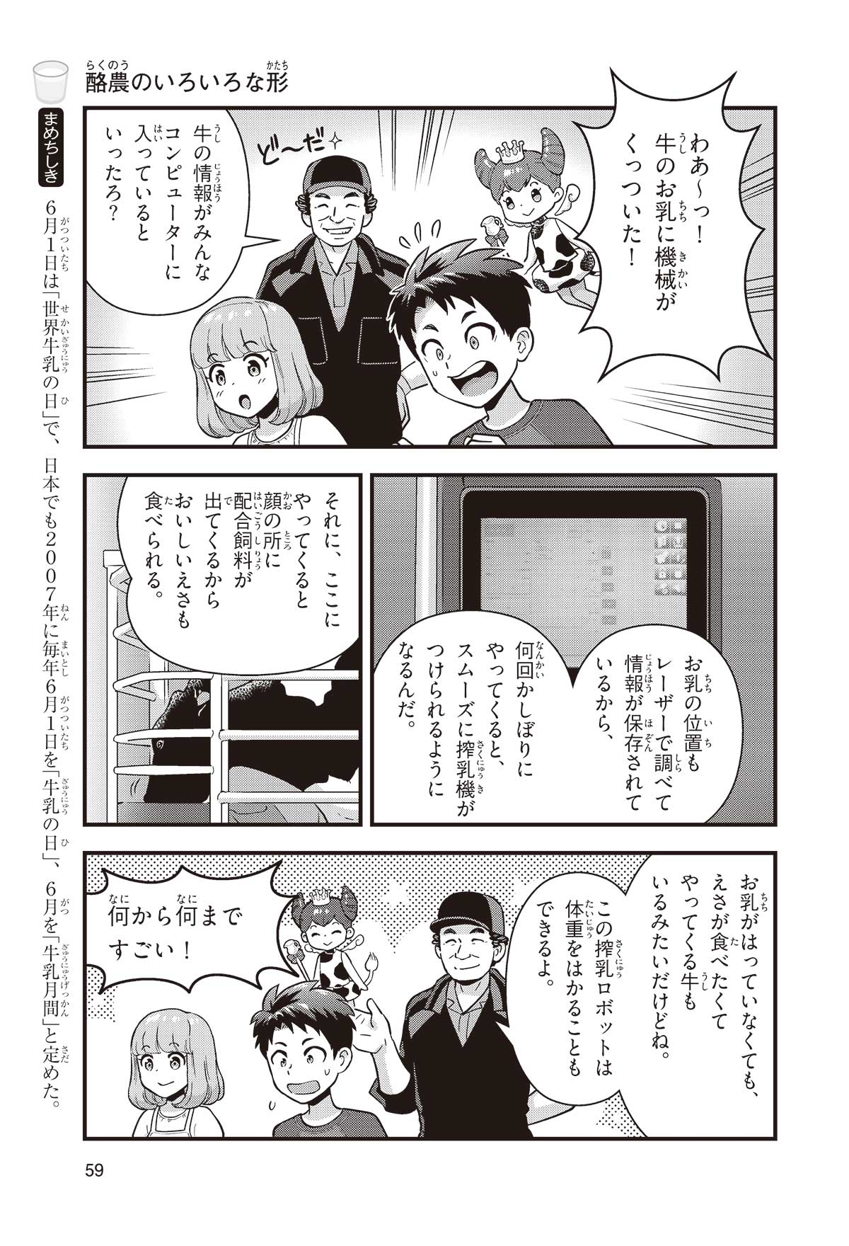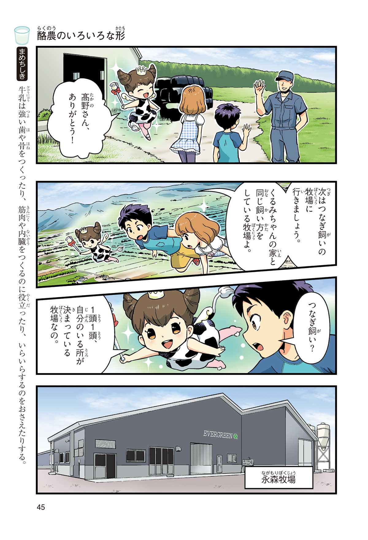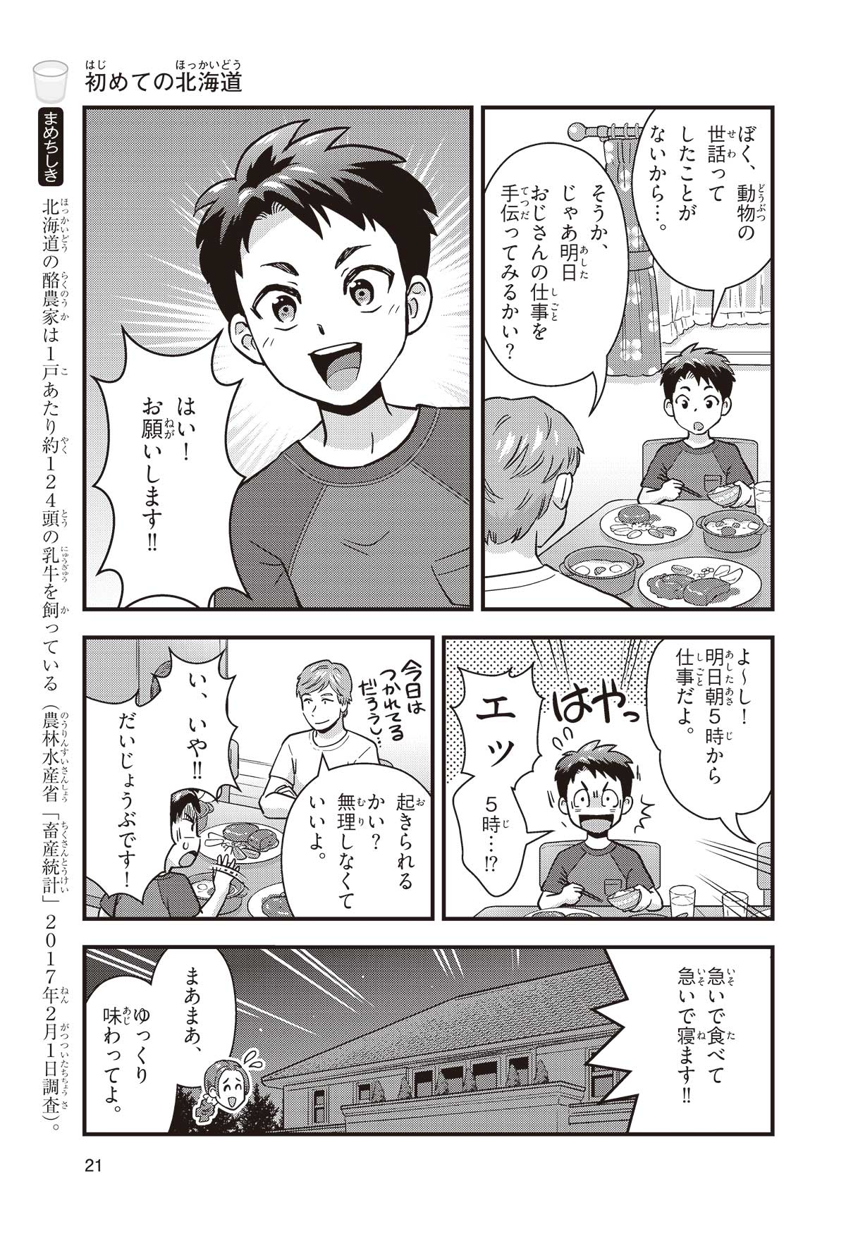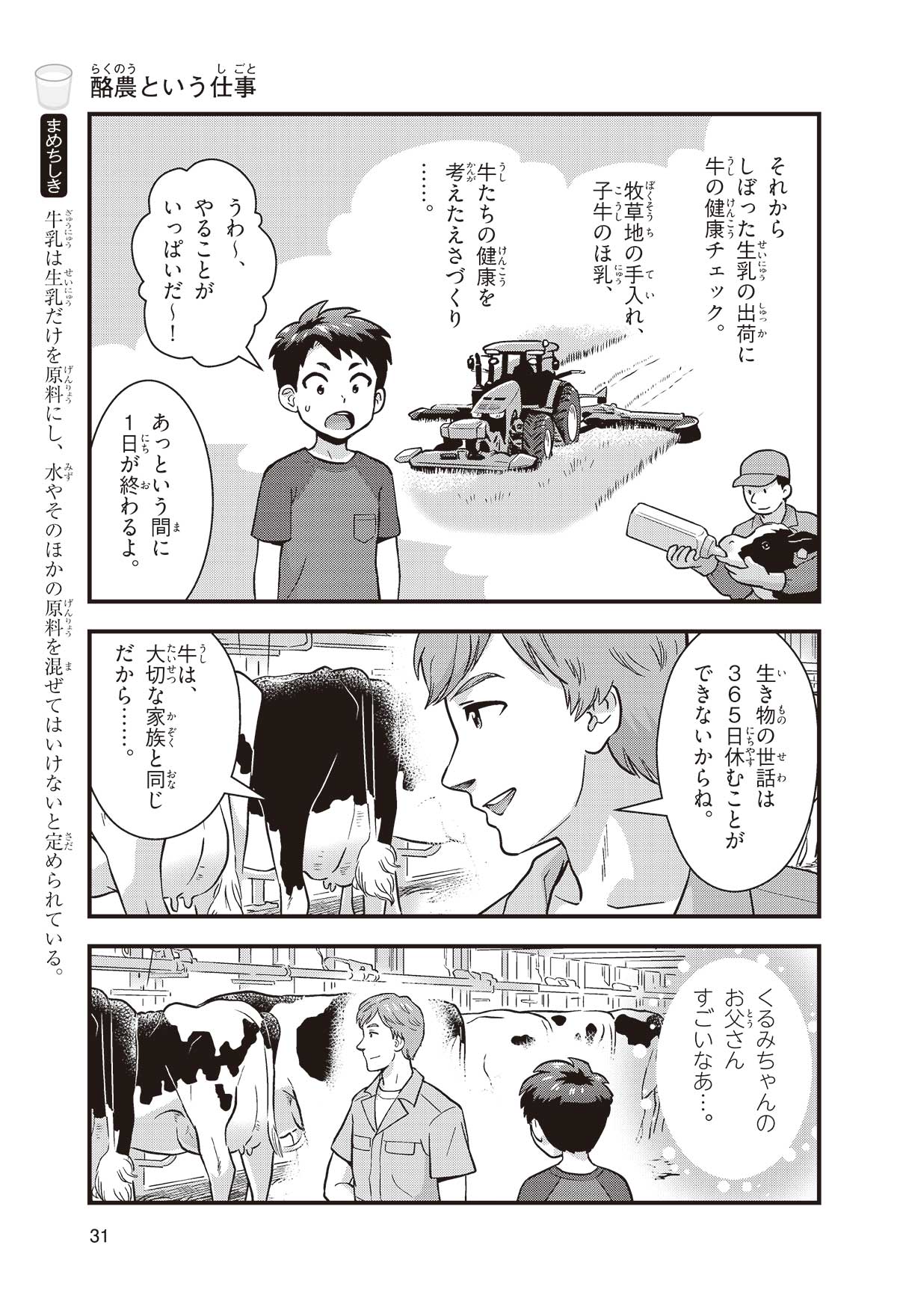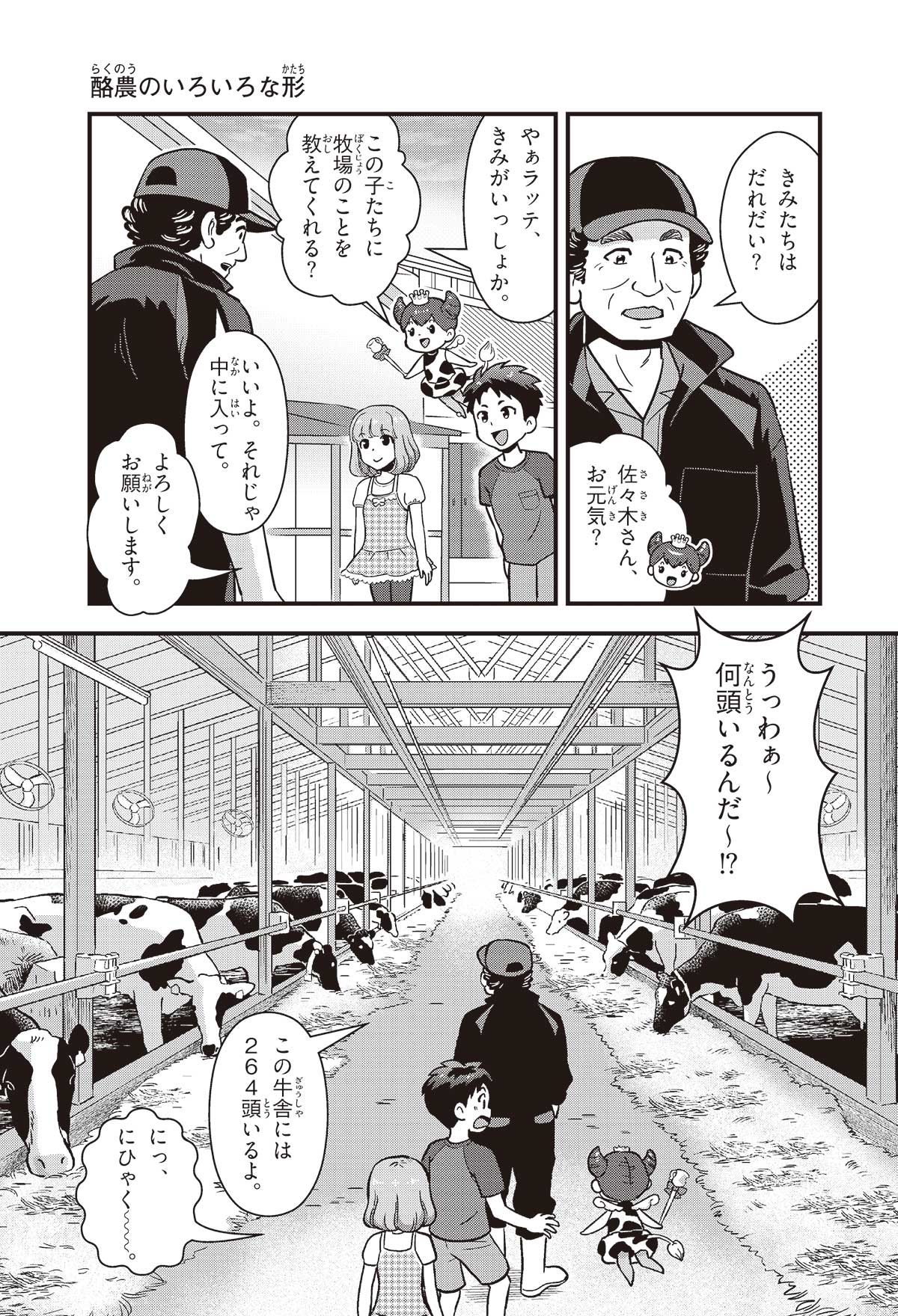 小学5年生の広大(こうだい)は夏休みに、北海道に引っ越した幼なじみのくるみの家にホームステイすることに。くるみの家は牧場で、たくさんの乳牛を飼っているんだって! 給食でおなじみの牛乳だけど、牛乳にも種類があるって知ってる? 乳牛を飼っている牧場はどんな所かな? 牛乳はどうやってつくるのかな? この本を読めば、牛乳や酪農のことがとてもよくわかるよ!
