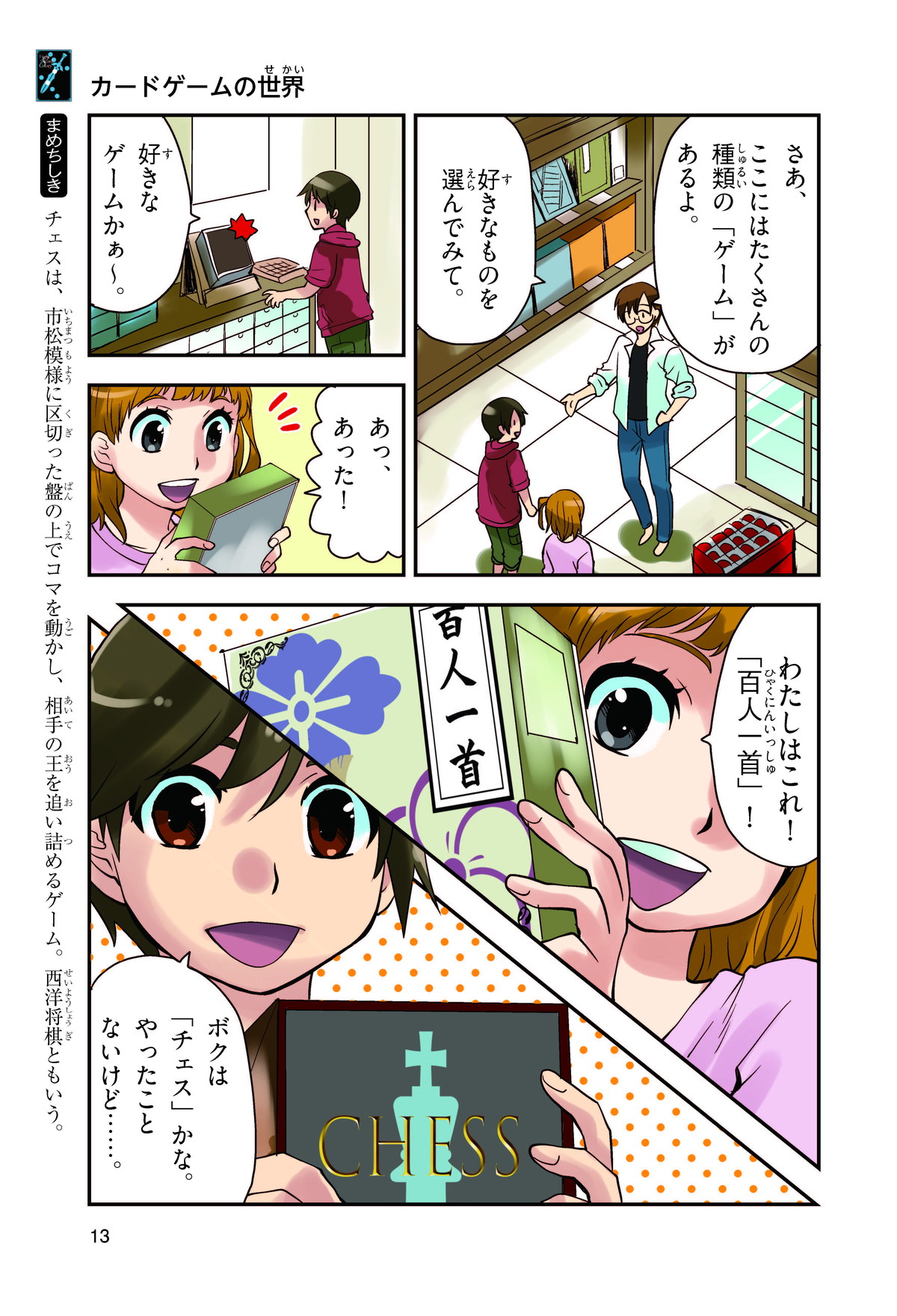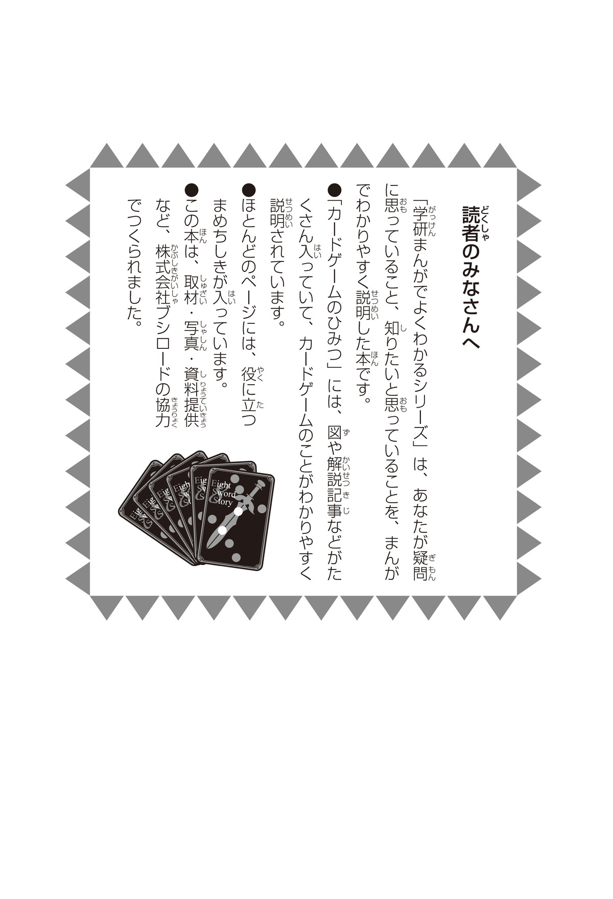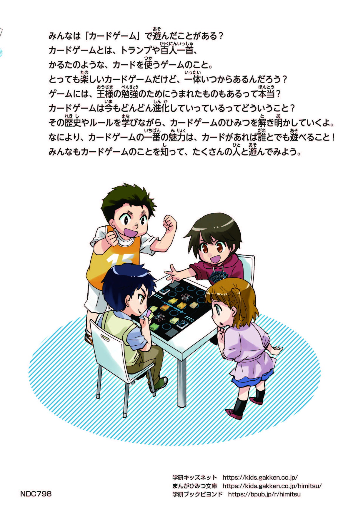 絵をかいてカードをつくるのが大好きな、小学5年生のタケト。転校ばかりで友達ができないことになやんでいたけど、カードを使ったゲーム「カードゲーム」に出会うよ。カードゲームの一番の魅力(みりょく)は、カードがあれば誰とでも遊べること! トランプや百人一首などが有名だけど、いったいいつからあるのかな? 進化した最新のカードゲームって? この本で歴史やルールを学ぼう!