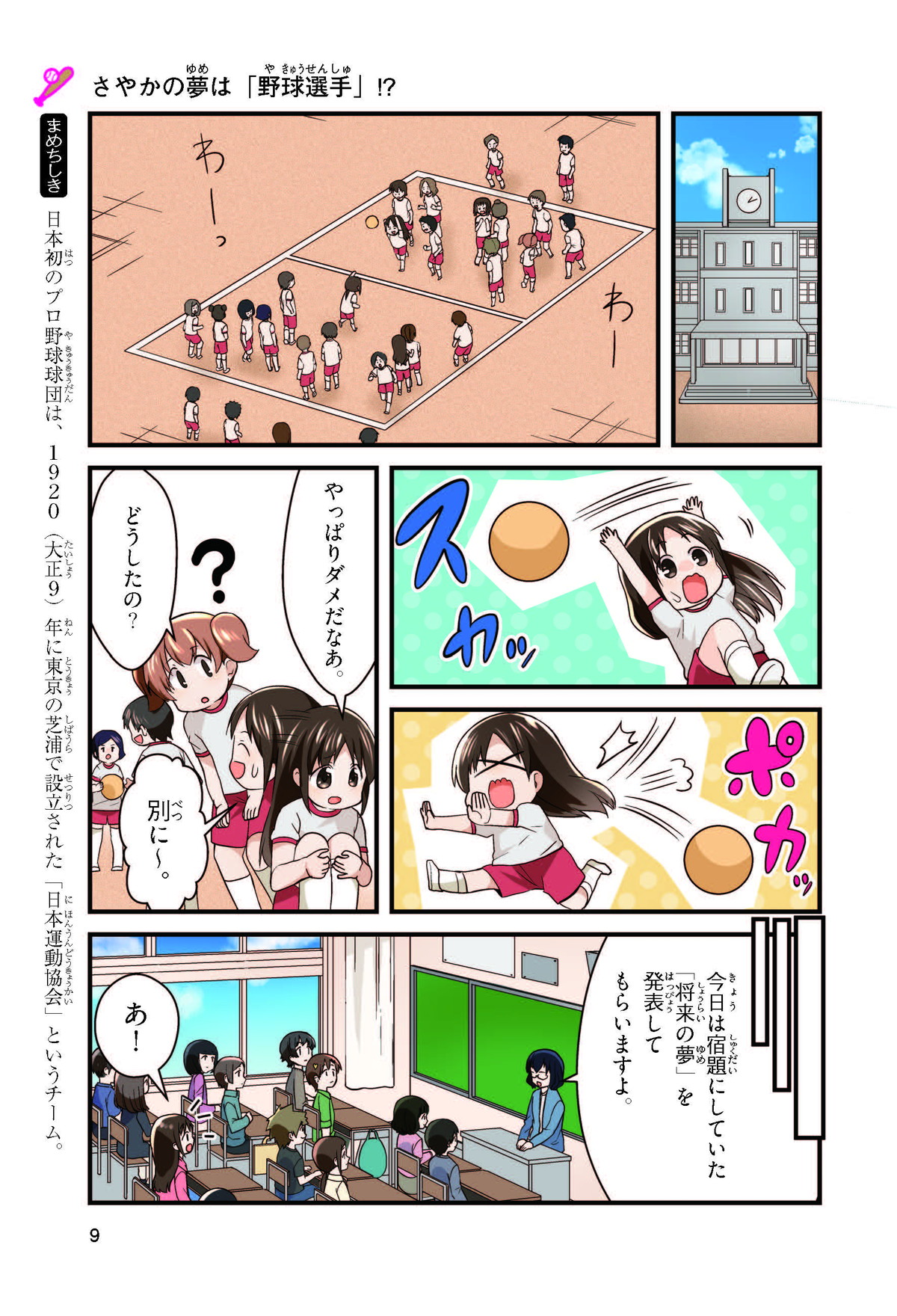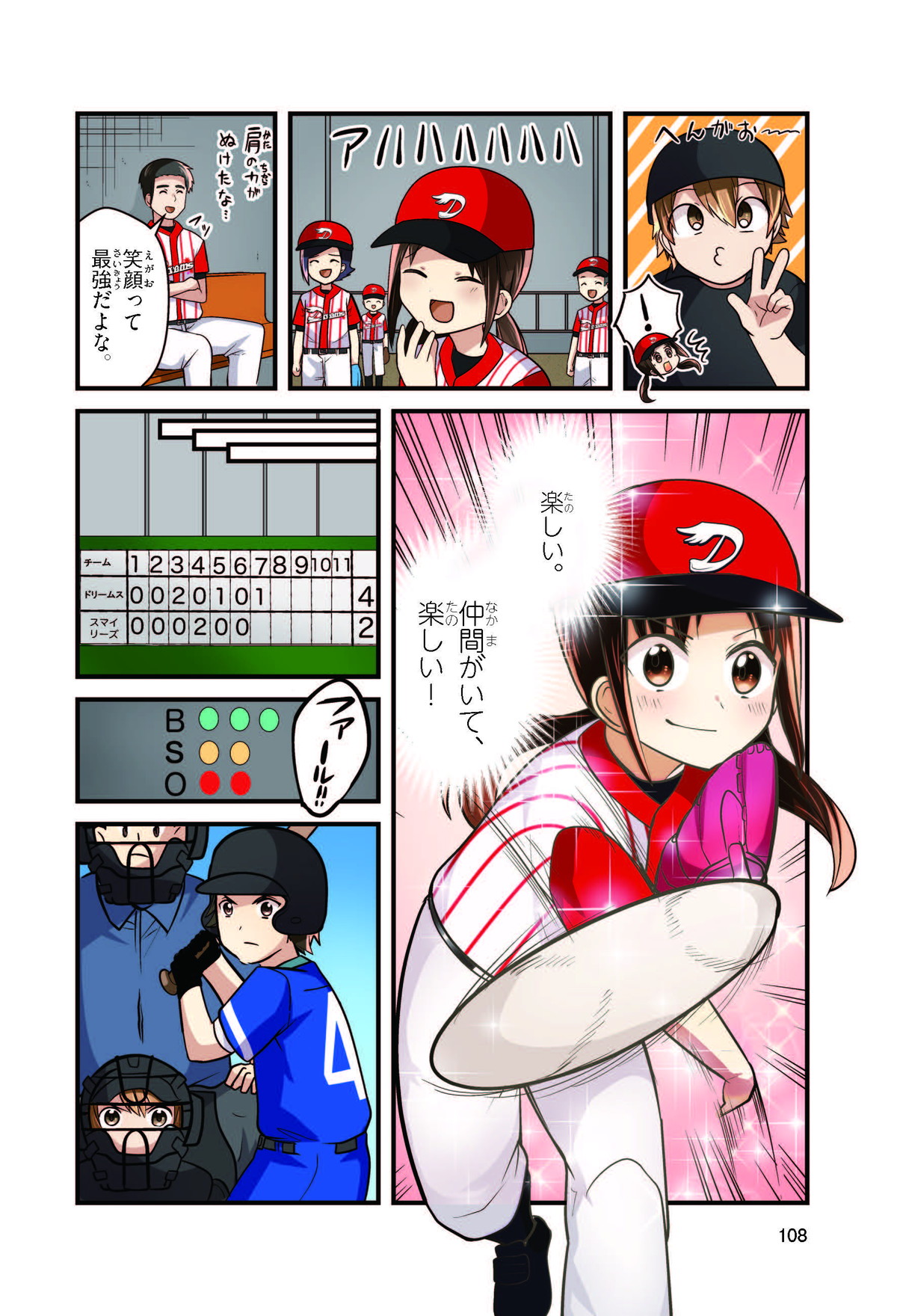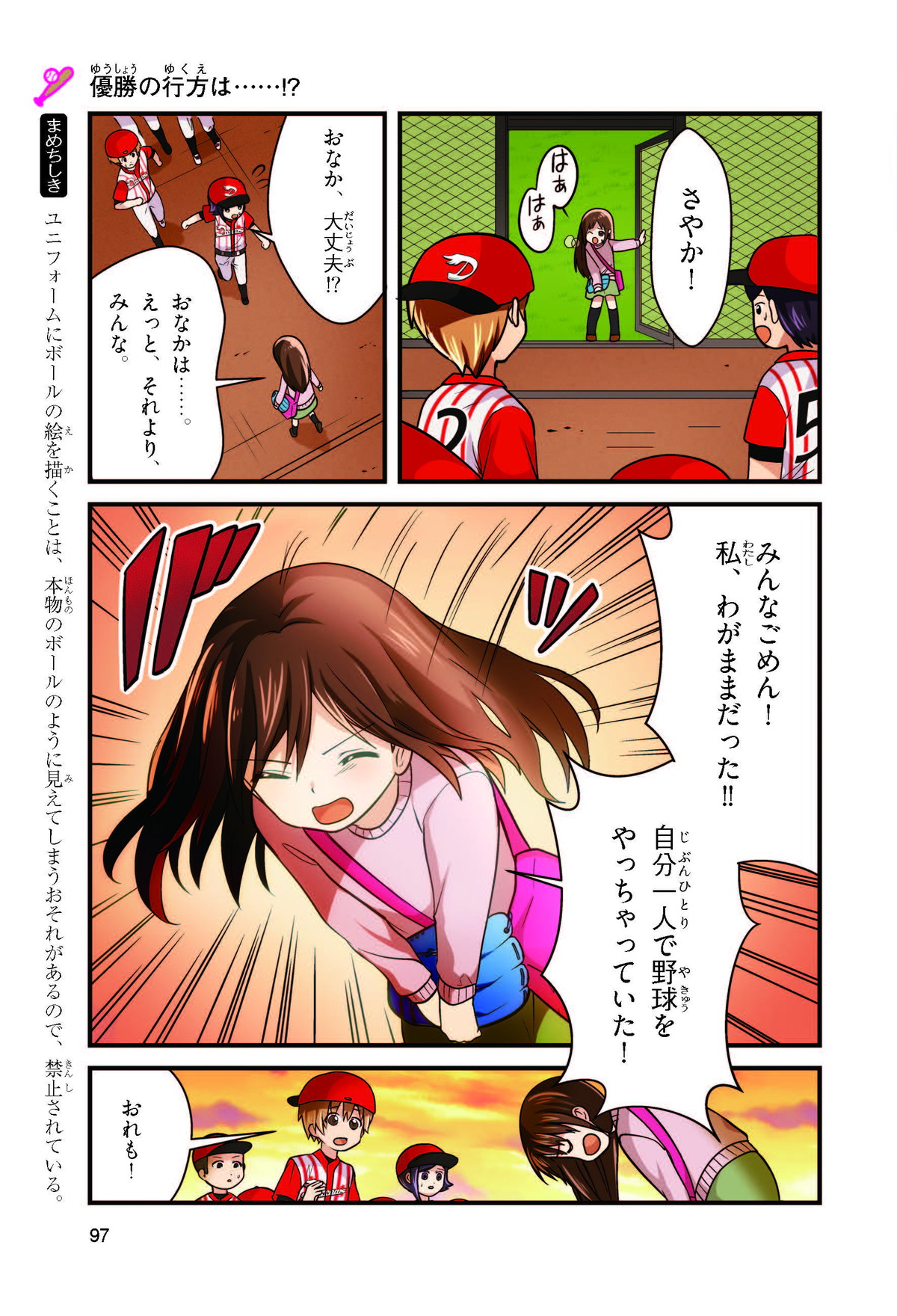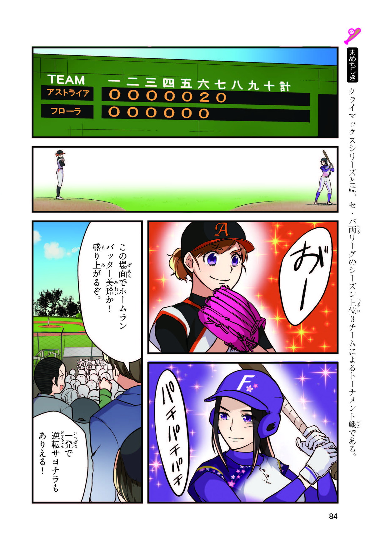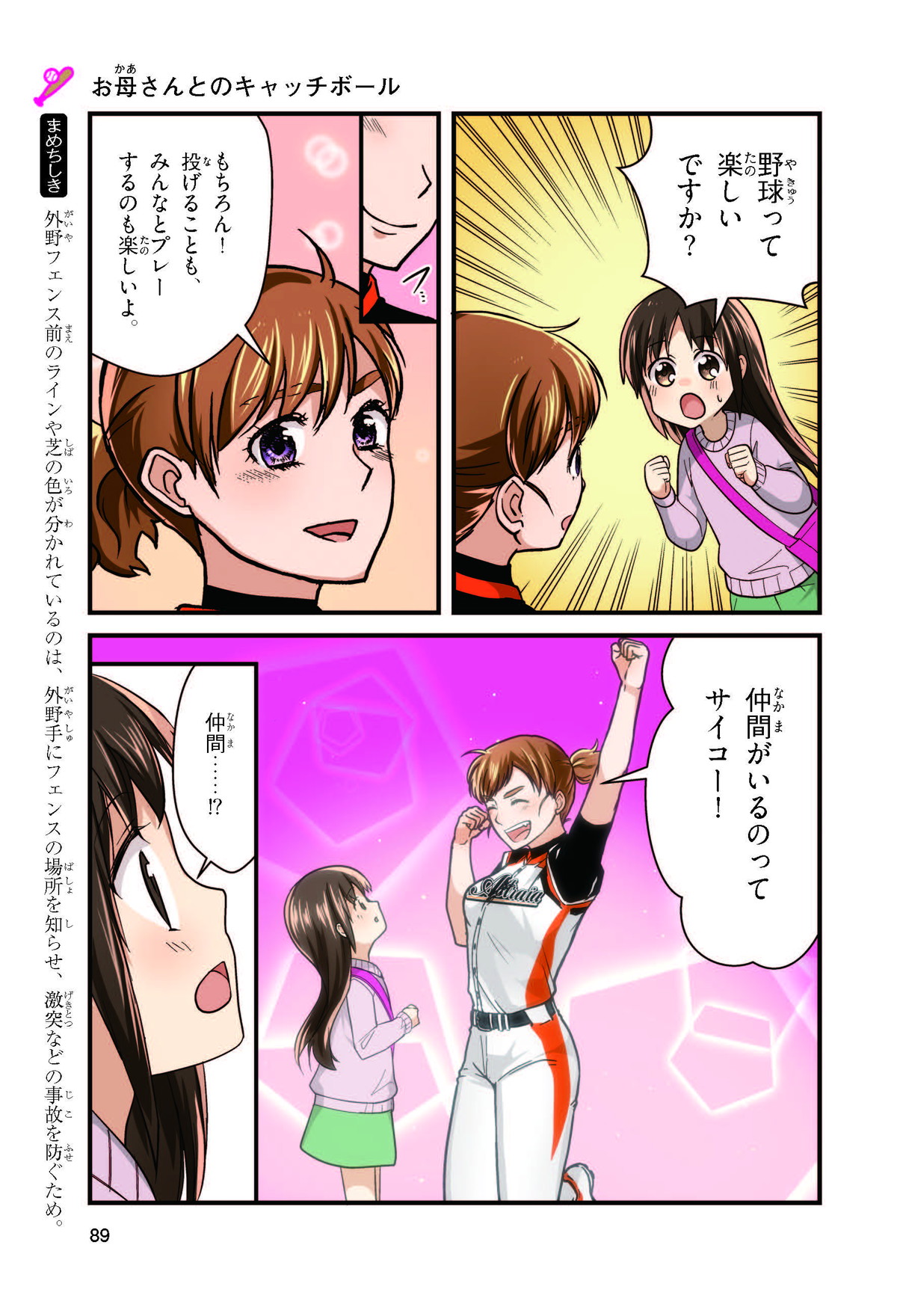 小学6年生のさやかは運動が大の苦手だけど、野球が大好き! ある日、友だちのゆいから、女の子も野球選手になれると聞いて、もっと野球のことが知りたくなるよ。野球をがんばる女の子たちが将来活躍(かつやく)する場として、女子プロ野球チームもあるんだ。笑顔いっぱいのプレー、かたいチームワーク、熱い友情……この本には女子野球の魅力(みりょく)がつまっているよ!
