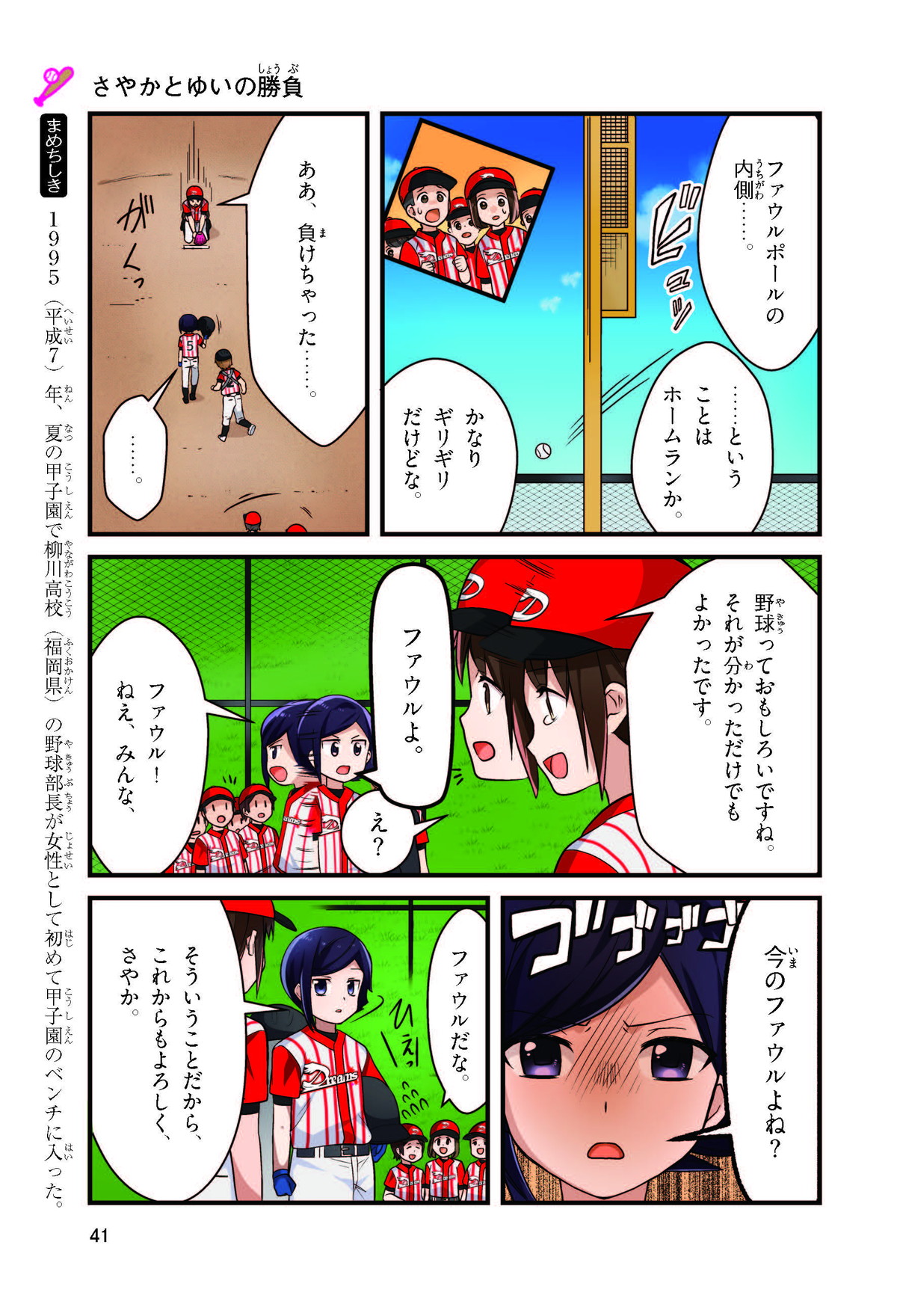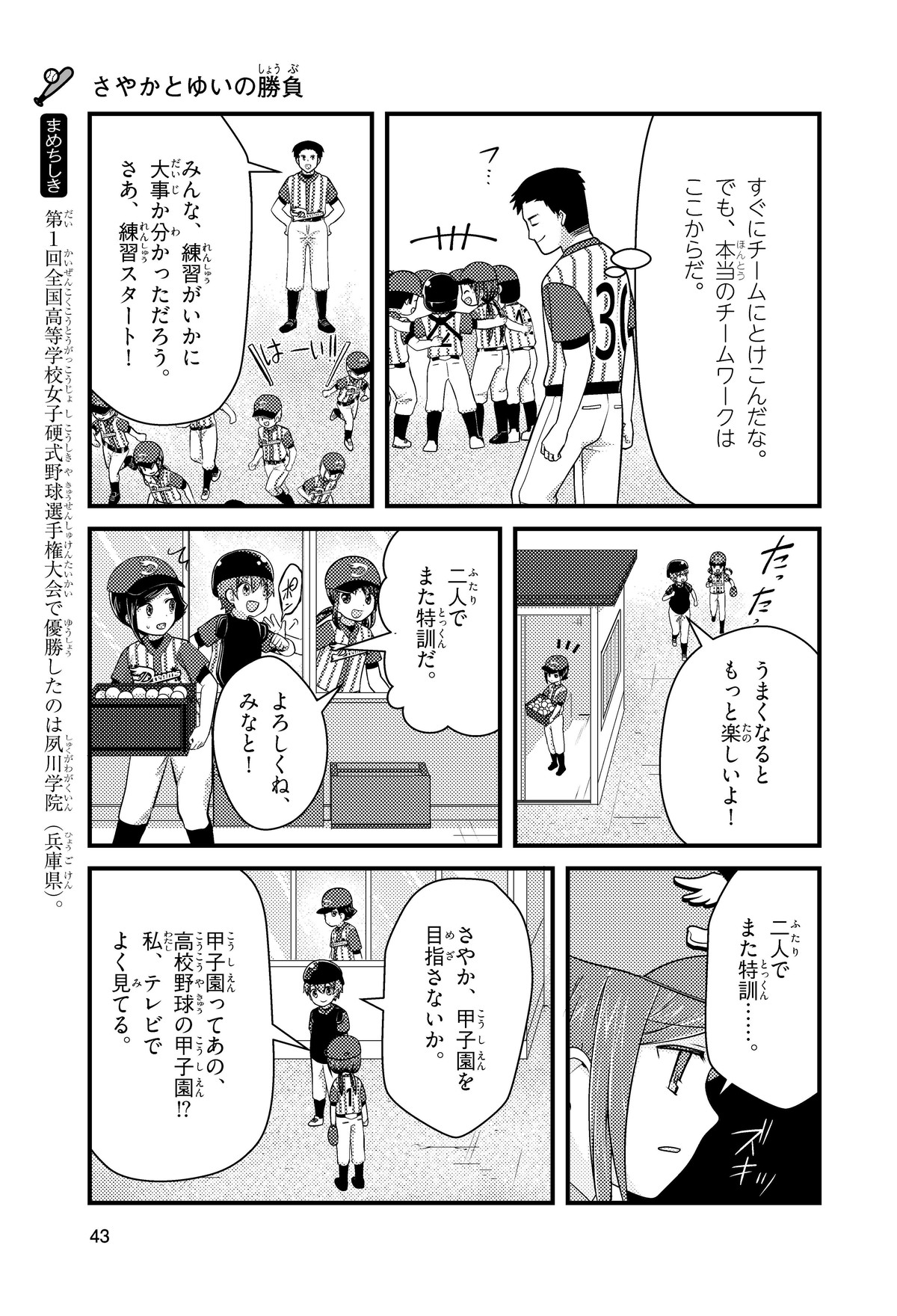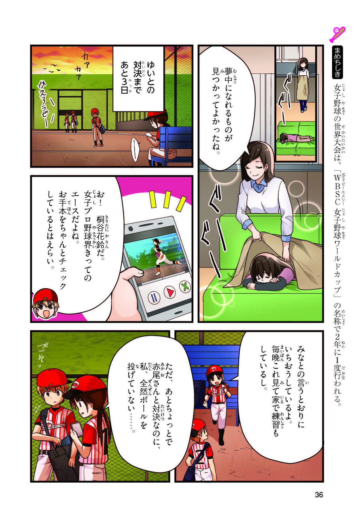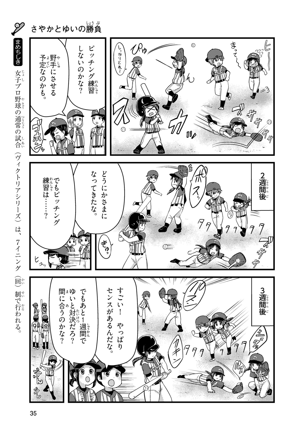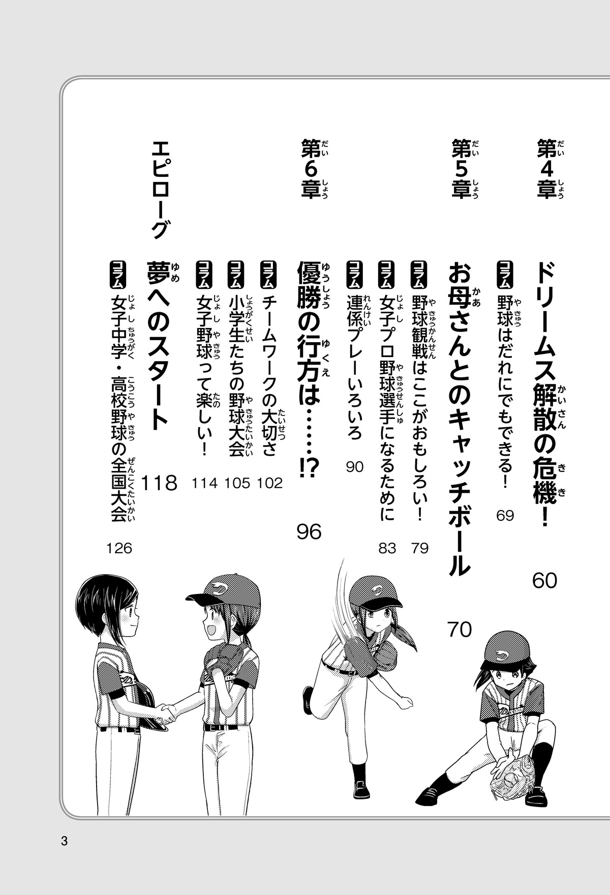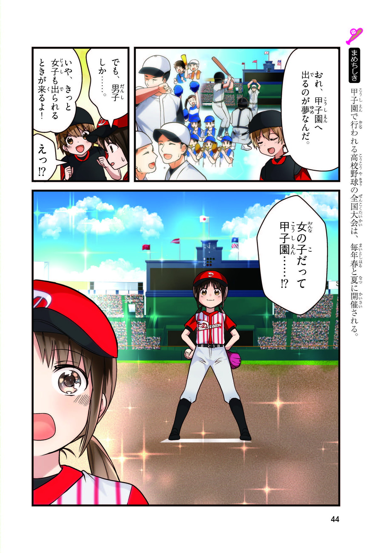 小学6年生のさやかは運動が大の苦手だけど、野球が大好き! ある日、友だちのゆいから、女の子も野球選手になれると聞いて、もっと野球のことが知りたくなるよ。野球をがんばる女の子たちが将来活躍(かつやく)する場として、女子プロ野球チームもあるんだ。笑顔いっぱいのプレー、かたいチームワーク、熱い友情……この本には女子野球の魅力(みりょく)がつまっているよ!