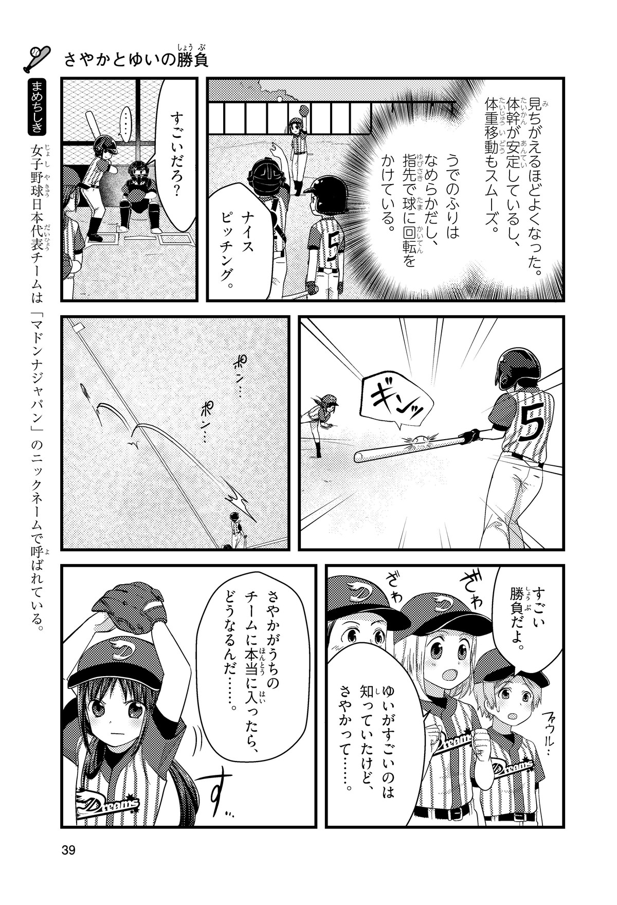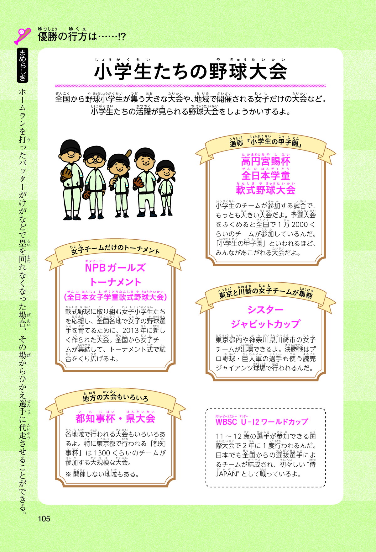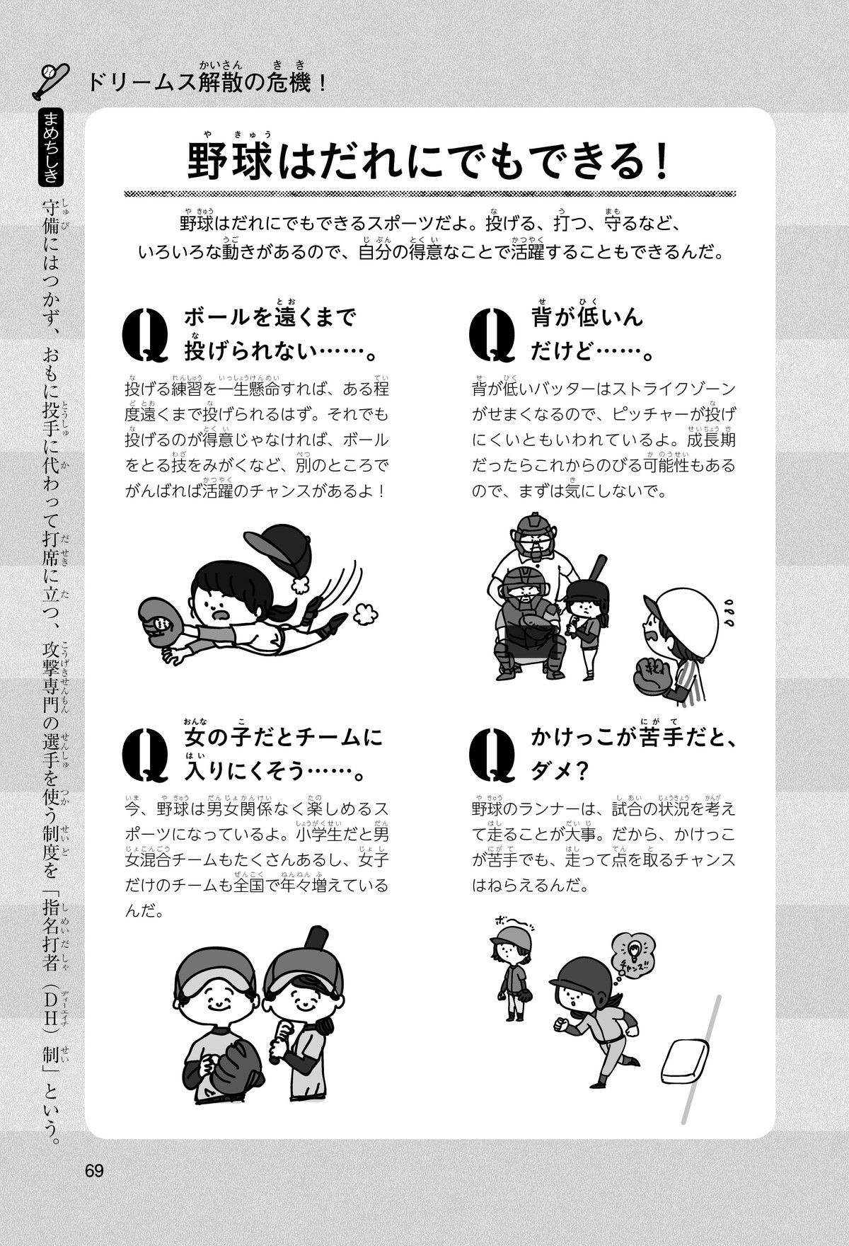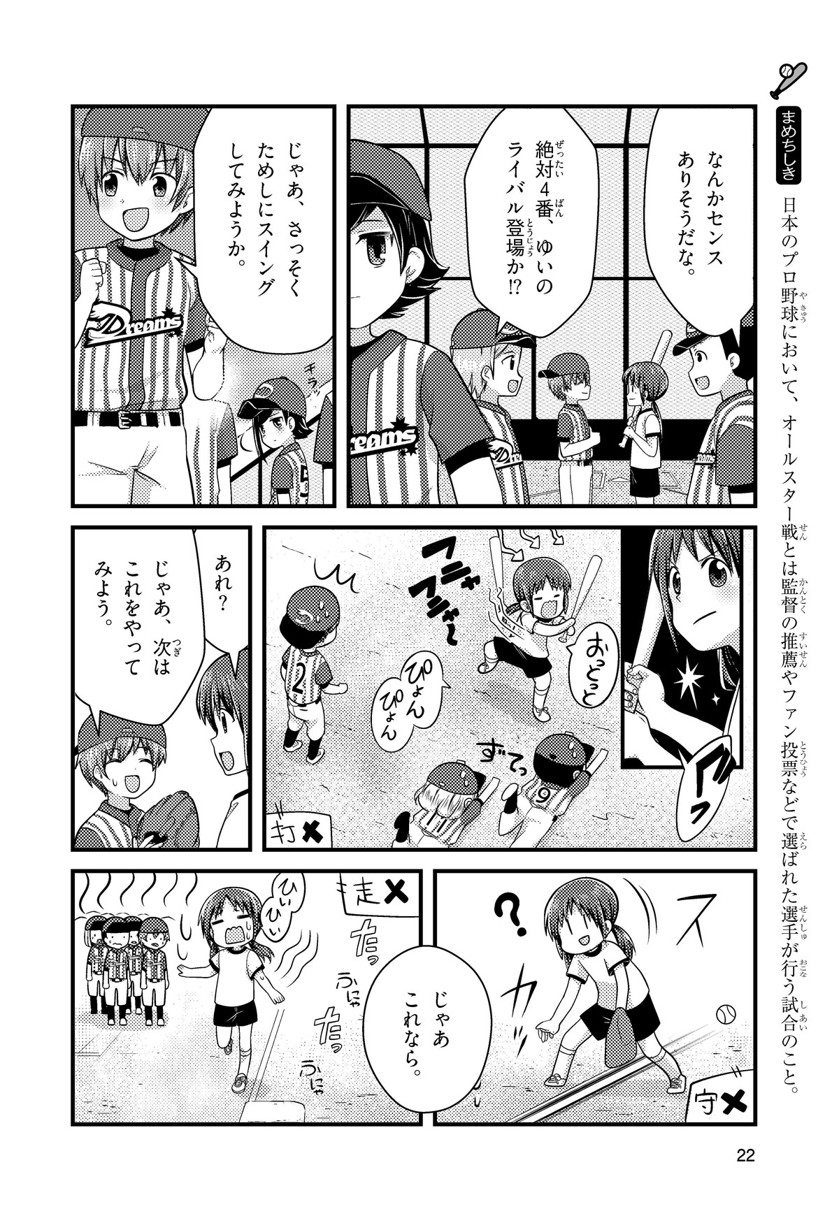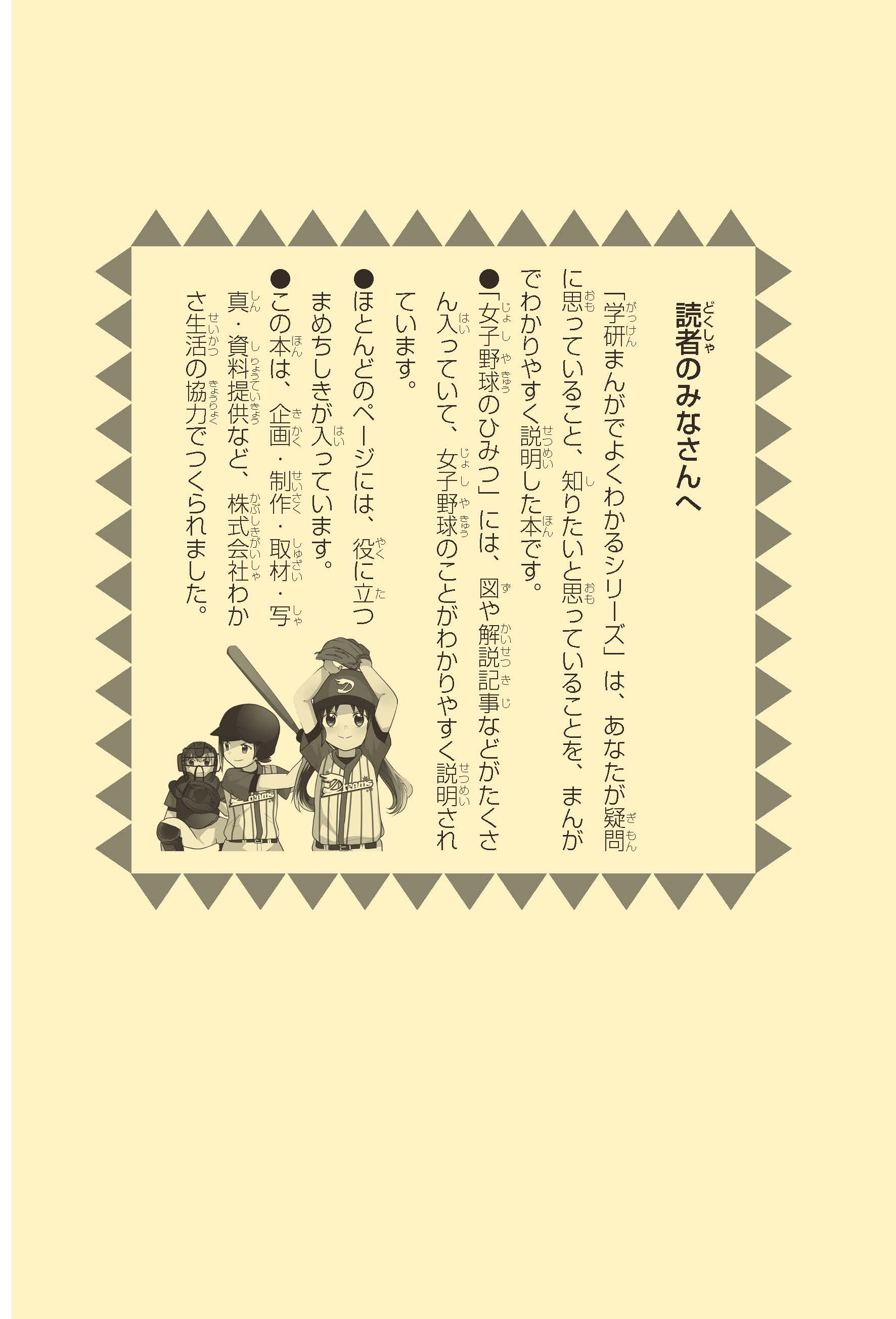 小学6年生のさやかは運動が大の苦手だけど、野球が大好き! ある日、友だちのゆいから、女の子も野球選手になれると聞いて、もっと野球のことが知りたくなるよ。野球をがんばる女の子たちが将来活躍(かつやく)する場として、女子プロ野球チームもあるんだ。笑顔いっぱいのプレー、かたいチームワーク、熱い友情……この本には女子野球の魅力(みりょく)がつまっているよ!