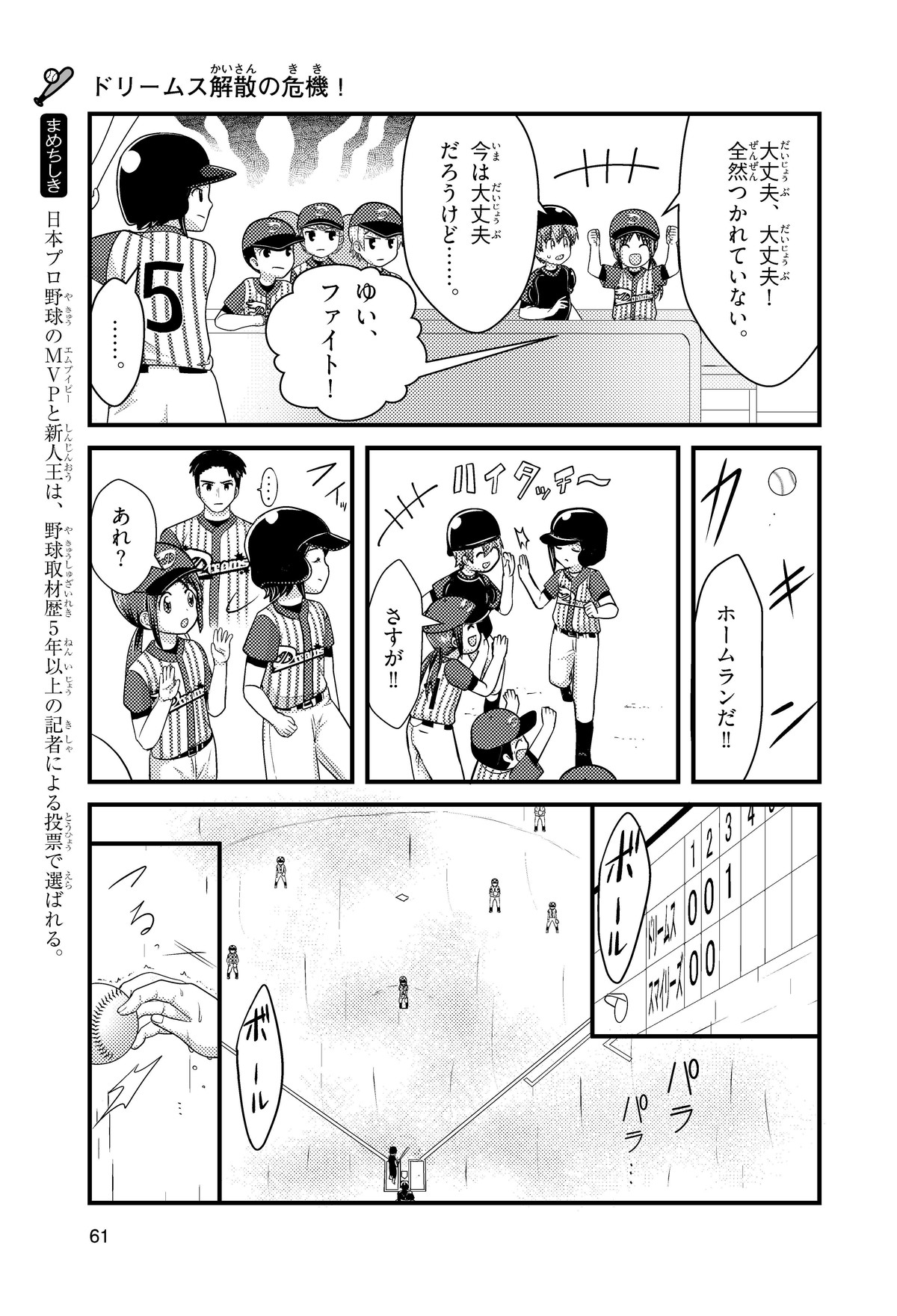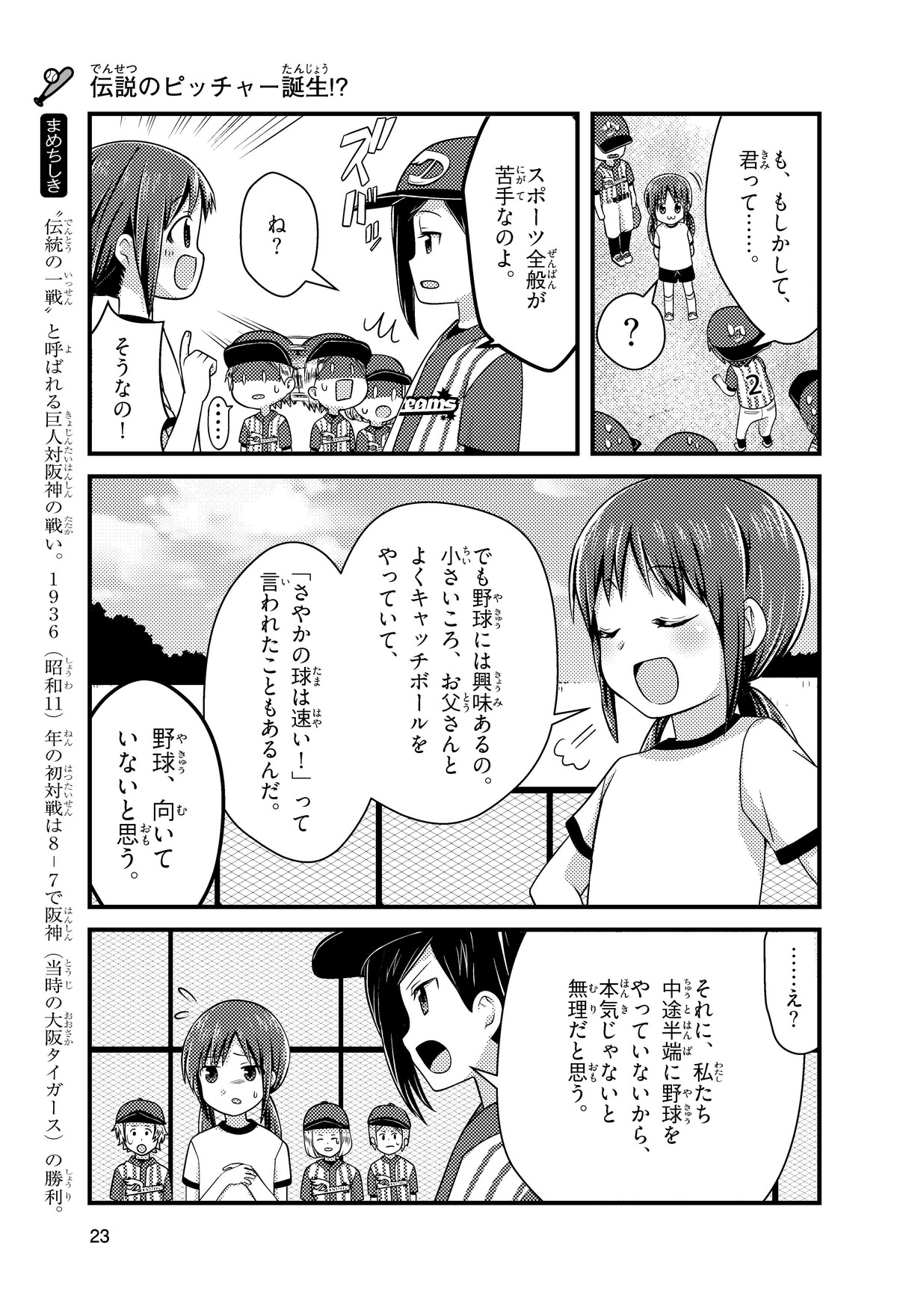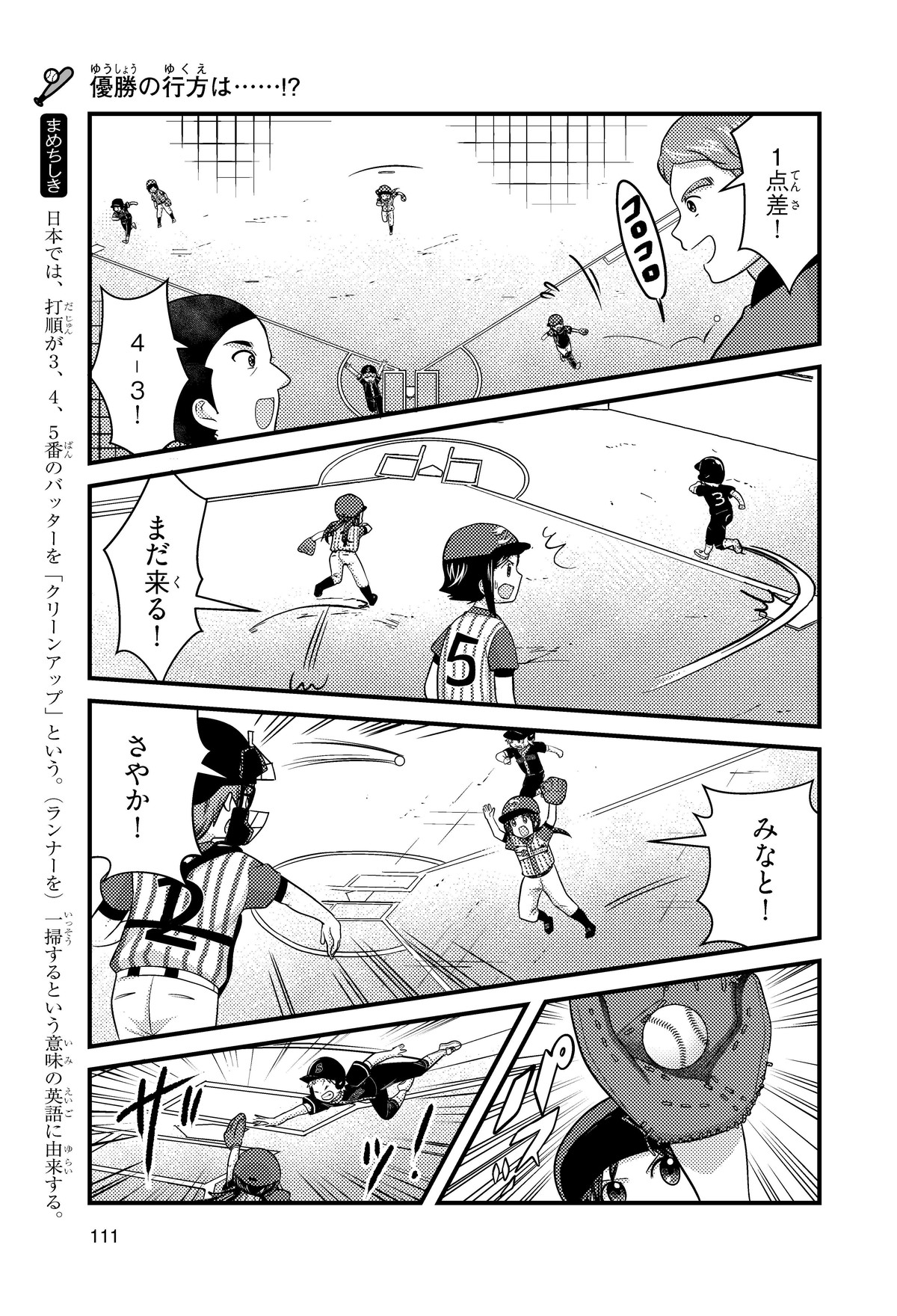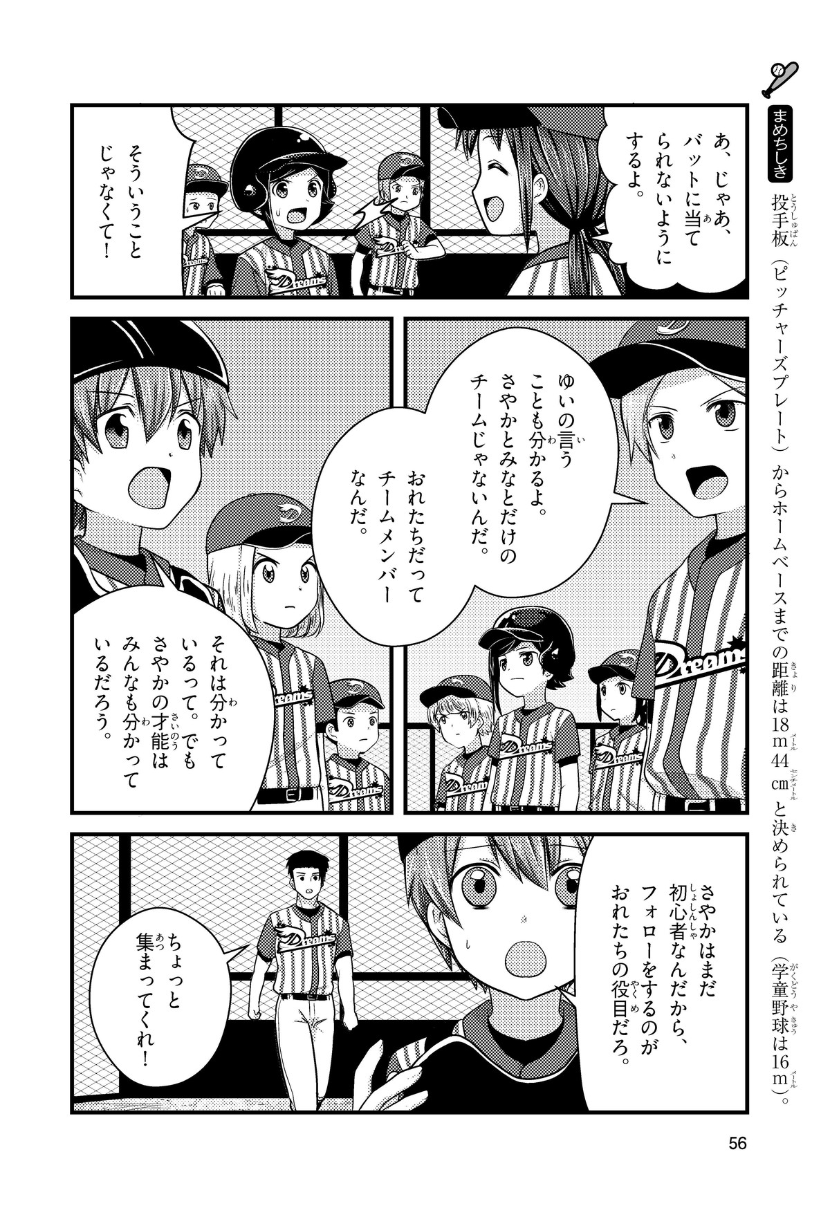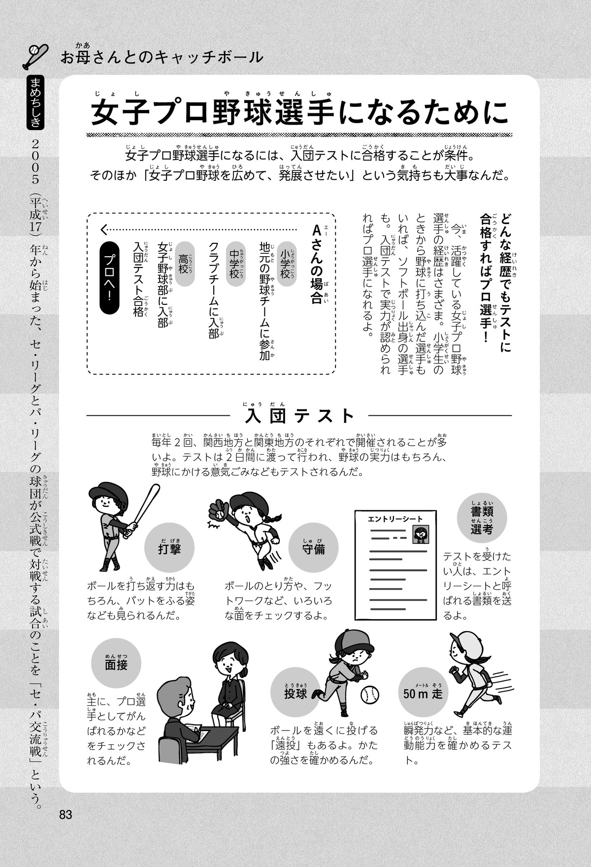 小学6年生のさやかは運動が大の苦手だけど、野球が大好き! ある日、友だちのゆいから、女の子も野球選手になれると聞いて、もっと野球のことが知りたくなるよ。野球をがんばる女の子たちが将来活躍(かつやく)する場として、女子プロ野球チームもあるんだ。笑顔いっぱいのプレー、かたいチームワーク、熱い友情……この本には女子野球の魅力(みりょく)がつまっているよ!