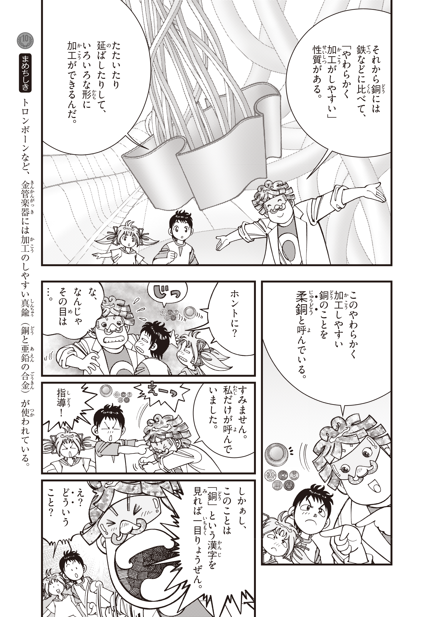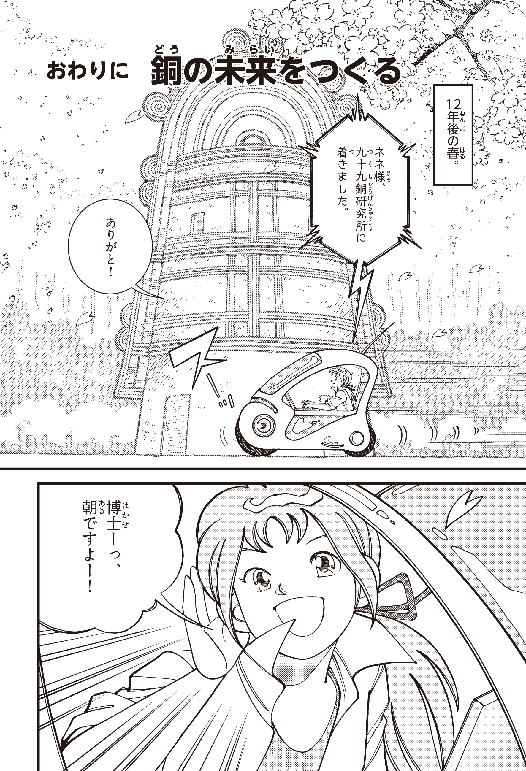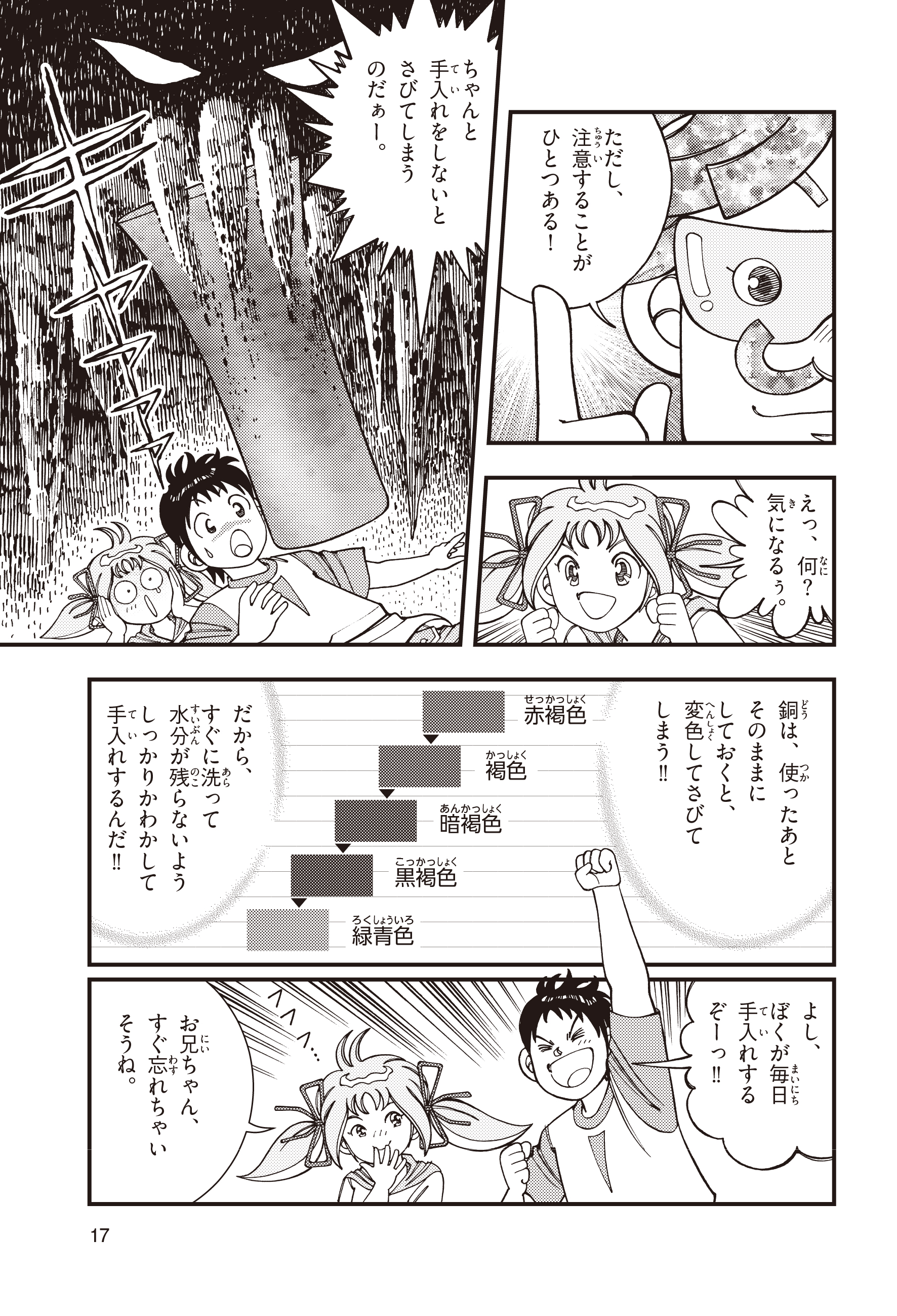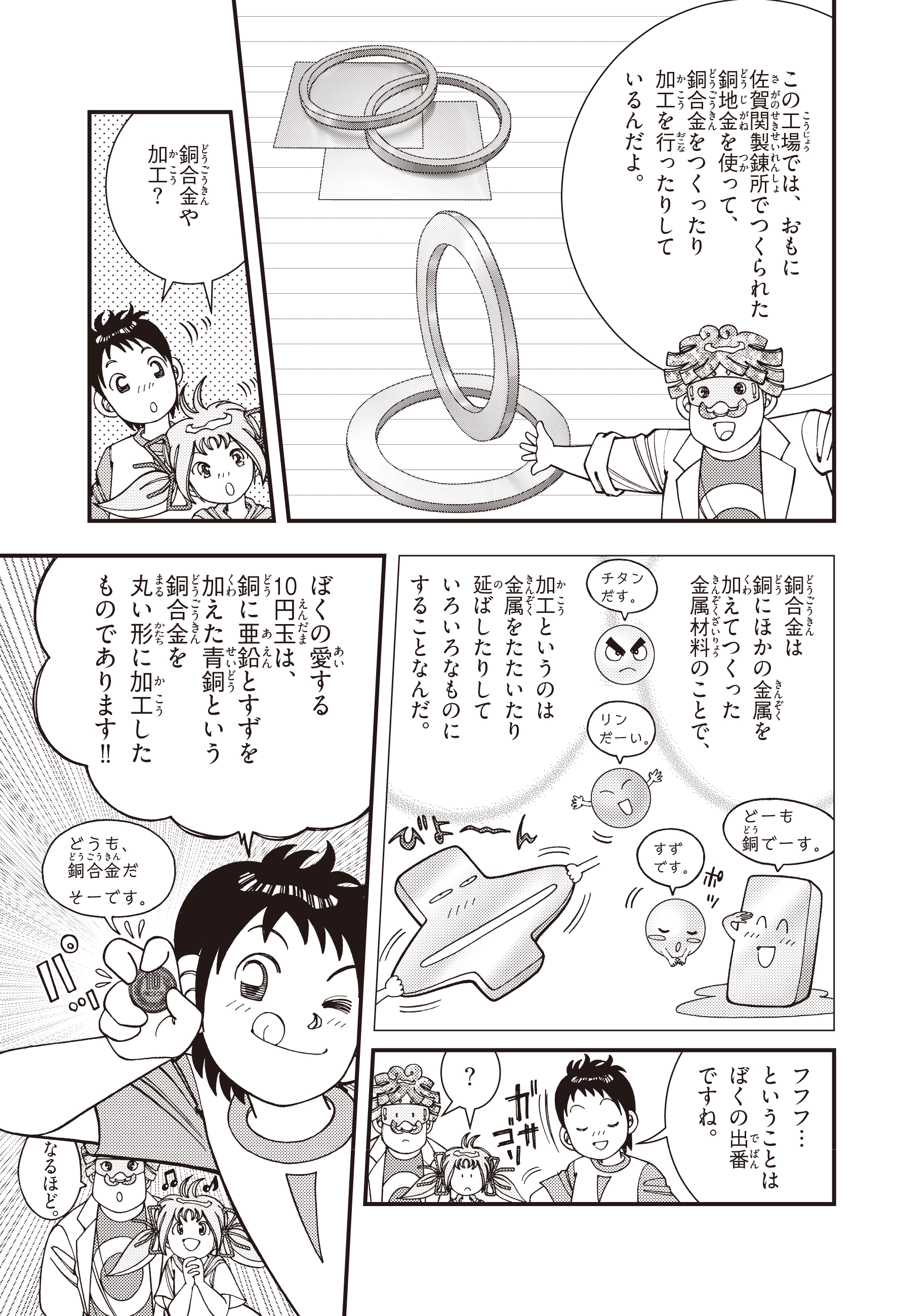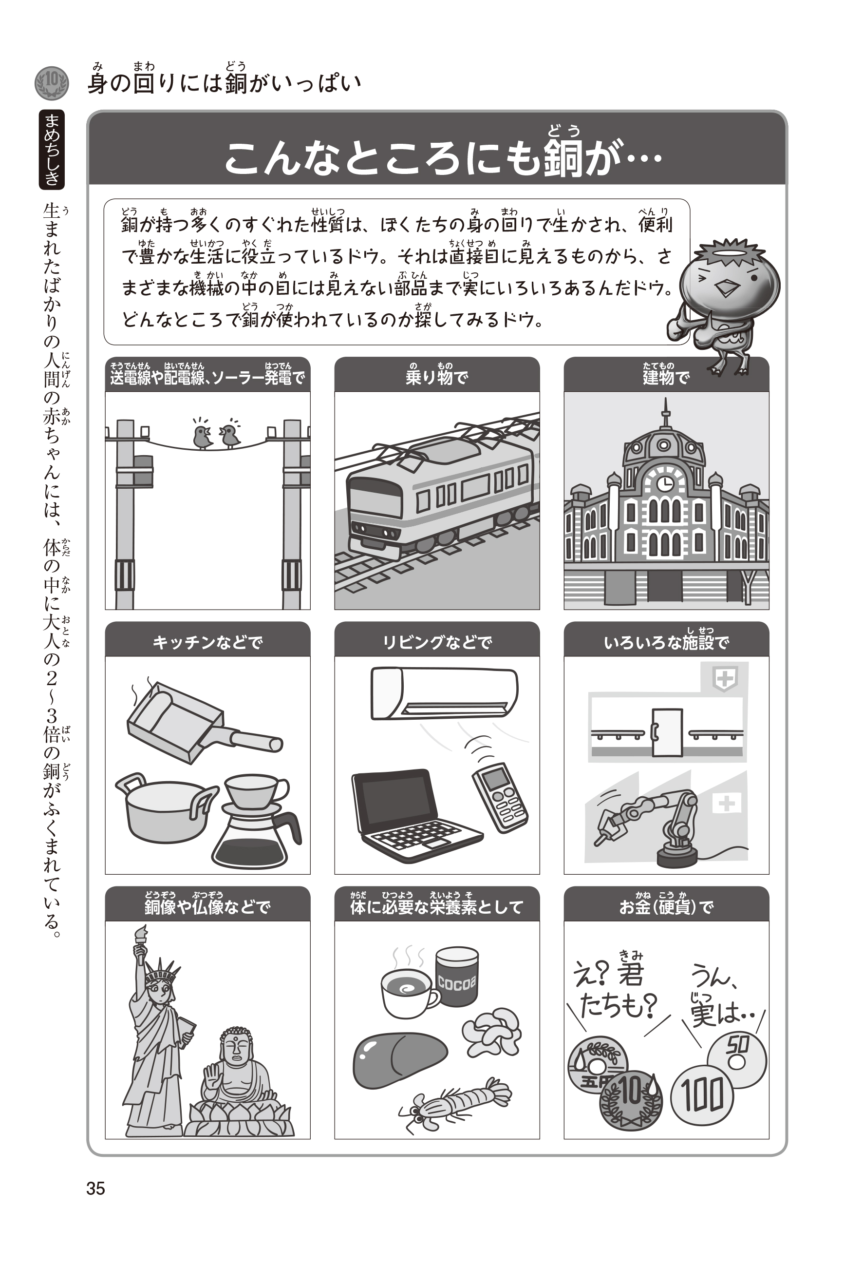 父の日のプレゼントに「銅のカップ」をプレゼントしたこういちとネネの兄妹。「冷たいビールがもっとおいしく飲めるカップ」っていうけど、どうしてなんだろう? 銅のことが知りたくなったふたりは調査にいくよ。 銅は電気を使うものにたくさん使われていて、いろいろな性質があるんだって。ずーっと昔から使われていて、そして今、進化している銅。ふたりといっしょに、銅のひみつを探りにいこう!