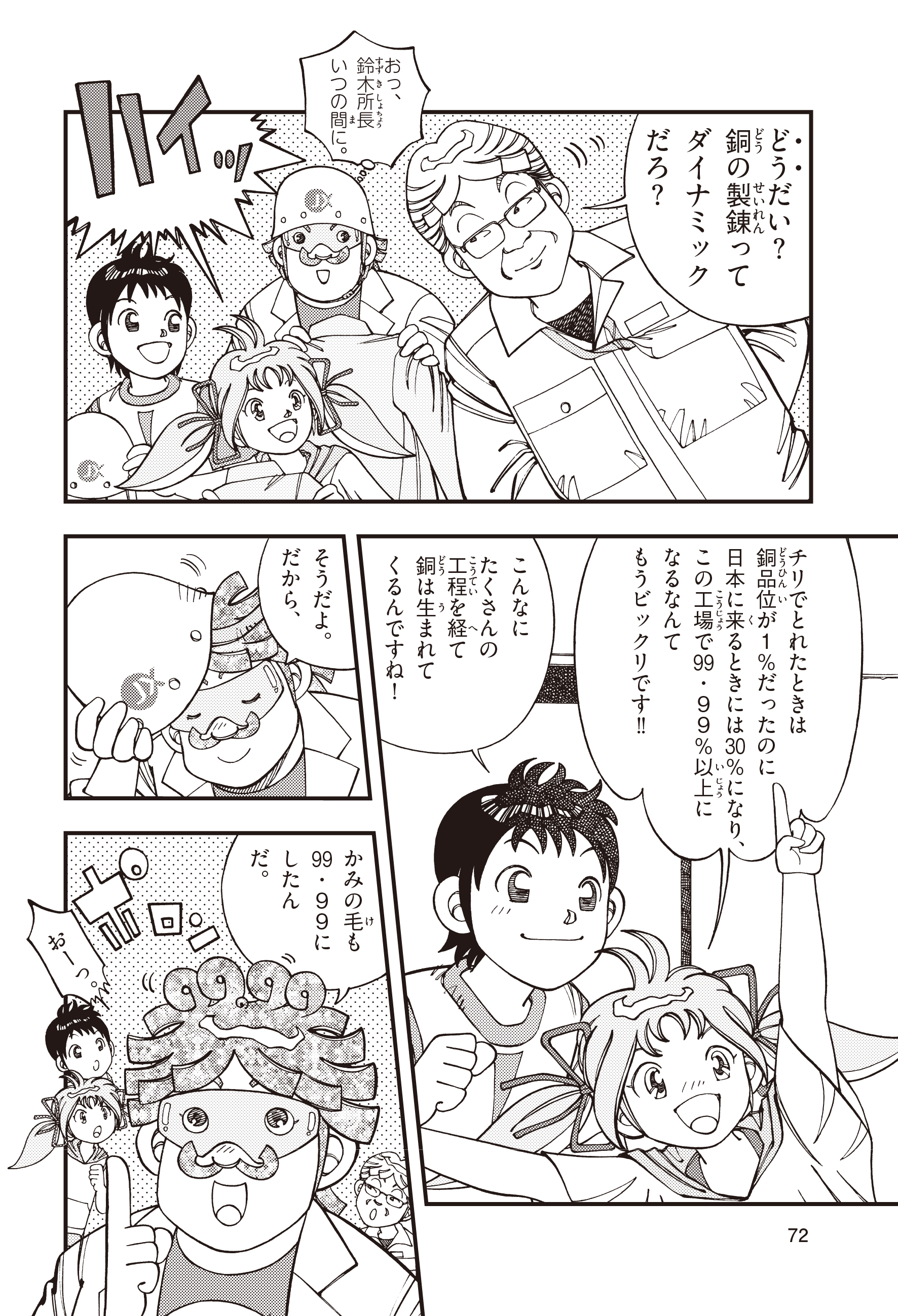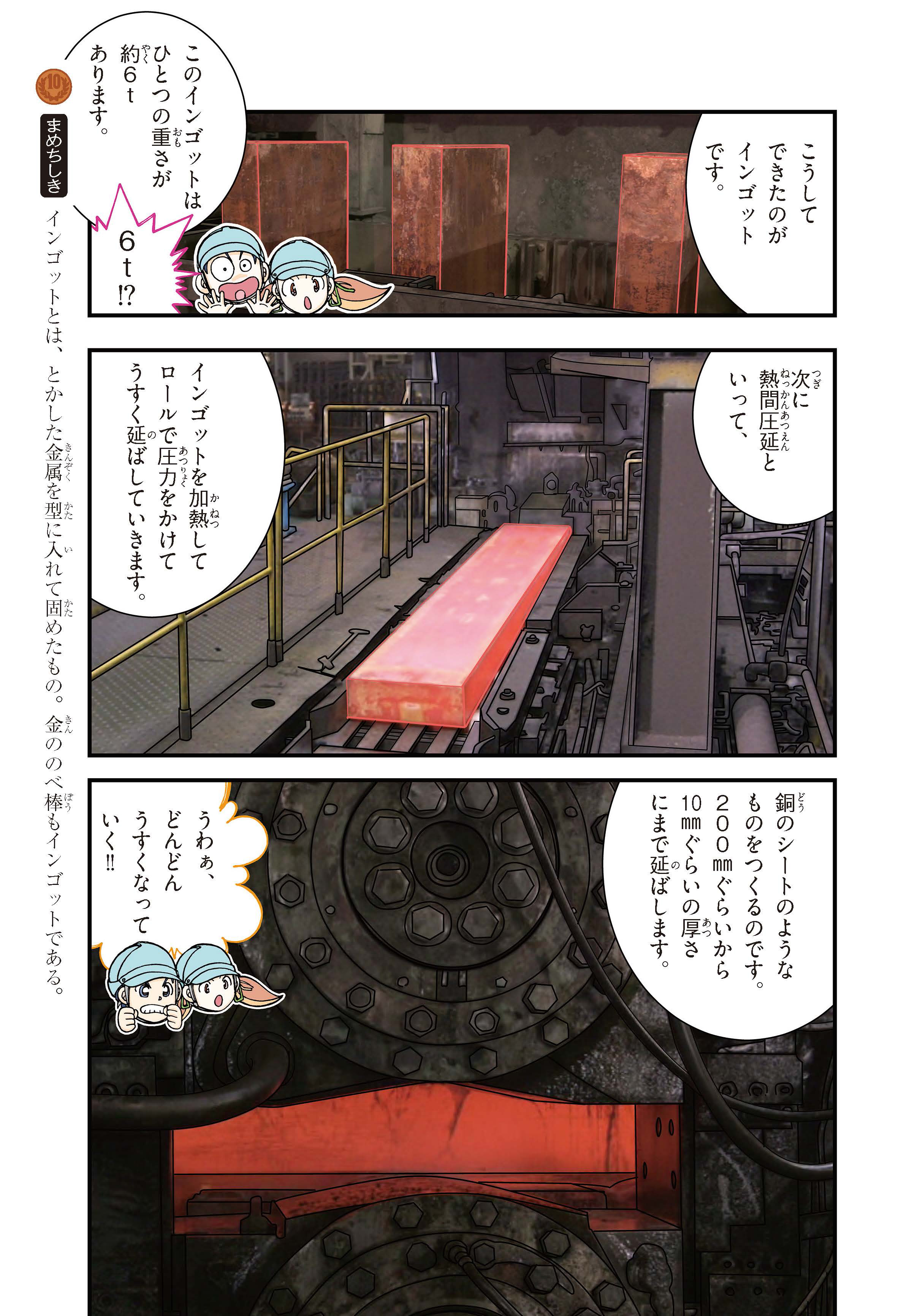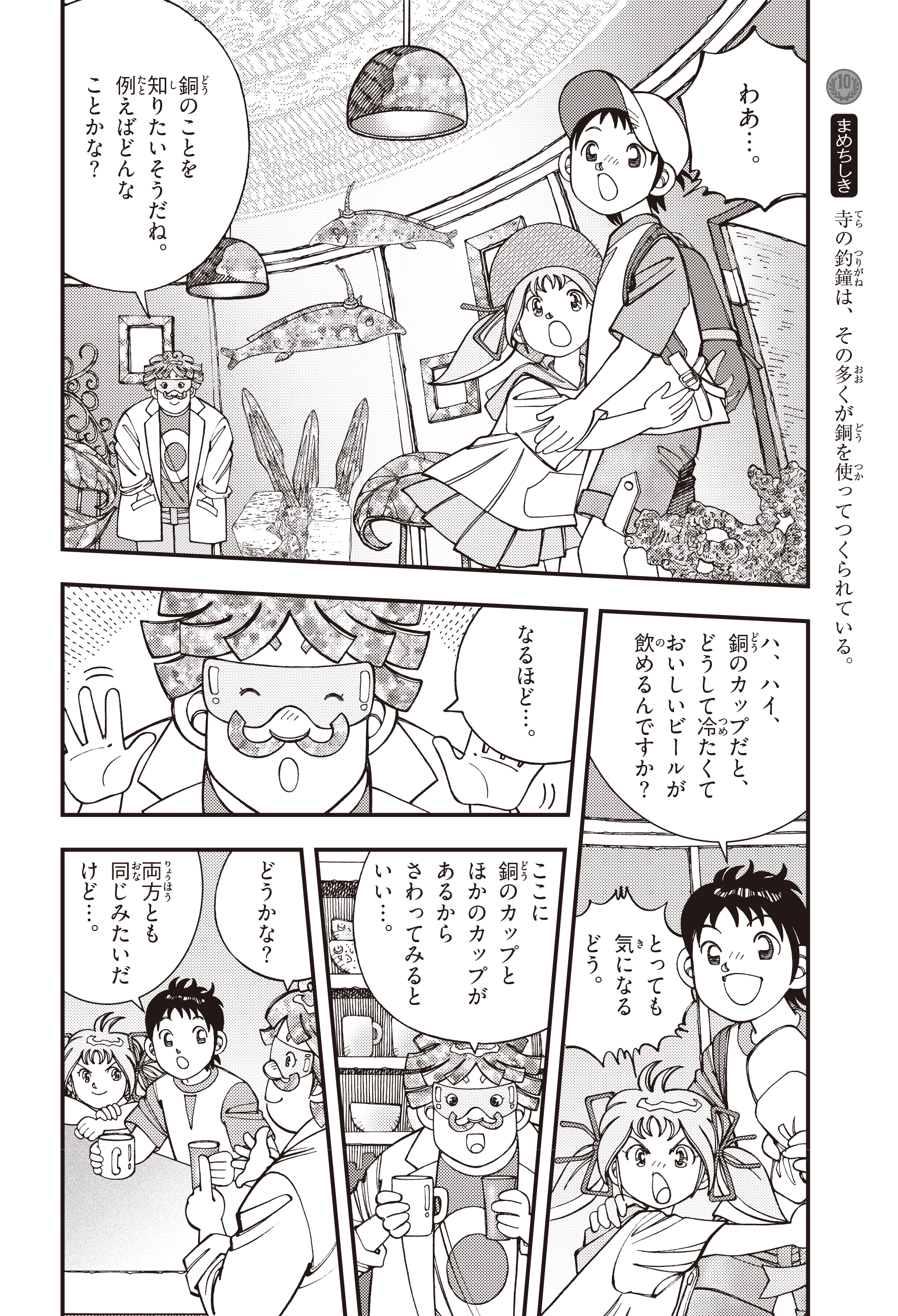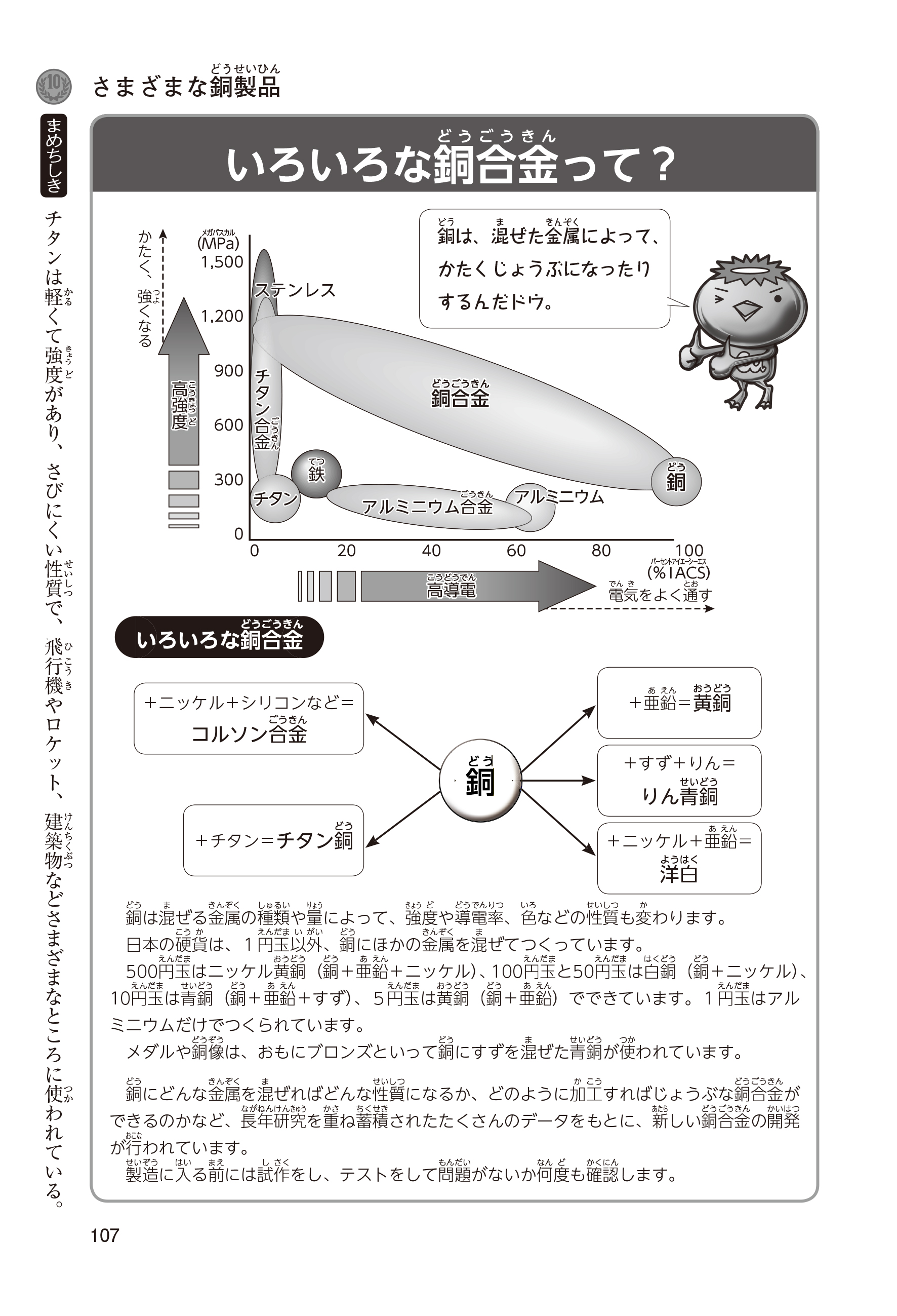 父の日のプレゼントに「銅のカップ」をプレゼントしたこういちとネネの兄妹。「冷たいビールがもっとおいしく飲めるカップ」っていうけど、どうしてなんだろう? 銅のことが知りたくなったふたりは調査にいくよ。 銅は電気を使うものにたくさん使われていて、いろいろな性質があるんだって。ずーっと昔から使われていて、そして今、進化している銅。ふたりといっしょに、銅のひみつを探りにいこう!