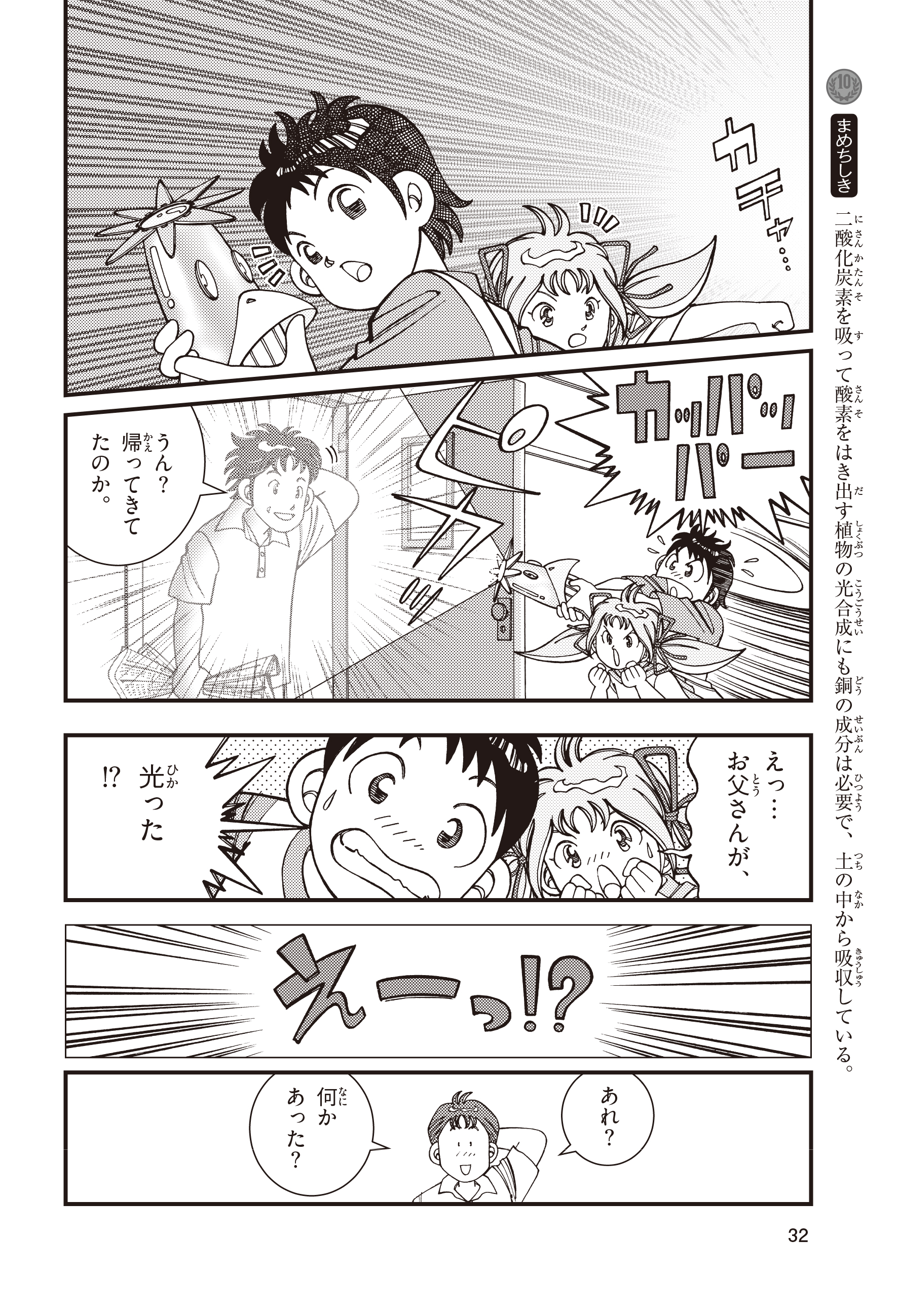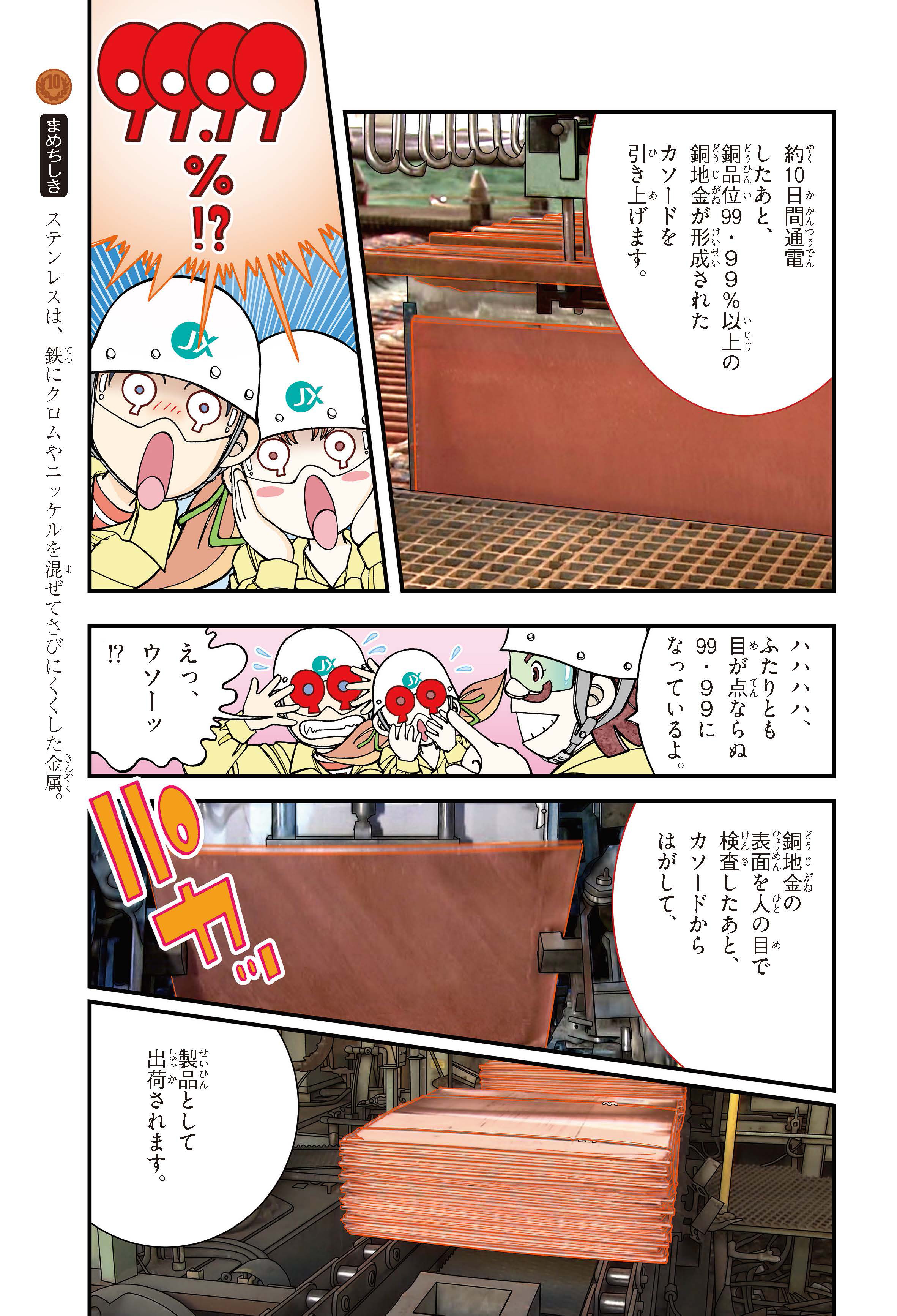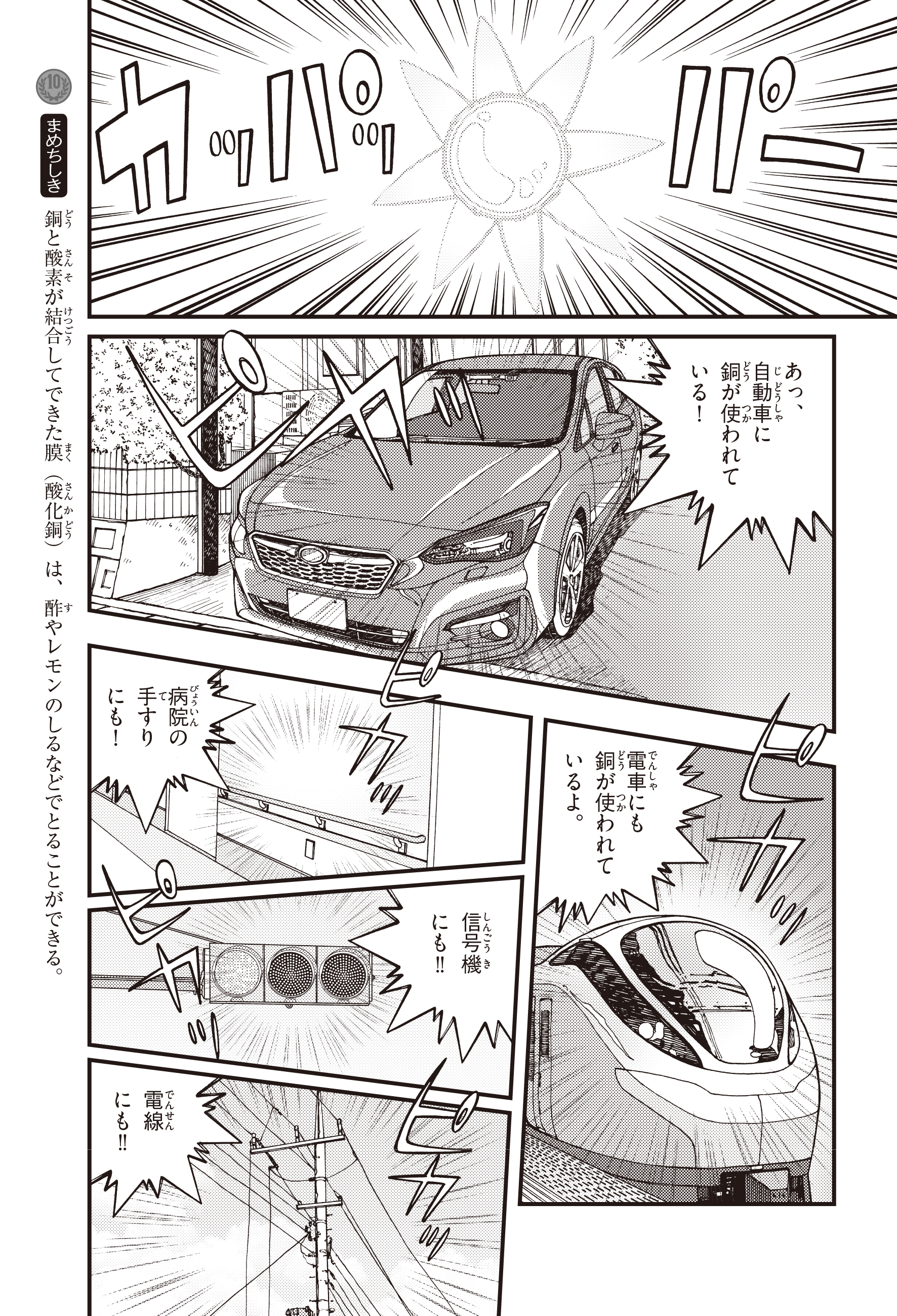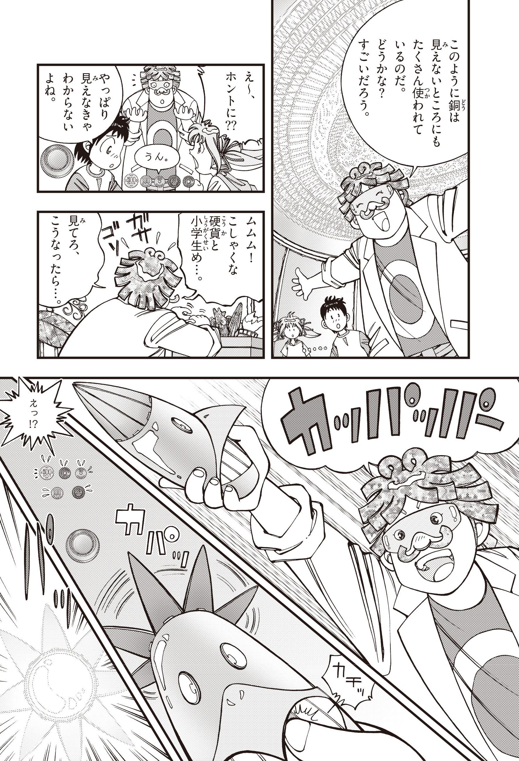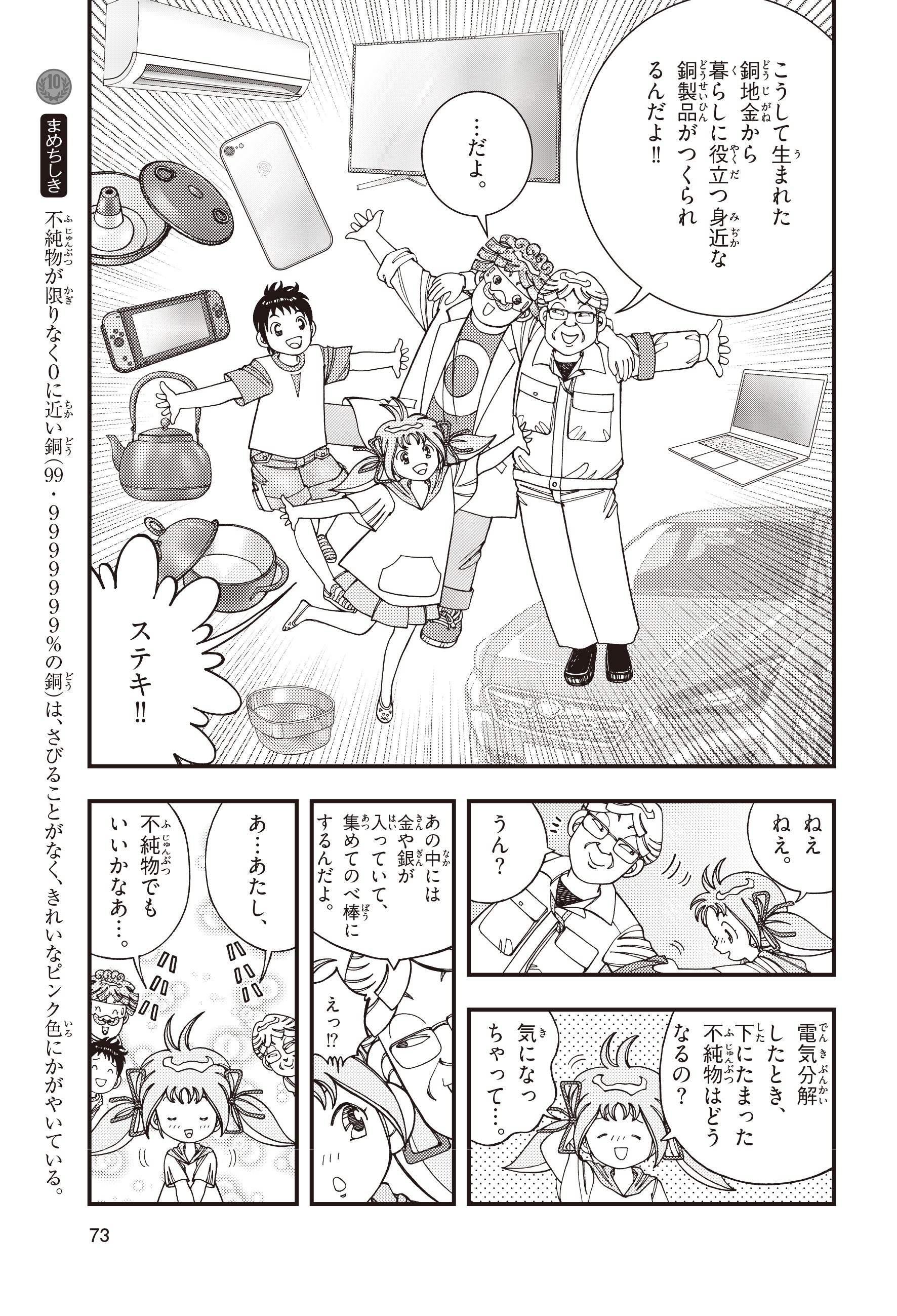 父の日のプレゼントに「銅のカップ」をプレゼントしたこういちとネネの兄妹。「冷たいビールがもっとおいしく飲めるカップ」っていうけど、どうしてなんだろう? 銅のことが知りたくなったふたりは調査にいくよ。 銅は電気を使うものにたくさん使われていて、いろいろな性質があるんだって。ずーっと昔から使われていて、そして今、進化している銅。ふたりといっしょに、銅のひみつを探りにいこう!