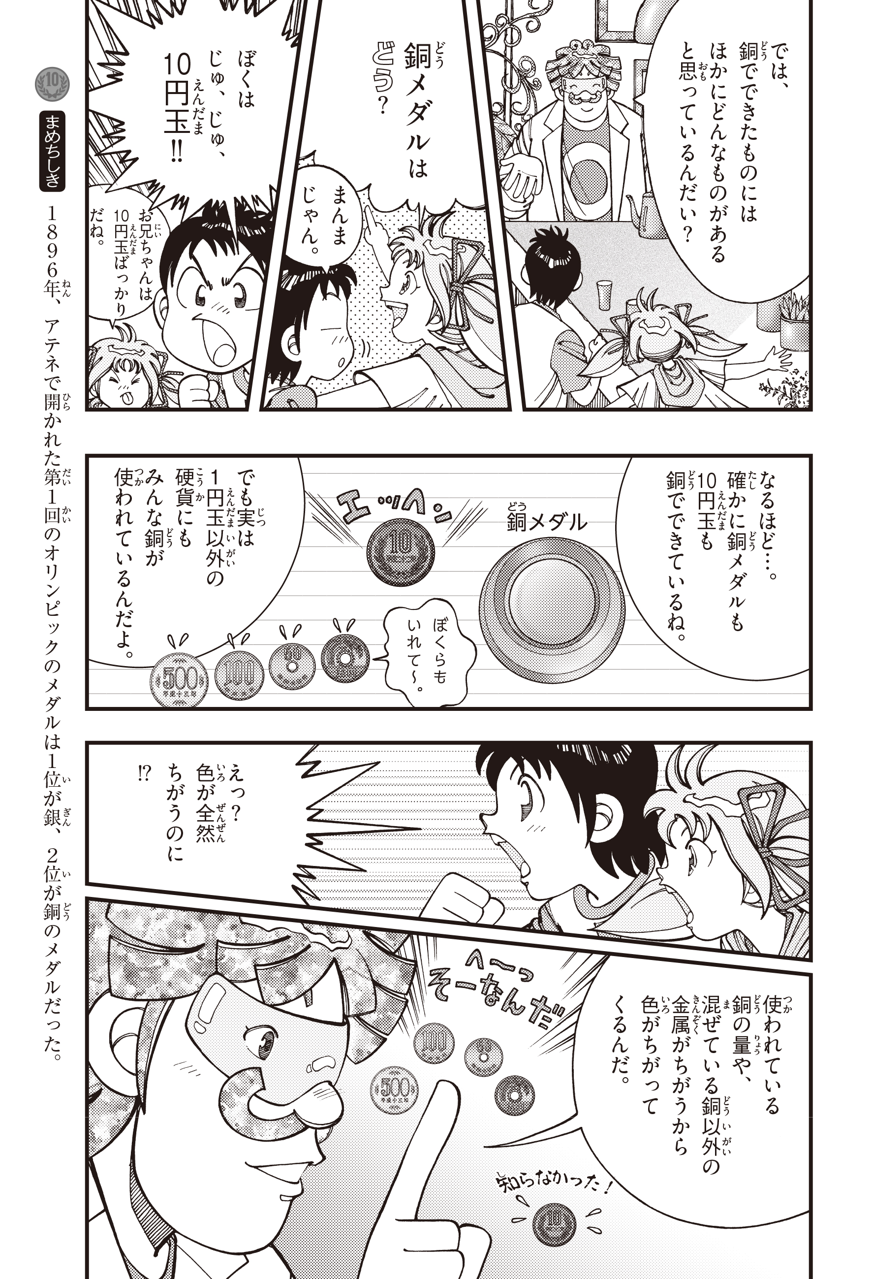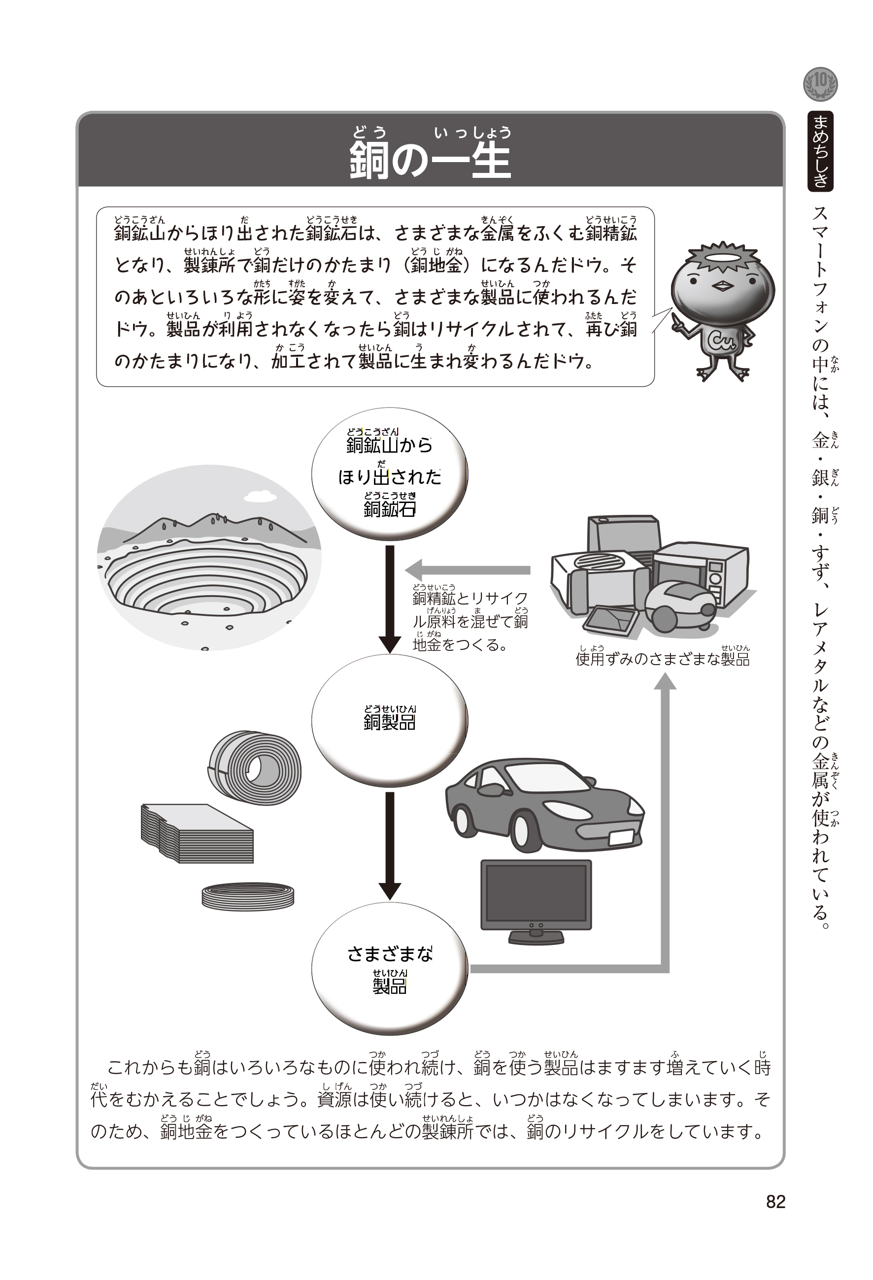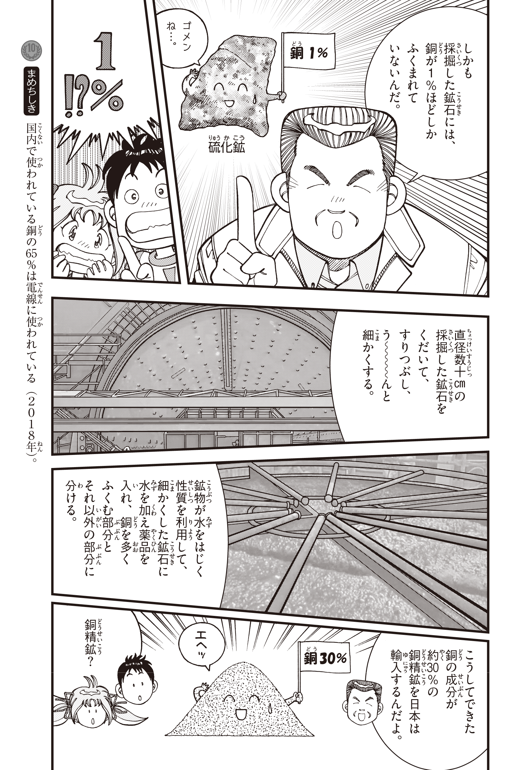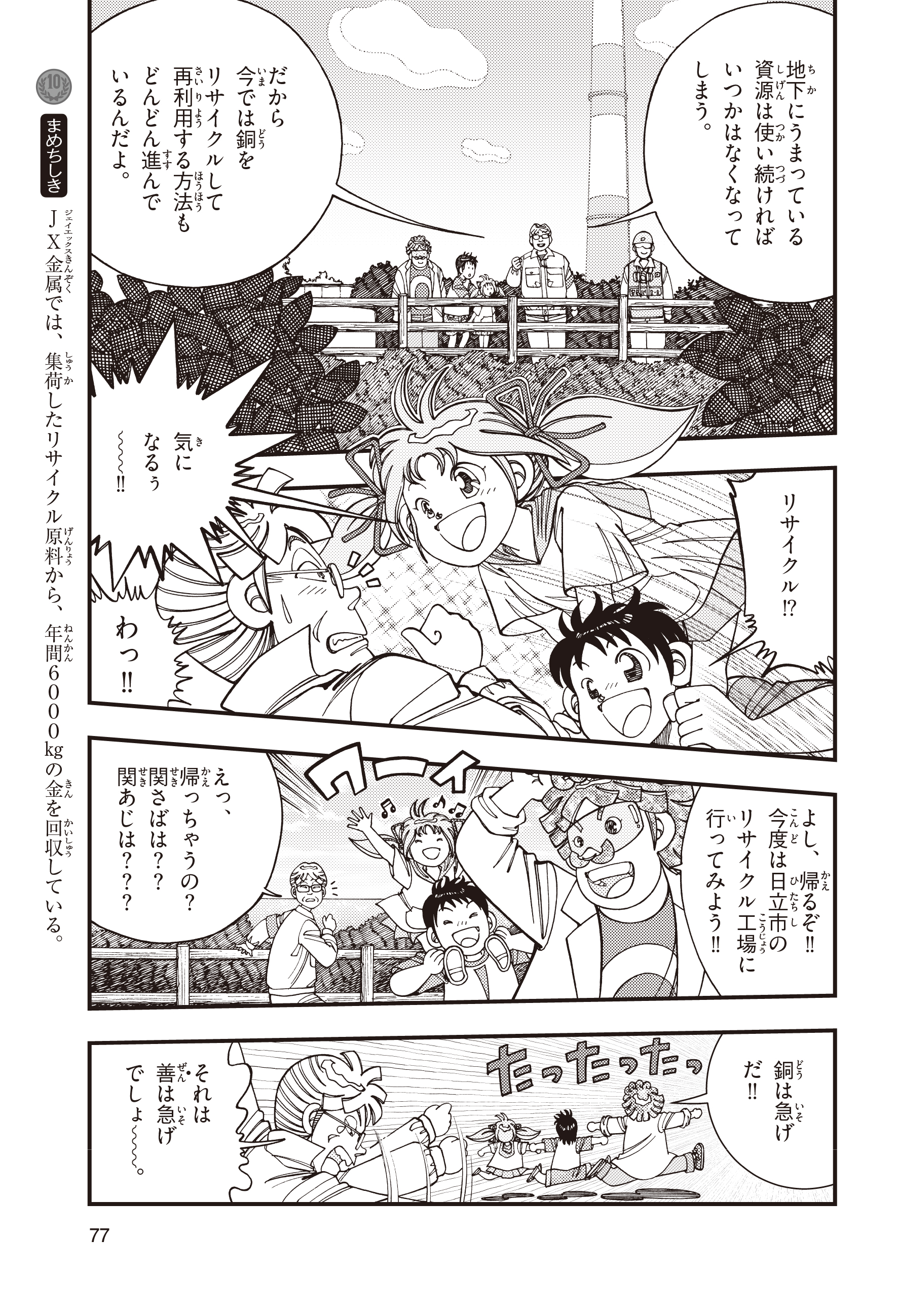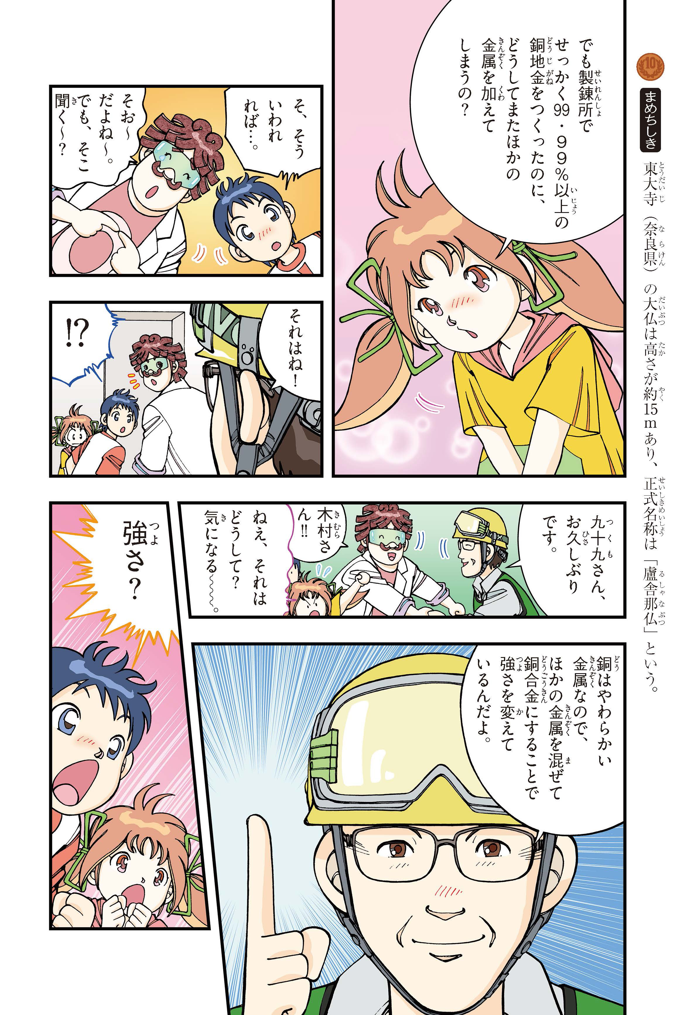 父の日のプレゼントに「銅のカップ」をプレゼントしたこういちとネネの兄妹。「冷たいビールがもっとおいしく飲めるカップ」っていうけど、どうしてなんだろう? 銅のことが知りたくなったふたりは調査にいくよ。 銅は電気を使うものにたくさん使われていて、いろいろな性質があるんだって。ずーっと昔から使われていて、そして今、進化している銅。ふたりといっしょに、銅のひみつを探りにいこう!