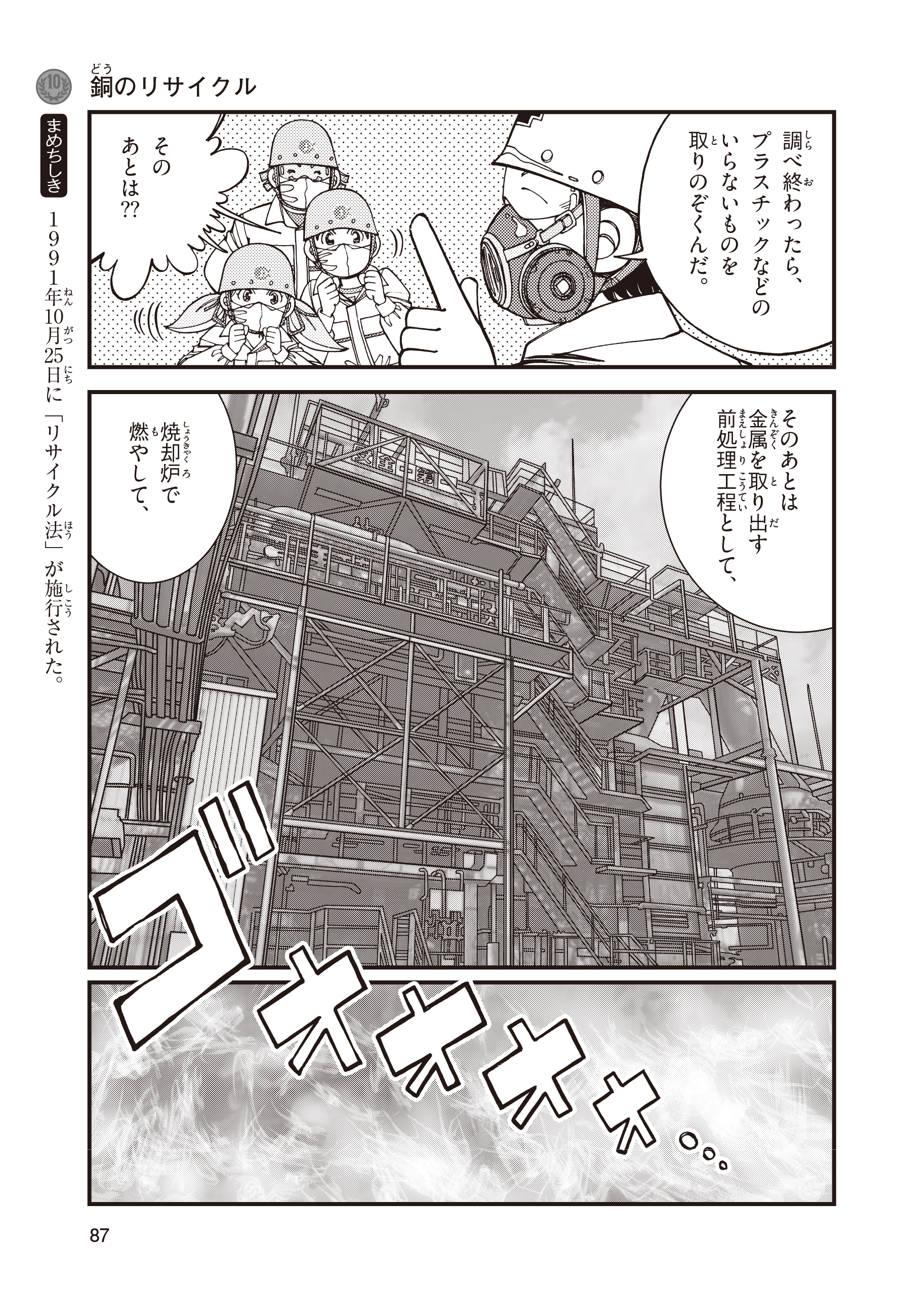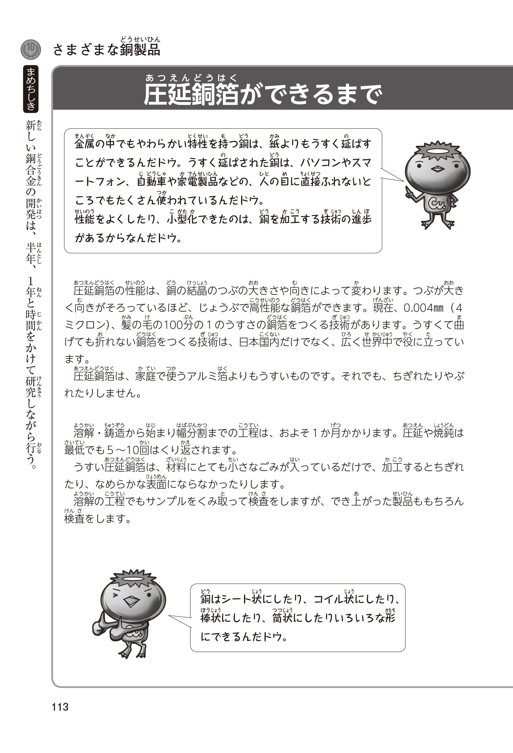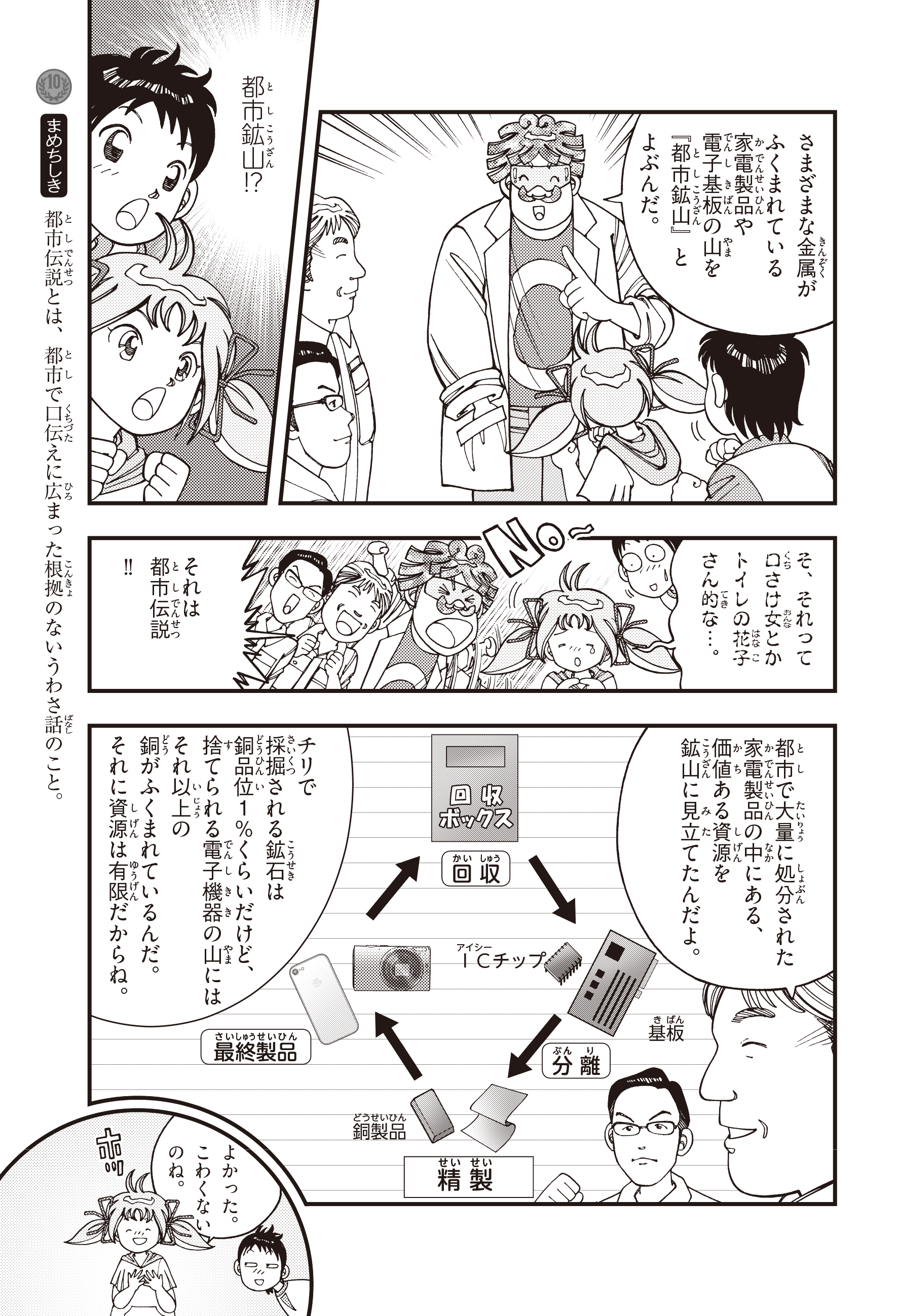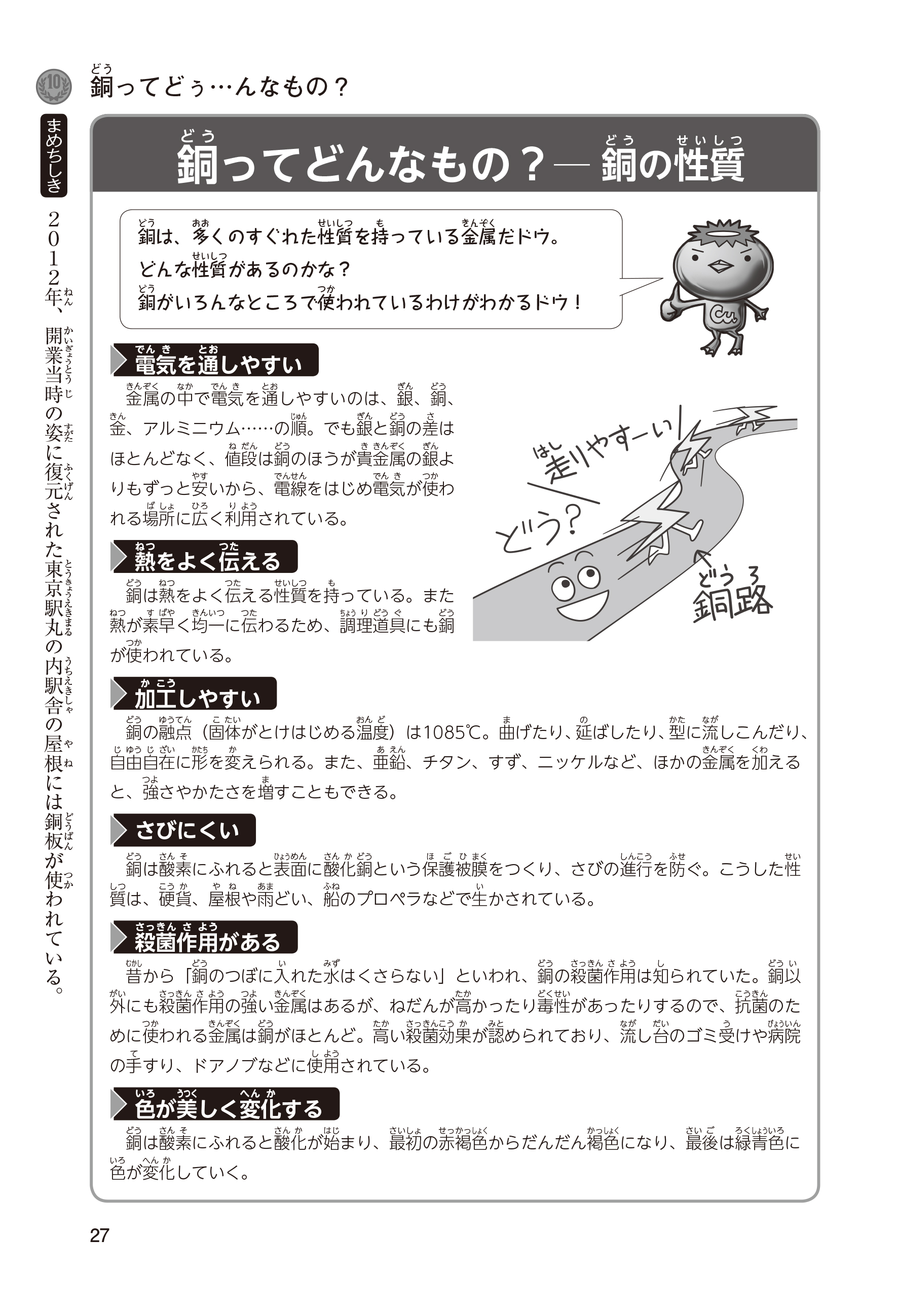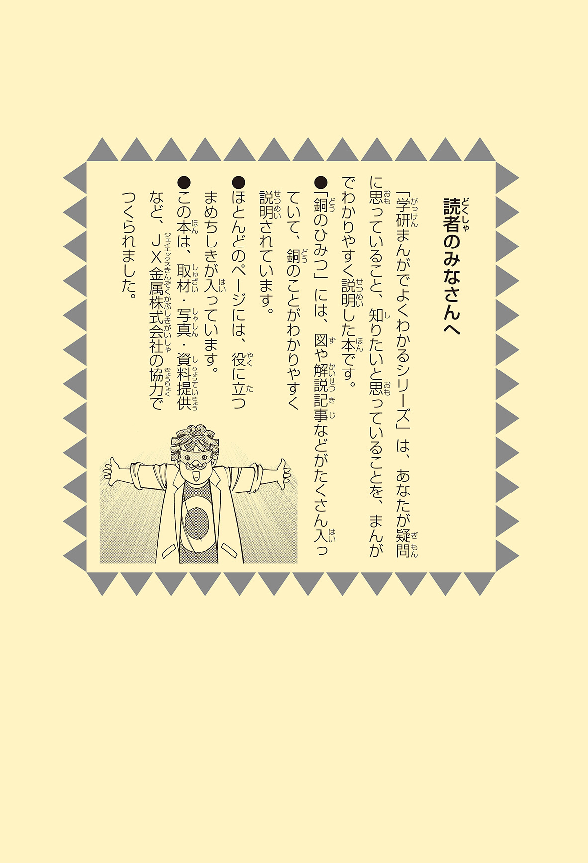 父の日のプレゼントに「銅のカップ」をプレゼントしたこういちとネネの兄妹。「冷たいビールがもっとおいしく飲めるカップ」っていうけど、どうしてなんだろう? 銅のことが知りたくなったふたりは調査にいくよ。 銅は電気を使うものにたくさん使われていて、いろいろな性質があるんだって。ずーっと昔から使われていて、そして今、進化している銅。ふたりといっしょに、銅のひみつを探りにいこう!