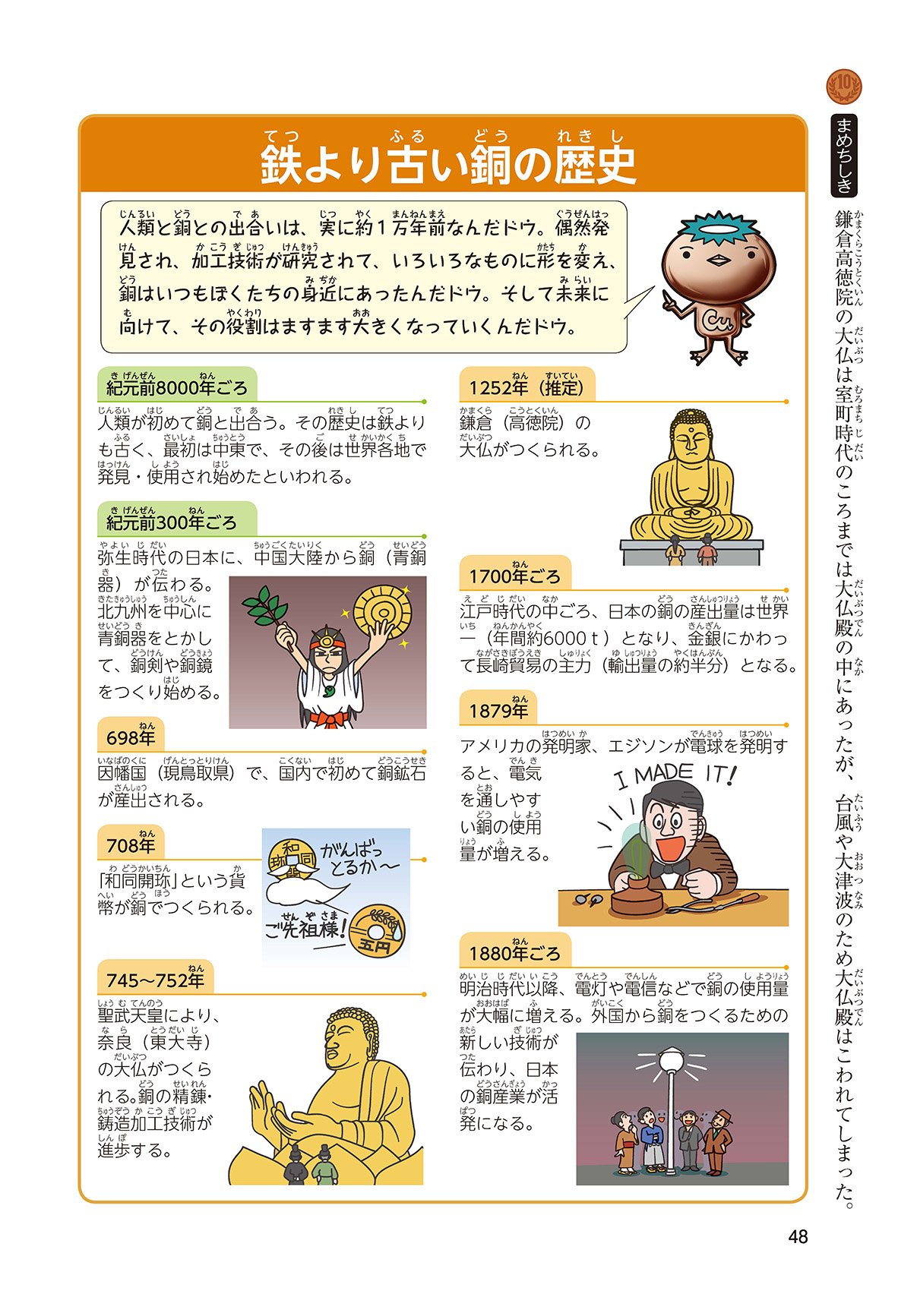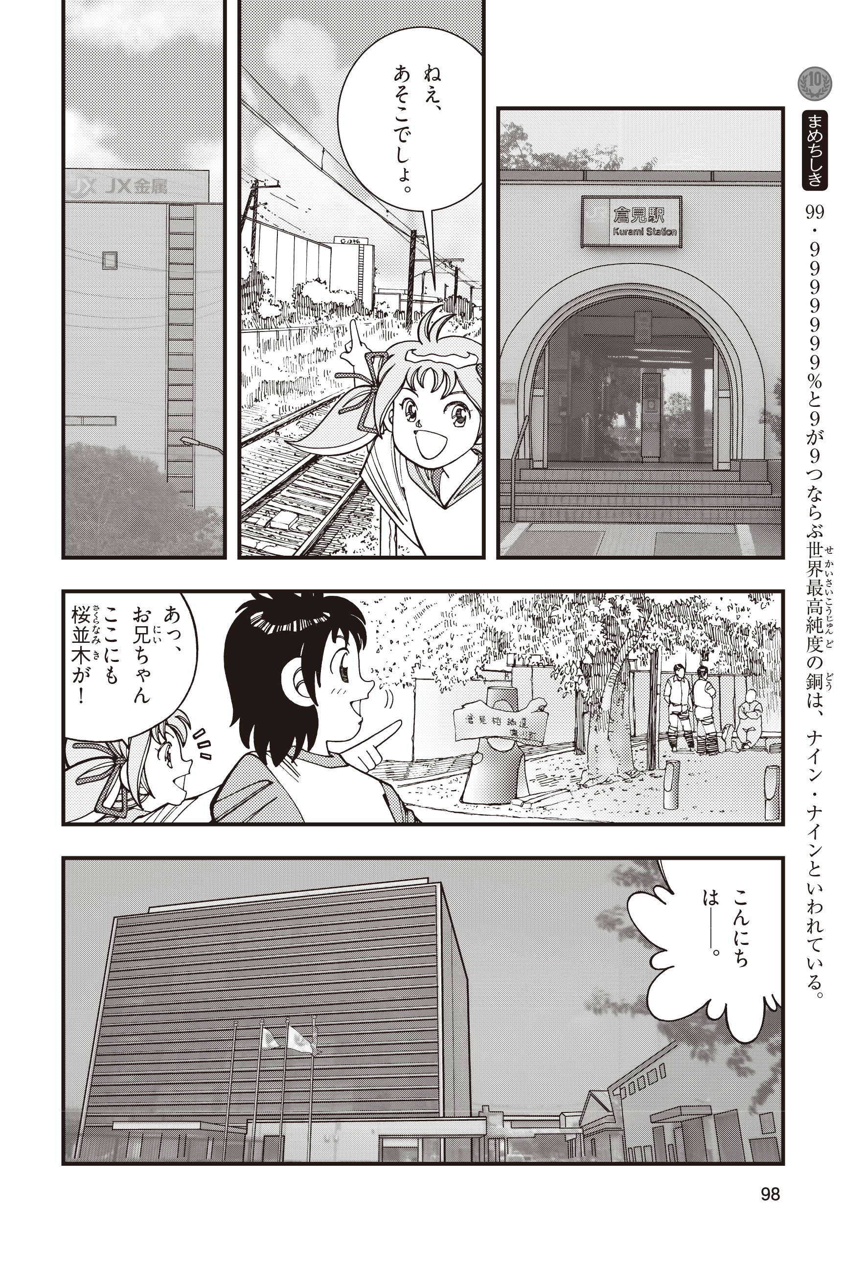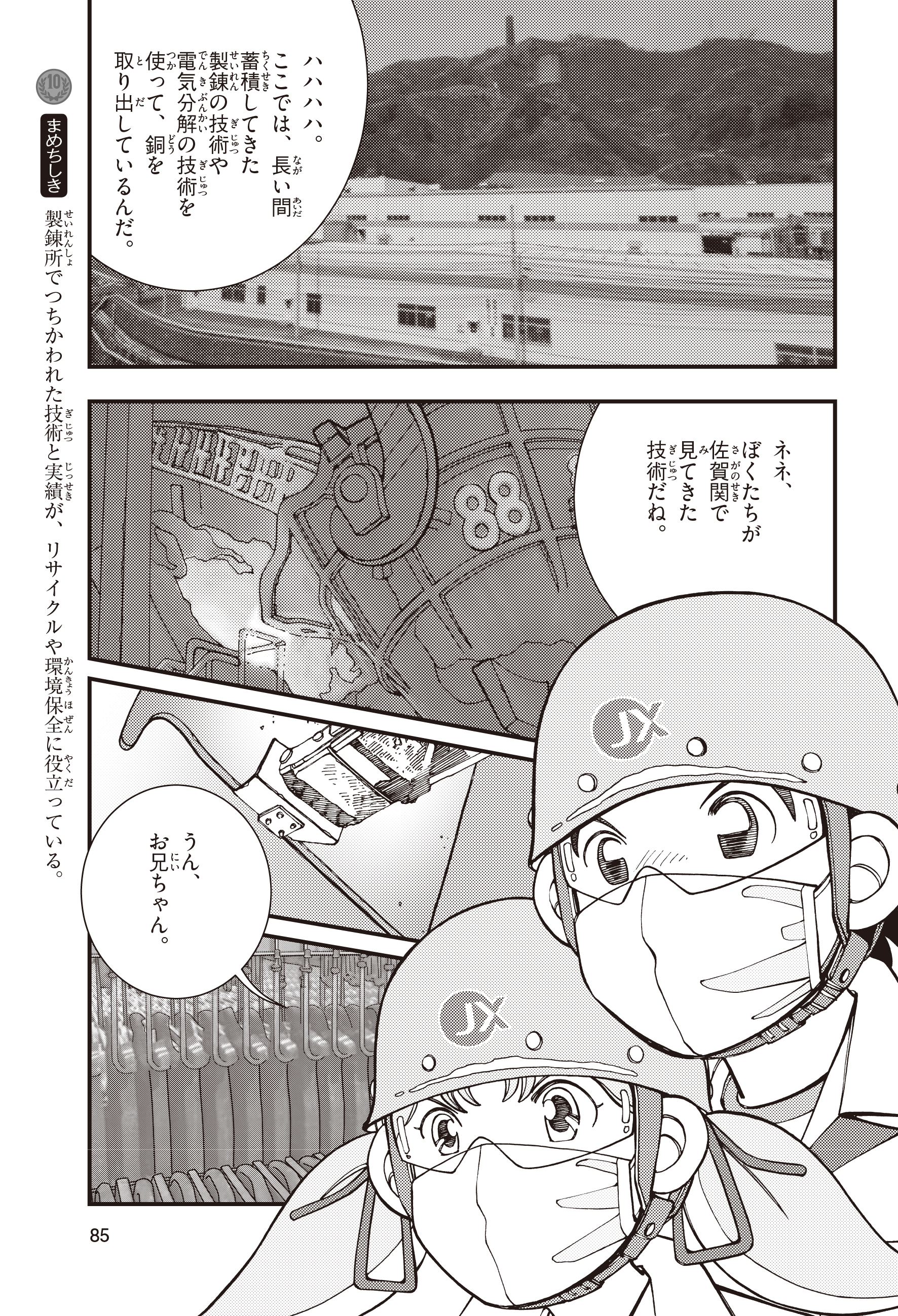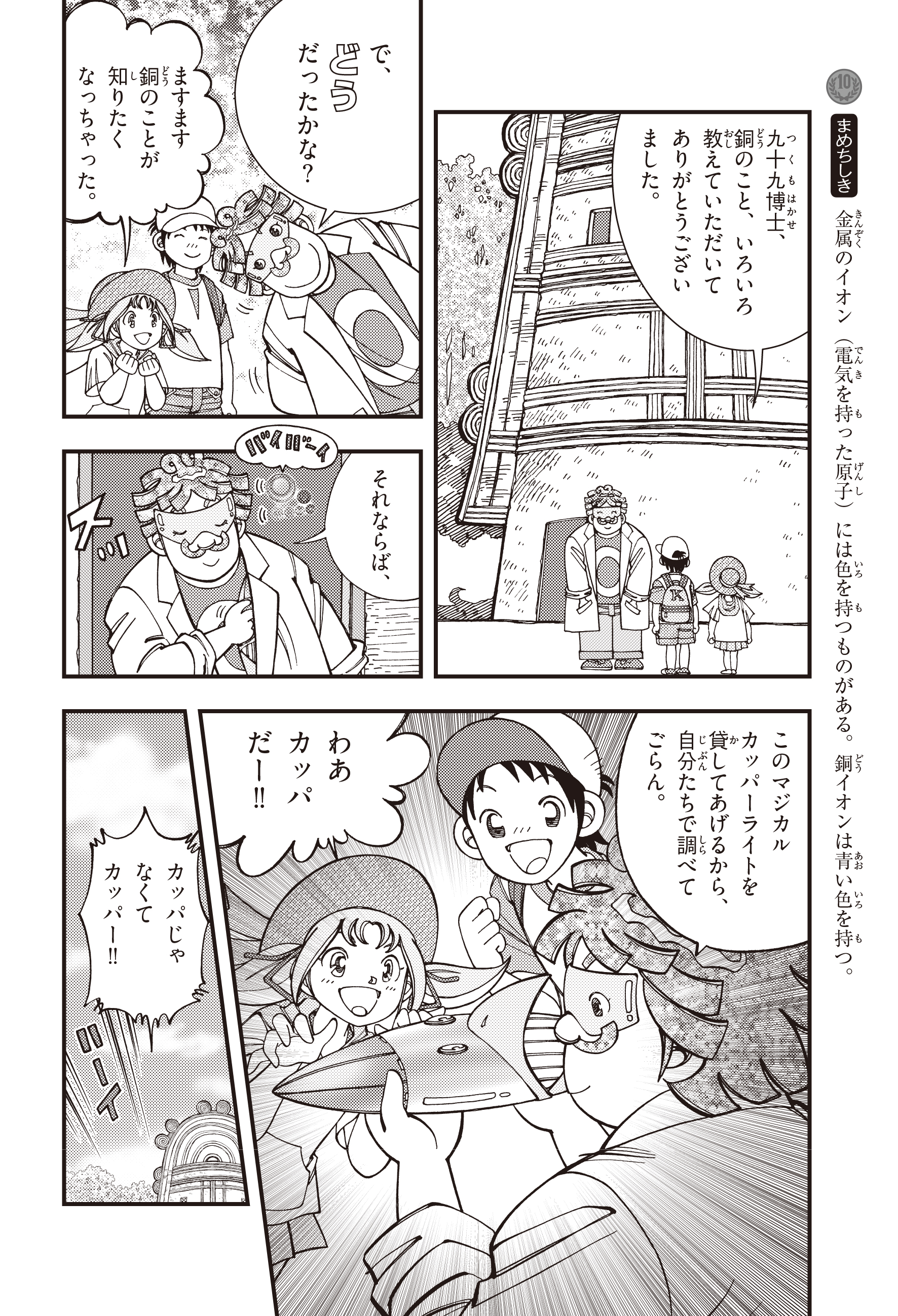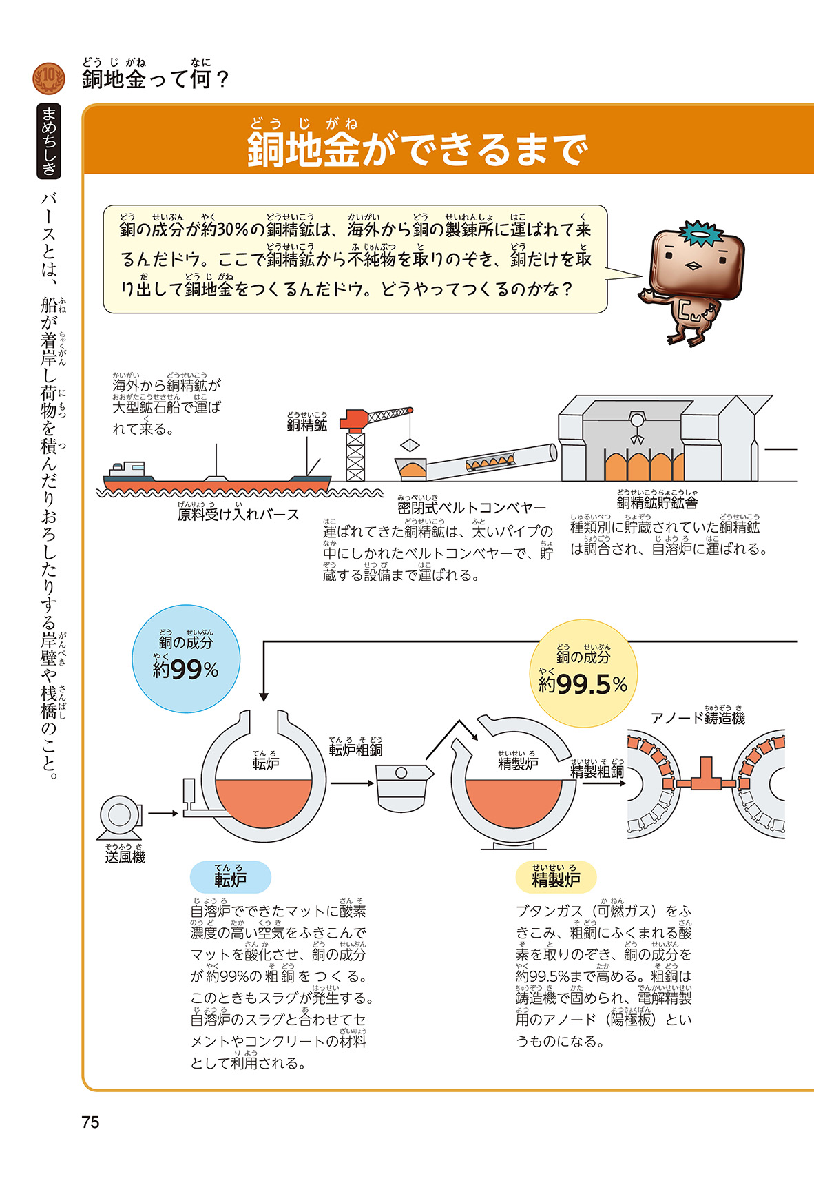 父の日のプレゼントに「銅のカップ」をプレゼントしたこういちとネネの兄妹。「冷たいビールがもっとおいしく飲めるカップ」っていうけど、どうしてなんだろう? 銅のことが知りたくなったふたりは調査にいくよ。 銅は電気を使うものにたくさん使われていて、いろいろな性質があるんだって。ずーっと昔から使われていて、そして今、進化している銅。ふたりといっしょに、銅のひみつを探りにいこう!
