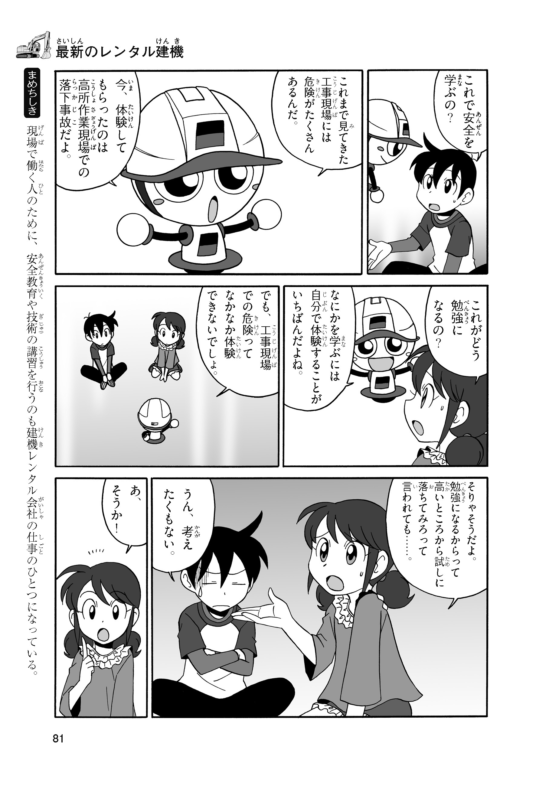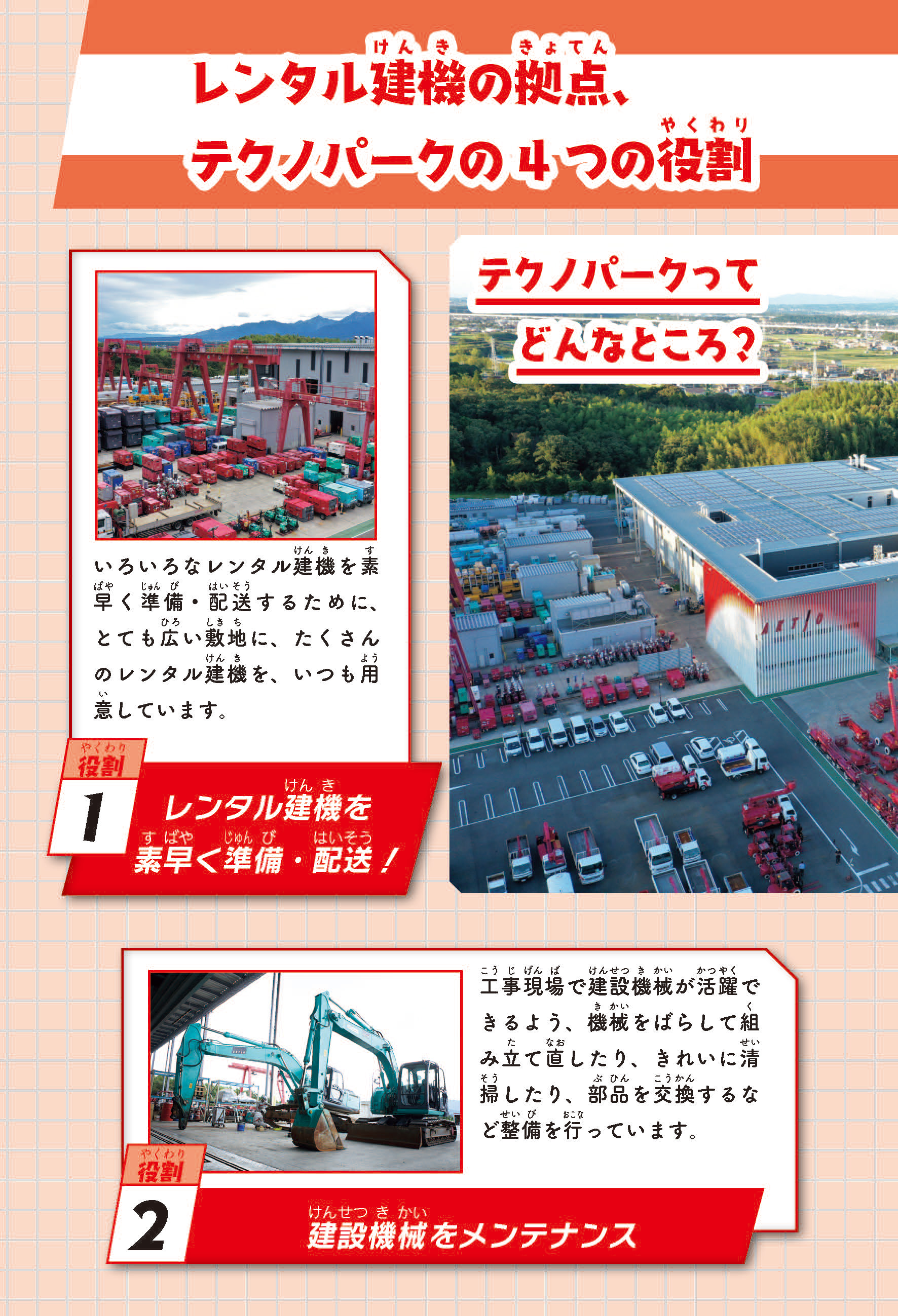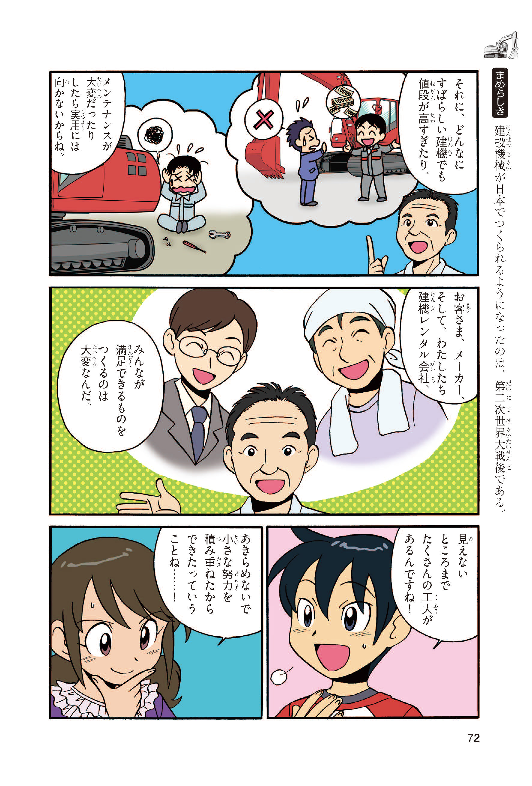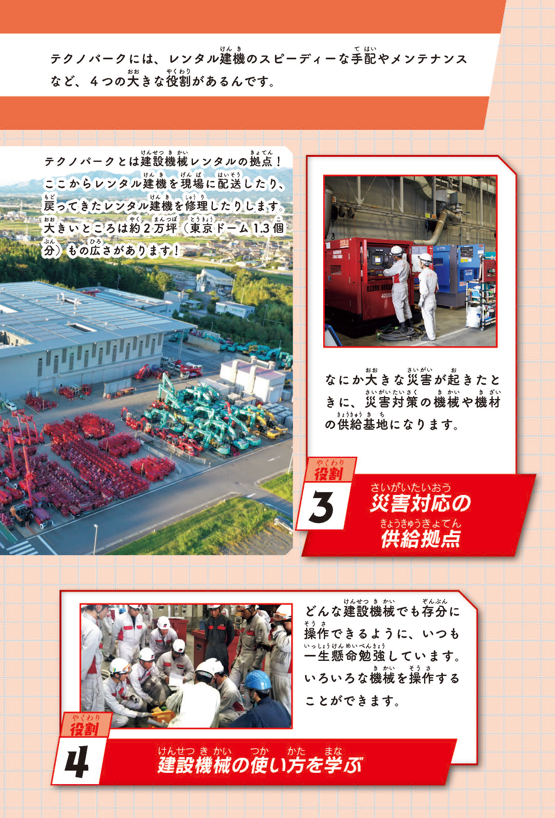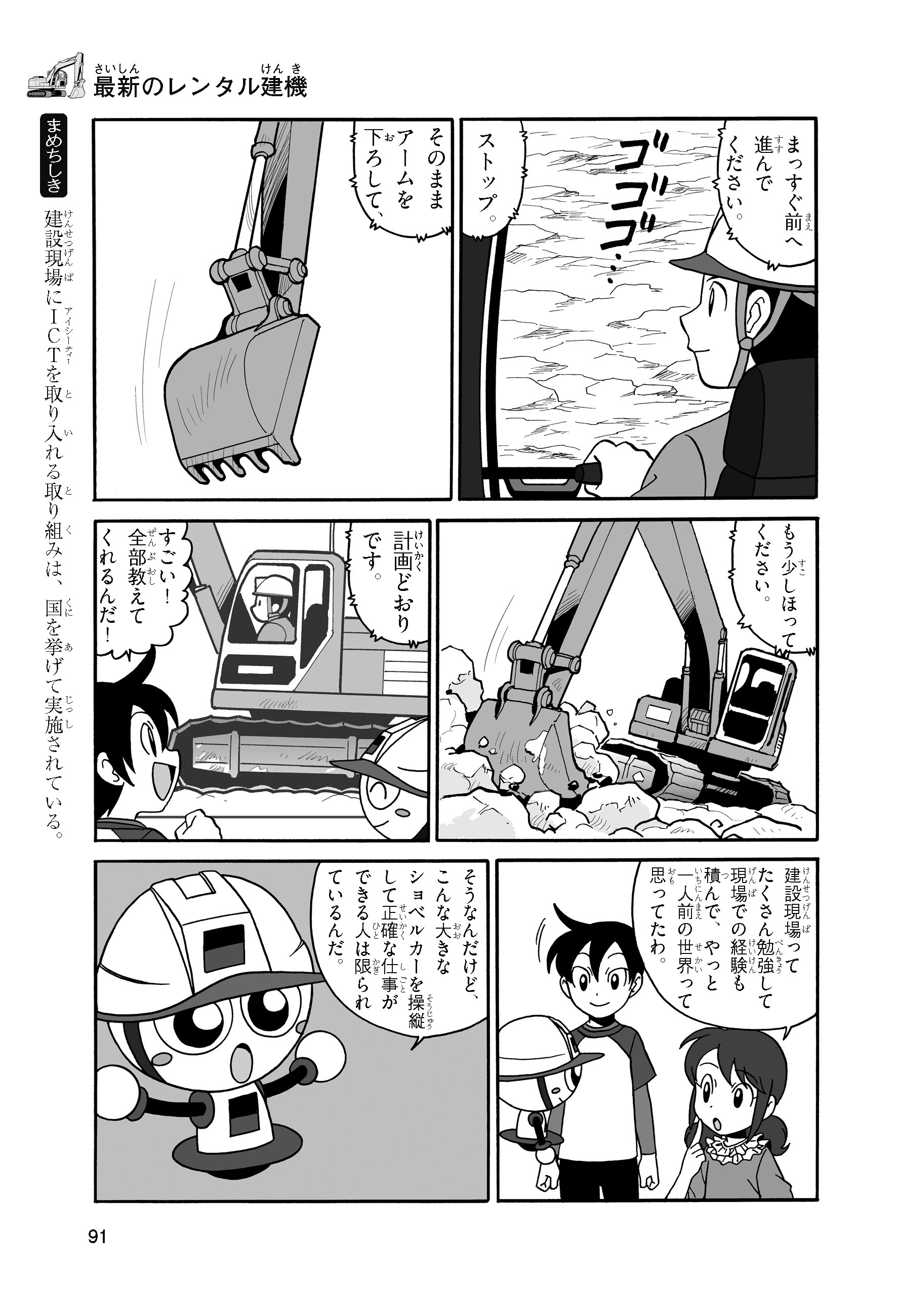 働く車が大好きな小学生のアキオ。体育館の建て替え工事がはじまって、たくさんの働く車にわくわくしていると、未来のロボット・ティオがあらわれて、実はそこにある働く車=建機(けんき)たちが貸し出されているもの(レンタル)だと教えてくれるよ。しかも、ただ貸し出しするだけじゃなくて、お客さんに合わせたレンタルをしたり、新しい建設機械をつくったりもしているんだって! この本でひみつについて知ってみよう!