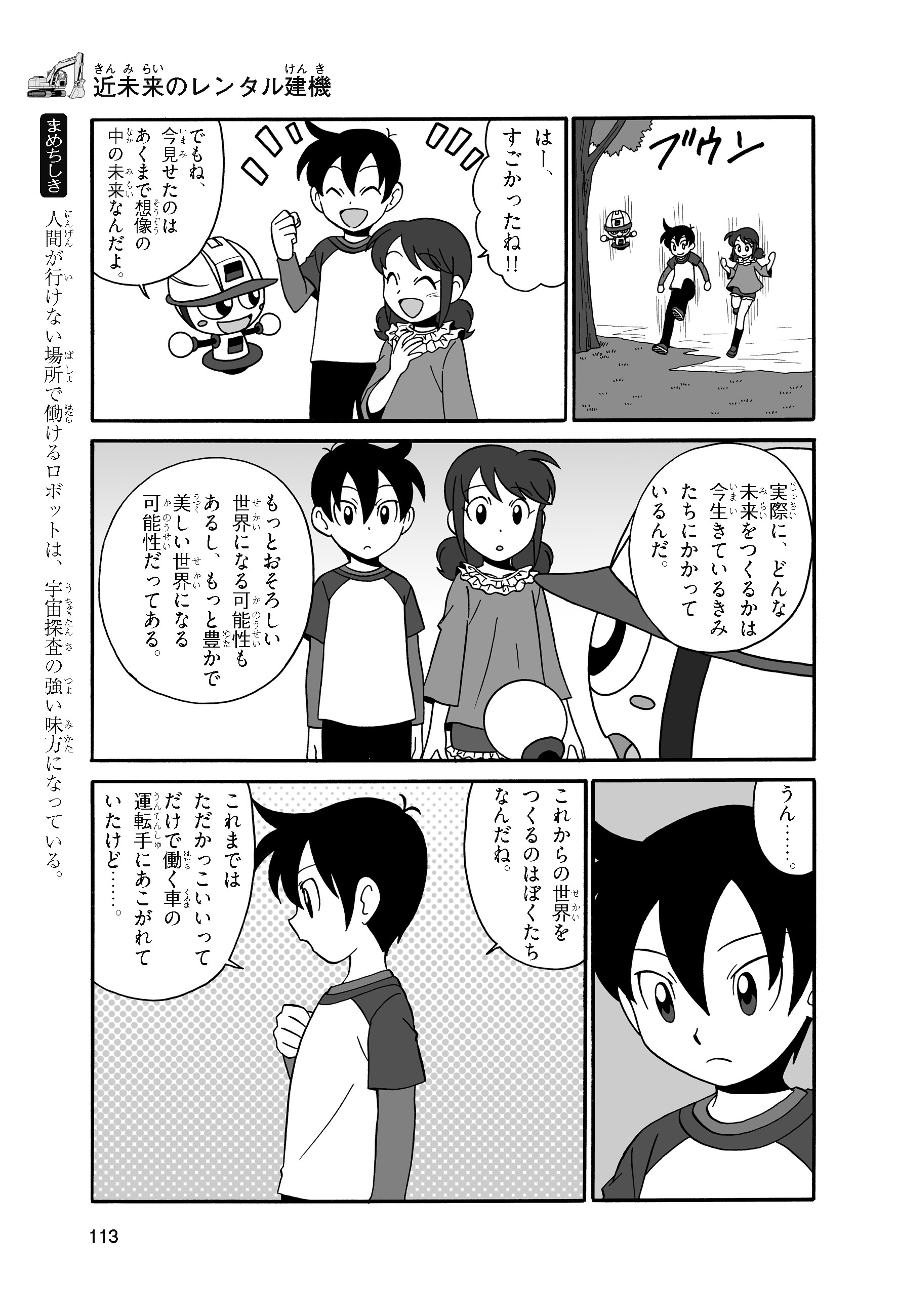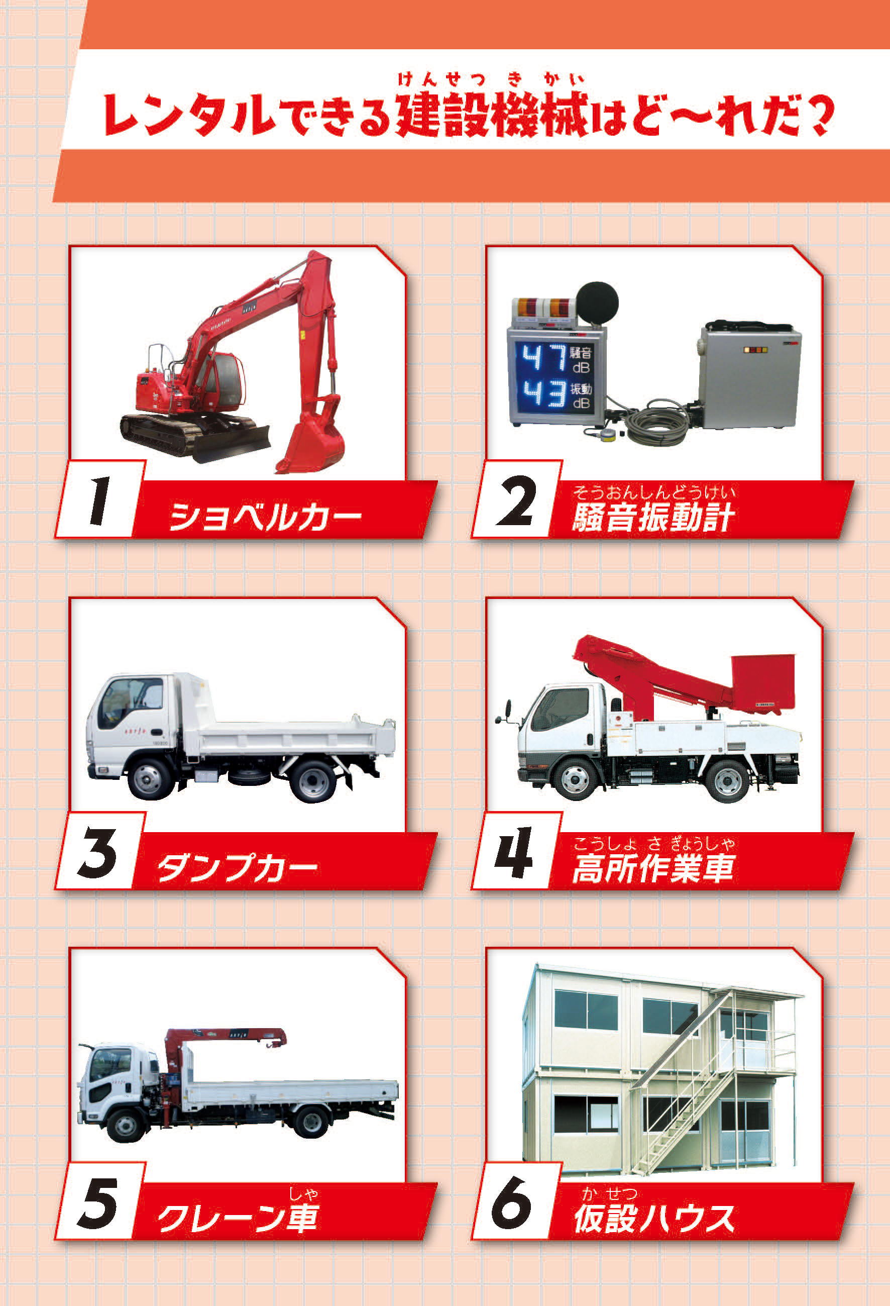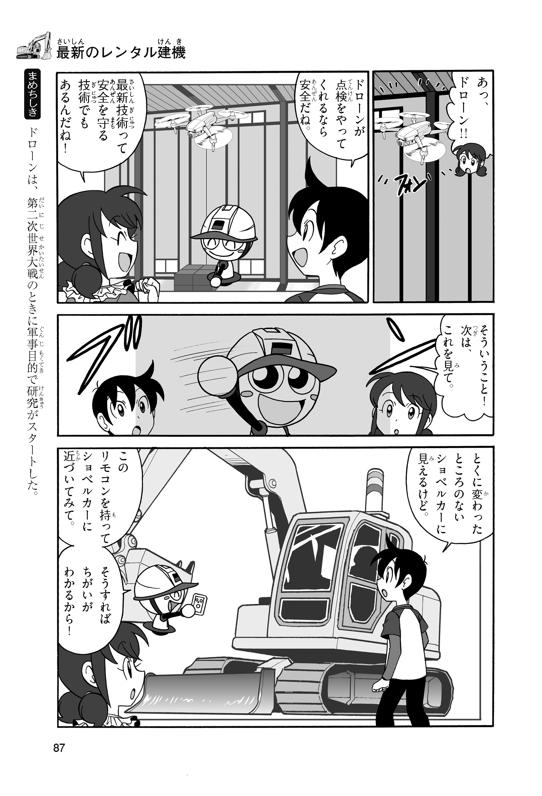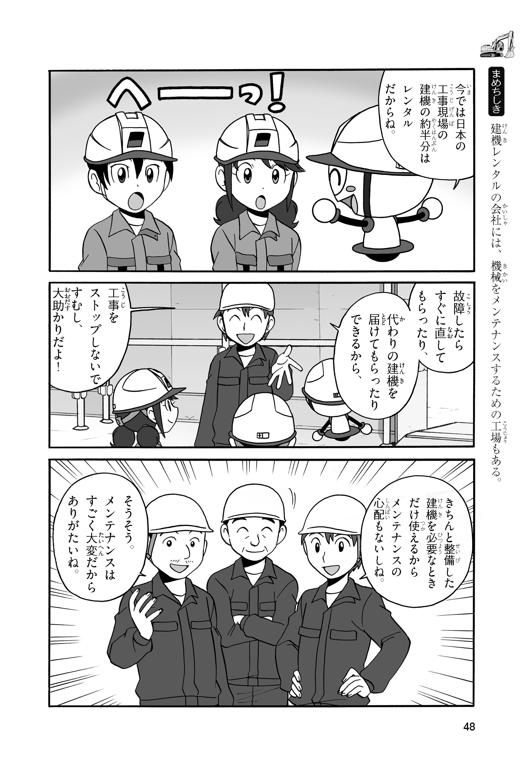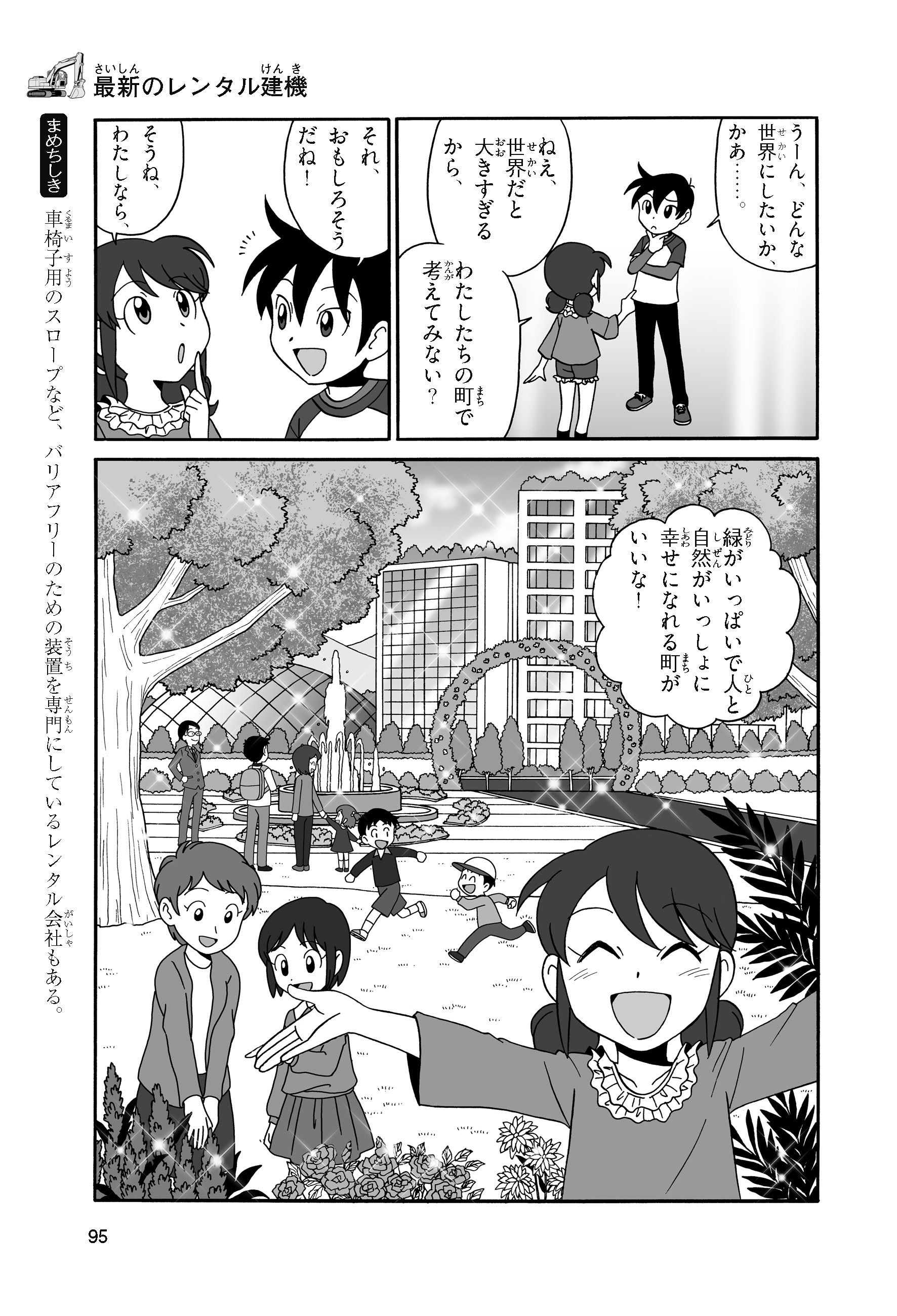 働く車が大好きな小学生のアキオ。体育館の建て替え工事がはじまって、たくさんの働く車にわくわくしていると、未来のロボット・ティオがあらわれて、実はそこにある働く車=建機(けんき)たちが貸し出されているもの(レンタル)だと教えてくれるよ。しかも、ただ貸し出しするだけじゃなくて、お客さんに合わせたレンタルをしたり、新しい建設機械をつくったりもしているんだって! この本でひみつについて知ってみよう!