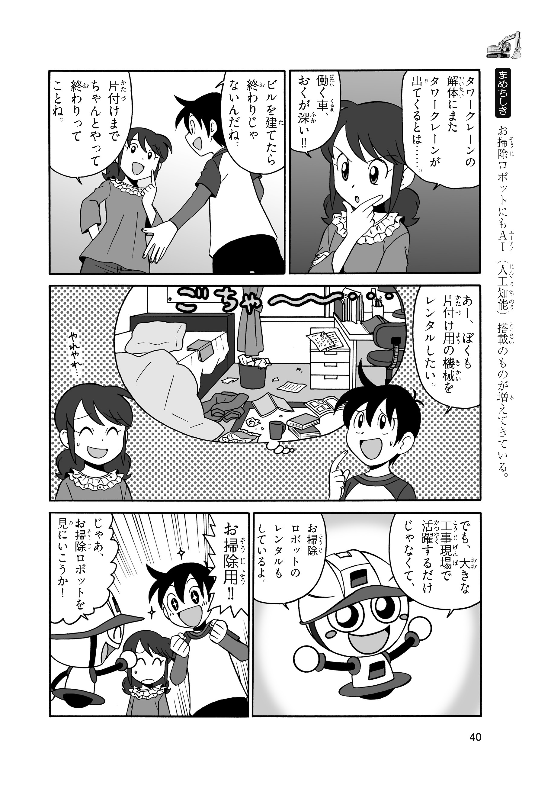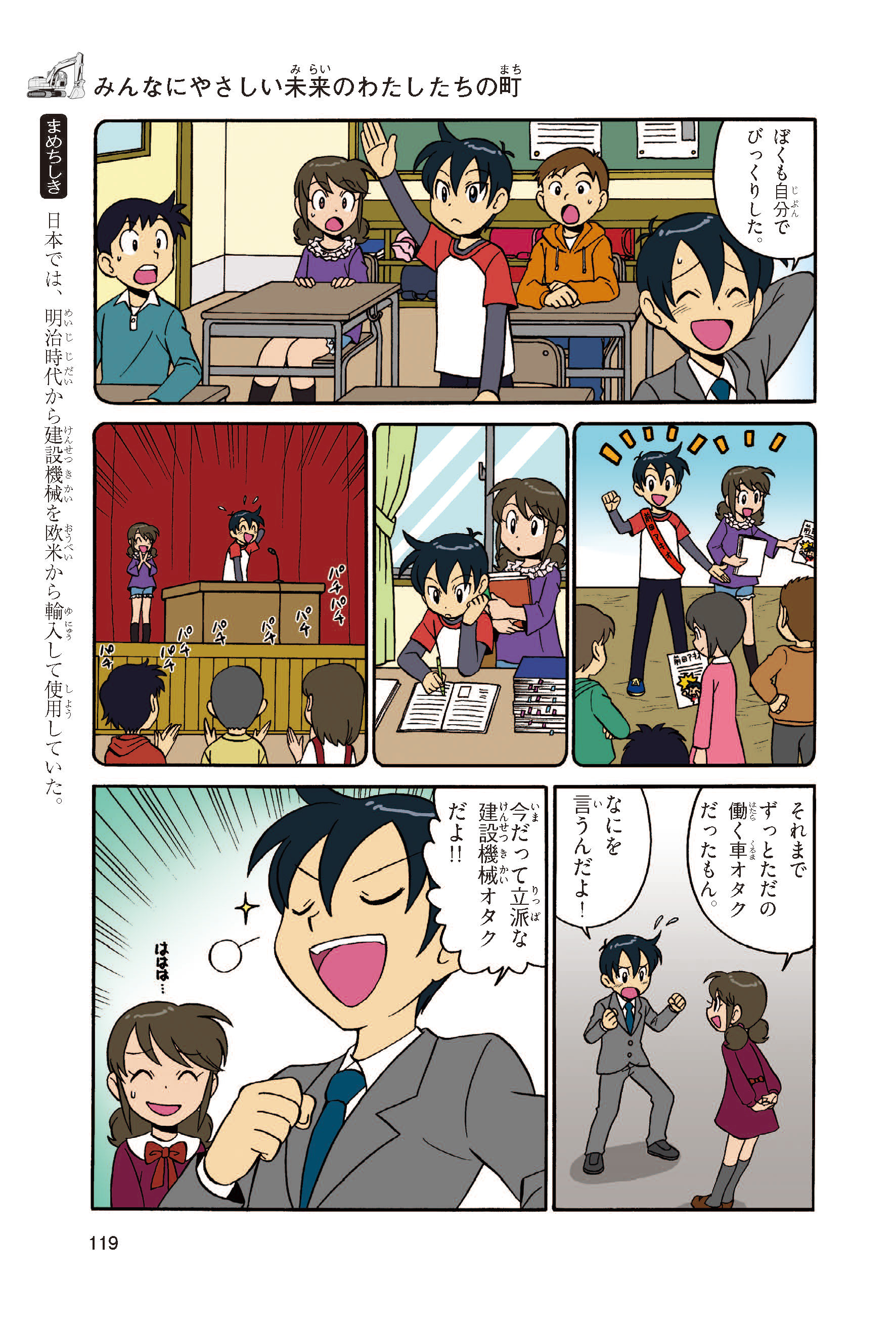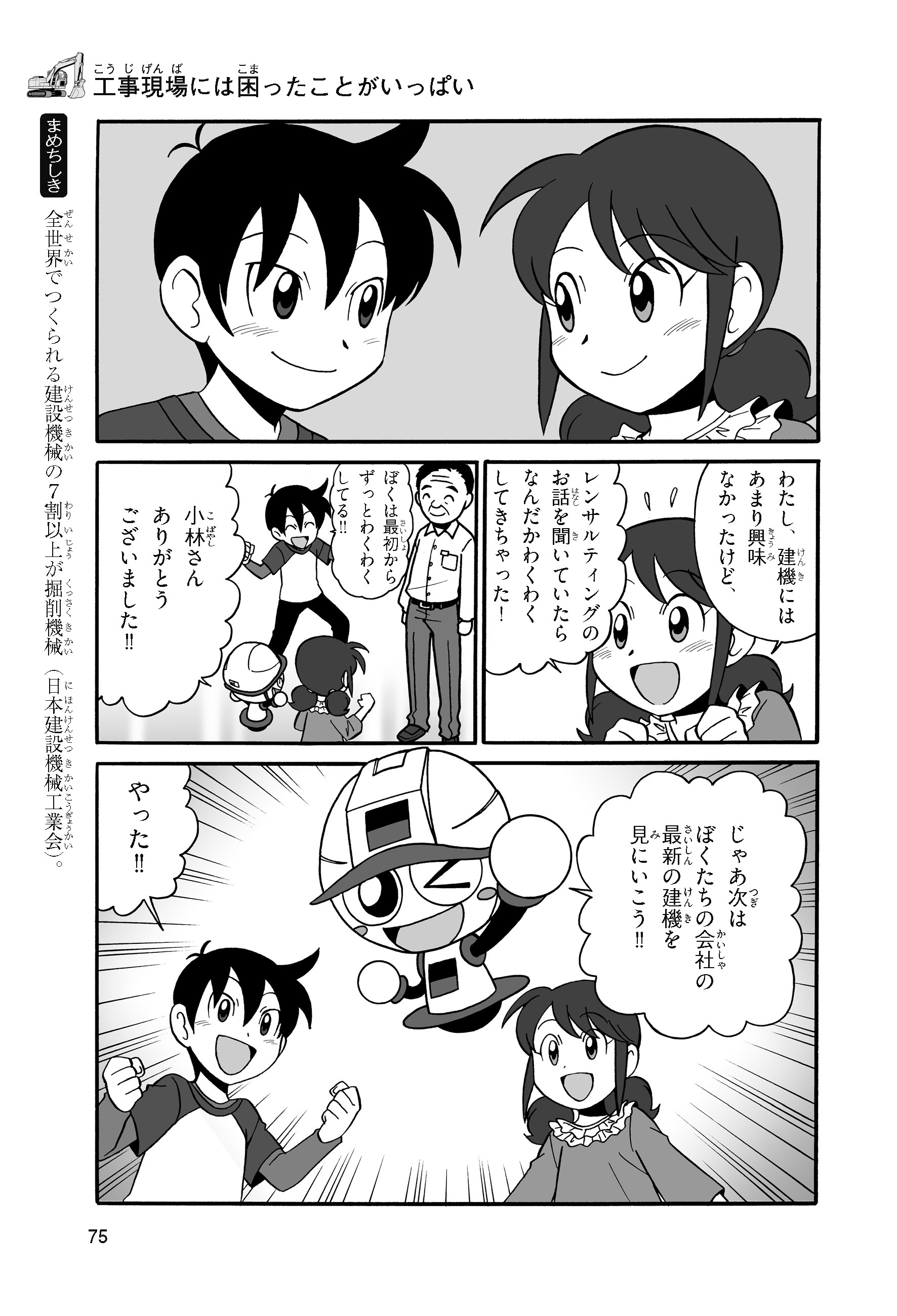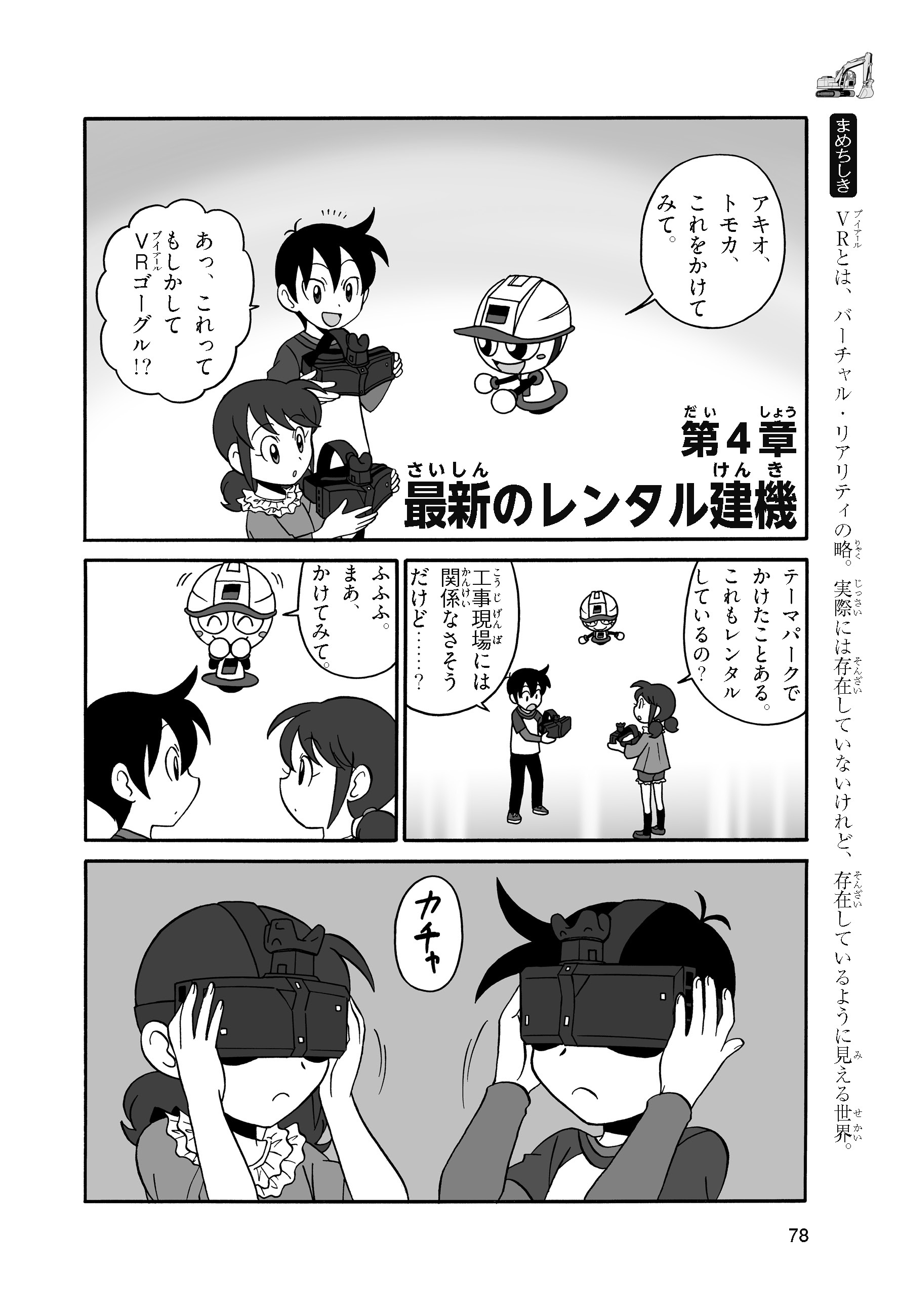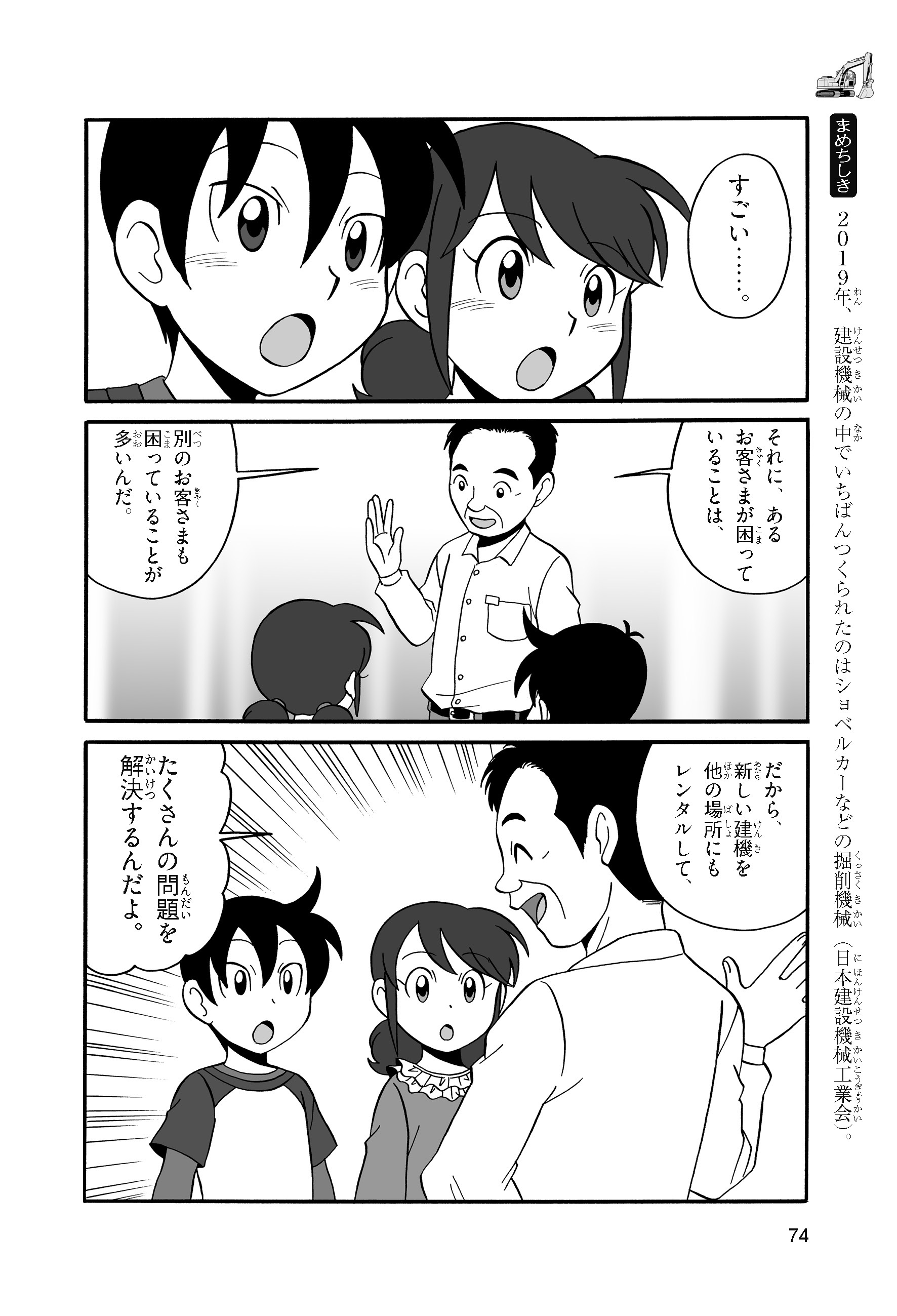 働く車が大好きな小学生のアキオ。体育館の建て替え工事がはじまって、たくさんの働く車にわくわくしていると、未来のロボット・ティオがあらわれて、実はそこにある働く車=建機(けんき)たちが貸し出されているもの(レンタル)だと教えてくれるよ。しかも、ただ貸し出しするだけじゃなくて、お客さんに合わせたレンタルをしたり、新しい建設機械をつくったりもしているんだって! この本でひみつについて知ってみよう!