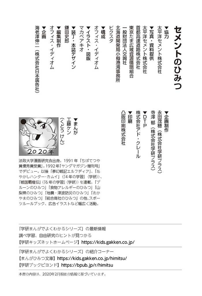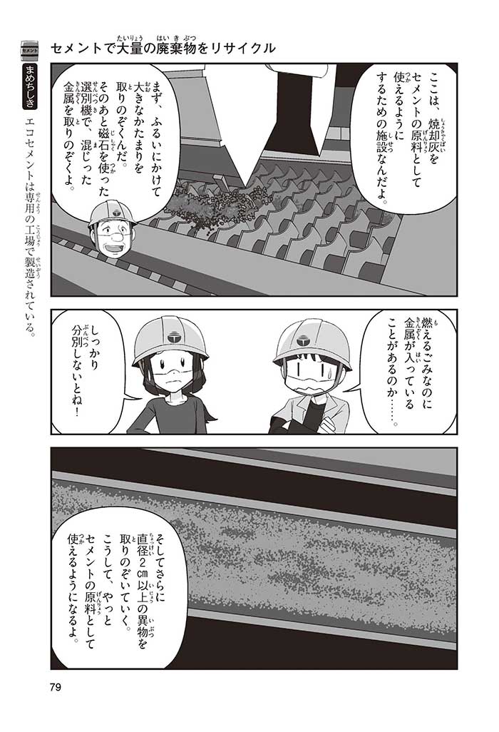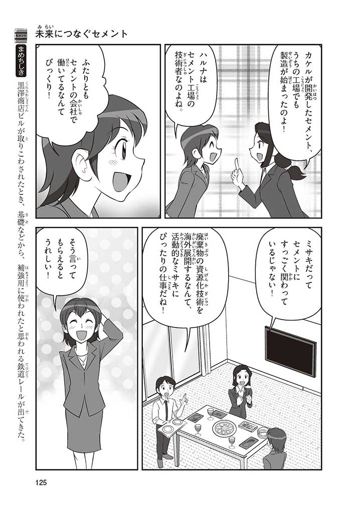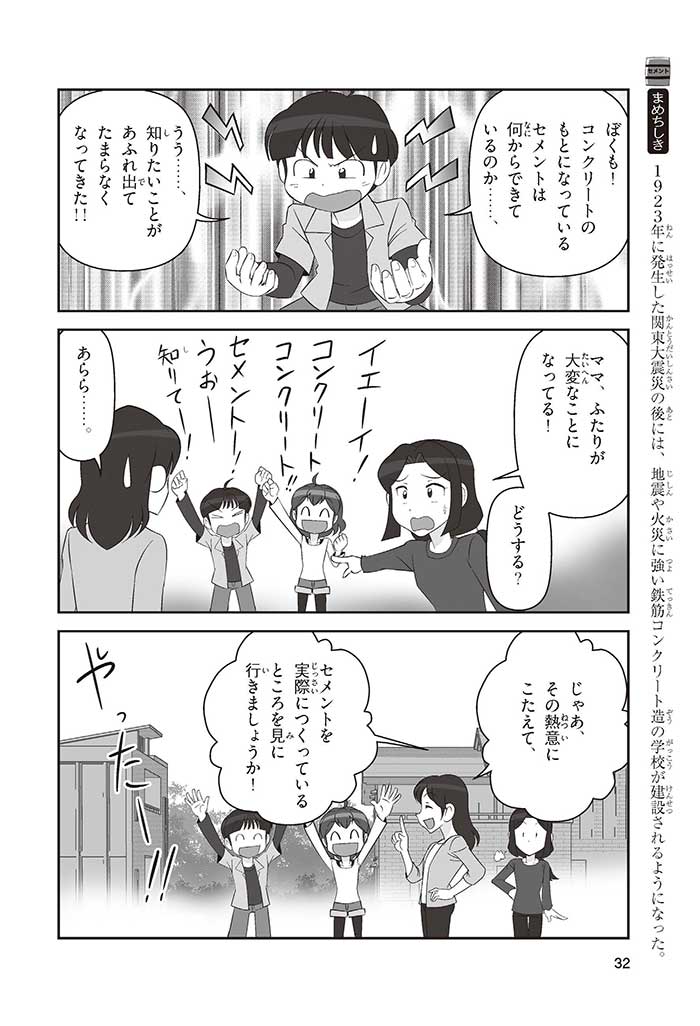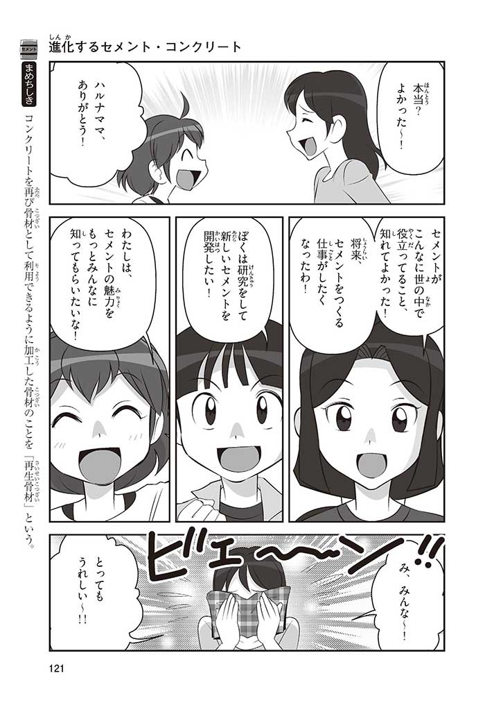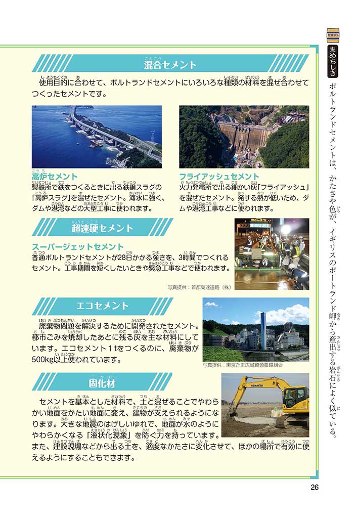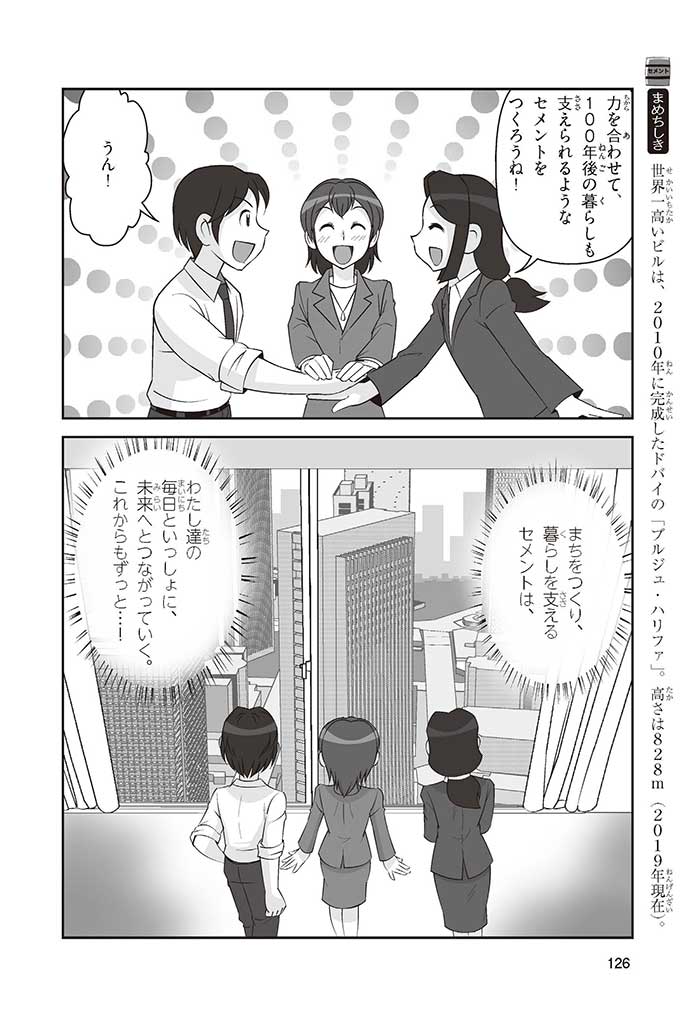 みんなは「セメント」って、どんなものかすぐにわかるかな? ダム見学の授業で、セメントに興味を持った小学5年生のミサキ、カケル、ハルナ。ダムをはじめ、ビル、橋、道路、港、空港、学校など、まちのあらゆる場所に使われていて、環境にも関係しているんだって! でも、セメントとコンクリートのちがいってなに? セメントって何からできているの? 未来をつくるセメントについて、いっしょに学ぼう!