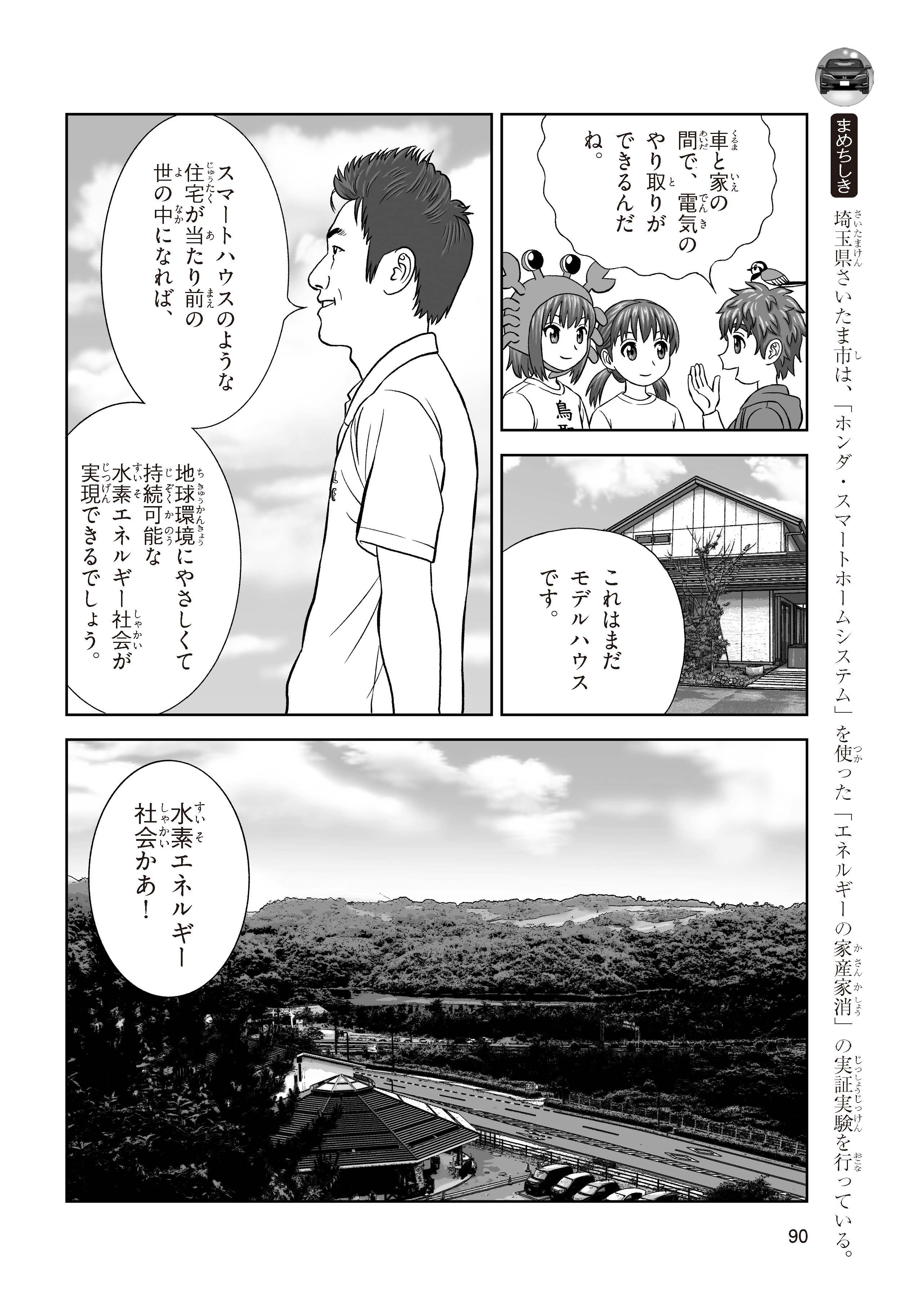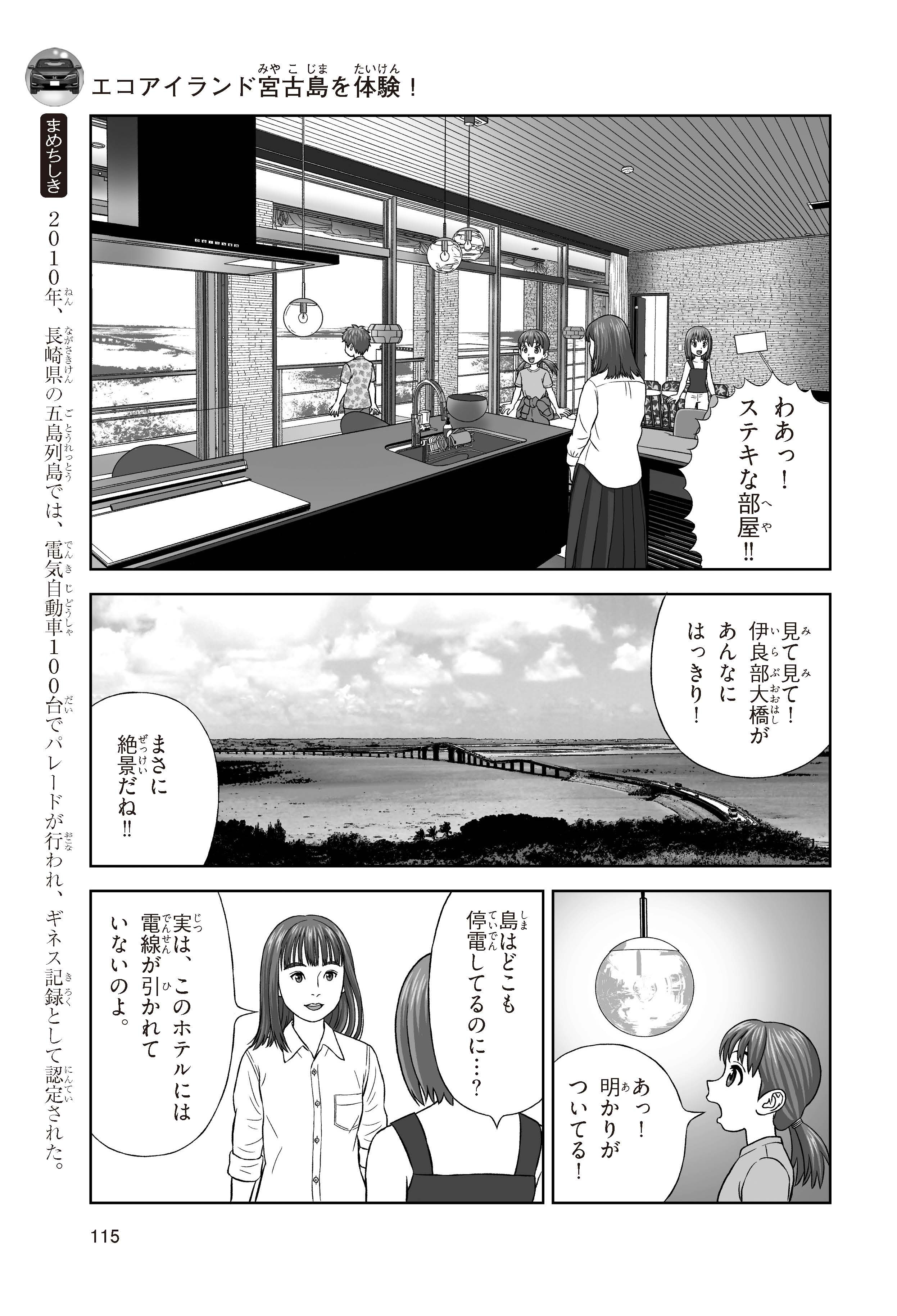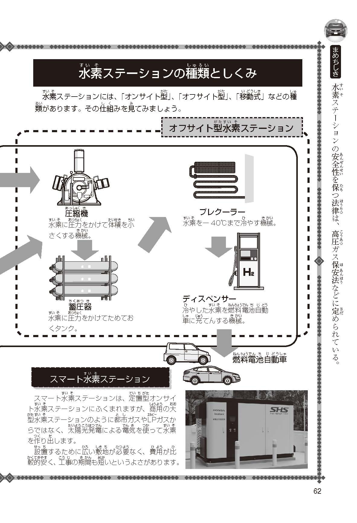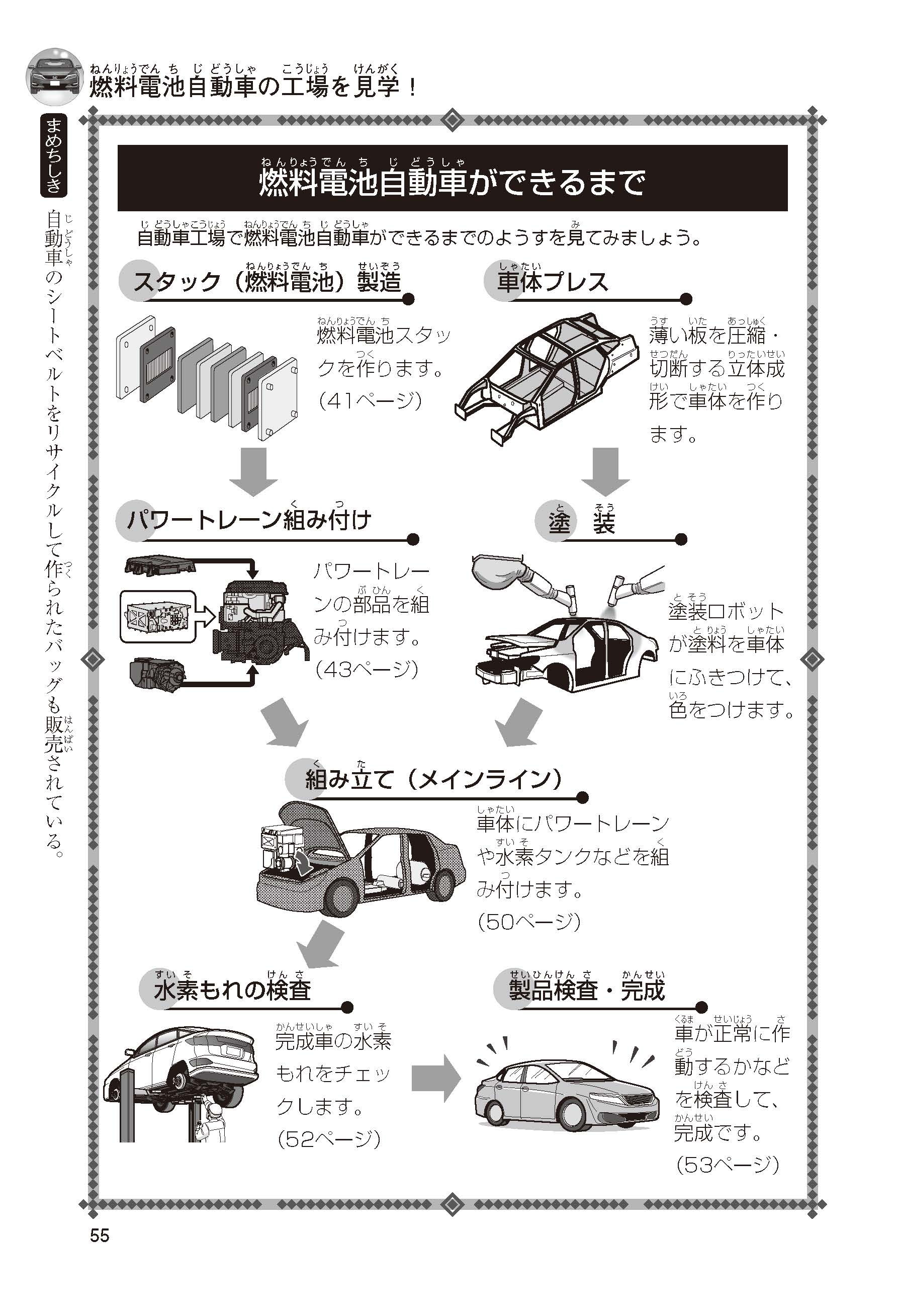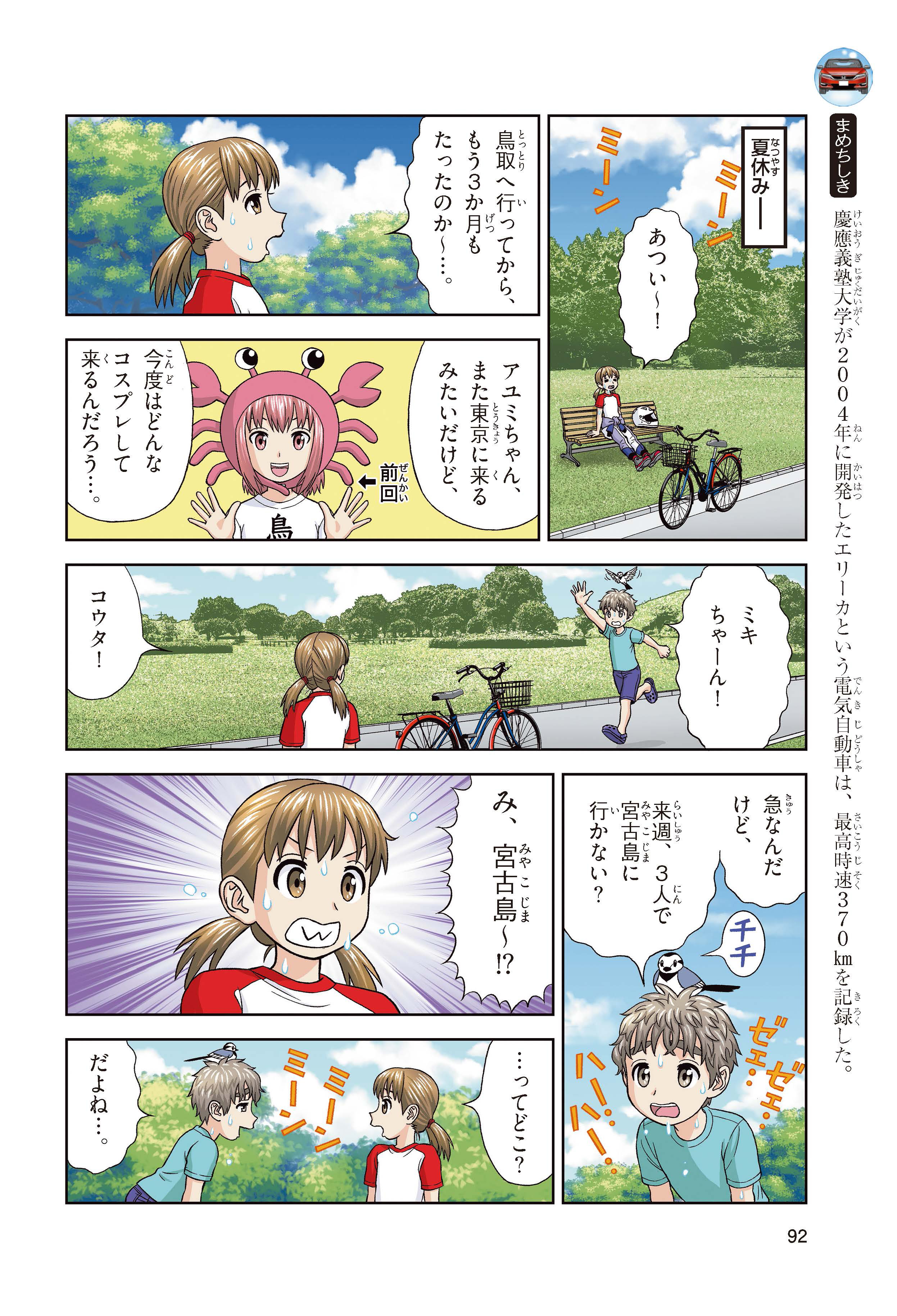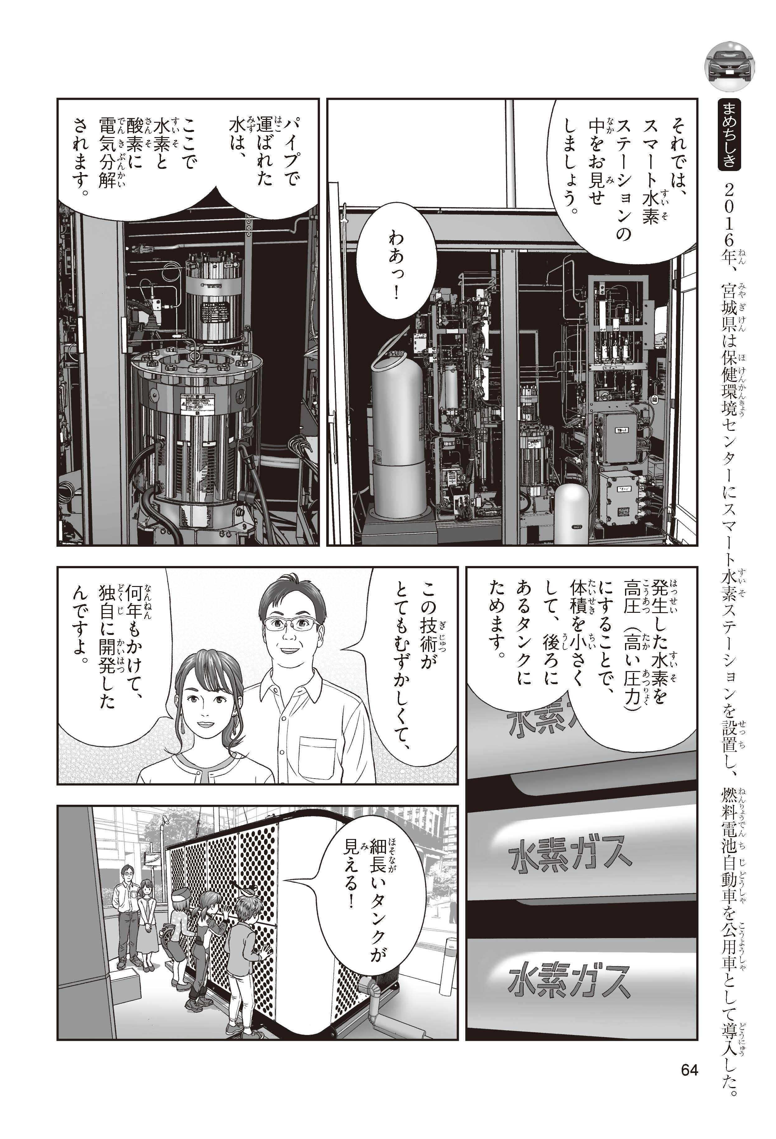 春休み、小学5年生のコウタのいとこ・アユミが遊びにくることに。同級生のミキといっしょに東京案内中、異常気象(いじょうきしょう)で停電が起こって、電気の大切さを改めて知るよ。そこで聞いたのが「燃料電池自動車」。水素という気体が燃料で、「究極のエコカー(地球にやさしい車)」と言われているんだって。電気をつくることもできて、移動発電機としての役割も期待されているんだよ。この本でひみつを探ろう!
